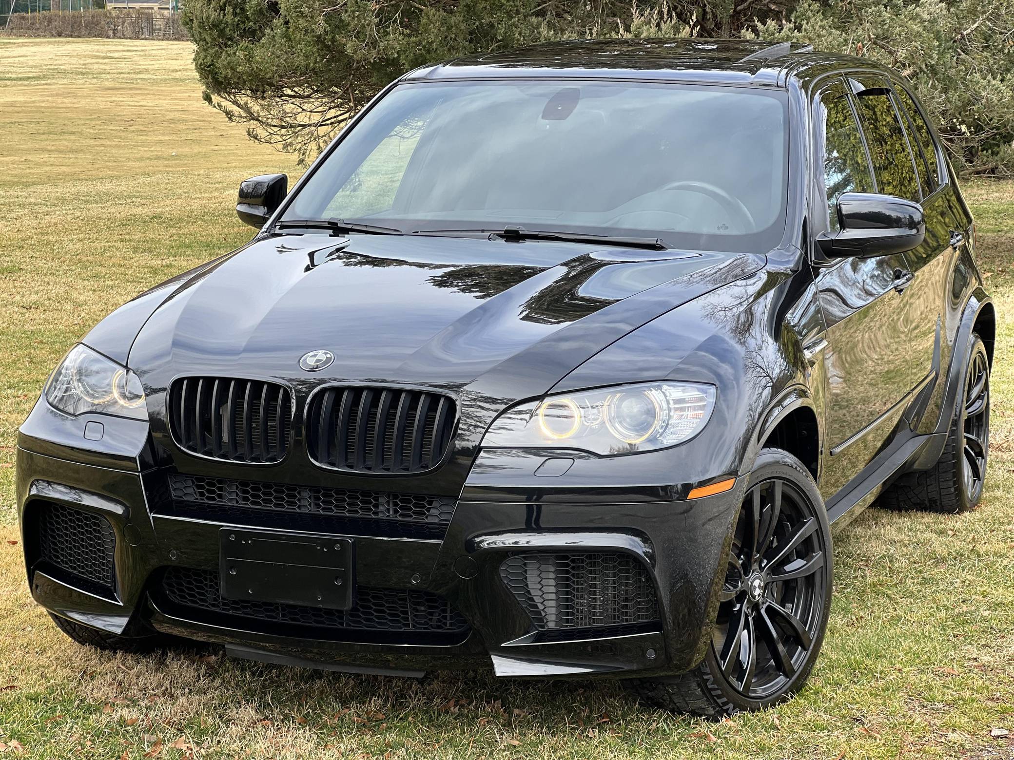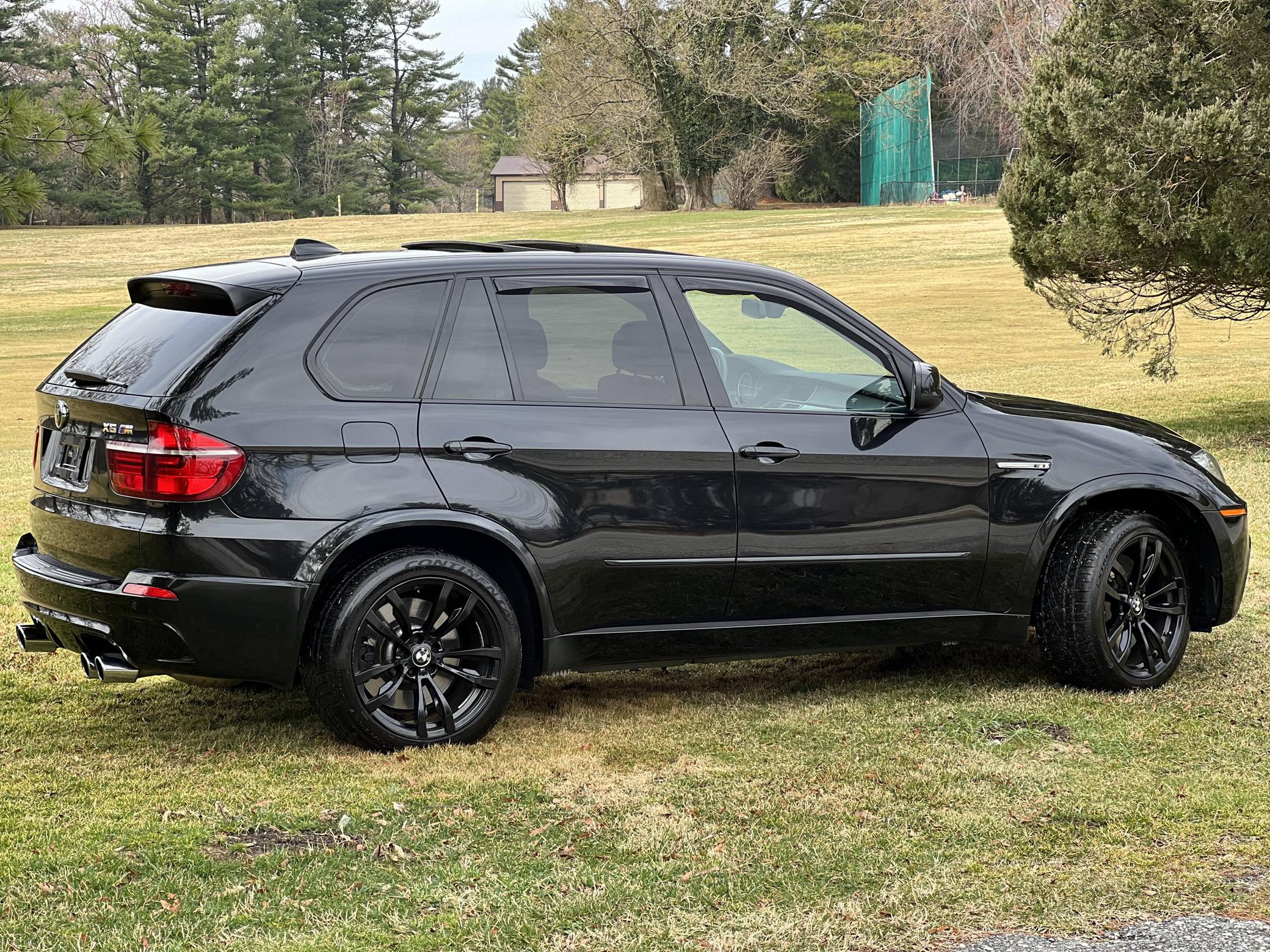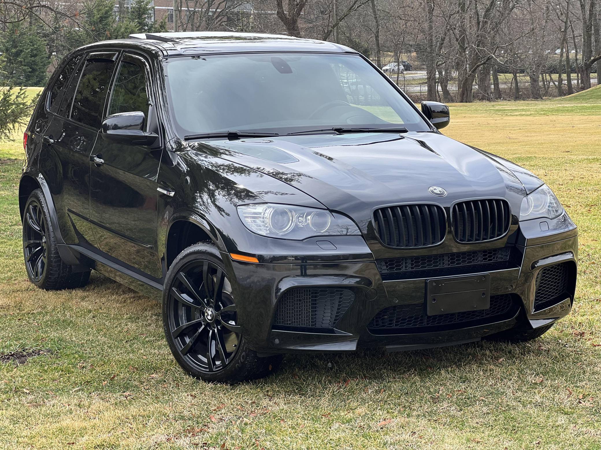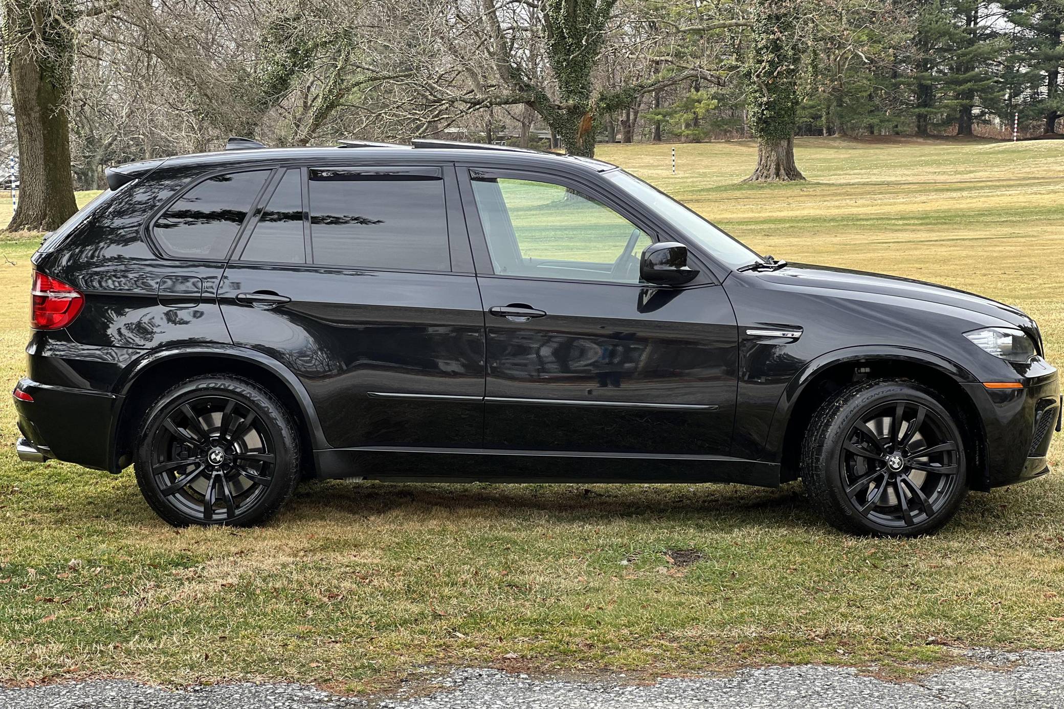 THIS. . . is a 2012 BMW X5 M, finished in Black Sapphire Metallic with a black interior. According to the Monroney Label pictured in the gallery, this X5 M had an original MSRP of $92,745 and came equipped with Driver Assistance and Premium Sound Packages, 20-inch Style 299M wheels, self-leveling suspension, a panoramic glass roof, Merino leather upholstery, heated and power-adjustable front seats, Comfort Access keyless entry system, and more as detailed below. Modifications reported by the seller include paint protection film on the rear bumper and lower panels, an Eisenmann exhaust, WeatherTech rain guards, black kidney grilles, black BMW roundel emblems, a red starter button, carbon fiber-style wheel center caps, aluminum pedal covers, and black-painted factory wheels. The "E70" X5 M was only offered in North America from 2010 to 2013 and was the first sport-utility vehicle produced by BMW M. In addition to a more powerful engine, the M variant sported a number of enhancements over the standard X5 including M Dynamic Stability Control, Cornering Brake Control, Electronic Damping Control, and Dynamic Brake Control. Power comes from a 4. 4-liter twin-turbocharged V8 engine, rated at 555 horsepower and 500 lb-ft of torque. Output is sent to all four wheels via a 6-speed automatic transmission.