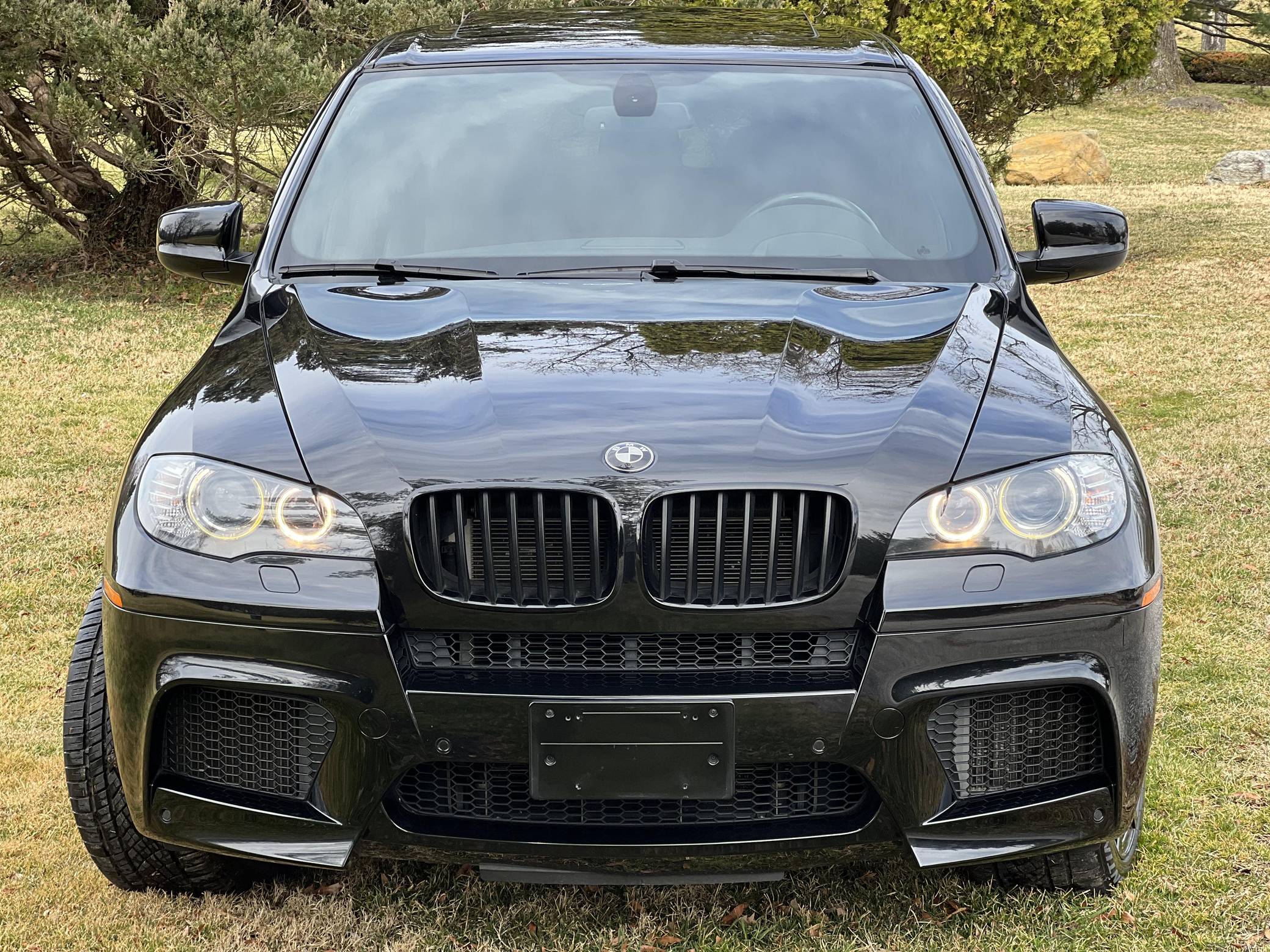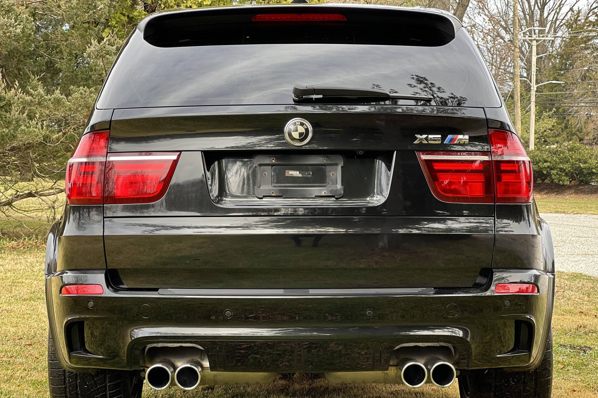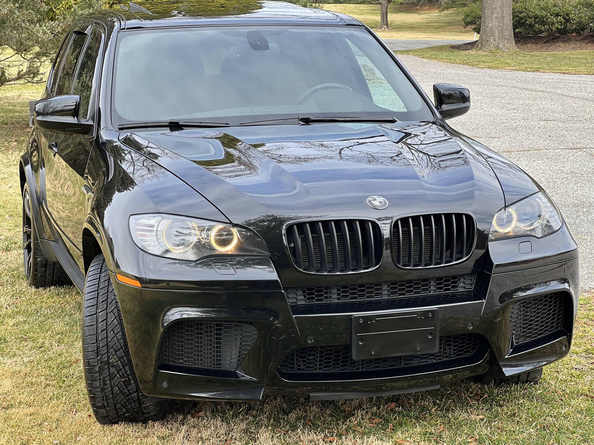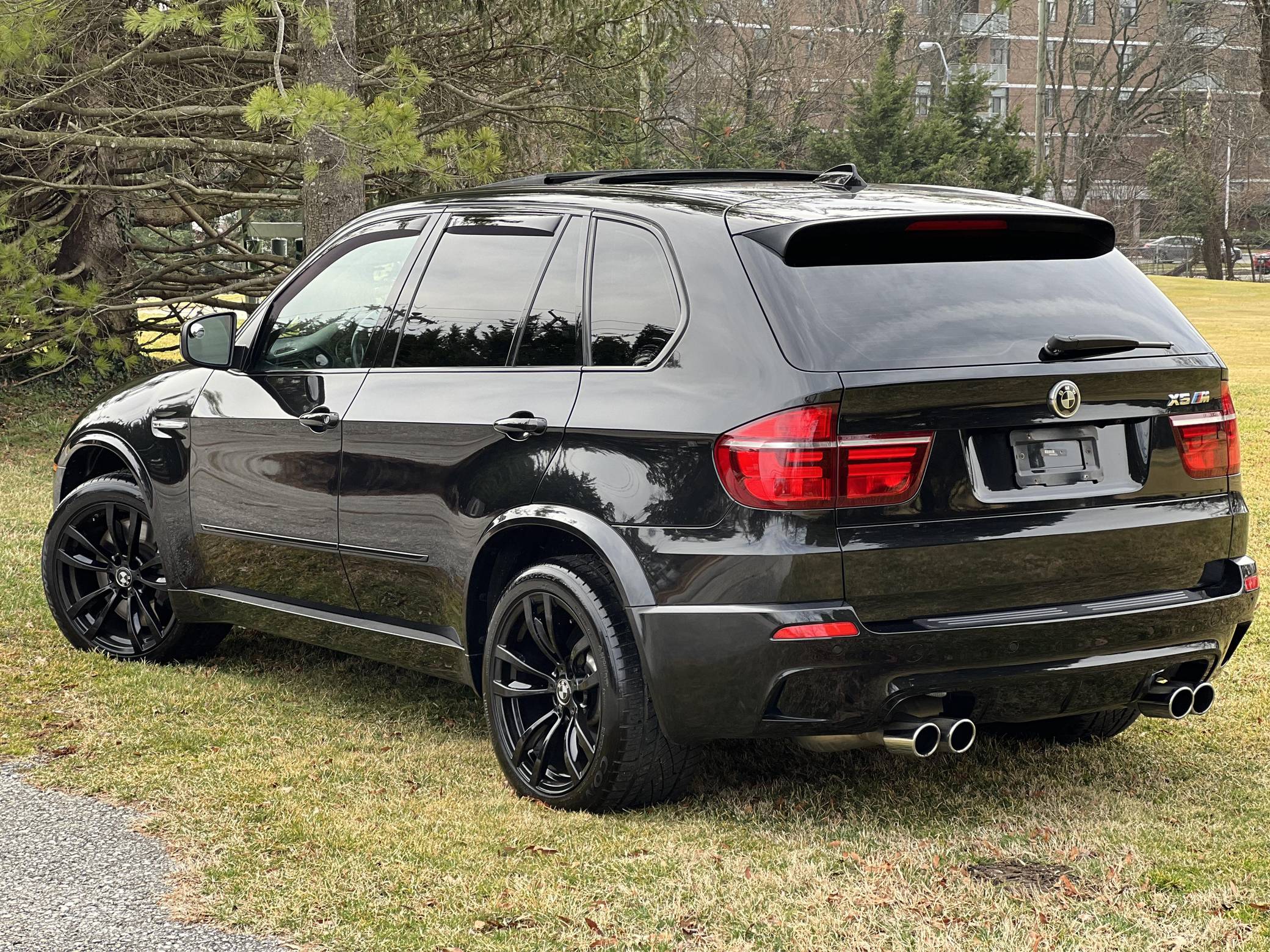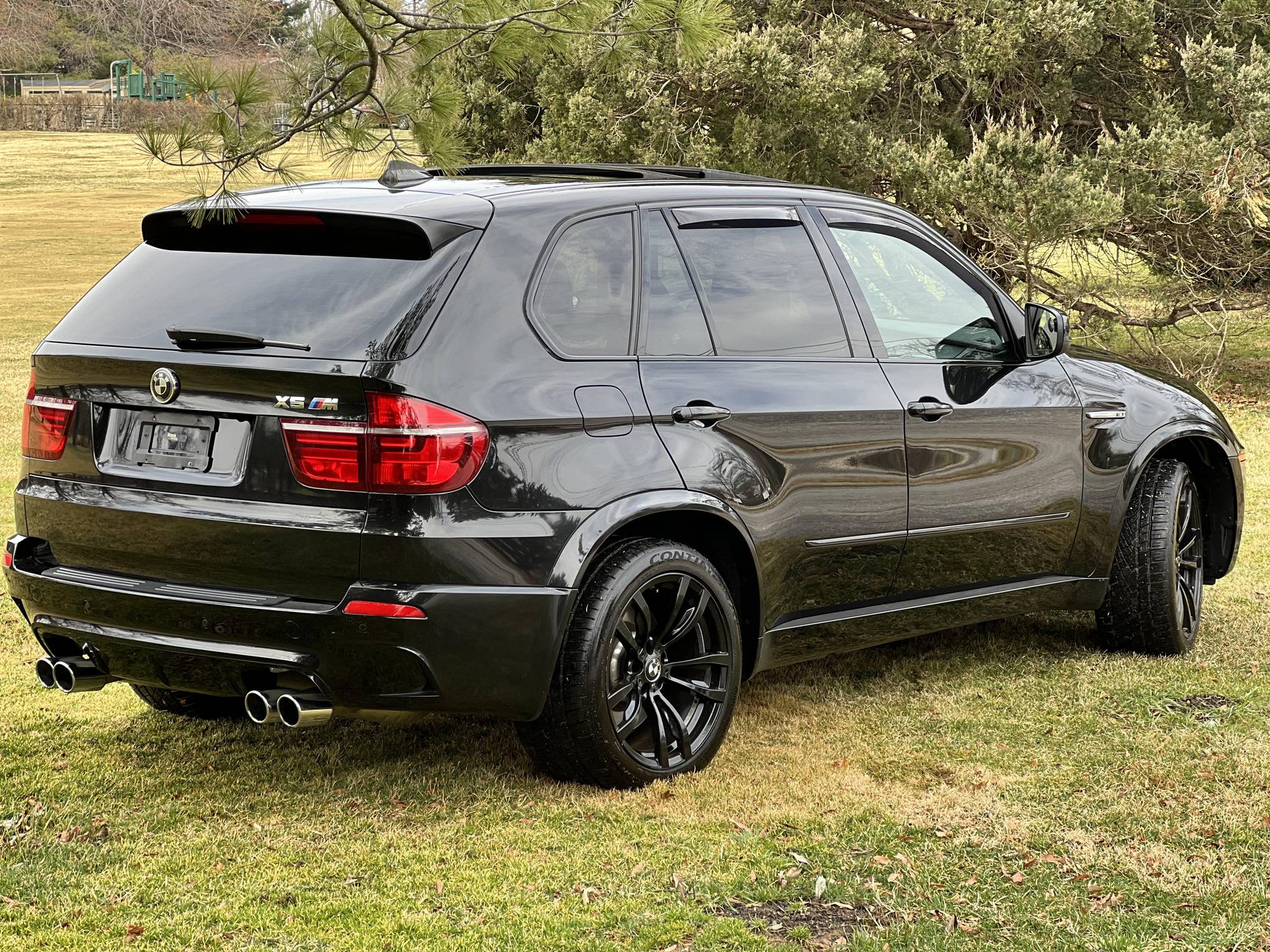 THIS. . . is a 2012 BMW X5 M, finished in Black Sapphire Metallic with a black interior. According to the Monroney Label pictured in the gallery, this X5 M had an original MSRP of $92,745 and came equipped with Driver Assistance and Premium Sound Packages, 20-inch Style 299M wheels, self-leveling suspension, a panoramic glass roof, Merino leather upholstery, heated and power-adjustable front seats, Comfort Access keyless entry system, and more as detailed below. Modifications reported by the seller include paint protection film on the rear bumper and lower panels, an Eisenmann exhaust, WeatherTech rain guards, black kidney grilles, black BMW roundel emblems, a red starter button, carbon fiber-style wheel center caps, aluminum pedal covers, and black-painted factory wheels. The "E70" X5 M was only offered in North America from 2010 to 2013 and was the first sport-utility vehicle produced by BMW M. In addition to a more powerful engine, the M variant sported a number of enhancements over the standard X5 including M Dynamic Stability Control, Cornering Brake Control, Electronic Damping Control, and Dynamic Brake Control. Power comes from a 4. 4-liter twin-turbocharged V8 engine, rated at 555 horsepower and 500 lb-ft of torque. Output is sent to all four wheels via a 6-speed automatic transmission.