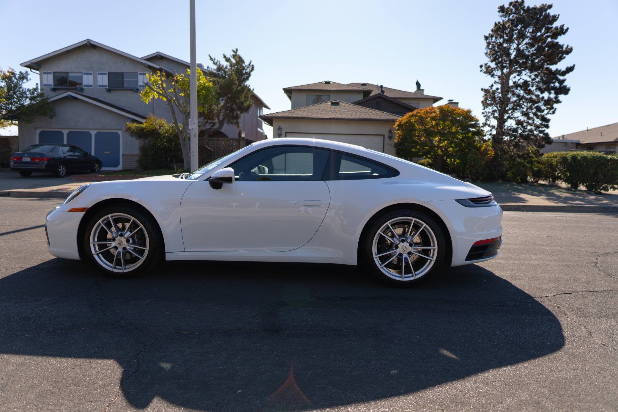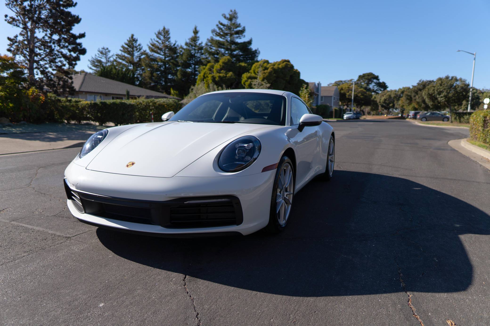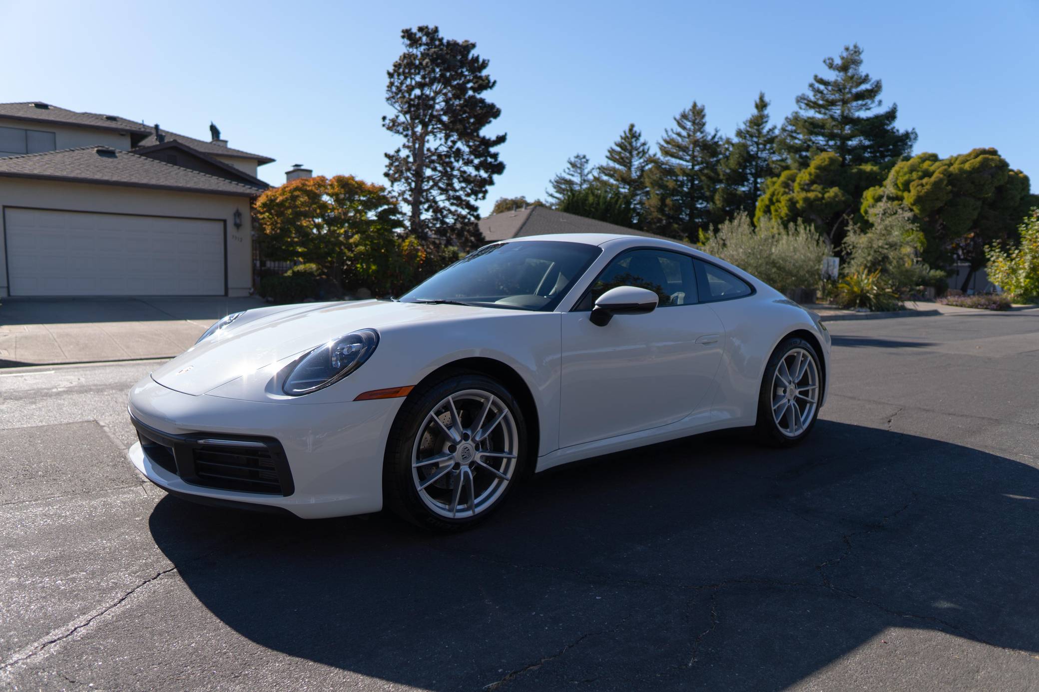 THIS. . . is a 2020 Porsche 911 Carrera, finished in white with a black interior. It also shows that this Porsche has been California-owned since it was new. Factory equipment includes 19-inch front and 20-inch rear "Carrera" wheels, the Porsche Active Suspension Management (PASM) system, heated and power-adjustable front seats, a navigation system, and wireless Apple CarPlay compatibility. The seller reports no modifications. Porsche released the 992 generation of the 911 for 2020. Slightly longer and wider than its predecessor, it received evolutionary design updates and much more significant changes under the body, including revised engines and an available 8-speed automatic transmission. Production continues today. Power comes from a 3. 0-liter twin-turbocharged flat-6, rated at 379 horsepower and 331 lb-ft of torque. It spins the rear wheels via an 8-speed automatic transmission.