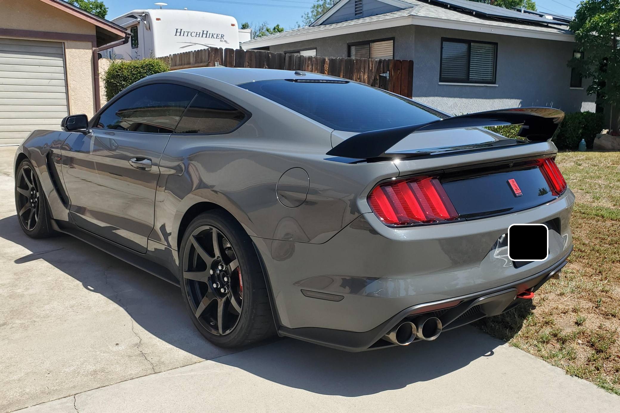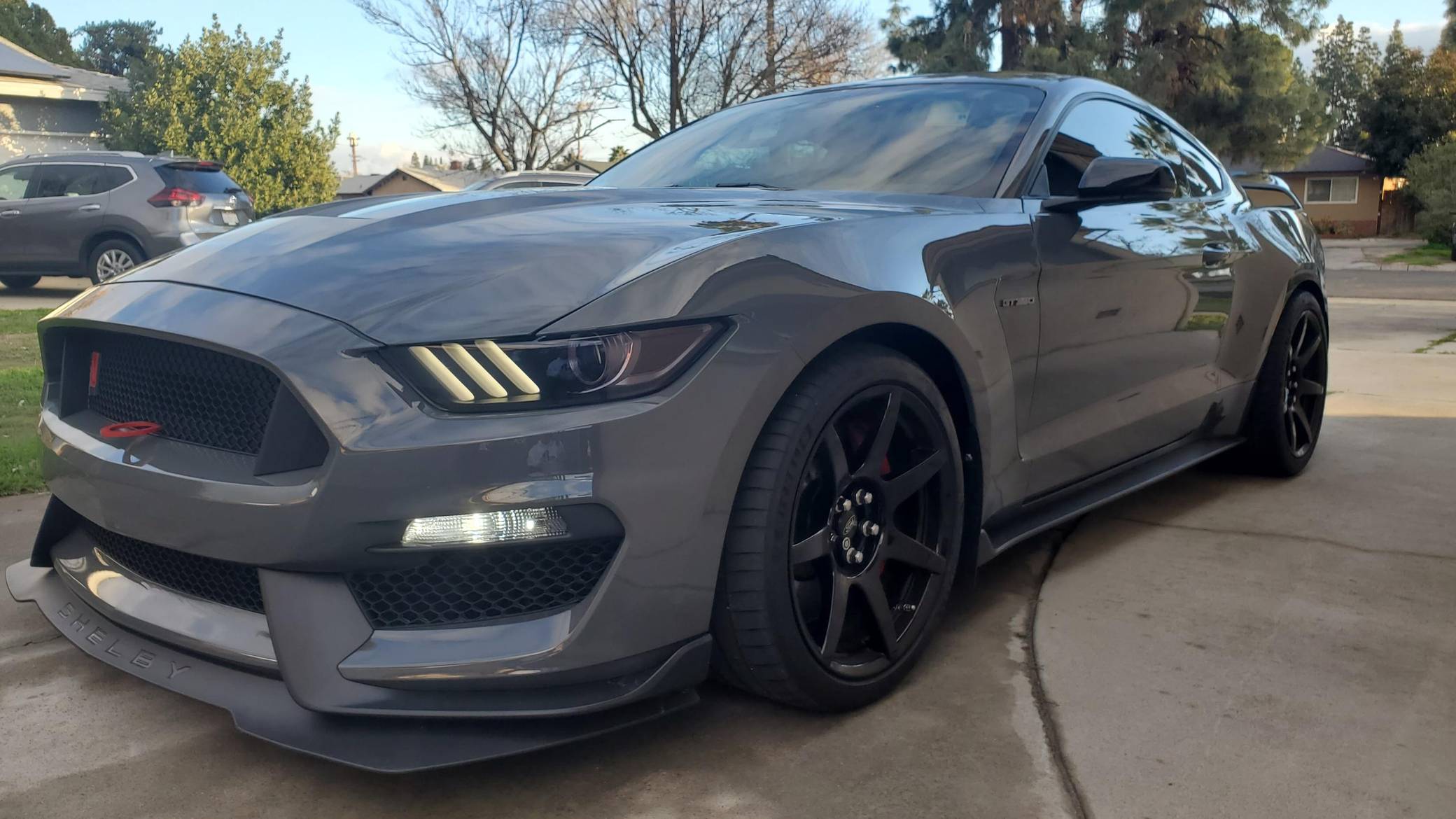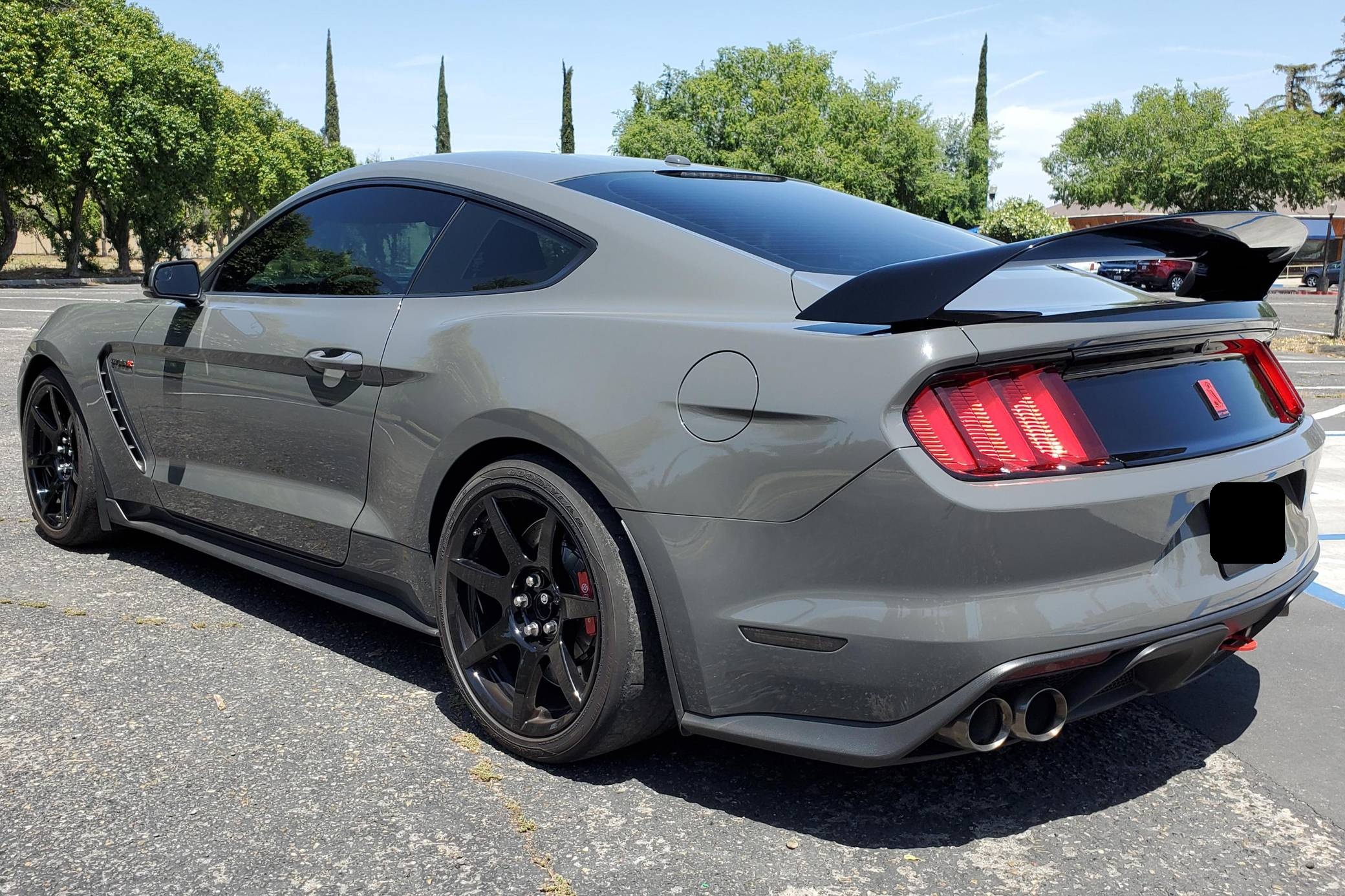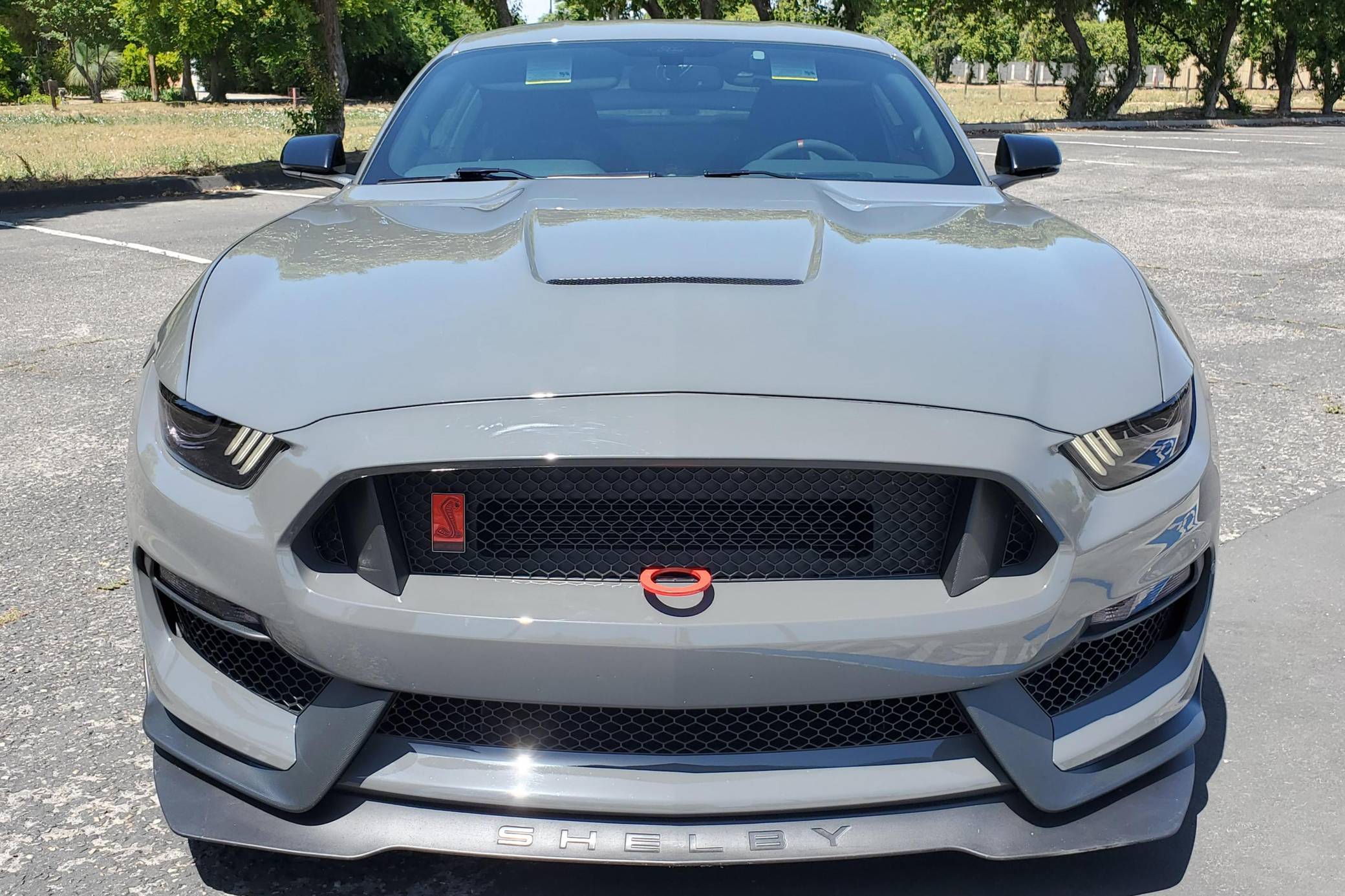 2018 Ford Mustang Shelby GT350R, finished in Lead Foot Gray with an Ebony interior. This GT350R features the 6-speed manual transmission, and its odometer currently indicates approximately 16,500 miles. According to the Mustang Fan Club, this GT350R is 1 of 23 cars built in Lead Foot Gray with no stripes for 2018. Factory equipment includes the R-Electronics Package (dual-zone automatic climate control, SYNC 3 infotainment system with 8-inch touch screen, navigation system, 9-speaker sound system, rear-view camera, auxiliary gauges), a MagneRide damping system, Brembo brakes, Recaro front sport seats, an Alcantara-wrapped steering wheel, launch control, and more as detailed below. Modifications to this Shelby are limited to Vorshlag camber plates, front and rear tow hooks, and Rokblokz mud flaps. The Shelby GT350R variant of the "S550" Ford Mustang is a track-focused performance car benchmarked against competitors like the Chevrolet Camaro Z/28 and the Porsche 911 GT3. Compared to the standard GT350, it has improved grip, less weight, a more aggressive aerodynamic body kit, and it's the first mass-produced road car to come stock with carbon fiber wheels, resulting in a highly competent muscle car for the track. Power comes from a flat-plane crank "Voodoo" 5. 2-liter V8 engine, rated at 526 horsepower and 429 lb-ft of torque. Output is sent to the rear wheels via a 6-speed manual transmission.