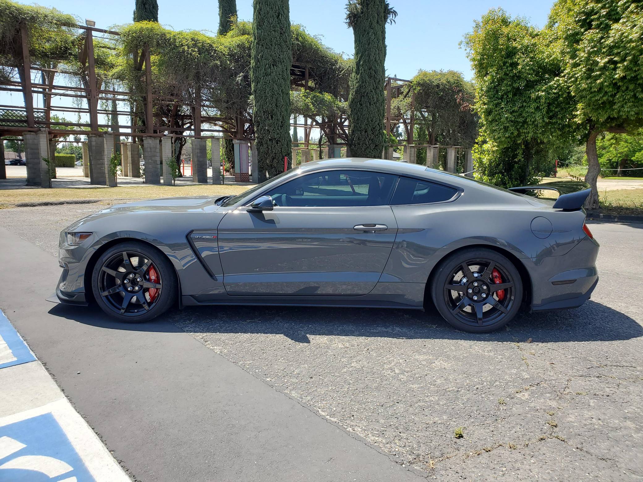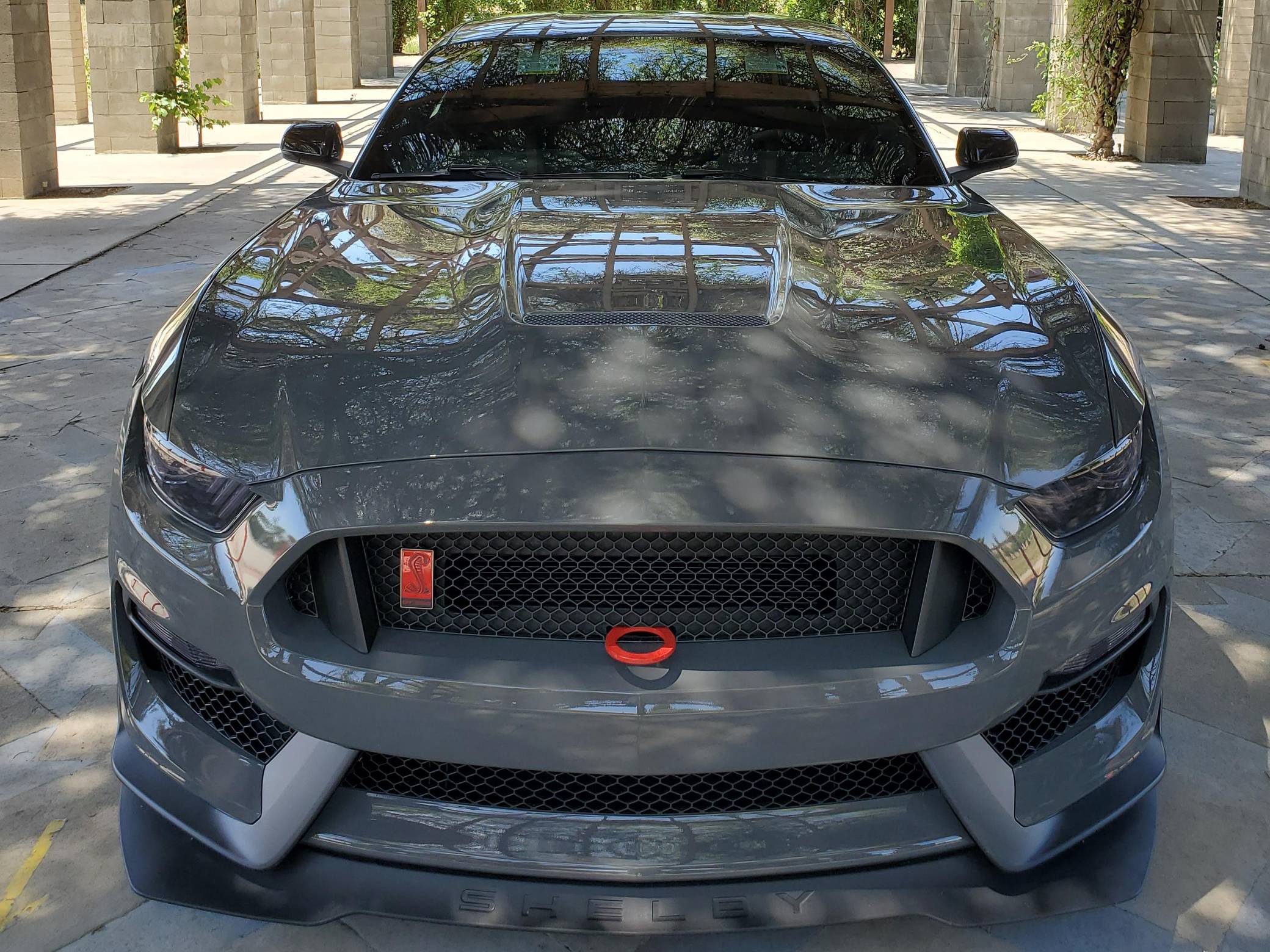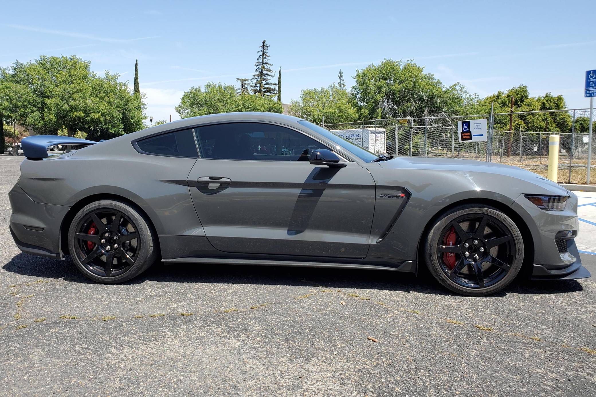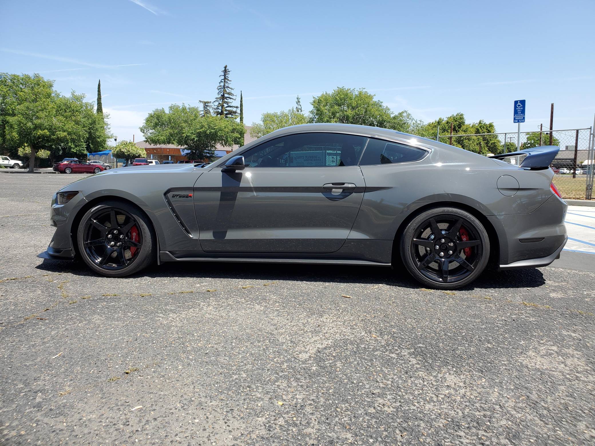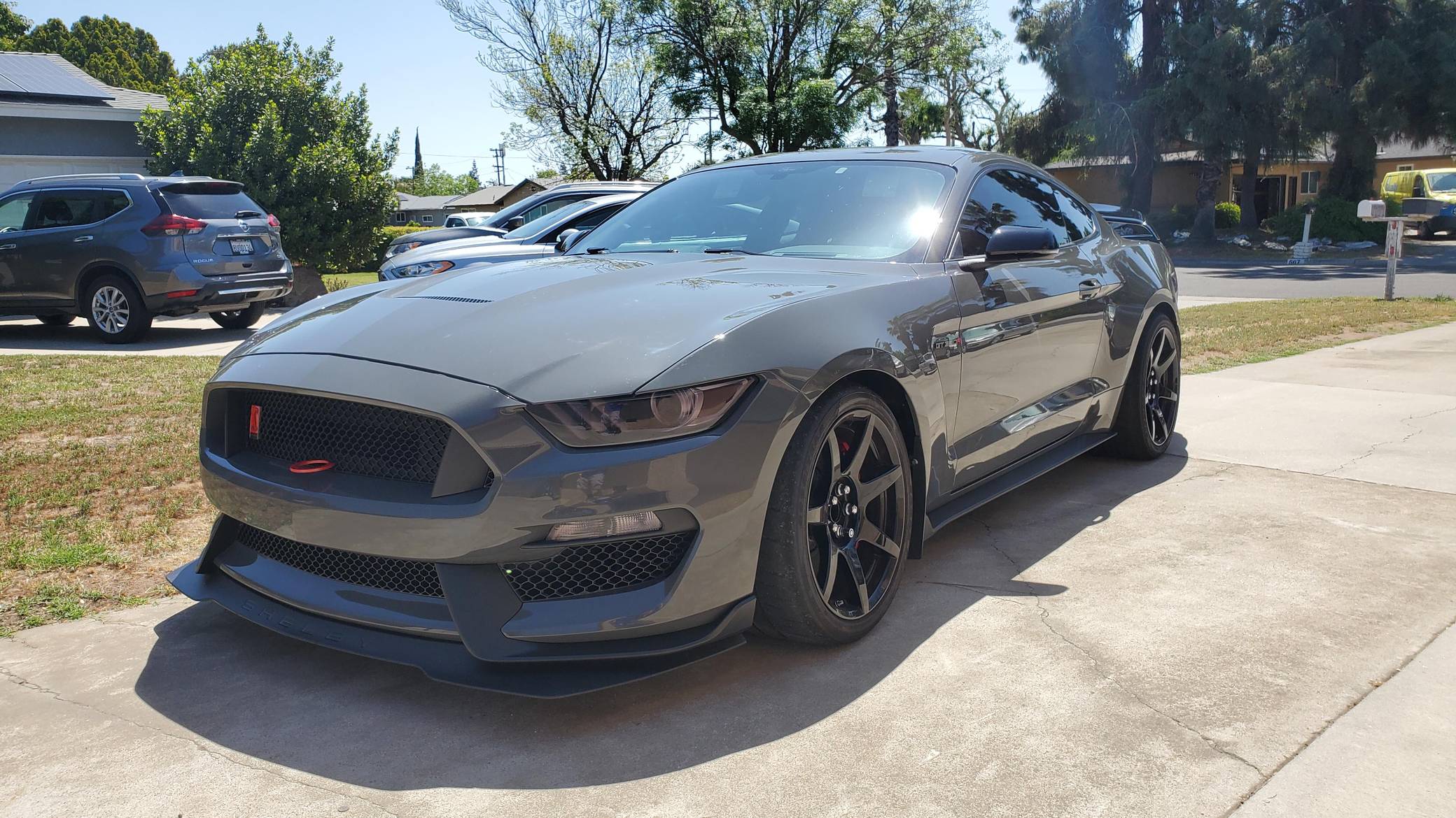 2018 Ford Mustang Shelby GT350R, finished in Lead Foot Gray with an Ebony interior. This GT350R features the 6-speed manual transmission, and its odometer currently indicates approximately 16,500 miles. According to the Mustang Fan Club, this GT350R is 1 of 23 cars built in Lead Foot Gray with no stripes for 2018. Factory equipment includes the R-Electronics Package (dual-zone automatic climate control, SYNC 3 infotainment system with 8-inch touch screen, navigation system, 9-speaker sound system, rear-view camera, auxiliary gauges), a MagneRide damping system, Brembo brakes, Recaro front sport seats, an Alcantara-wrapped steering wheel, launch control, and more as detailed below. Modifications to this Shelby are limited to Vorshlag camber plates, front and rear tow hooks, and Rokblokz mud flaps. The Shelby GT350R variant of the "S550" Ford Mustang is a track-focused performance car benchmarked against competitors like the Chevrolet Camaro Z/28 and the Porsche 911 GT3. Compared to the standard GT350, it has improved grip, less weight, a more aggressive aerodynamic body kit, and it's the first mass-produced road car to come stock with carbon fiber wheels, resulting in a highly competent muscle car for the track. Power comes from a flat-plane crank "Voodoo" 5. 2-liter V8 engine, rated at 526 horsepower and 429 lb-ft of torque. Output is sent to the rear wheels via a 6-speed manual transmission.
