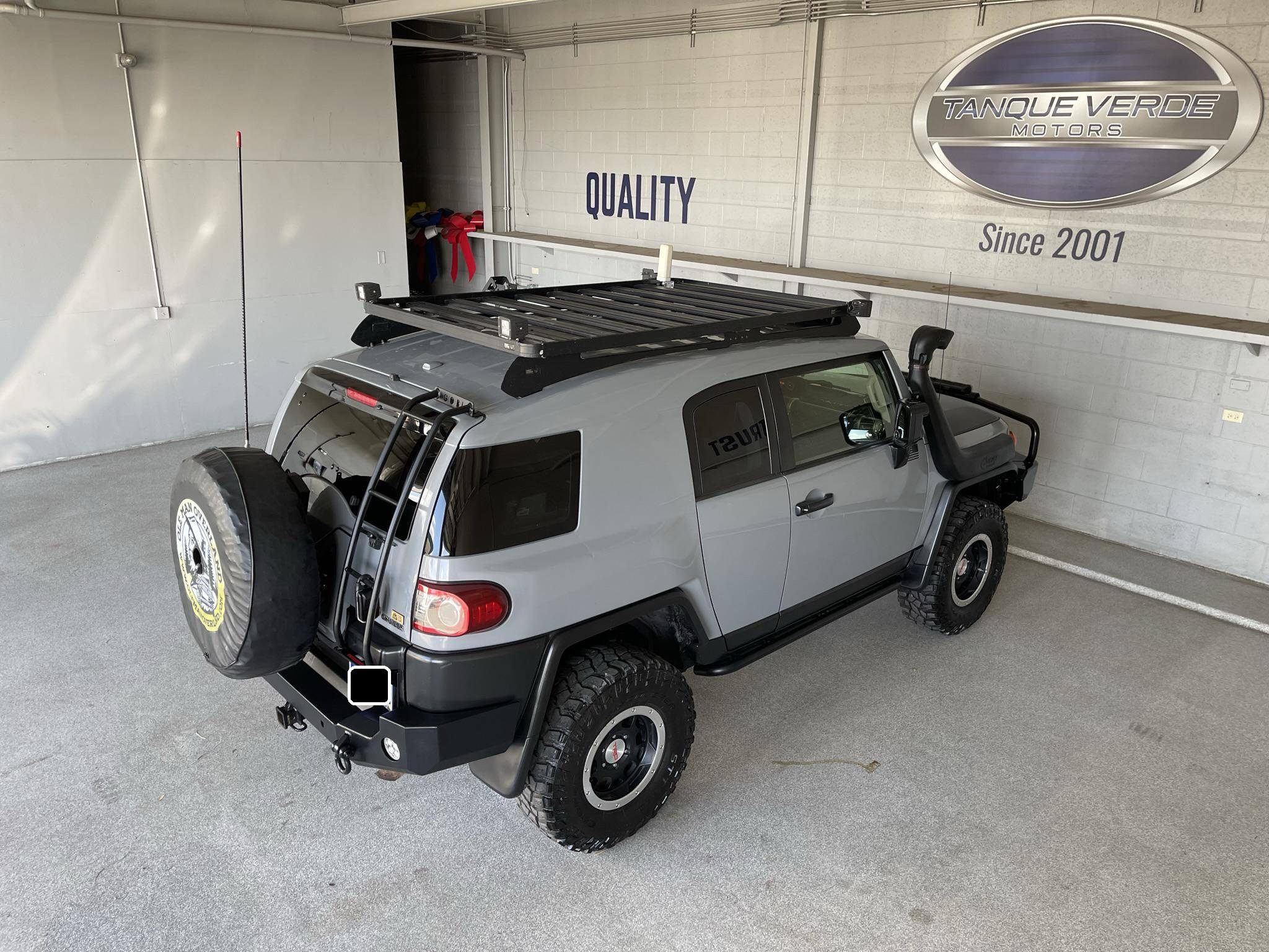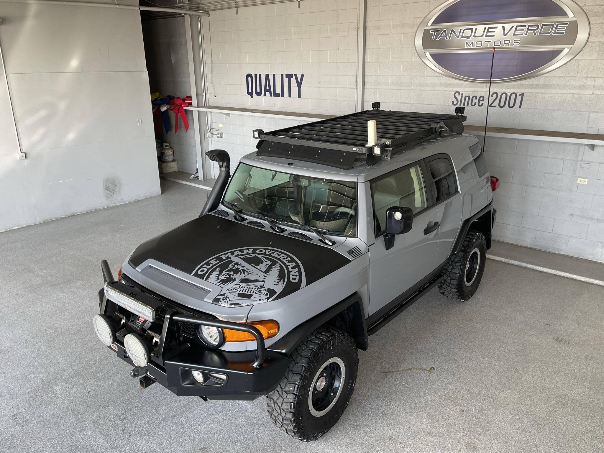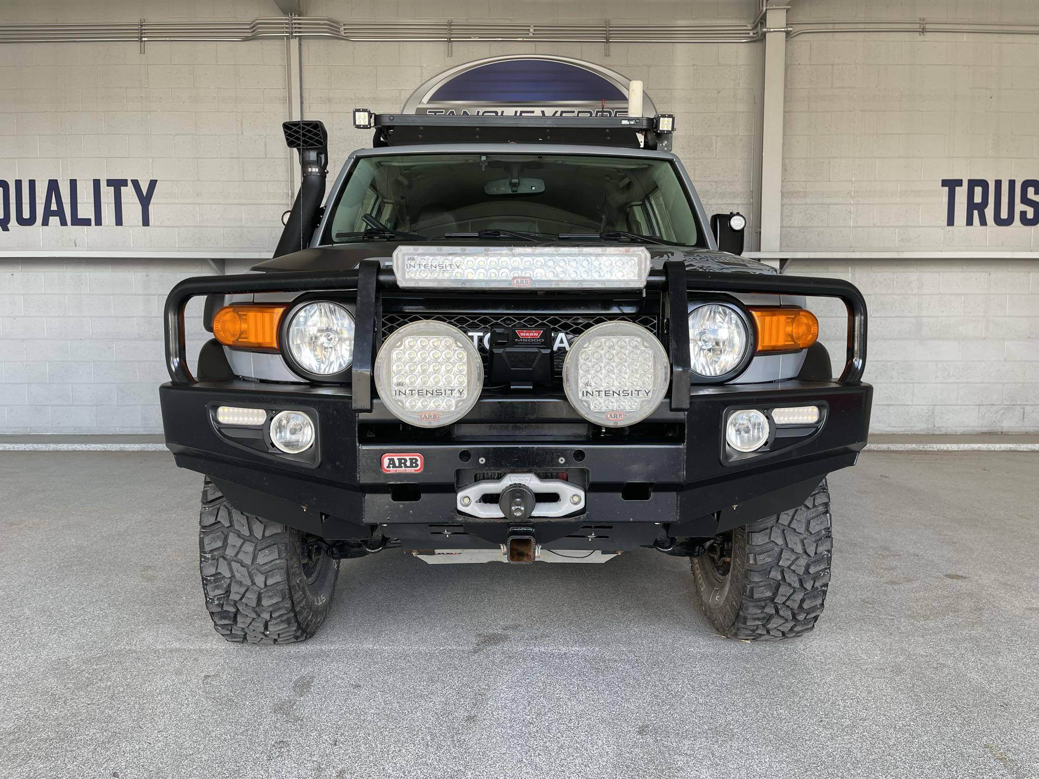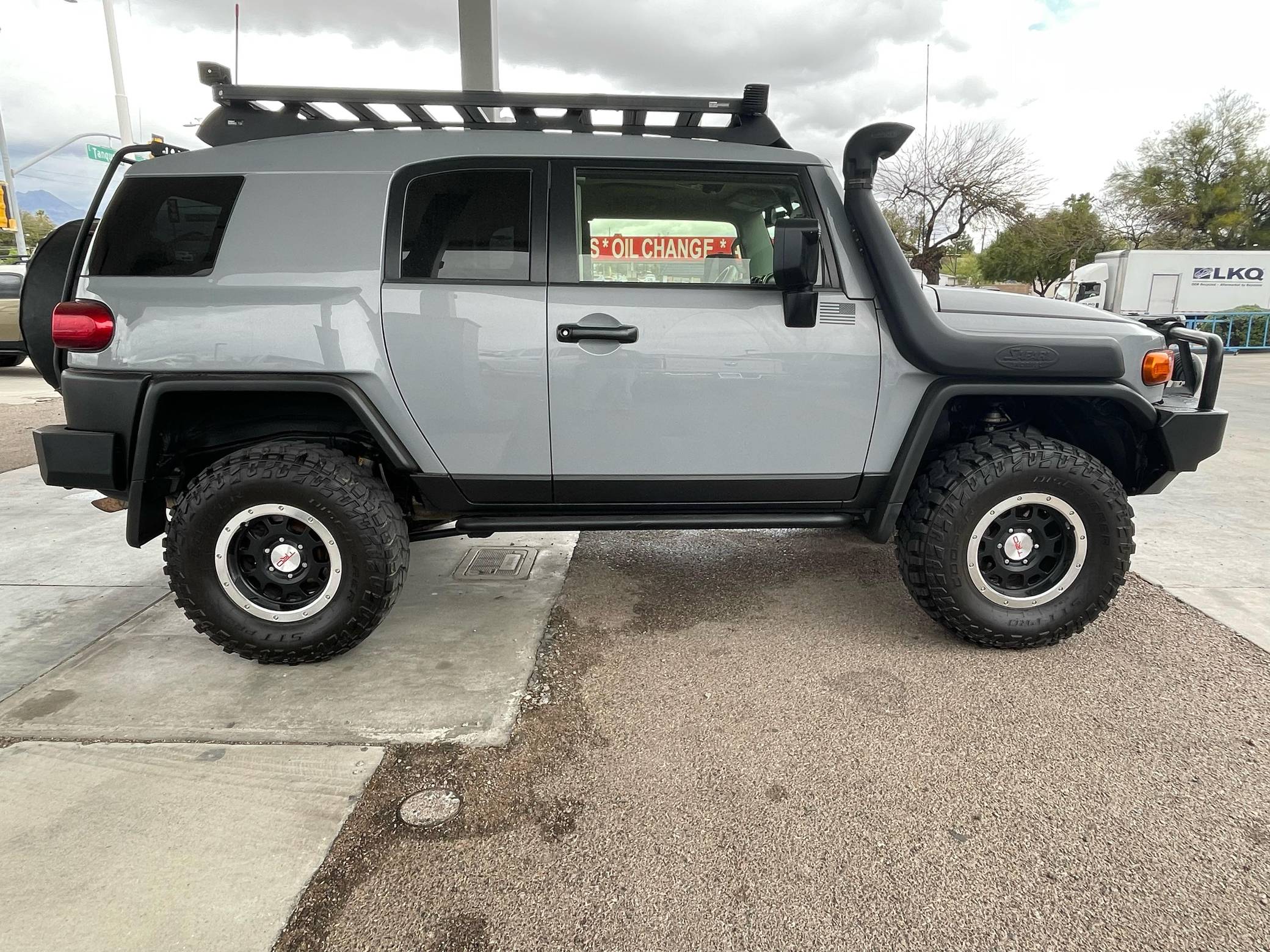 THIS. . . is a 2013 Toyota FJ Cruiser Trail Teams Special Edition, finished in Cement Gray with a black interior. Equipment includes the Trail Team package (A-TRAC traction control, rock rails, blackout body trim, and color-matched fabric seat inserts), a locking rear differential, rear-hinged rear doors, water-resistant upholstery, power windows, locks, and mirrors, a dash-mounted inclinometer, compass, and thermometer, stability control, and more as detailed below. A partial list of modifications reported by the seller includes a set of 16-inch TRD alloy wheels, Old Man Emu BP51 shocks, an Air Lift suspension system, ARB skid plates, an ARB front winch bumper, an ARB Safari snorkel, Expedition One rear bumper, an Overland solar charge controller, a WeBoost Drive 4G-X cell phone signal booster, and a Cobra remote start system. The FJ Cruiser was the modern throwback to Toyota roots with the FJ40 Land Cruisers. This FJ Cruiser was assembled in Japan as a body-on-frame truck-style design. It shares many structural underpinnings with the Toyota Land Cruiser Prado, and FJ Cruiser production ended for the North American market in 2014. Power comes from the "1GR-FE" 4. 0-liter V6, which produces 260 horsepower and 271 lb-ft of torque. The engine is mated to a 5-speed automatic transmission and a 4-wheel-drive system with a 2-speed transfer case.