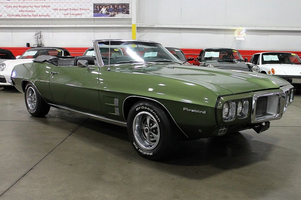 The 1st generation of Camaro's and Firebirds were GM's answer to the Ford Mustang creating the desire for the pony car market. Unlike the Camaro, the bumpers were integrated in to the front end with a very unique “Coke bottle” styling. Although the Firebird moniker lived on in to the new millennium, 1969 models are thought of as the pinnacle of the line. This Firebird convertible is a stunner in Verdoro Green. The chrome accents contrast beautifully with this updated paint job. The dash is all original in appearance with the original radio. There is a CD player in a wooden case on the center console that can be easily removed if all stock is your objective. The black vinyl interior and black convertible top are in excellent condition. This Firebird is powered by the original 350ci V8 (that was professionally in 2003) paired with a 3-speed manual transmission. It features power steering, power convertible top, and power brakes. This car runs great and is a lot of fun to drive for top down muscle car fun. Check out the underneath photos that show how solid this classic truly is. It doesn't get any better on a nice day than dropping the top on this beast! Why wouldn't you want this in your garage? Who doesn't enjoy being the coolest person pulling up to a bbq?