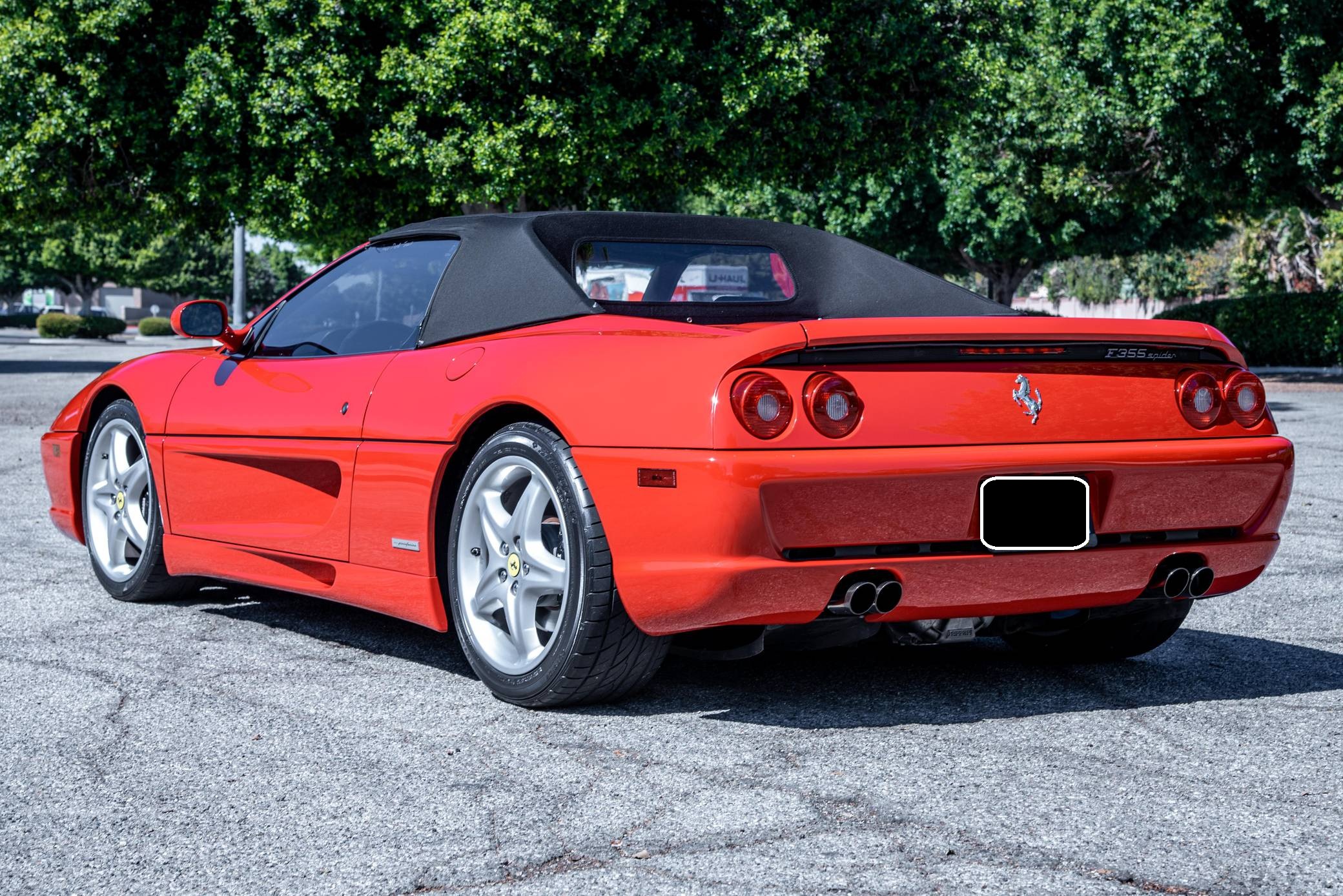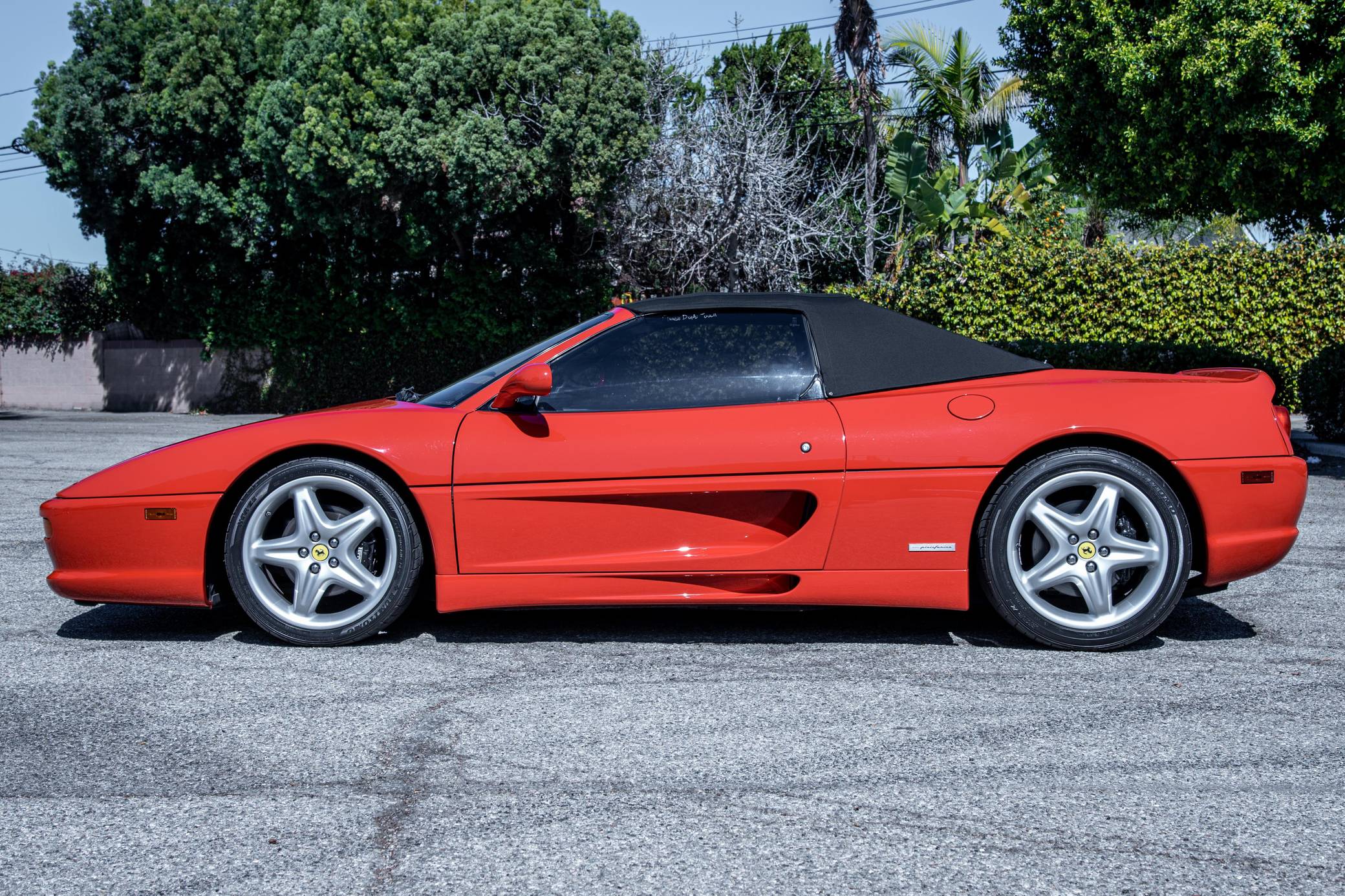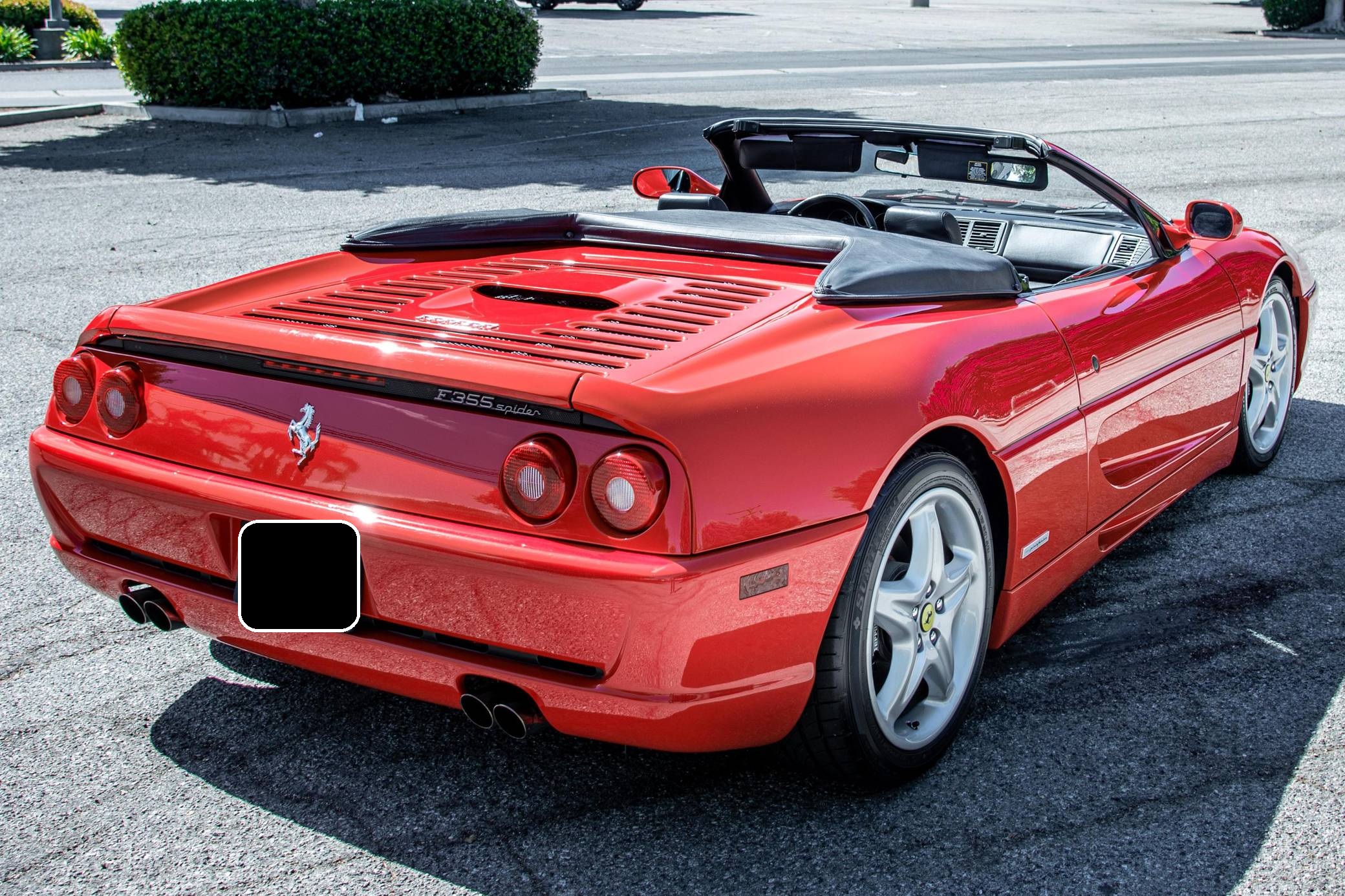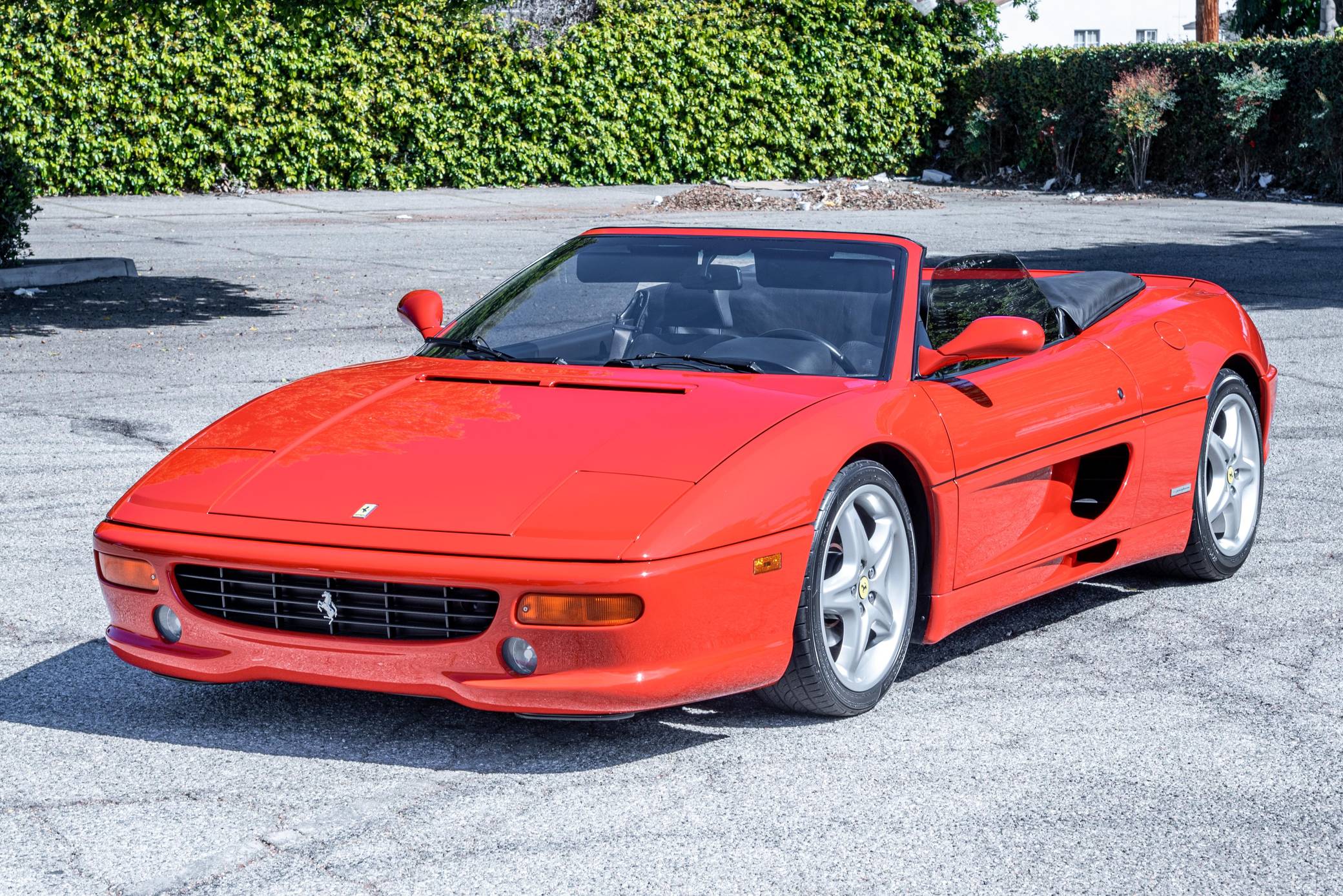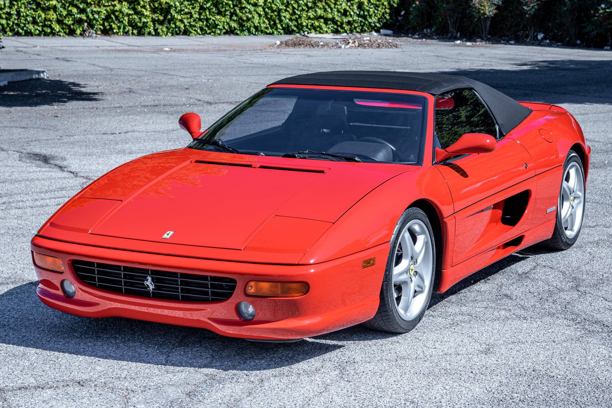 THIS. . . is a 1995 Ferrari F355 Spider, finished in Rosso Corsa with a black soft top and a black interior. This F355 is equipped with the desirable gated 6-speed manual transmission, and its odometer displays about 30,400 miles. It also shows that this Ferrari was Florida-owned until 2021, when it moved to California. Factory equipment includes 18-inch wheels, pop-up headlights, fog lights, leather upholstery, power-operated windows, and power-adjustable door mirrors, among others listed below. Modifications reported by the seller are limited to a Capristo exhaust system, tinted windows, a Ferrari-branded fire extinguisher, and an Alpine head unit. Ferrari introduced the Pininfarina-designed F355 as a coupe for 1995 to replace the 348, and the range later grew to include Spider and GTS variants. Buyers and road testers unanimously agreed it was a major improvement over its predecessor. Ferrari made a Formula 1-style automatic transmission available for the 1998 model year, and F355 production ended after 1999. It was replaced by the 360 Modena. Power for this F355 comes from the "F129C" 3. 5-liter V8, rated at 375 horsepower and 268 lb-ft of torque. Mid-mounted, it spins the rear wheels via a gated 6-speed manual transmission.