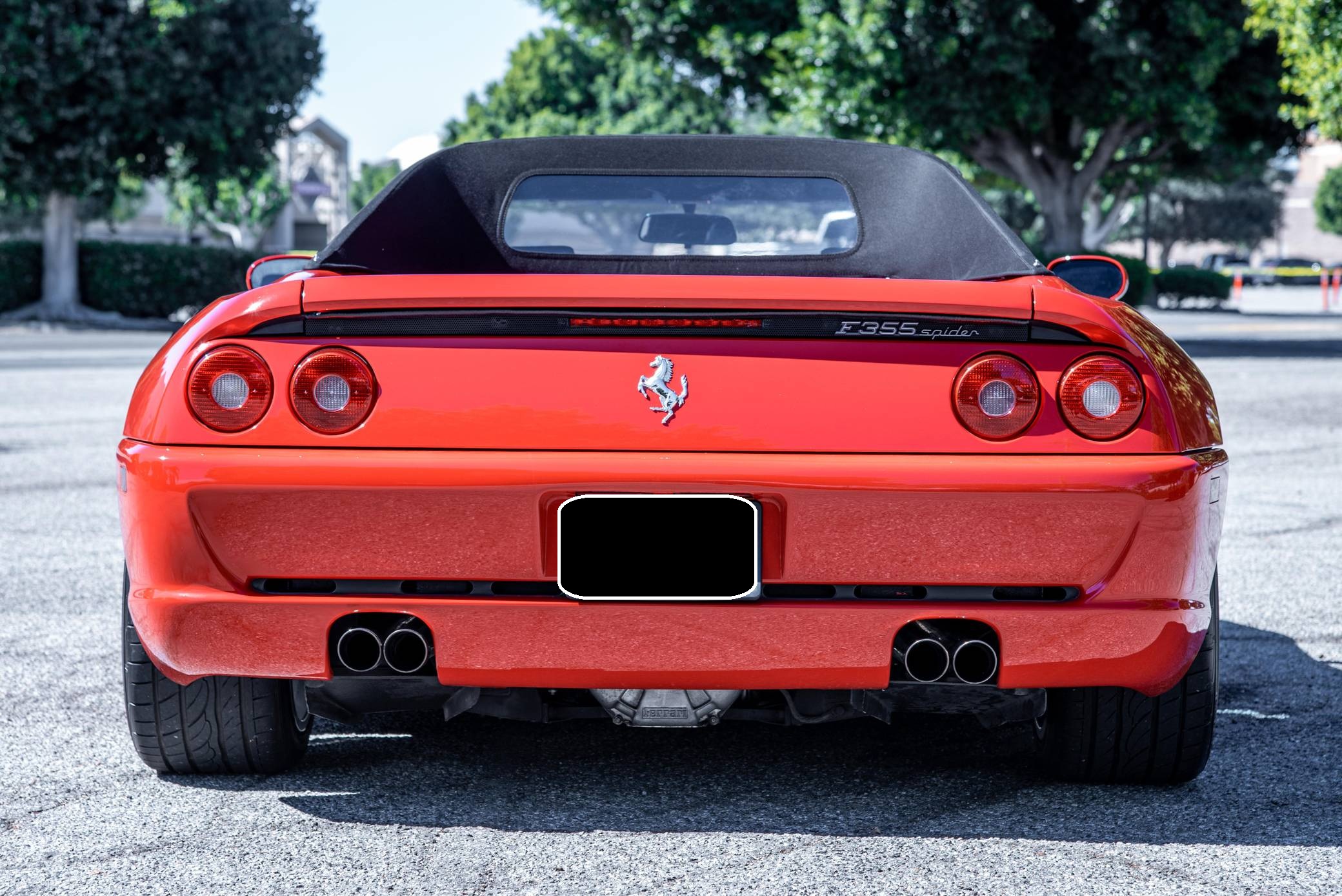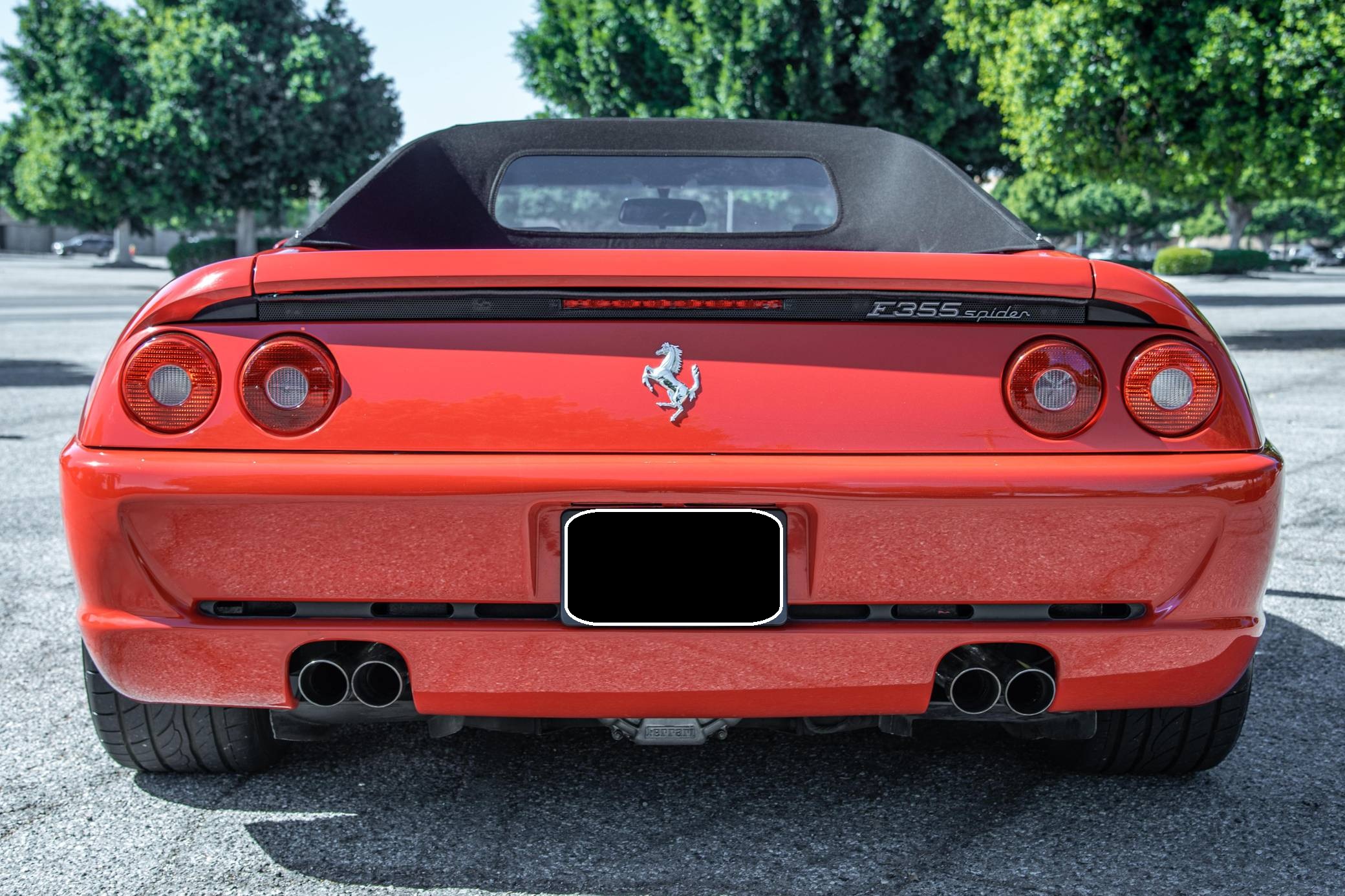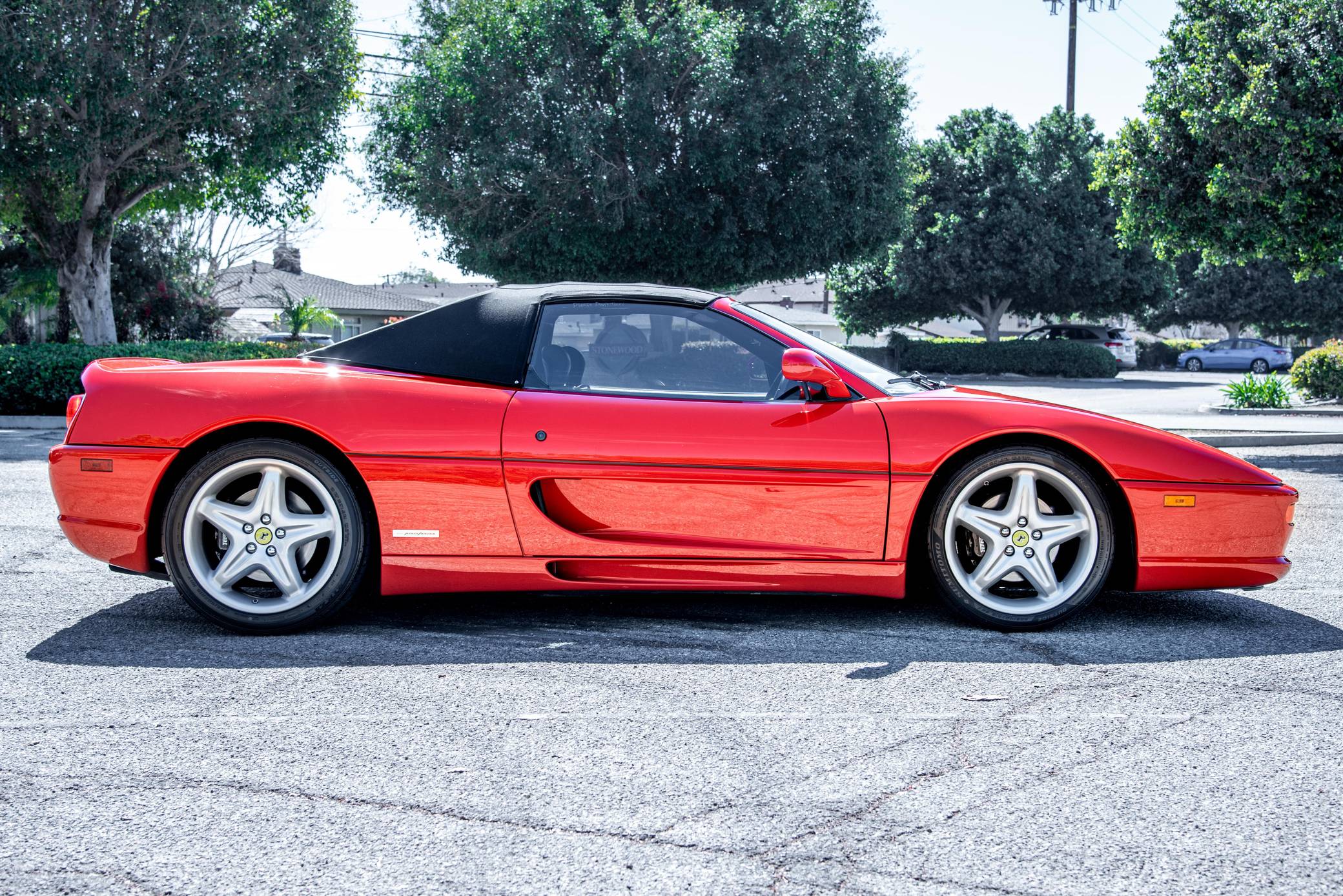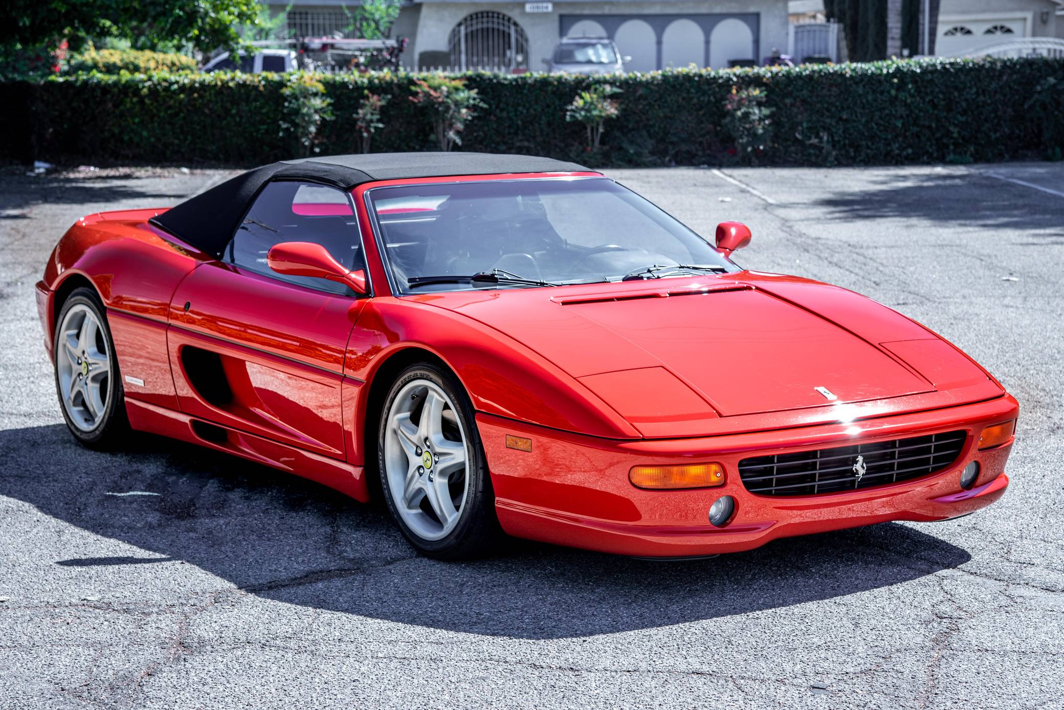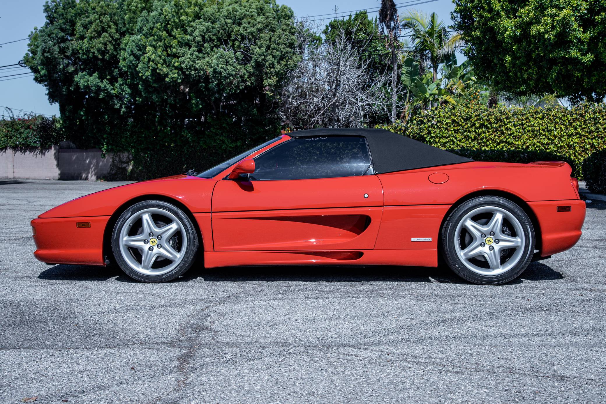 THIS. . . is a 1995 Ferrari F355 Spider, finished in Rosso Corsa with a black soft top and a black interior. This F355 is equipped with the desirable gated 6-speed manual transmission, and its odometer displays about 30,400 miles. It also shows that this Ferrari was Florida-owned until 2021, when it moved to California. Factory equipment includes 18-inch wheels, pop-up headlights, fog lights, leather upholstery, power-operated windows, and power-adjustable door mirrors, among others listed below. Modifications reported by the seller are limited to a Capristo exhaust system, tinted windows, a Ferrari-branded fire extinguisher, and an Alpine head unit. Ferrari introduced the Pininfarina-designed F355 as a coupe for 1995 to replace the 348, and the range later grew to include Spider and GTS variants. Buyers and road testers unanimously agreed it was a major improvement over its predecessor. Ferrari made a Formula 1-style automatic transmission available for the 1998 model year, and F355 production ended after 1999. It was replaced by the 360 Modena. Power for this F355 comes from the "F129C" 3. 5-liter V8, rated at 375 horsepower and 268 lb-ft of torque. Mid-mounted, it spins the rear wheels via a gated 6-speed manual transmission.