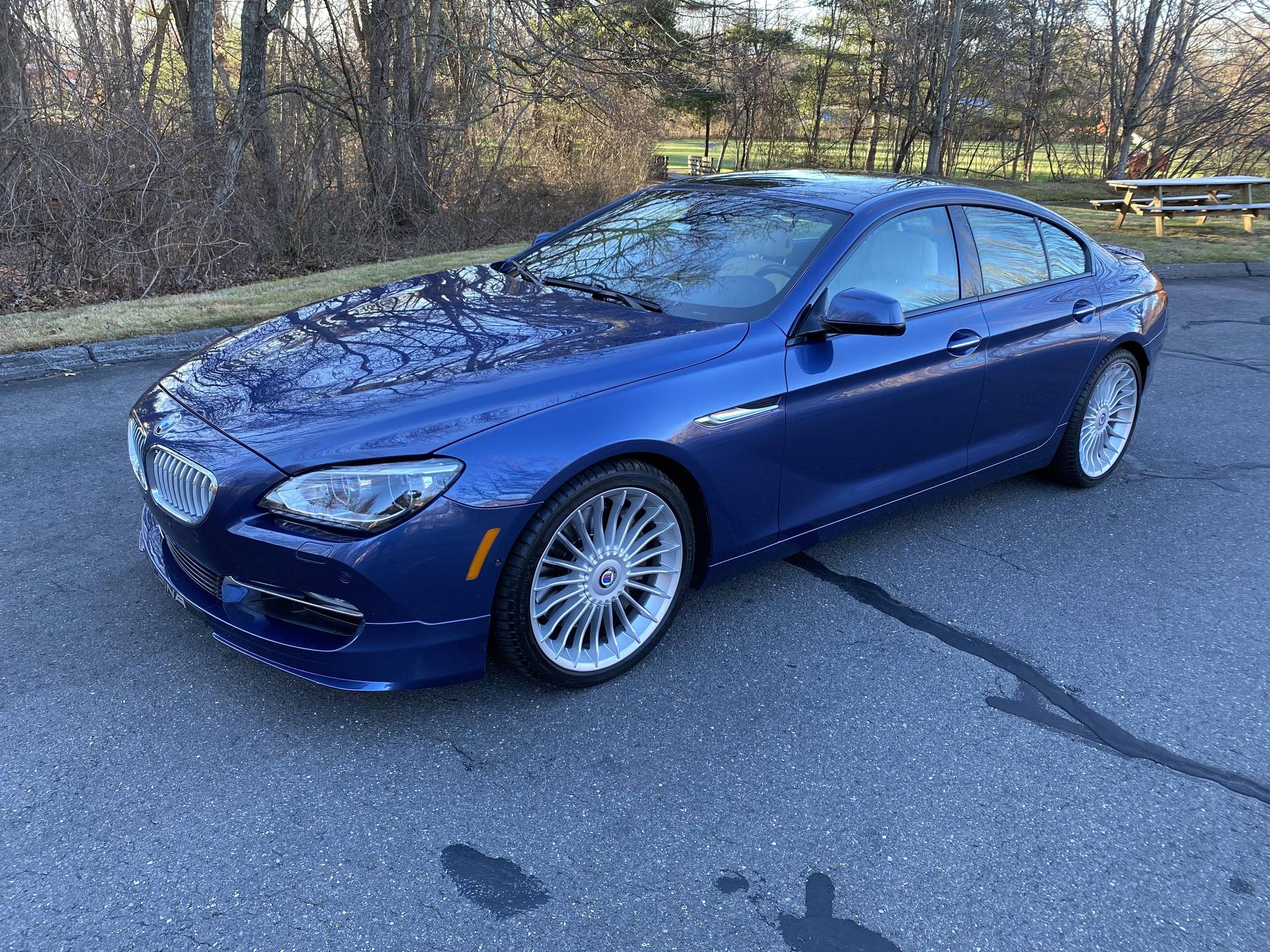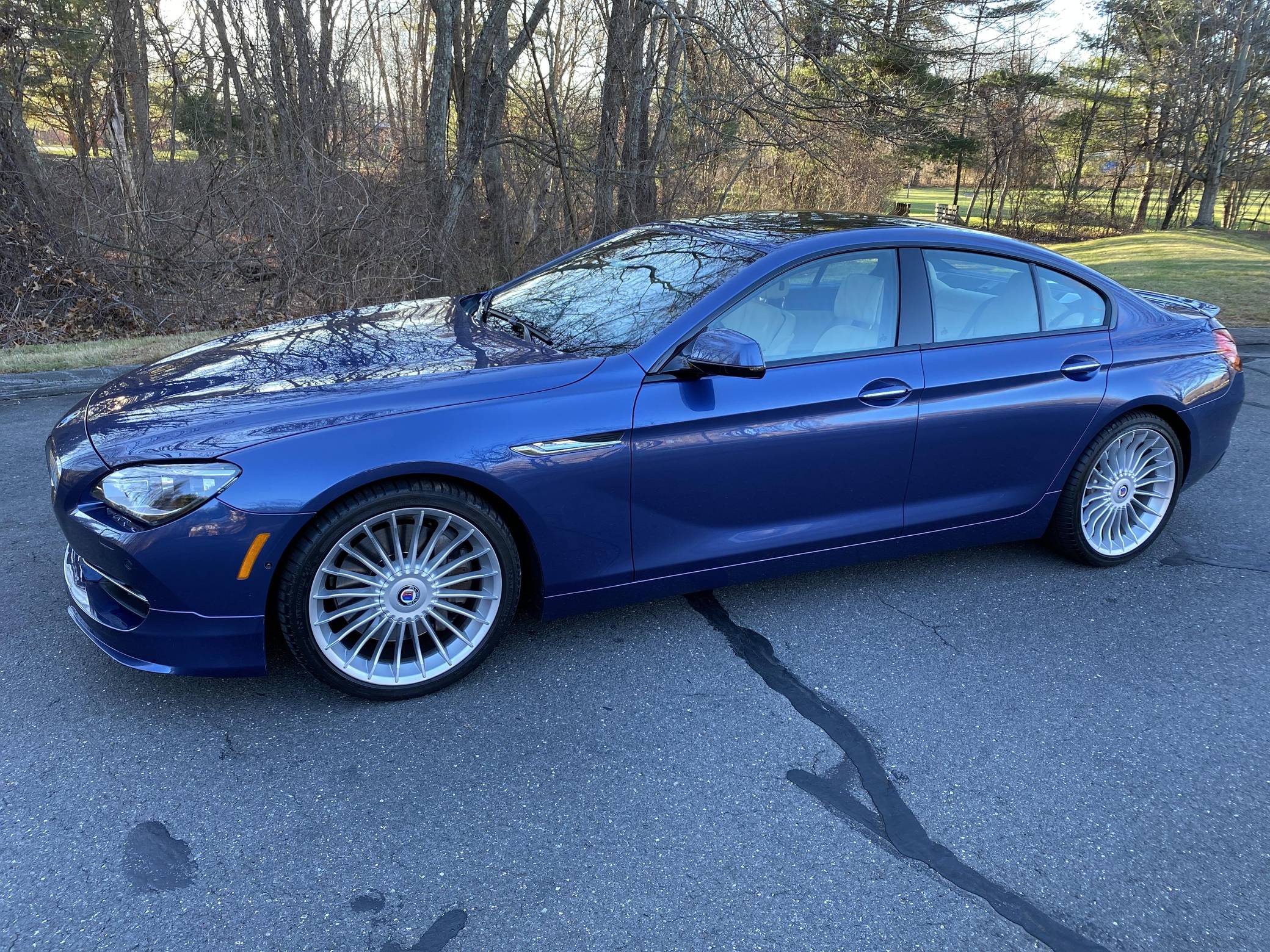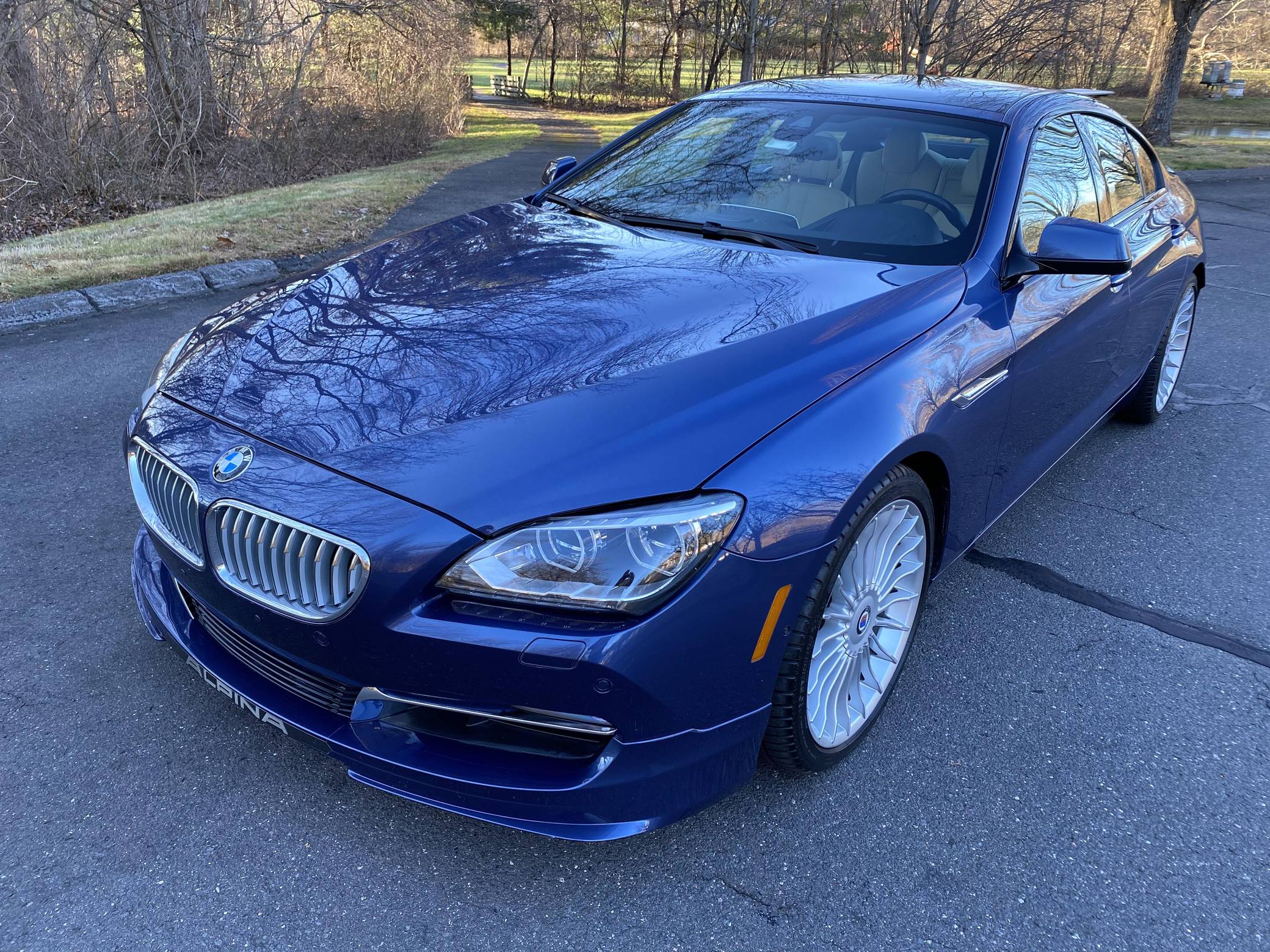 THIS… is a 2015 BMW Alpina B6 Gran Coupe, finished in Alpina Blue Metallic with a Champagne interior. Factory equipment includes the Executive and Driver Assistance Plus packages, 20-inch Alpina Classic wheels, Alpina-specific body kit, LED fog lights, a sunroof, extended Merino leather upholstery, piano lacquer wood interior trim, a Bang & Olufsen high end sound system, soft-close doors, and more as listed below. The sole modification reported by the seller is paint protection film on the front bumper. Alpina's take on the F06-generation BMW 6 Series Gran Coupe arrived in America for the 2015 model year. It was a quicker, more luxurious, and much rarer alternative to the 650i Gran Coupe it was based on, and it was sold in extremely limited numbers. Power comes from an "N63" turbocharged 4. 4-liter V8, rated at 540 horsepower and 540 lb-ft of torque. Output is sent to all four wheels via an 8-speed automatic transmission and BMW's xDrive permanent all-wheel-drive system.