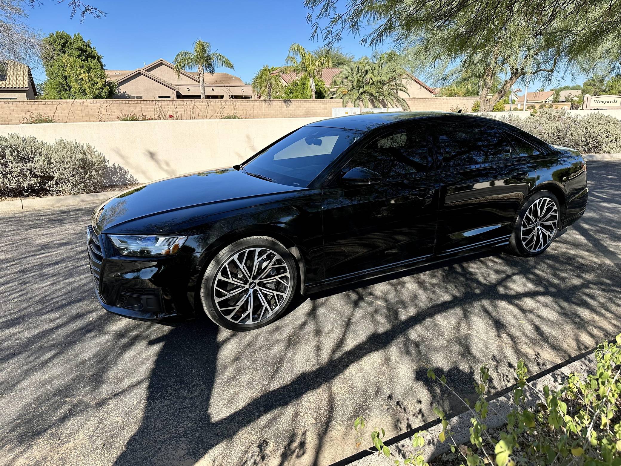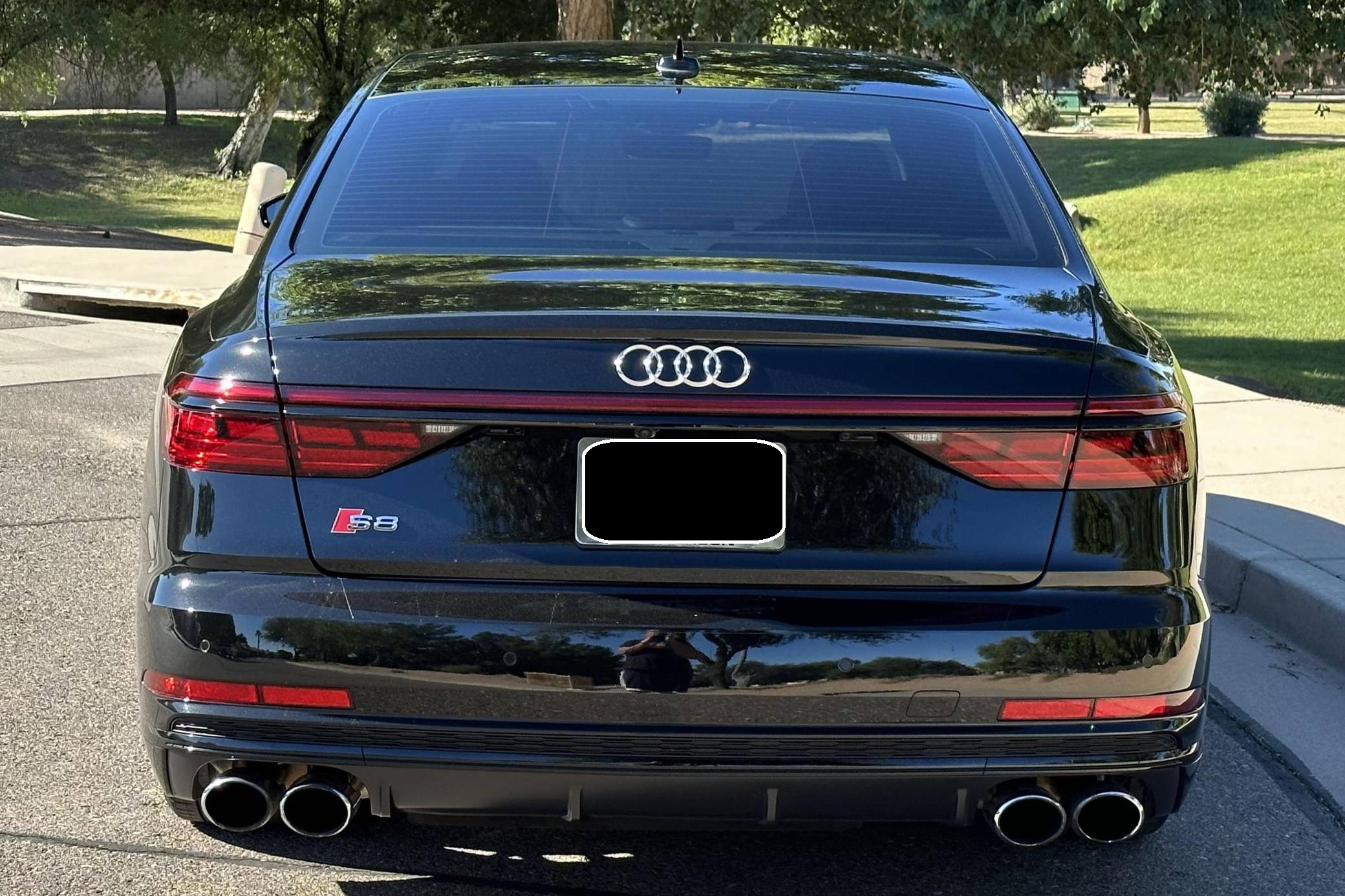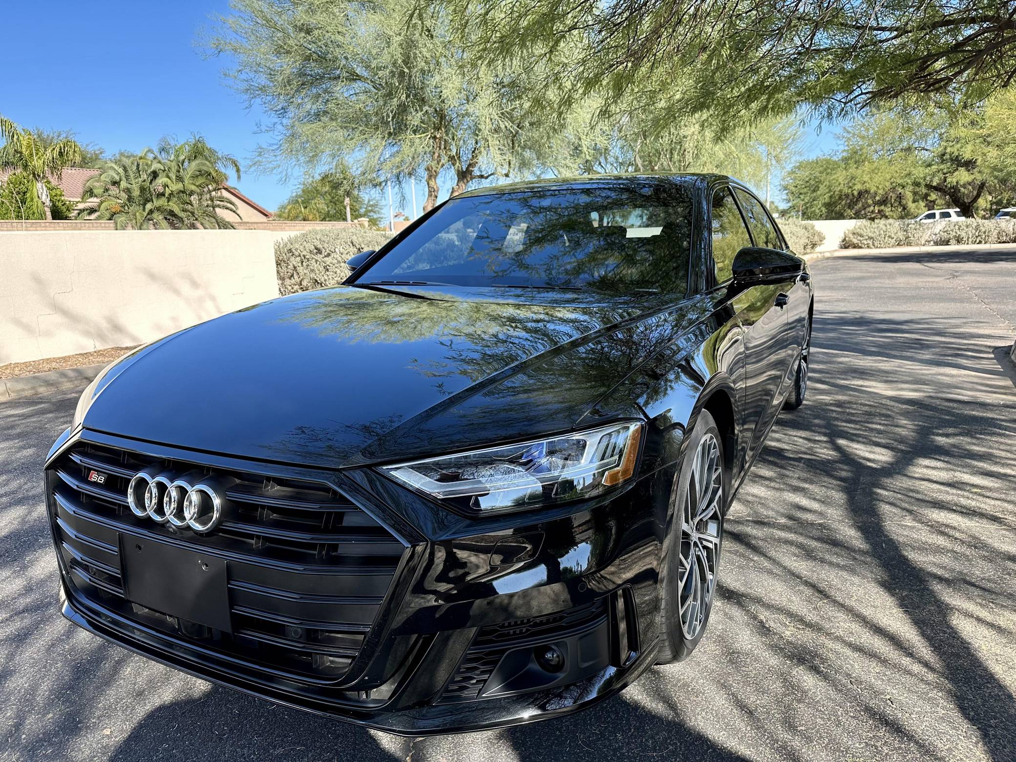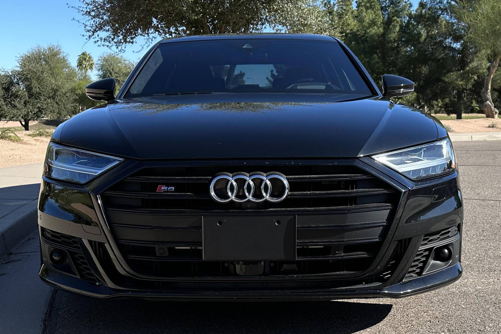 THIS. . . is a 2020 Audi S8, finished in Mythos Black Metallic with a black interior. Factory equipment includes the S8 Executive, Black Optic, Full Leather, and Cold Weather packages, 21-inch wheels, a predictive active suspension system, ceramic brakes, a dynamic four-wheel steering system, a Quattro sport differential, power-operated soft-close doors, heated, ventilated, and power-adjustable comfort front seats, a 23-speaker Bang & Olufsen 3D Advanced sound system, and a surround-view camera. Called "D5" internally, the fourth generation of Audi's full-size A8 sedan went on sale in North America for the 2019 model year. With no W12 option, the high-performance, V8-powered S8 found itself positioned at the top of the range, offering comfort, technology, blistering speed, and an uncommon degree of agility relative to its competitors. Production continues today. Power comes from a 4. 0-liter twin-turbocharged V8, rated at 563 horsepower and 590 lb-ft of torque. It spins the four wheels via an 8-speed automatic transmission.