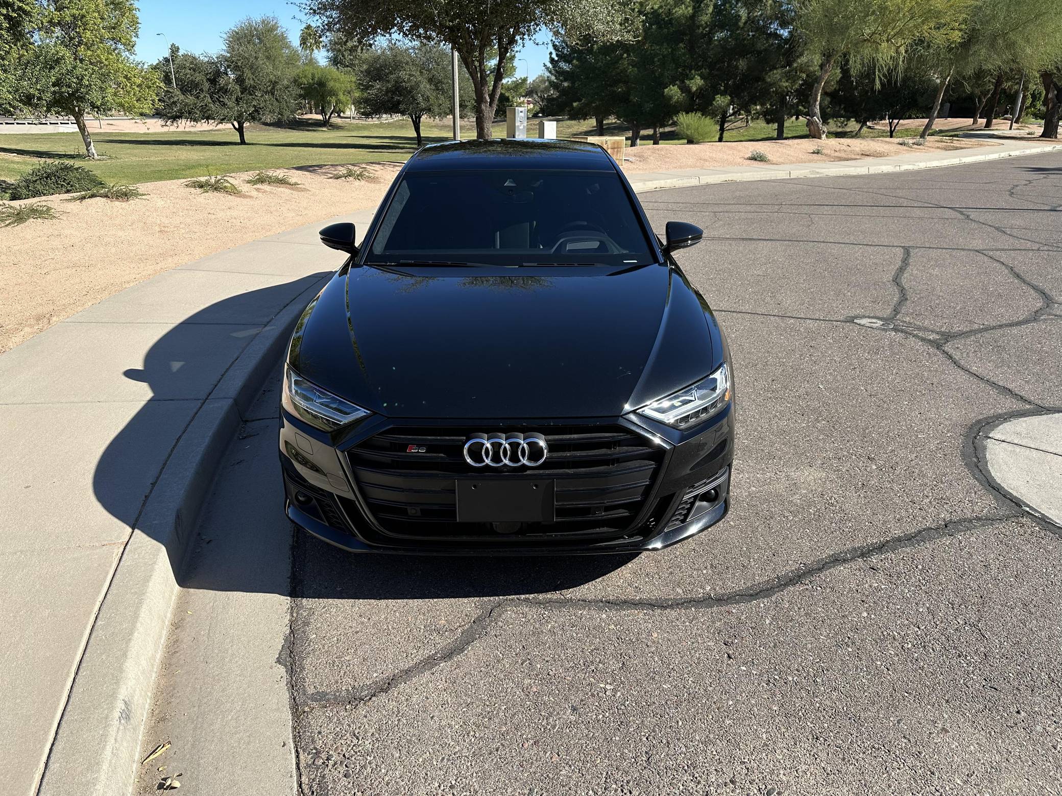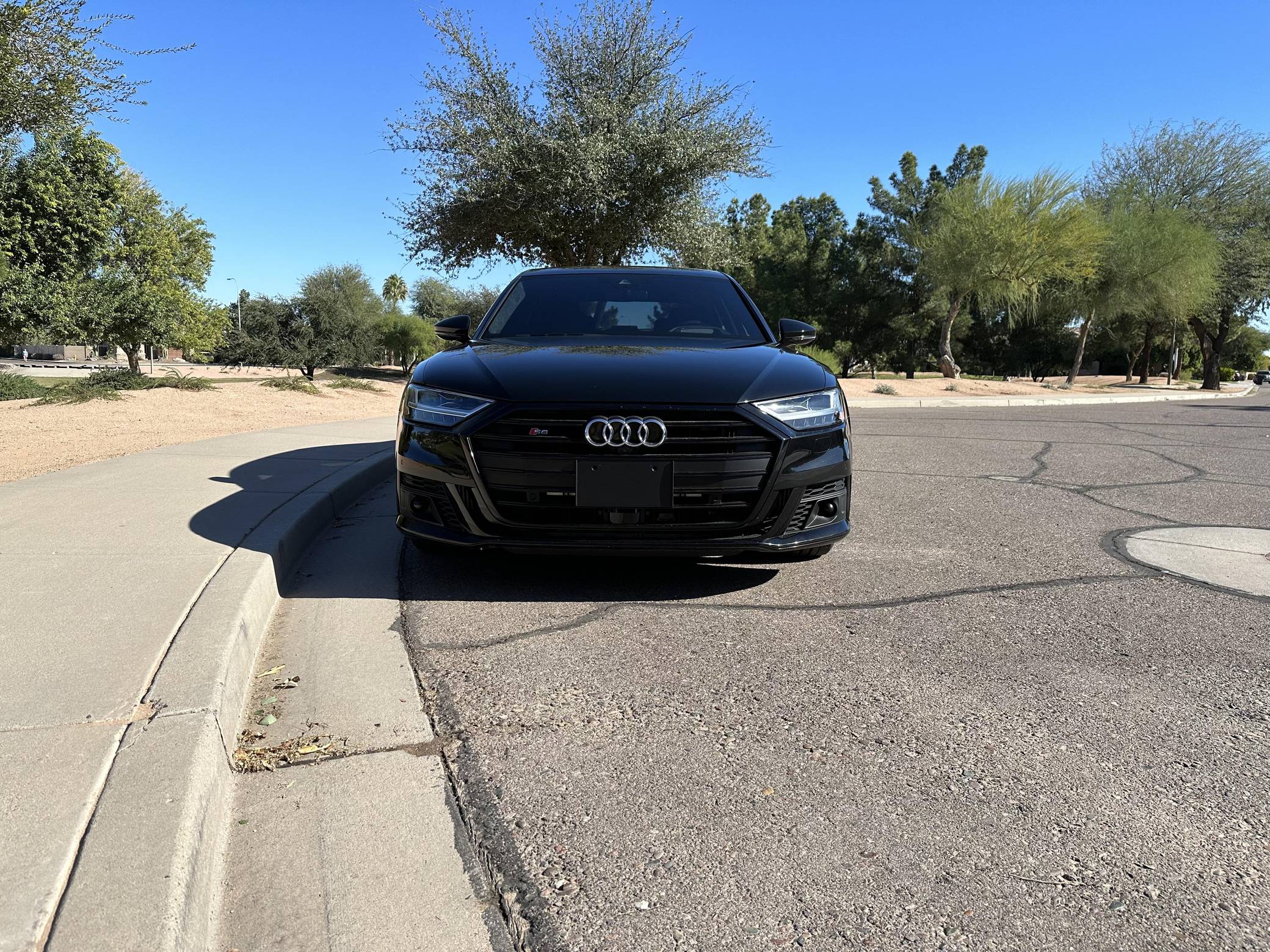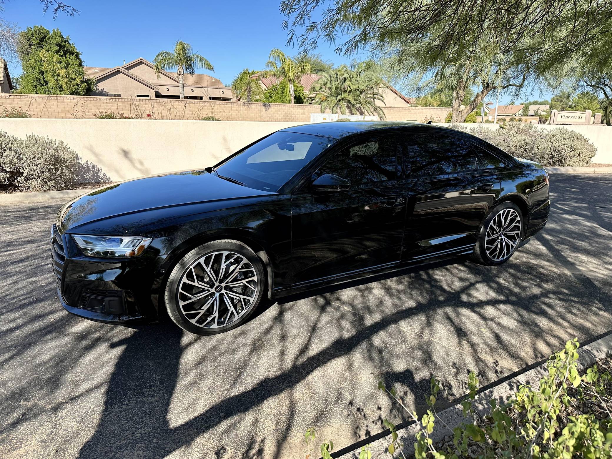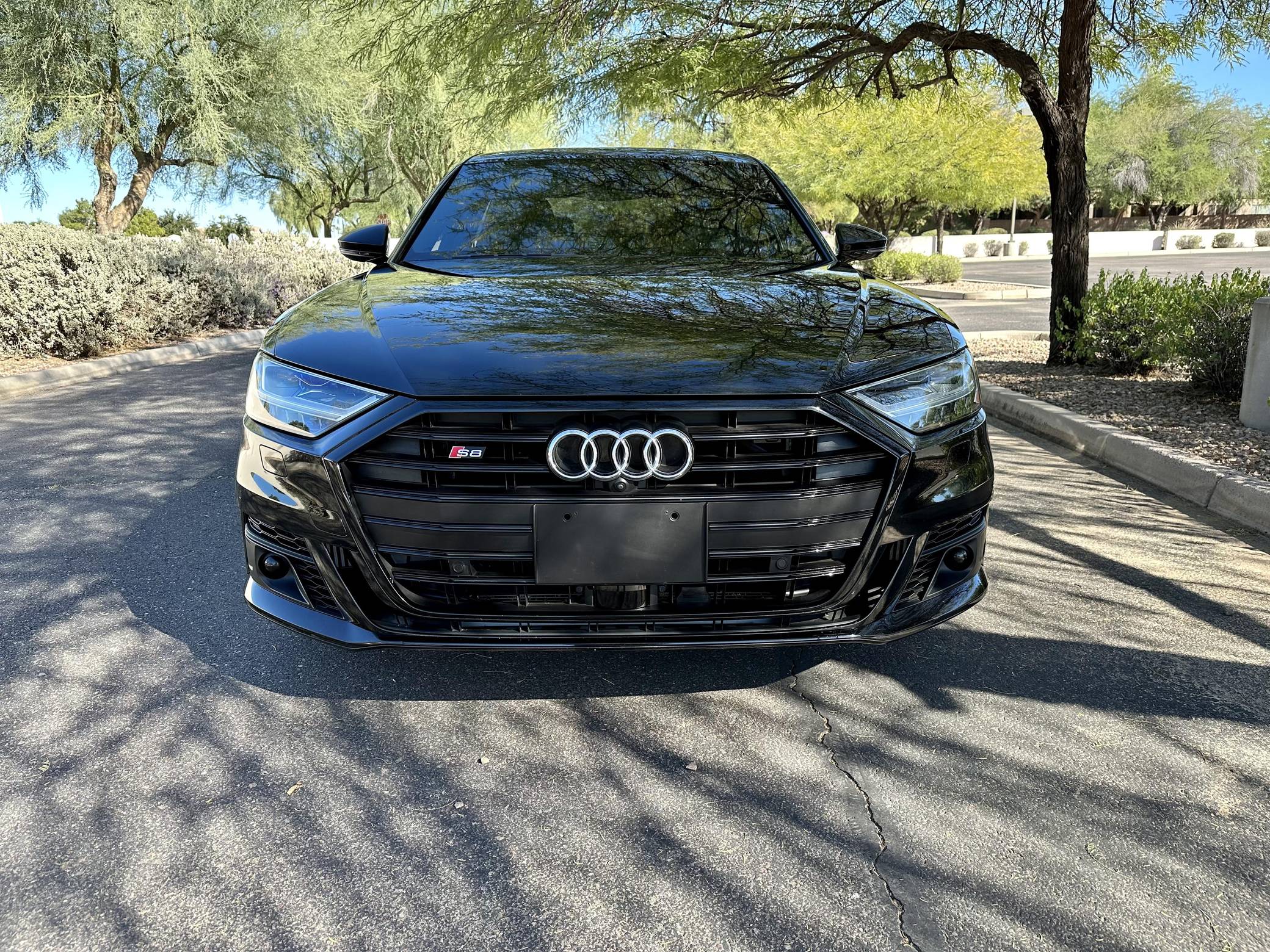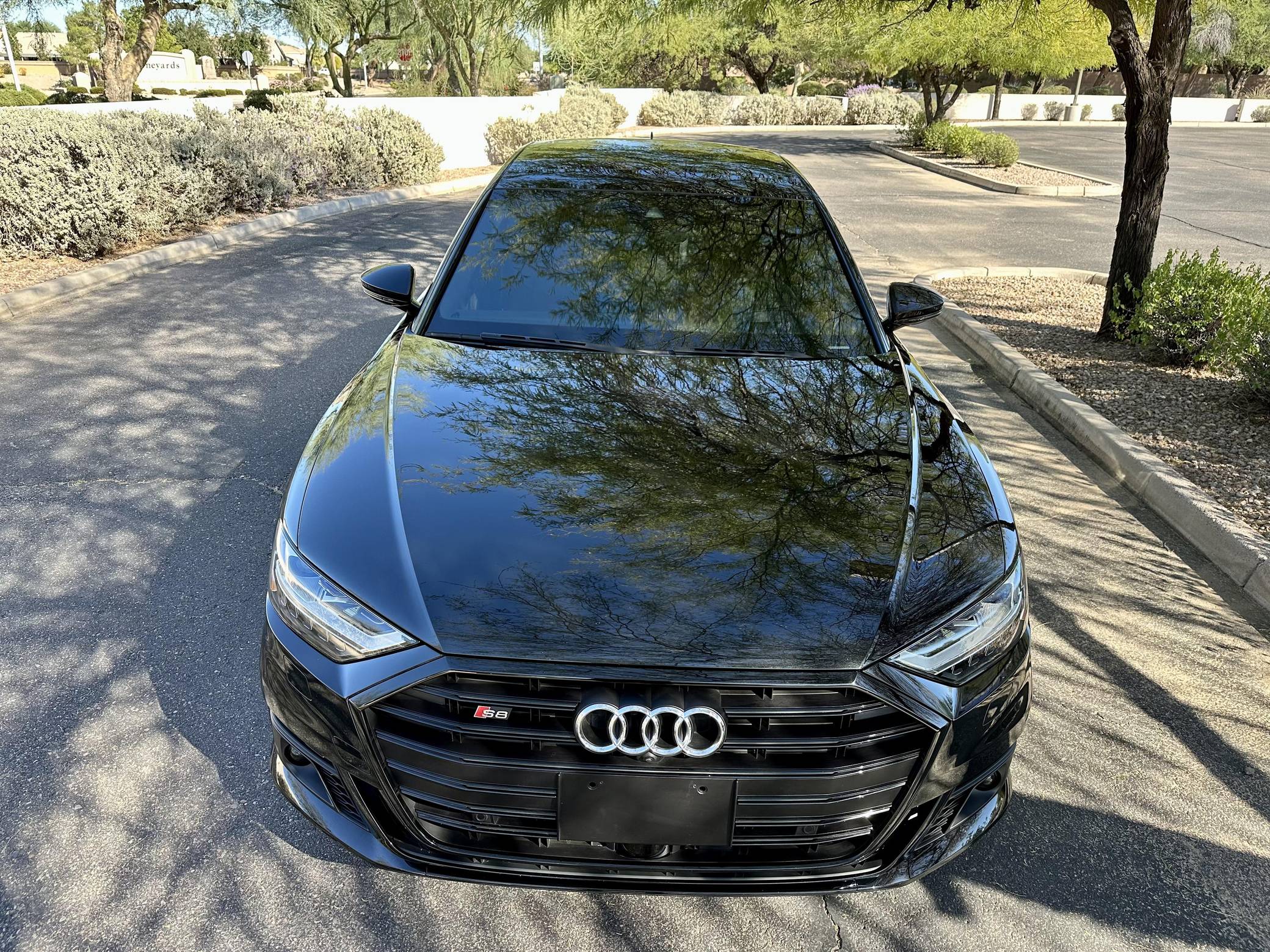 THIS. . . is a 2020 Audi S8, finished in Mythos Black Metallic with a black interior. Factory equipment includes the S8 Executive, Black Optic, Full Leather, and Cold Weather packages, 21-inch wheels, a predictive active suspension system, ceramic brakes, a dynamic four-wheel steering system, a Quattro sport differential, power-operated soft-close doors, heated, ventilated, and power-adjustable comfort front seats, a 23-speaker Bang & Olufsen 3D Advanced sound system, and a surround-view camera. Called "D5" internally, the fourth generation of Audi's full-size A8 sedan went on sale in North America for the 2019 model year. With no W12 option, the high-performance, V8-powered S8 found itself positioned at the top of the range, offering comfort, technology, blistering speed, and an uncommon degree of agility relative to its competitors. Production continues today. Power comes from a 4. 0-liter twin-turbocharged V8, rated at 563 horsepower and 590 lb-ft of torque. It spins the four wheels via an 8-speed automatic transmission.
