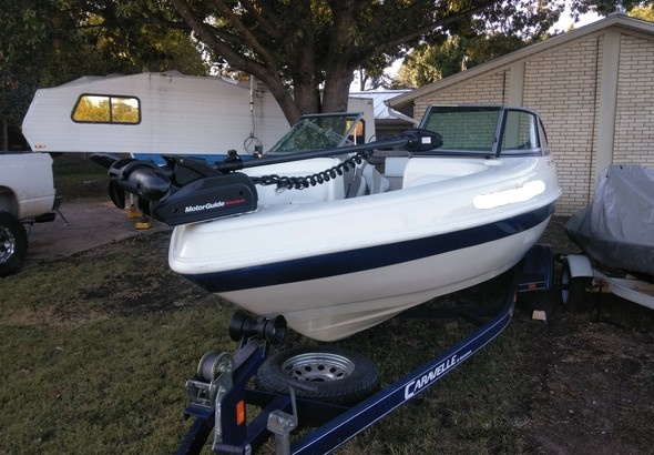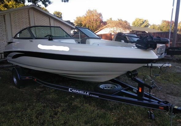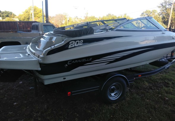 2012 Caravelle 202 FS BR model in great condition. Two-tone White and Blue fiberglass hull with a matching vinyl interior. Can sit 4 to 6 comfortably within as well! She is now ready for a Family for a day on the Lake, or take your friends fishing. It has also been set up for Fishing as well as Ski boat. Few Highlights include. AM.FM Radio Stereo, Both Fish & Depth Finders, Bimini Top, Trolling Motor, Live Bait Well.