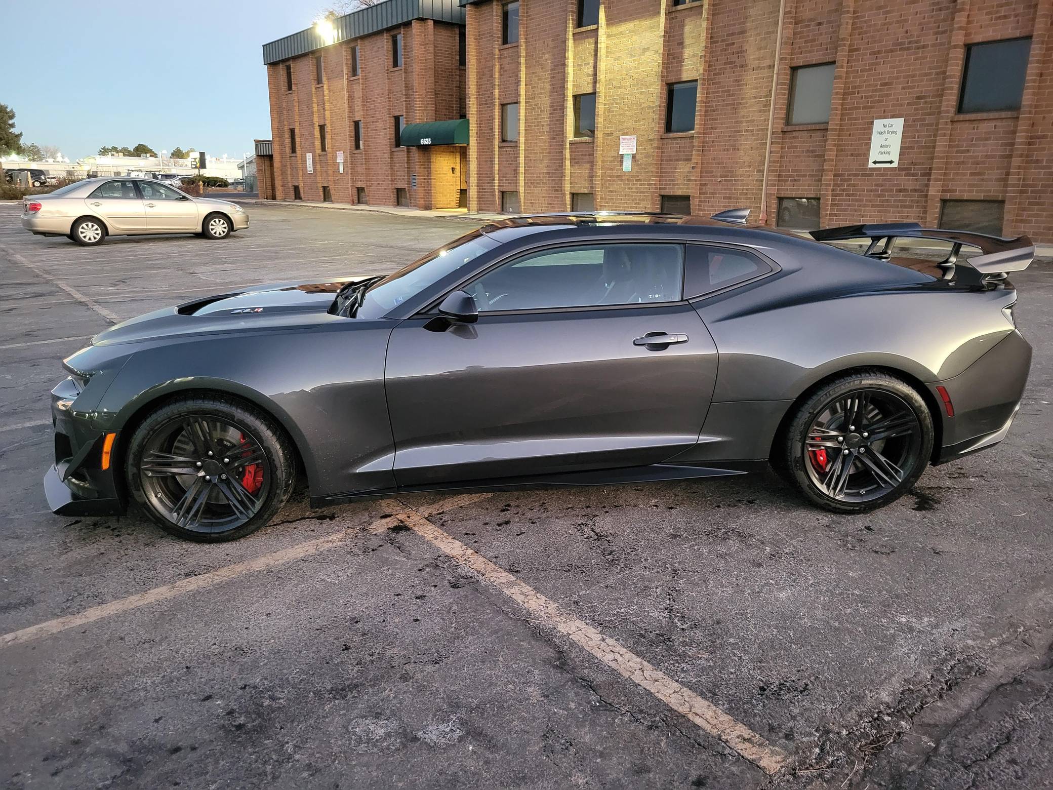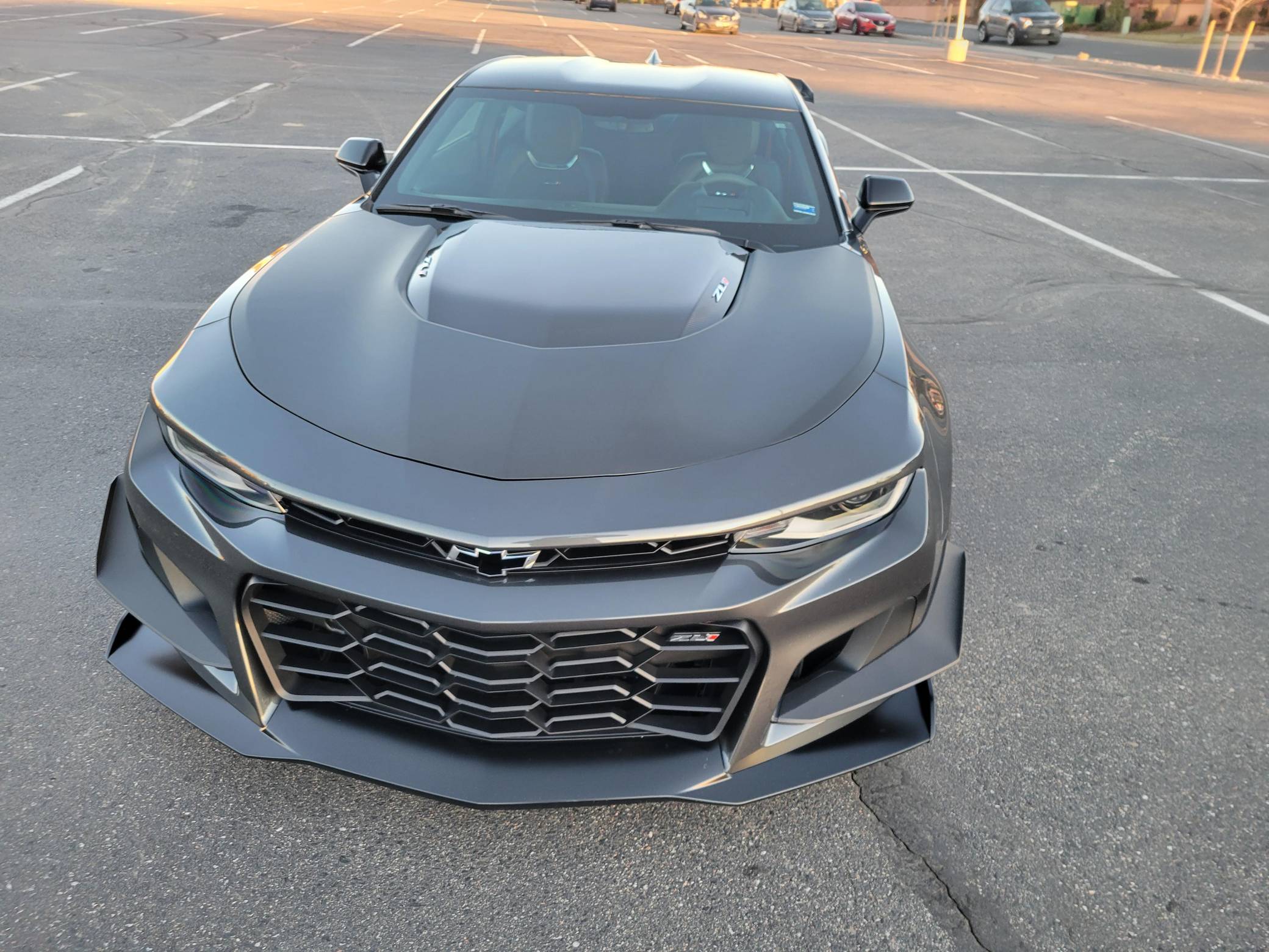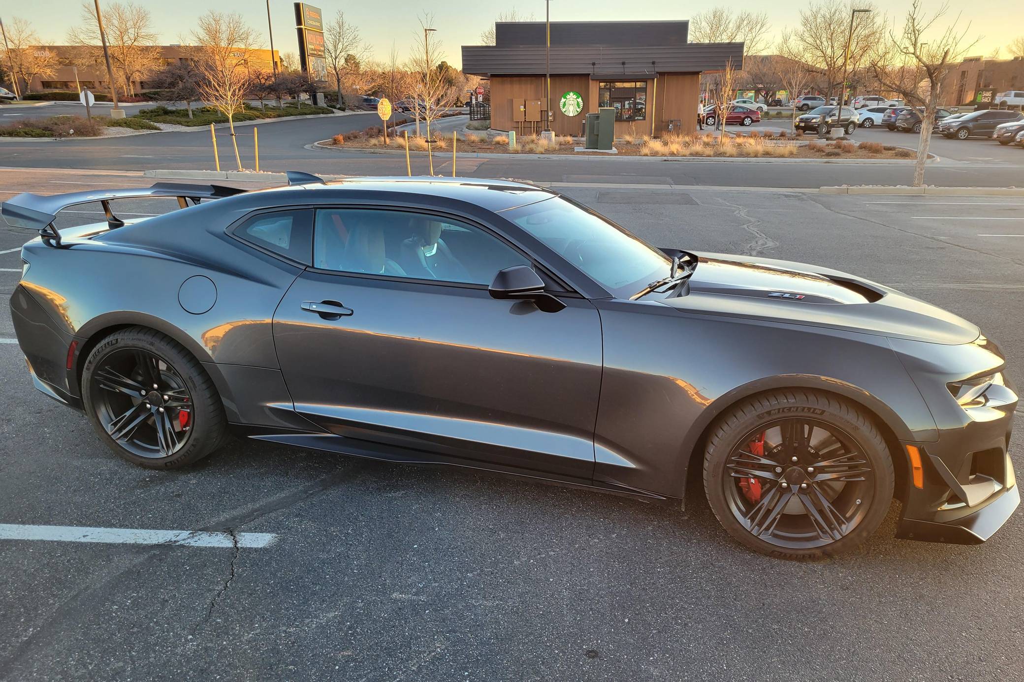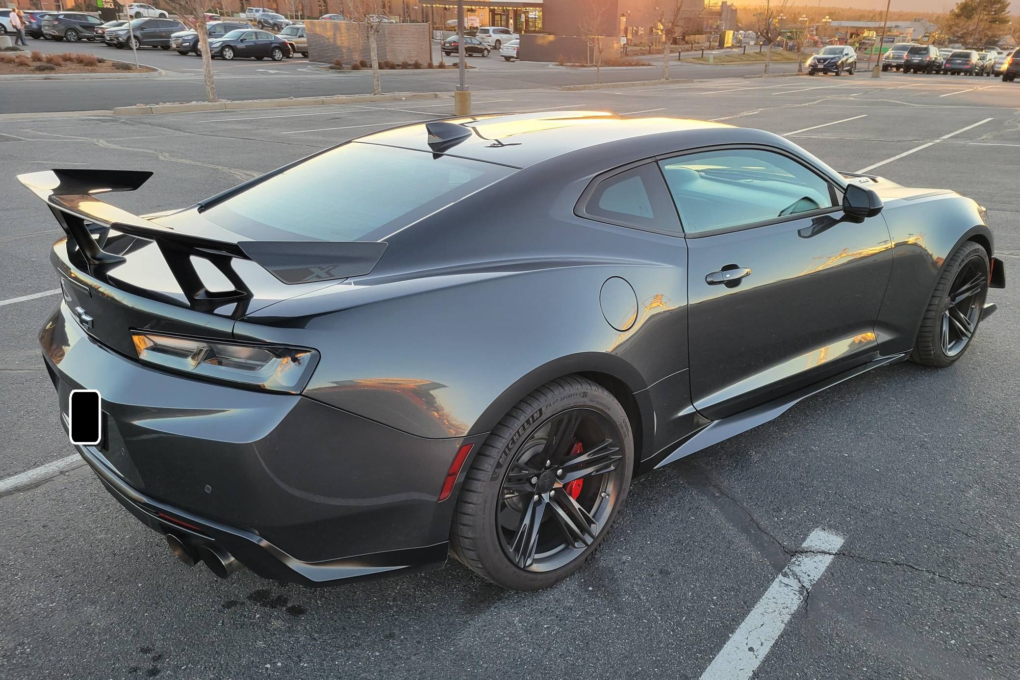 THIS. . . is a 2018 Chevrolet Camaro ZL1 1LE, finished in Nightfall Gray Metallic with a Jet Black and red interior. This coupe is equipped with the desirable 6-speed manual transmission, and its odometer displays about 8,100 miles. Factory equipment includes the ZL1 1LE Extreme Track Package, HID headlights, leather upholstery, heated, ventilated, and power-adjustable Recaro front seats, a heated steering wheel, an 8-inch digital instrument cluster, a wireless device charger, an 8-inch touchscreen for the MyLink infotainment system, a 9-speaker Bose sound system, and a head-up display. The seller reports no modifications. Chevrolet launched the sixth and current generation of the Camaro for 2016. Built on the same basic platform as the Cadillac ATS, the pony car was smaller and lighter than its predecessor to offer enthusiasts markedly better handling. The ZL1 1LE model made its debut for 2018 as the most track-capable street-legal Camaro in the nameplate's history. Chevrolet still builds the sixth-generation Camaro today. Power comes from a 6. 2-liter supercharged V8, rated at 650 horsepower and 650 lb-ft of torque. Called "LT4" internally, it spins the rear wheels via a 6-speed manual transmission.