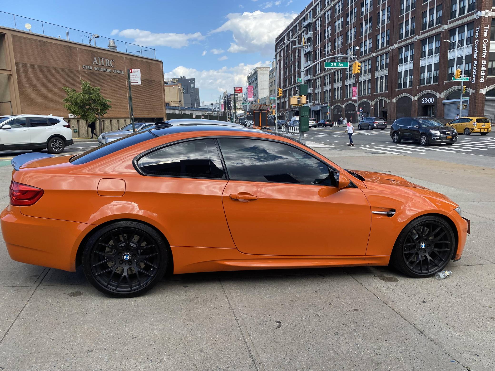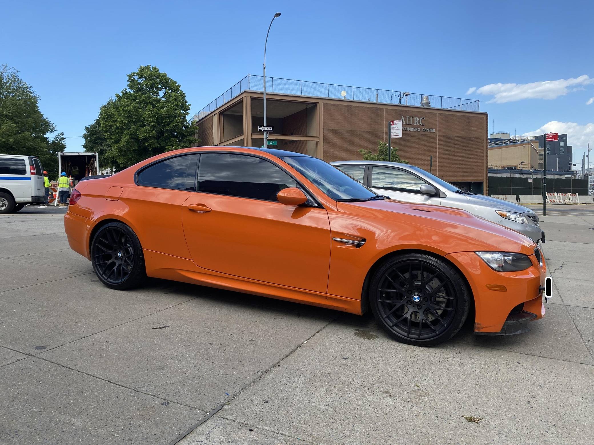 THIS… is a 2013 BMW M3 Lime Rock Park Edition, finished in Fire Orange with a black interior. This M3 Lime Rock Park edition is one of 200 units made. Every Lime Rock Park Edition was equipped with the Competition Package, which includes a revised suspension system and Electronic Damper Control (EDC) settings, a revised Dynamic Stability Control (DSC) system, a slightly lower ride height, and Competition-specific 19-inch "Style 359" wheels. Factory equipment includes adaptive xenon headlights, a carbon fiber roof panel, Novillo leather upholstery, heated and power-adjustable front seats, and a navigation system. Modifications reported by the seller are window tint and a miscellaneous wire in the trunk area. The Lime Rock Park Edition M3 was released in 2013 for the final model year of the E92 M3, and production was limited to 200 units for the U. S market. These "LRP" Edition M3 models share the name with Connecticut's famous natural-terrain 1. 53-mile race track situated in the Berkshire mountains. Power comes from a 4. 0-liter V8 engine, rated at 414 horsepower and 295 lb-ft of torque. Output is sent to the rear wheels via a 7-speed automatic transmission.