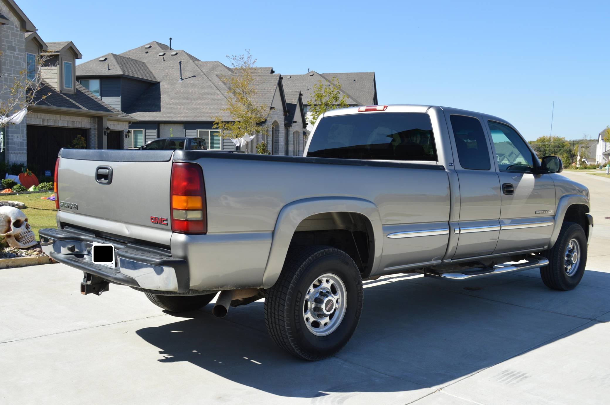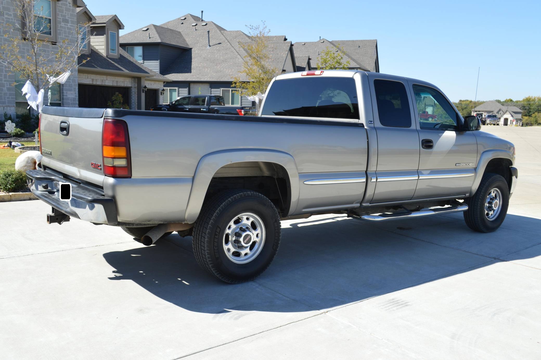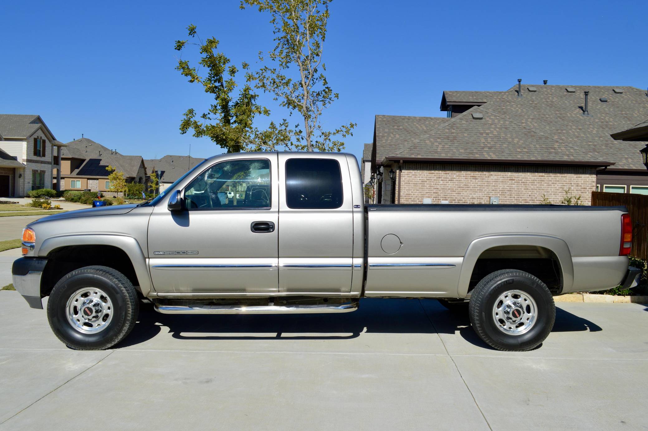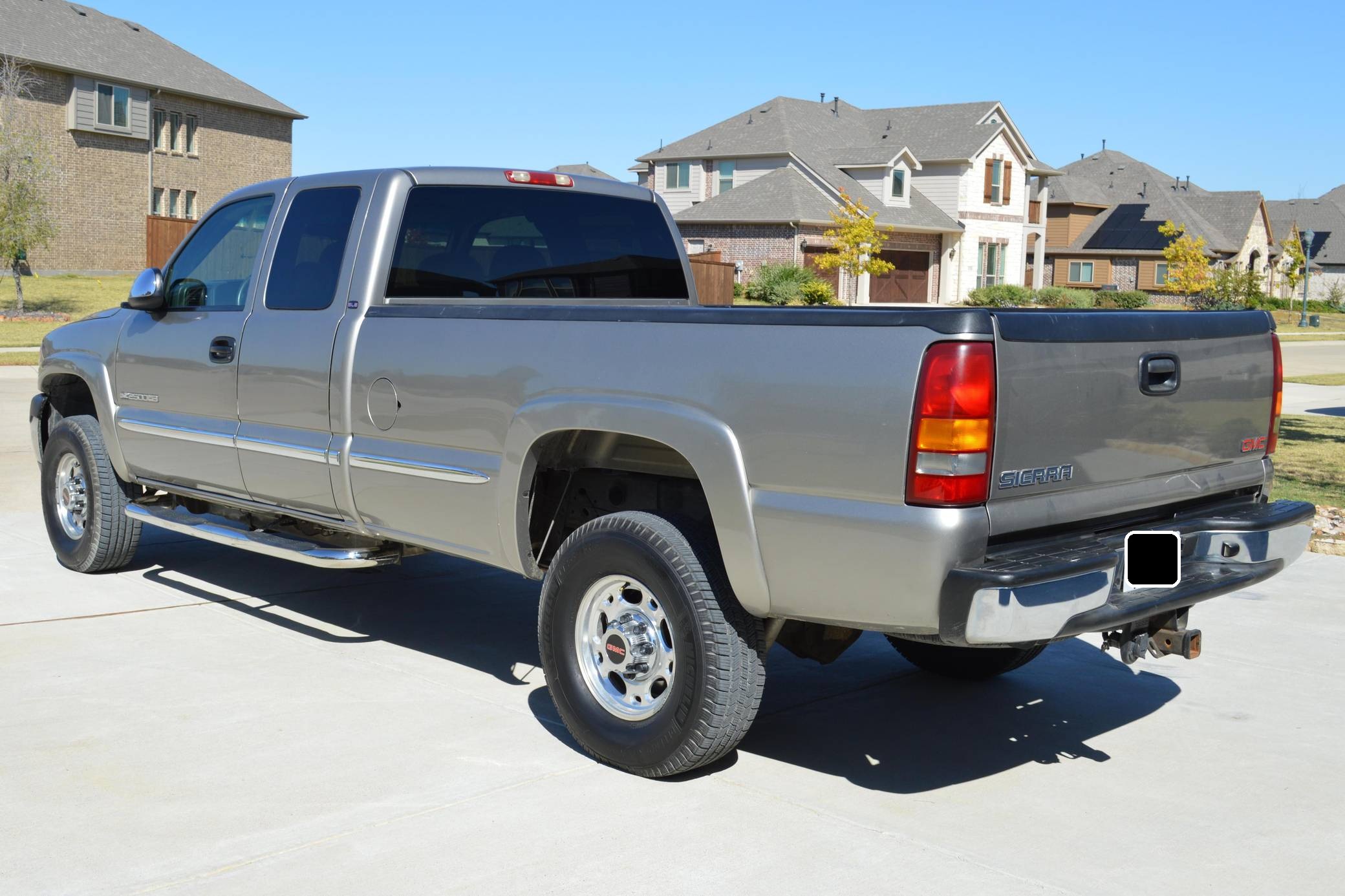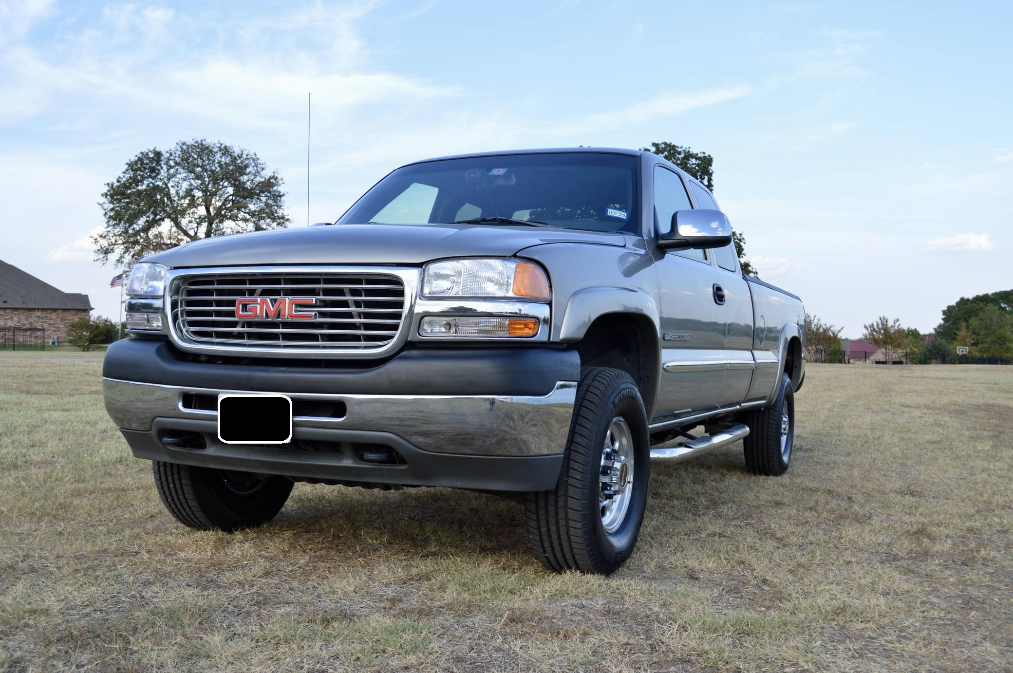 THIS. . . is a 2002 GMC Sierra 2500HD SLE, finished in Light Pewter Metallic with a Graphite interior. It also shows Texas ownership since 2012. Factory equipment includes 16-inch chrome wheels, an extended cab, cloth upholstery, power front seats, a front center console, an overhead console, air conditioning, cruise control, and an AM/FM/CD/cassette radio. Modifications to this truck include a K&N air filter, a 180-degree thermostat, wider tires, Stampede bed rail caps, and a spray-in bed liner. GMC released the GMT800-generation Sierra for the 1999 model year with a more aerodynamic exterior design and a greater emphasis on comfort -- the changes reflected the fact that a growing number of motorists used their truck as a daily driver. Buyers had a wide panoply of models to choose from including two- and four-door cabs, short and long boxes, and several V8s. Production ended in 2006. Power comes from an 8. 1-liter "Vortec" V8 engine, rated at 340 horsepower and 455 lb-ft of torque. Output is sent to the rear wheels via a 5-speed automatic transmission.