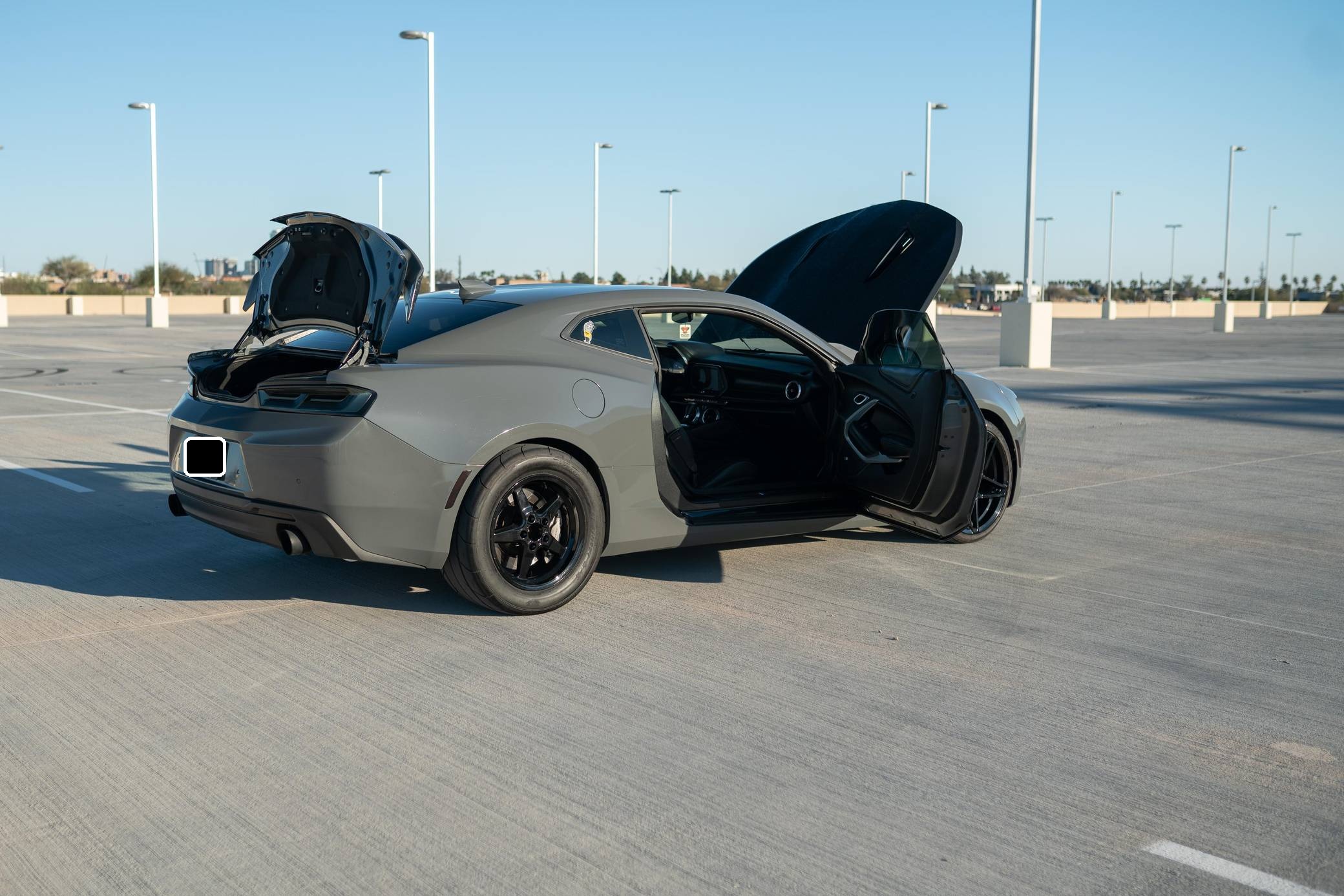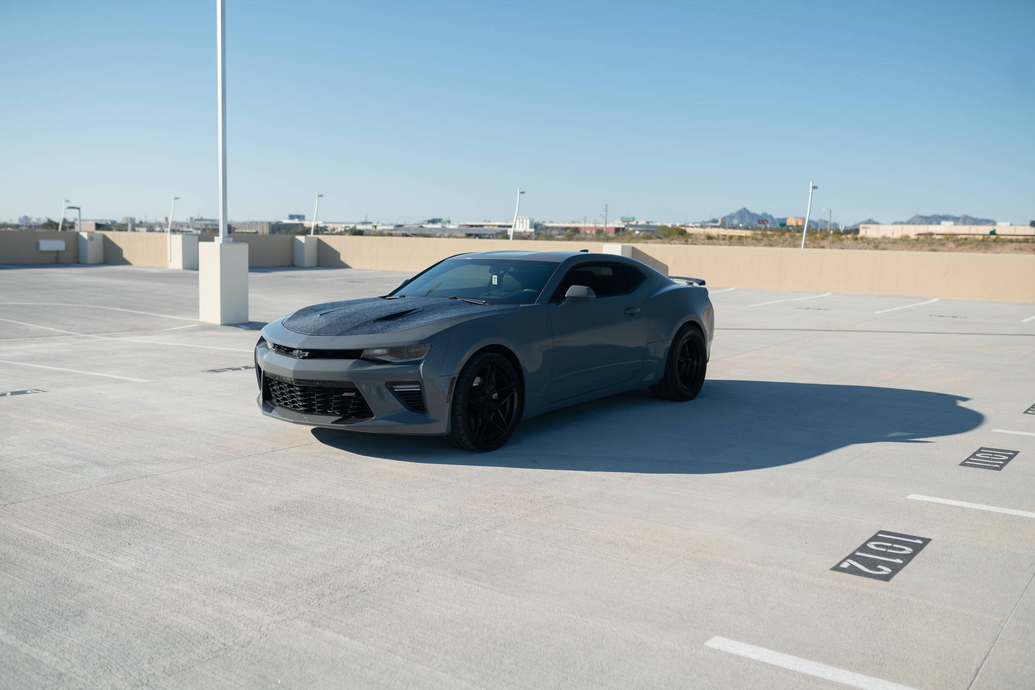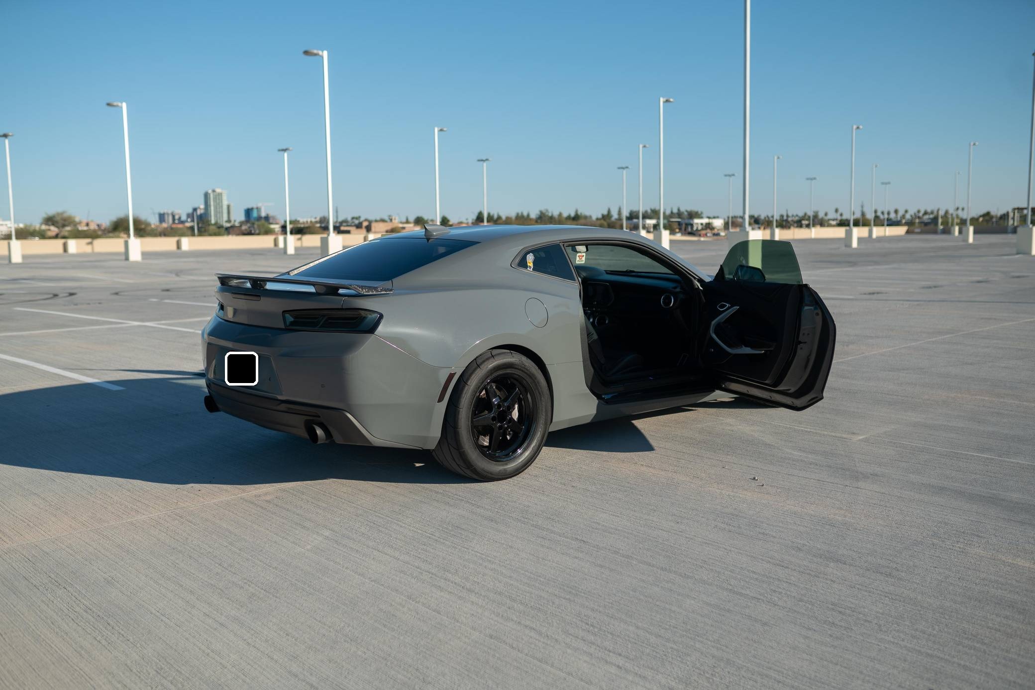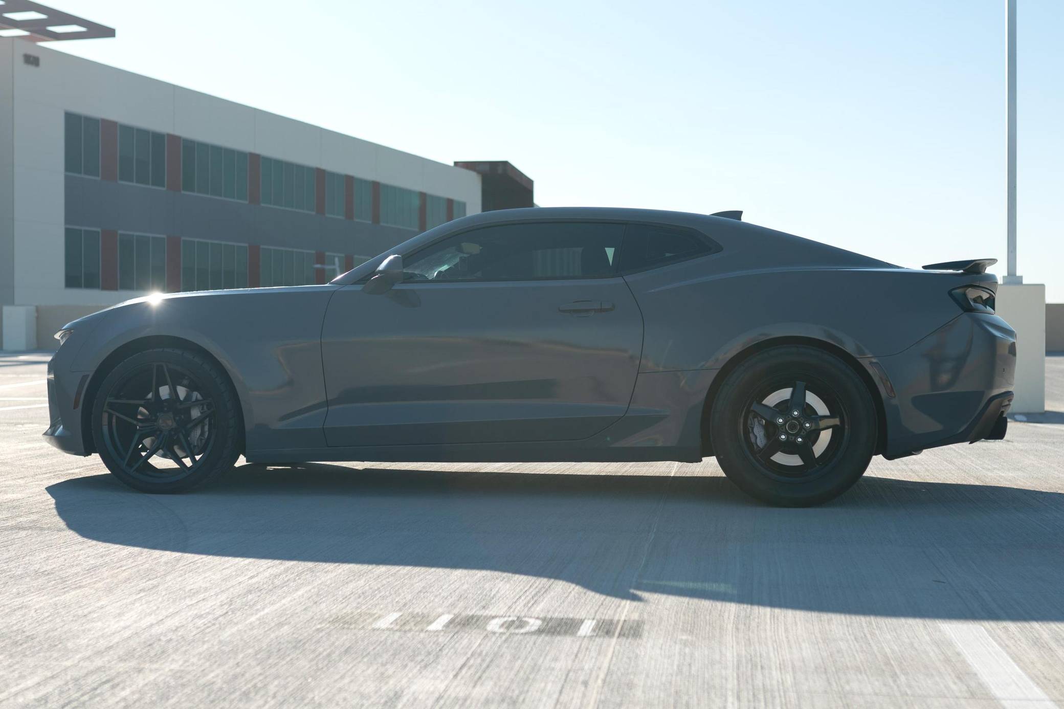 THIS… is a 2016 Camaro SS Coupe, finished in Nightfall Gray Metallic with a Nardo Gray body wrap and a black interior. A partial list of notable equipment includes the Magnetic Ride Control suspension system; a limited-slip differential; heated, ventilated, and power-adjustable front seats; leather upholstery; a touchscreen infotainment system, a 9-speaker Bose sound system, a head-up display, and more as detailed below. Modifications reported by the seller include a custom Nardo Gray wrap, a Race Star Industries drag pack with Mickey Thompson drag tires, a Texas Speed and Performance custom grind cam, a Circle D Specialties custom spec torque converter, Texas Speed and Performance 2-inch catless headers, a MagnaFlow exhaust, and more as detailed below. Chevrolet launched the sixth and current generation of the Camaro for 2016. Built on the same basic platform as the Cadillac ATS, the pony car was smaller and much lighter than its predecessor to offer enthusiasts markedly better handling. It remains available new in 2022. Power comes from an "LT1" 6. 2-liter V8, rated at 455 horsepower and 455 lb-ft of torque in stock form. Due to the modifications performed to this Camaro SS, it likely produces more power, but a dyno sheet was not provided to confirm. The engine spins the rear wheels via an 8-speed automatic transmission.