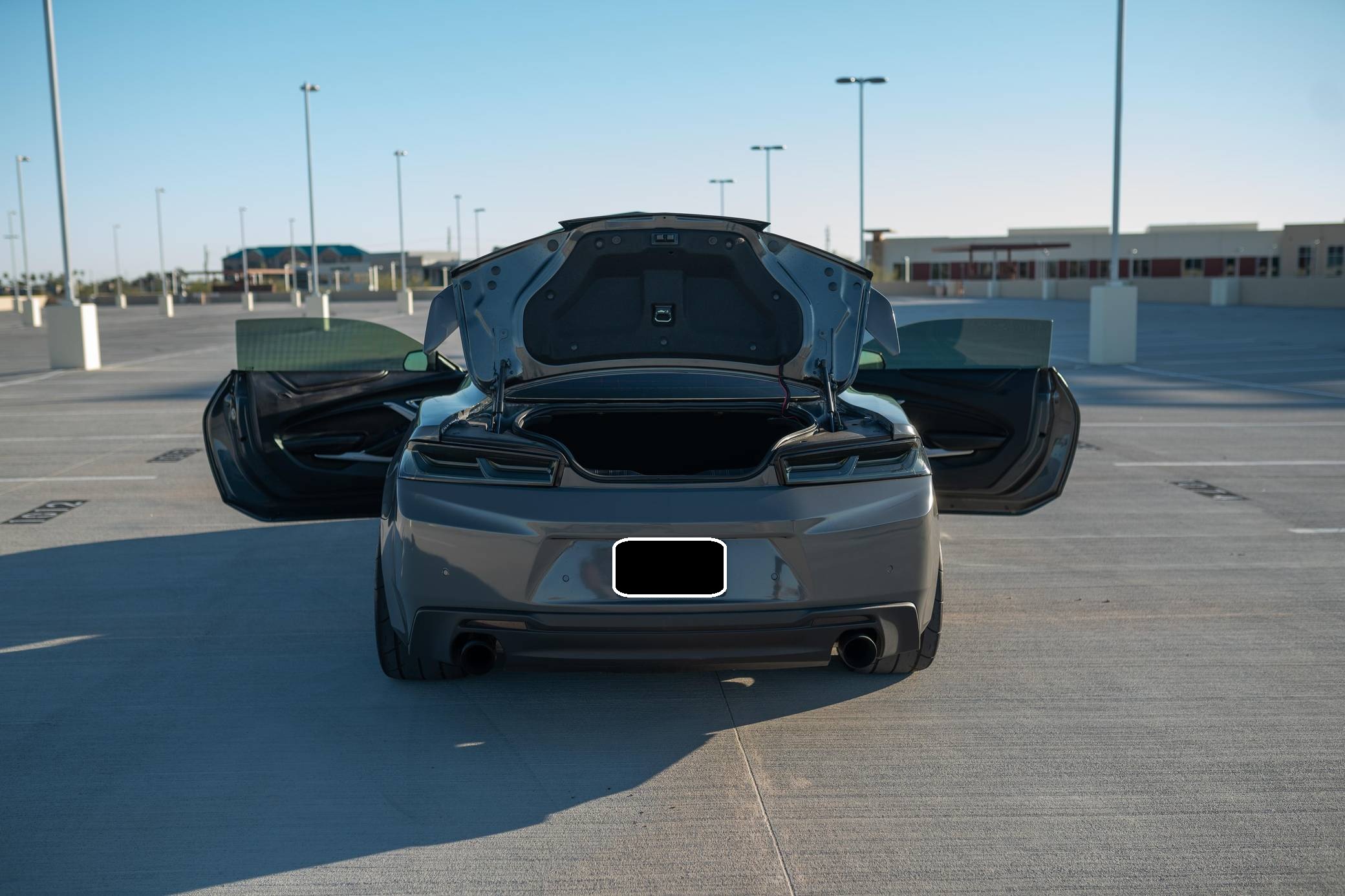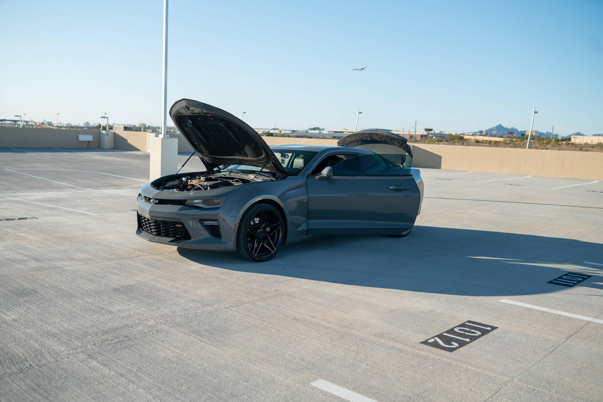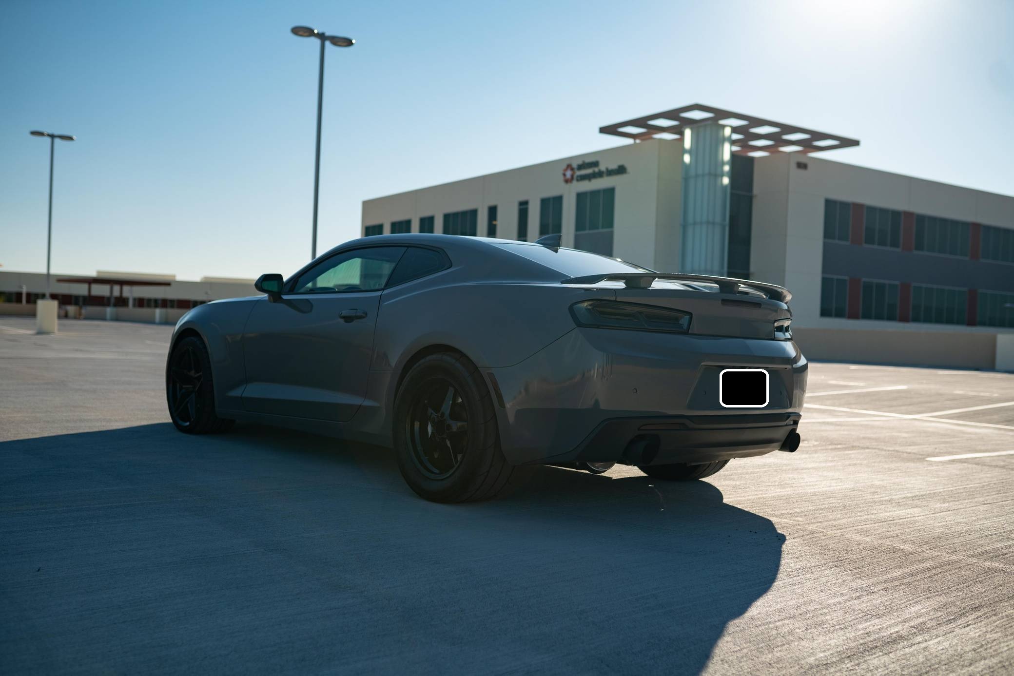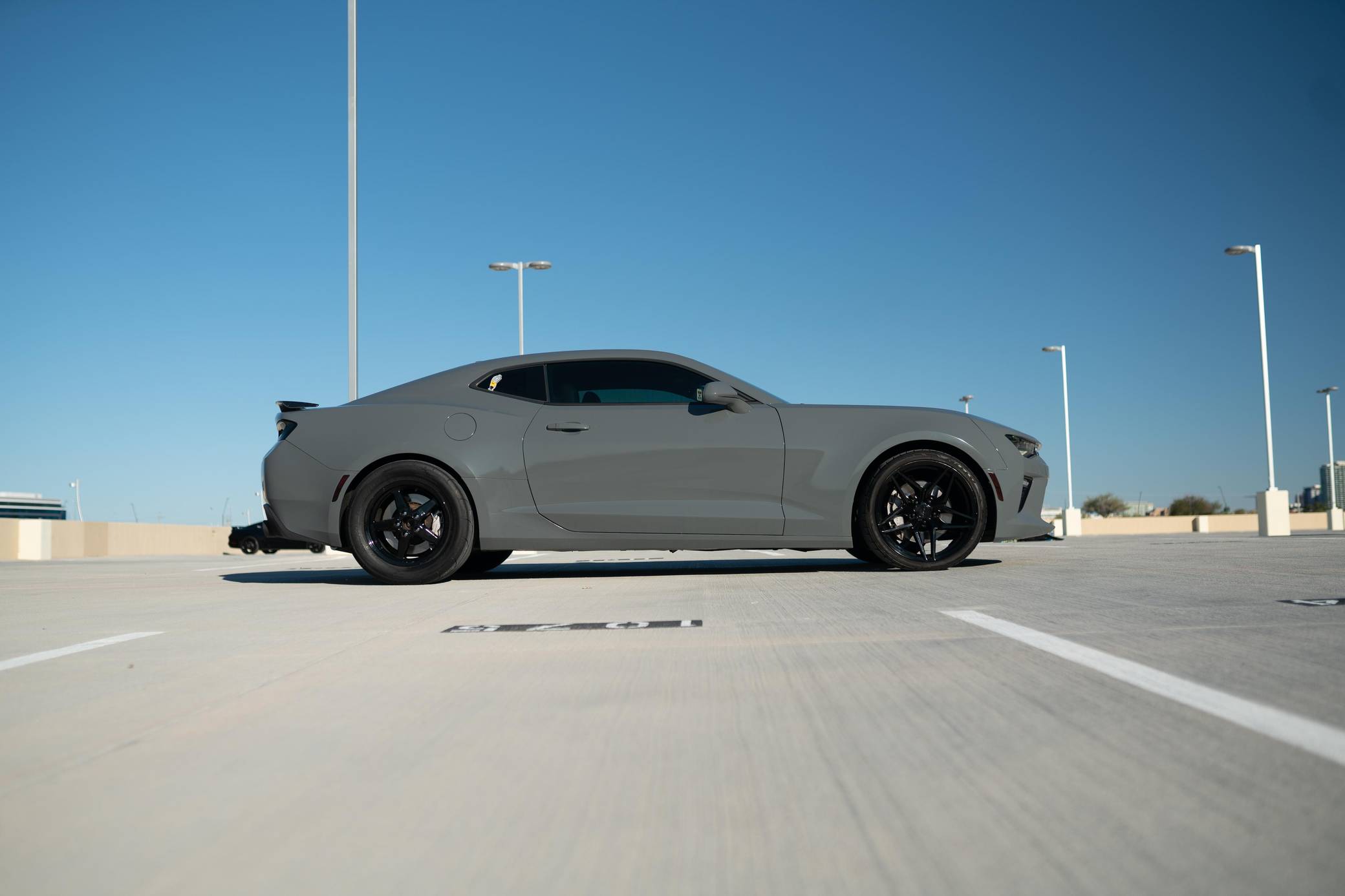 THIS… is a 2016 Camaro SS Coupe, finished in Nightfall Gray Metallic with a Nardo Gray body wrap and a black interior. A partial list of notable equipment includes the Magnetic Ride Control suspension system; a limited-slip differential; heated, ventilated, and power-adjustable front seats; leather upholstery; a touchscreen infotainment system, a 9-speaker Bose sound system, a head-up display, and more as detailed below. Modifications reported by the seller include a custom Nardo Gray wrap, a Race Star Industries drag pack with Mickey Thompson drag tires, a Texas Speed and Performance custom grind cam, a Circle D Specialties custom spec torque converter, Texas Speed and Performance 2-inch catless headers, a MagnaFlow exhaust, and more as detailed below. Chevrolet launched the sixth and current generation of the Camaro for 2016. Built on the same basic platform as the Cadillac ATS, the pony car was smaller and much lighter than its predecessor to offer enthusiasts markedly better handling. It remains available new in 2022. Power comes from an "LT1" 6. 2-liter V8, rated at 455 horsepower and 455 lb-ft of torque in stock form. Due to the modifications performed to this Camaro SS, it likely produces more power, but a dyno sheet was not provided to confirm. The engine spins the rear wheels via an 8-speed automatic transmission.