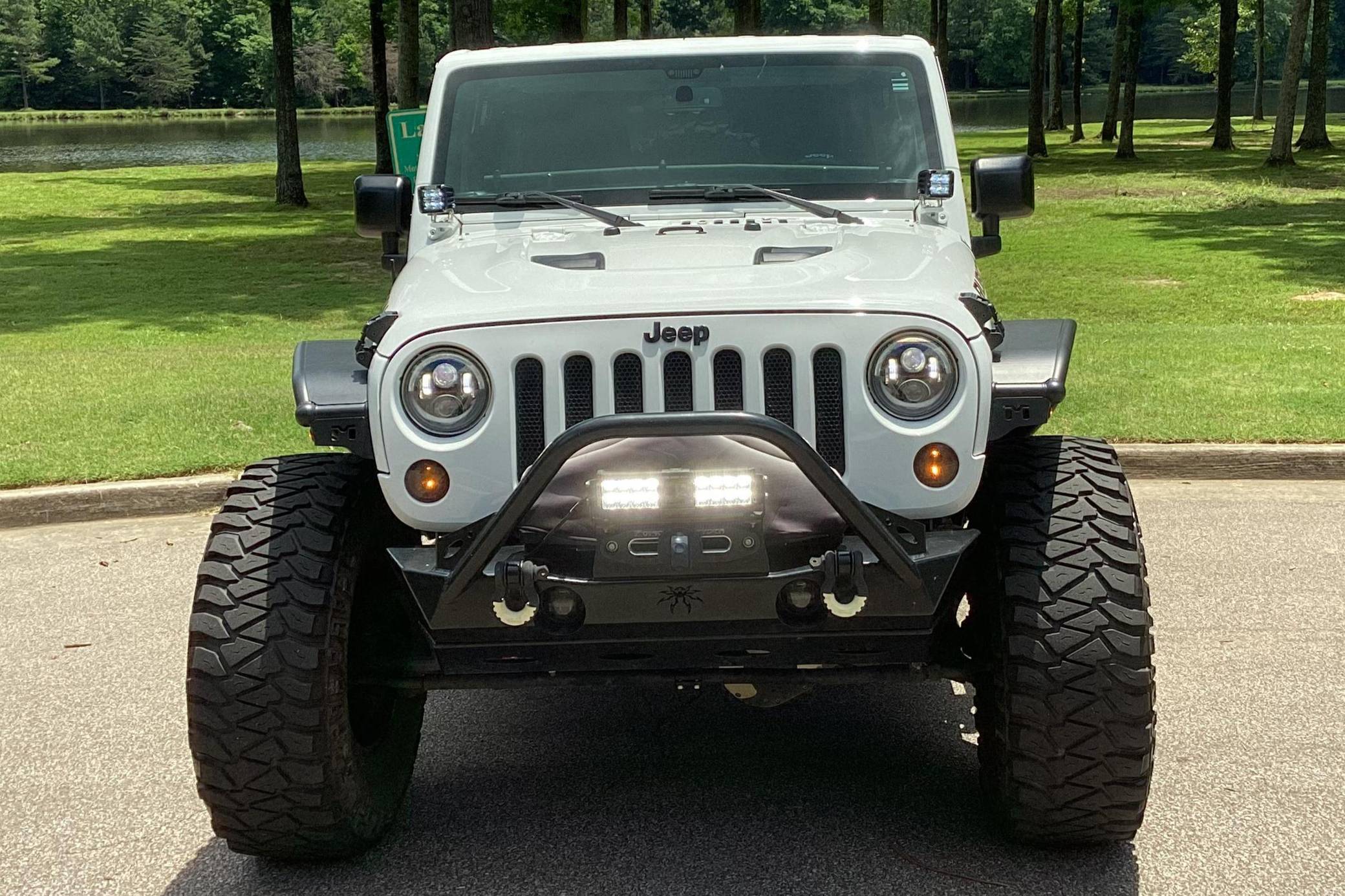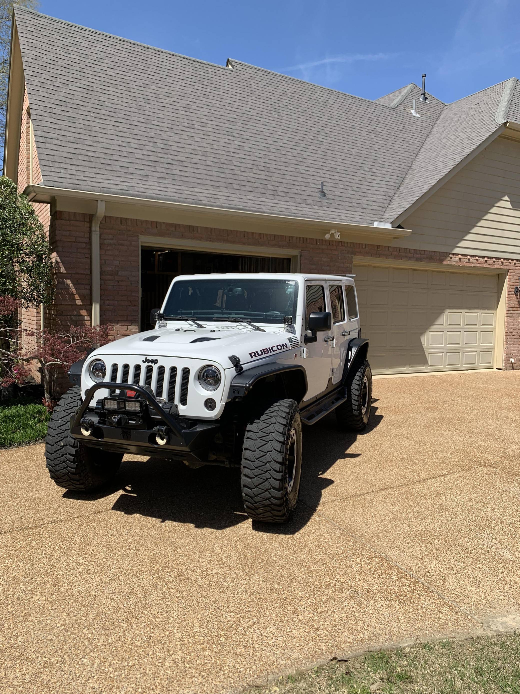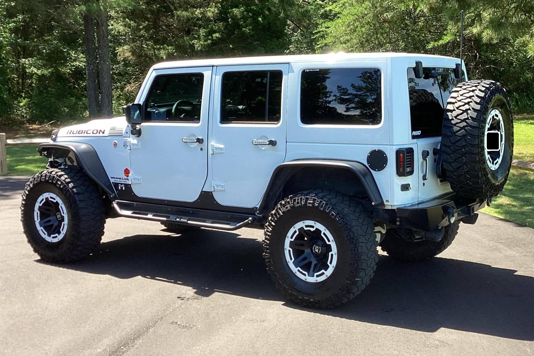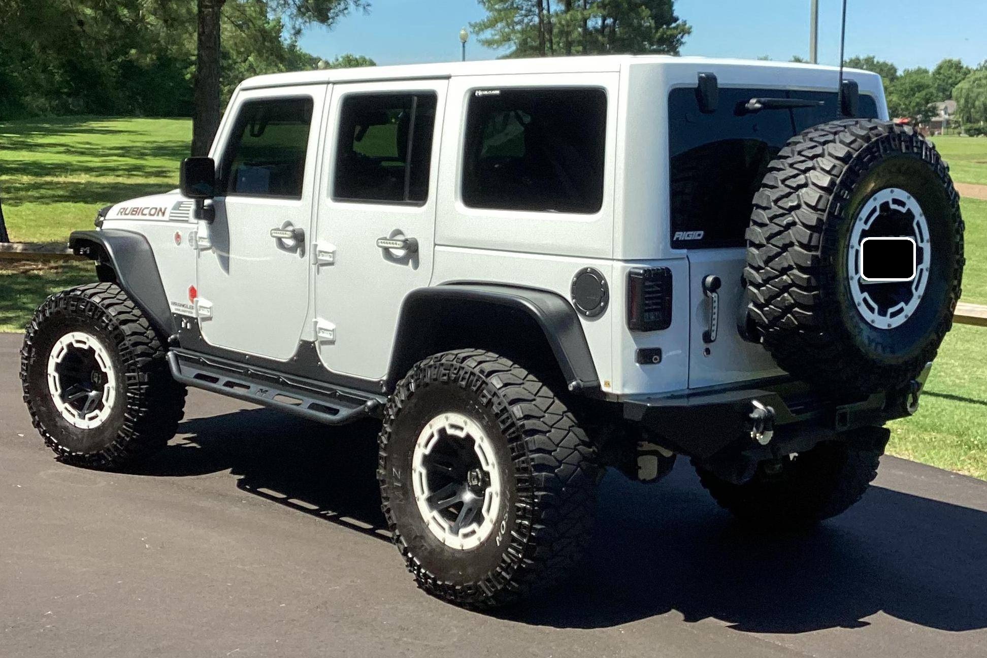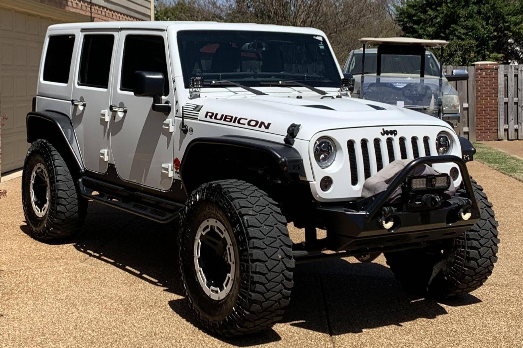 2016 Jeep Wrangler Unlimited Rubicon Hard Rock 4x4, finished in Bright White with a body-colored hardtop and a black interior. Modifications reported by the seller include Yukon Gear & Axle 4. 88 gears, 17-inch Rugged Ridge XHD wheels with rock rings, an ARB air compressor in the engine bay, a Teraflex S/T 3-inch lift kit, a Poison Spyder Customs Brawler Lite front bumper, MetalCloak Overland tube fenders and rear wheel arch flares, a Vector OffRoad JKE-Dock, a Smittybilt locking cargo box, and a Cobra 75 WX ST CB radio kit with separate speaker. More details about the aftermarket parts installed on this Wrangler are provided below. Factory equipment includes the Rubicon Hard Rock Edition Package, a Freedom Top 3-piece removable hardtop, air conditioning, a 6. 5-inch touchscreen for the infotainment system, and a remote engine starter. Called "JK" internally, the third-generation Wrangler arrived for 2007 with a wider track, V6 power (instead of its predecessor's straight-6), and an updated interior designed to provide more on-road comfort. It was also the first Wrangler offered with four doors from the factory. Production ended in 2018. Power comes from a 3. 6-liter "Pentastar" V6, rated at 285 horsepower and 260 lb-ft of torque. It spins the rear or the four wheels via a 5-speed automatic transmission and a 2-speed transfer case.