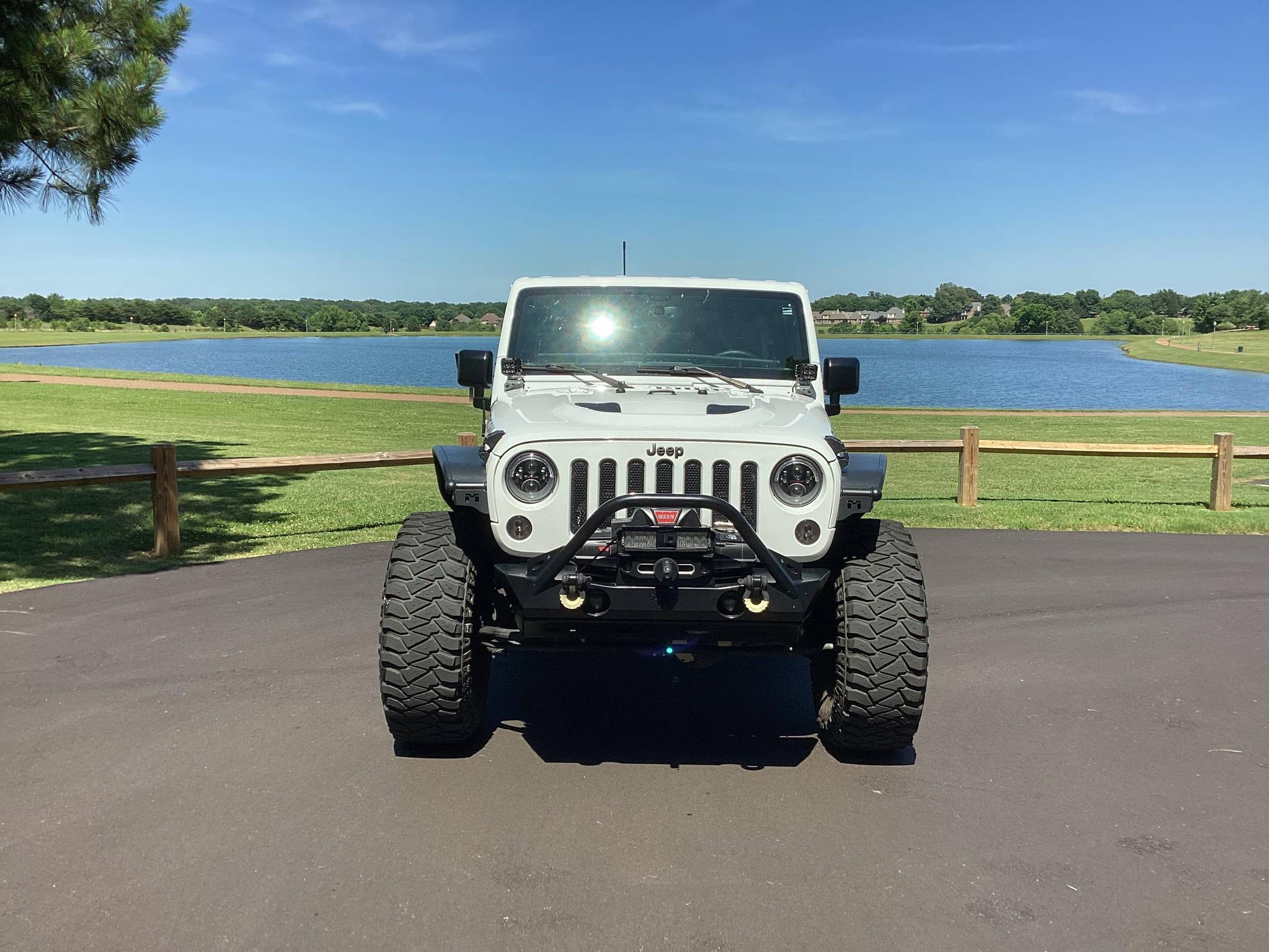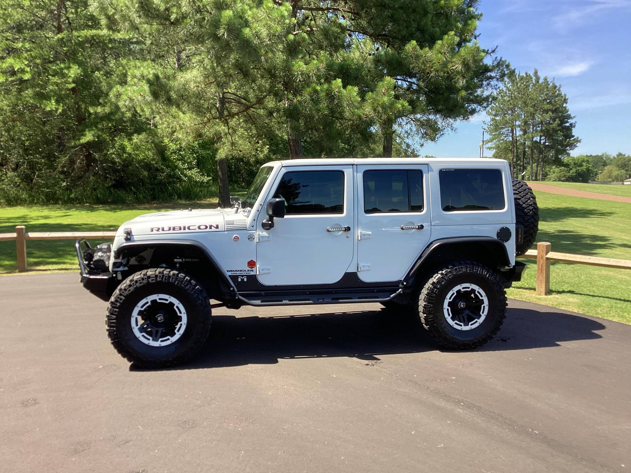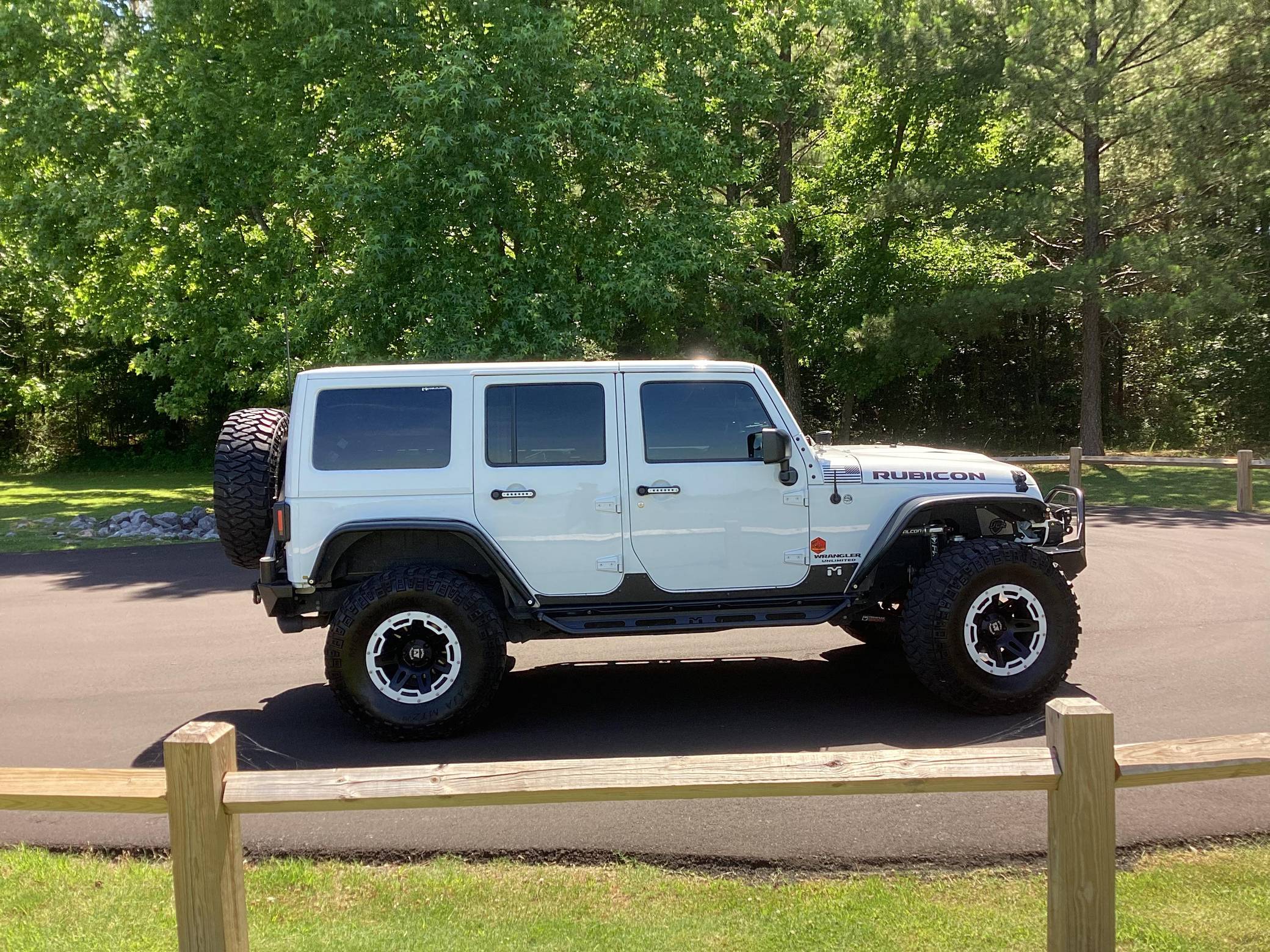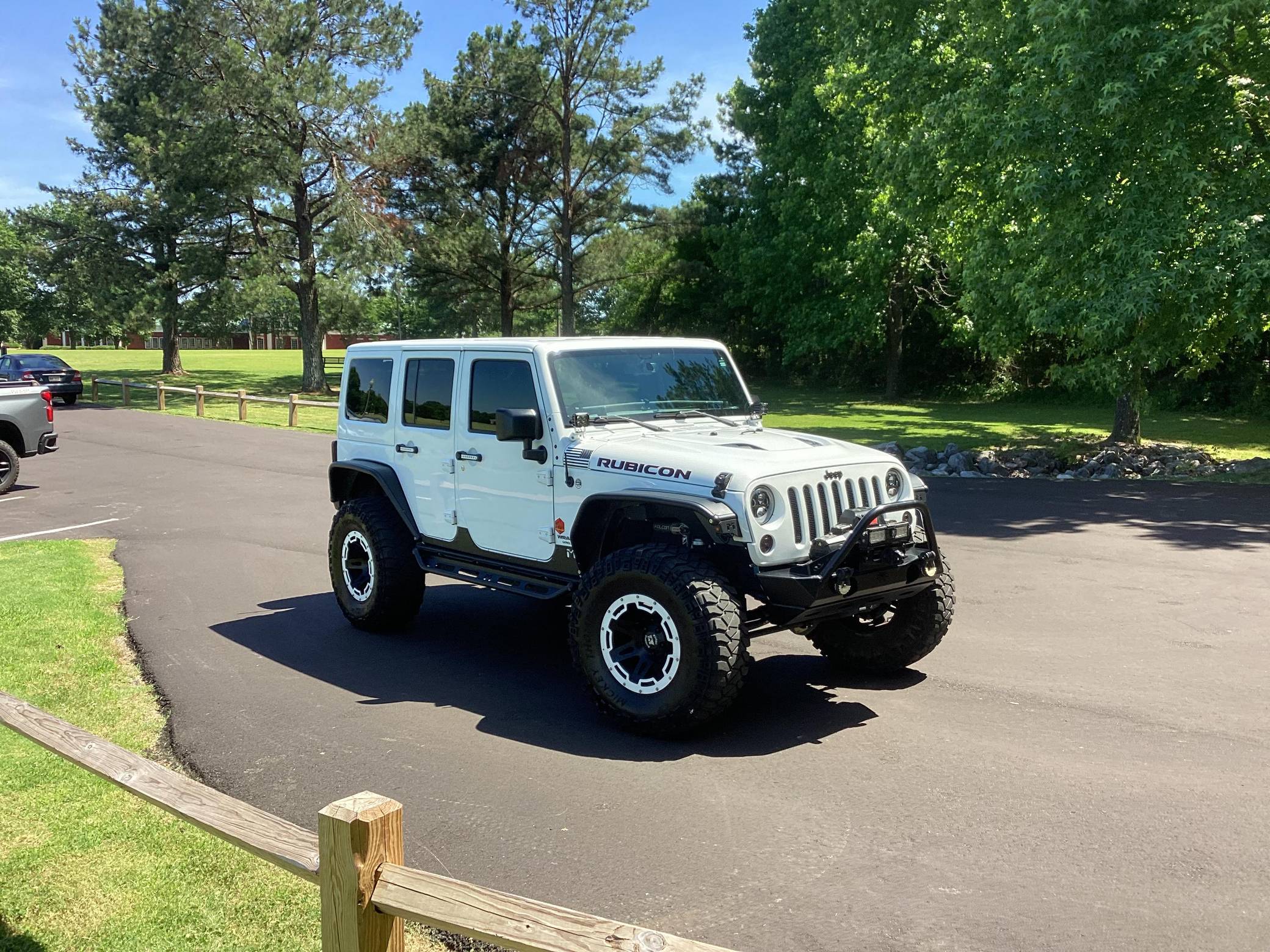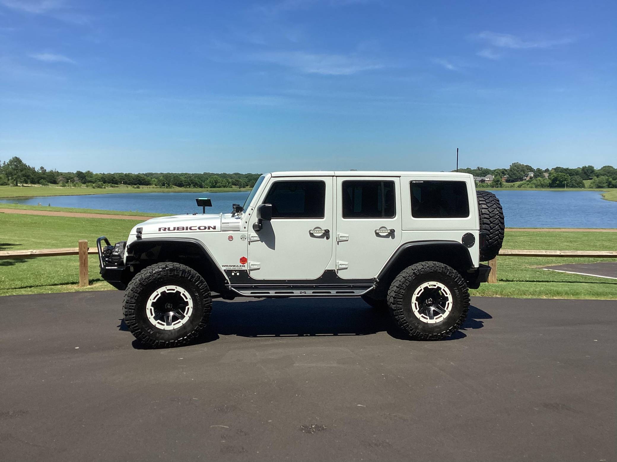 2016 Jeep Wrangler Unlimited Rubicon Hard Rock 4x4, finished in Bright White with a body-colored hardtop and a black interior. Modifications reported by the seller include Yukon Gear & Axle 4. 88 gears, 17-inch Rugged Ridge XHD wheels with rock rings, an ARB air compressor in the engine bay, a Teraflex S/T 3-inch lift kit, a Poison Spyder Customs Brawler Lite front bumper, MetalCloak Overland tube fenders and rear wheel arch flares, a Vector OffRoad JKE-Dock, a Smittybilt locking cargo box, and a Cobra 75 WX ST CB radio kit with separate speaker. More details about the aftermarket parts installed on this Wrangler are provided below. Factory equipment includes the Rubicon Hard Rock Edition Package, a Freedom Top 3-piece removable hardtop, air conditioning, a 6. 5-inch touchscreen for the infotainment system, and a remote engine starter. Called "JK" internally, the third-generation Wrangler arrived for 2007 with a wider track, V6 power (instead of its predecessor's straight-6), and an updated interior designed to provide more on-road comfort. It was also the first Wrangler offered with four doors from the factory. Production ended in 2018. Power comes from a 3. 6-liter "Pentastar" V6, rated at 285 horsepower and 260 lb-ft of torque. It spins the rear or the four wheels via a 5-speed automatic transmission and a 2-speed transfer case.