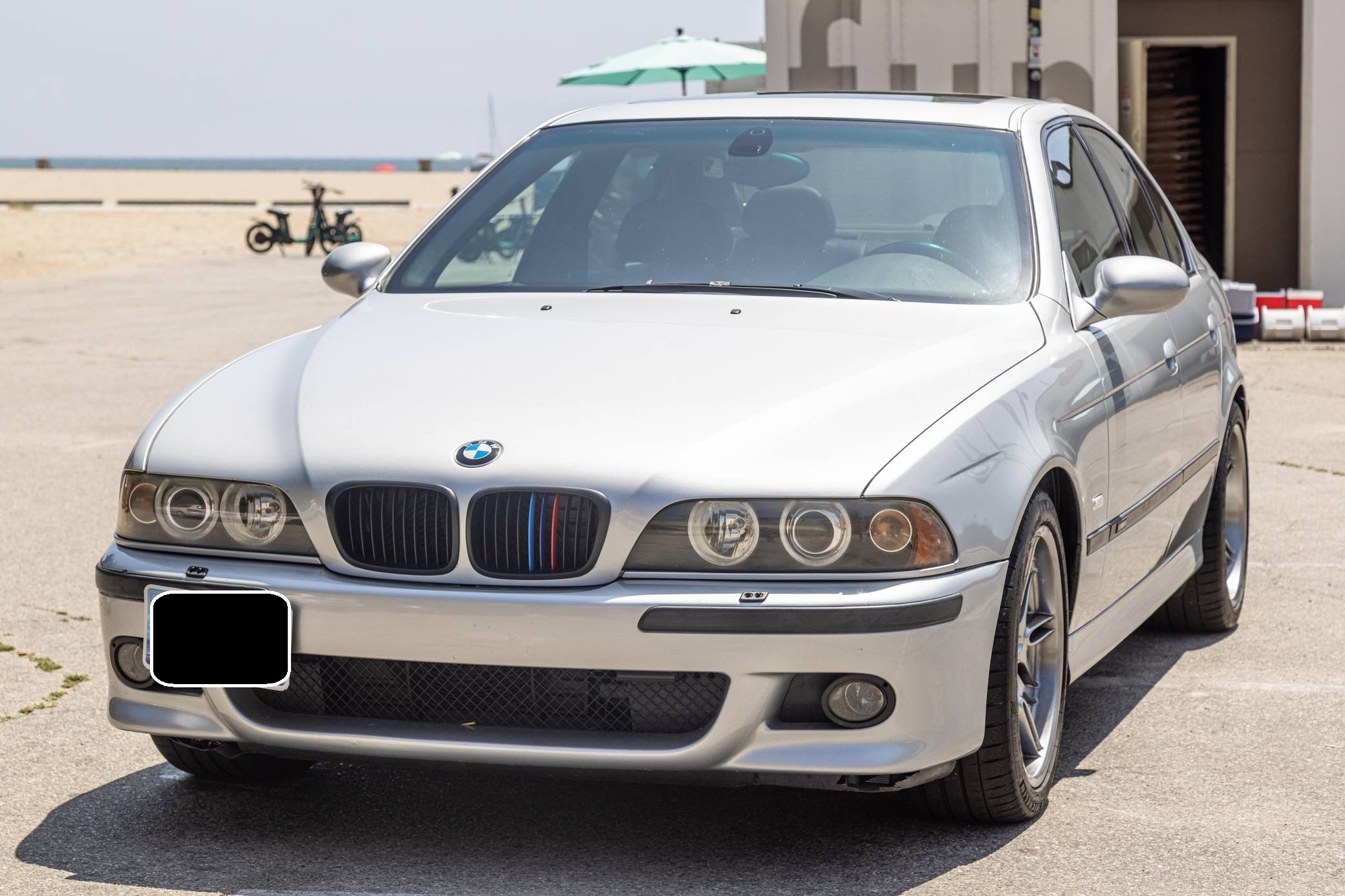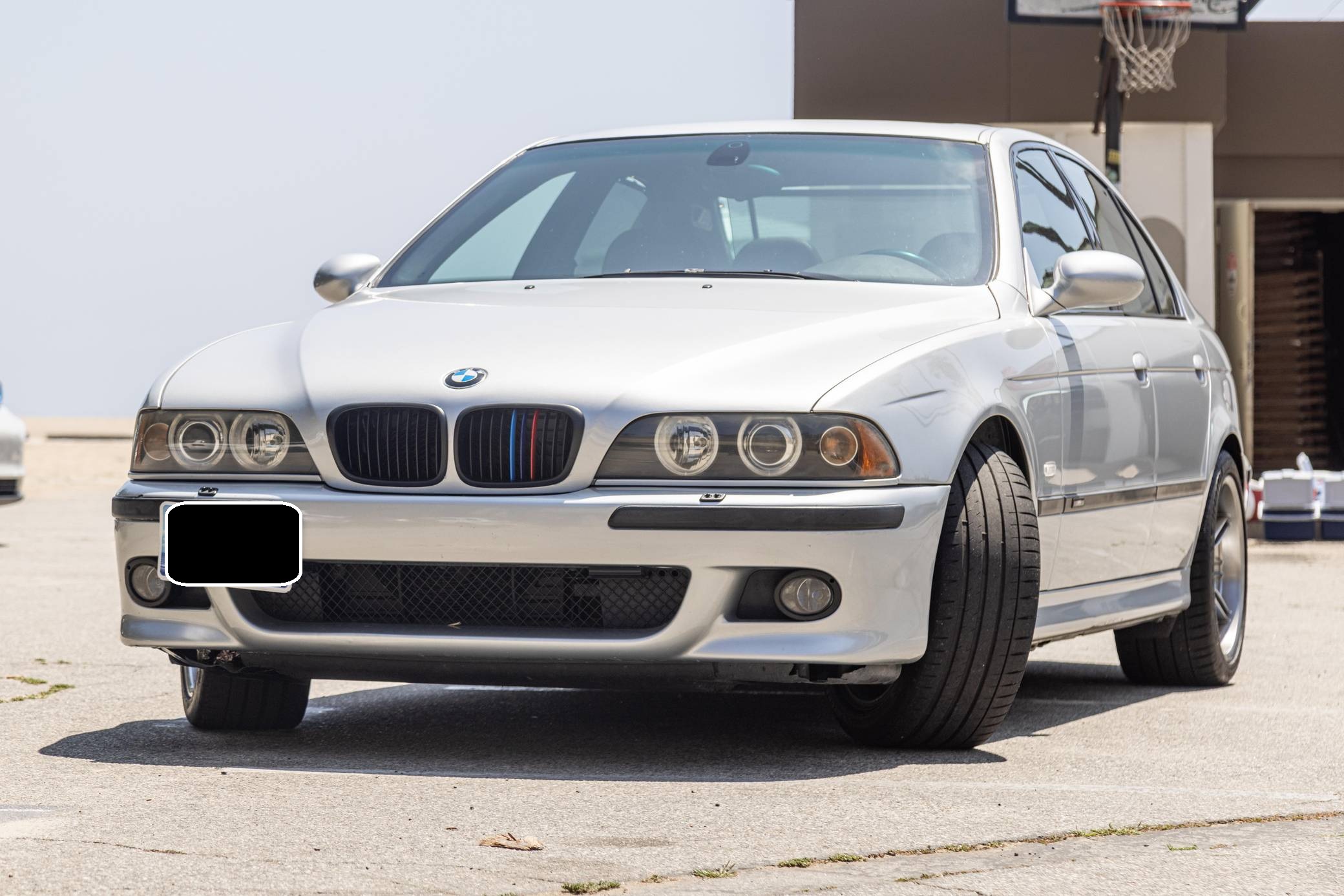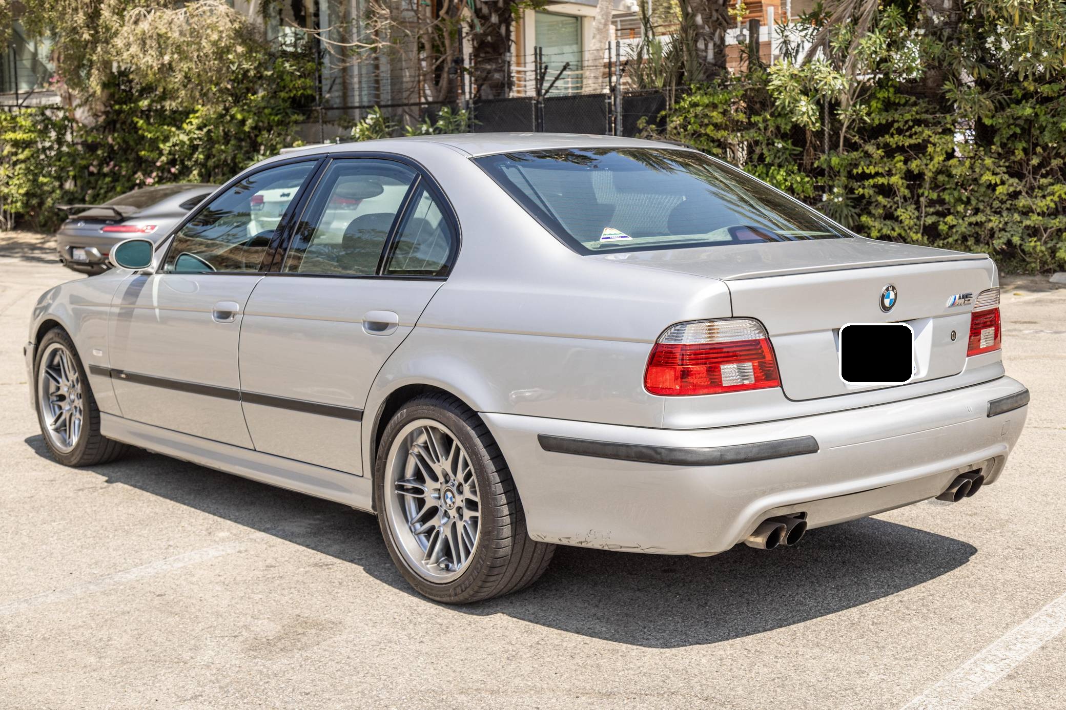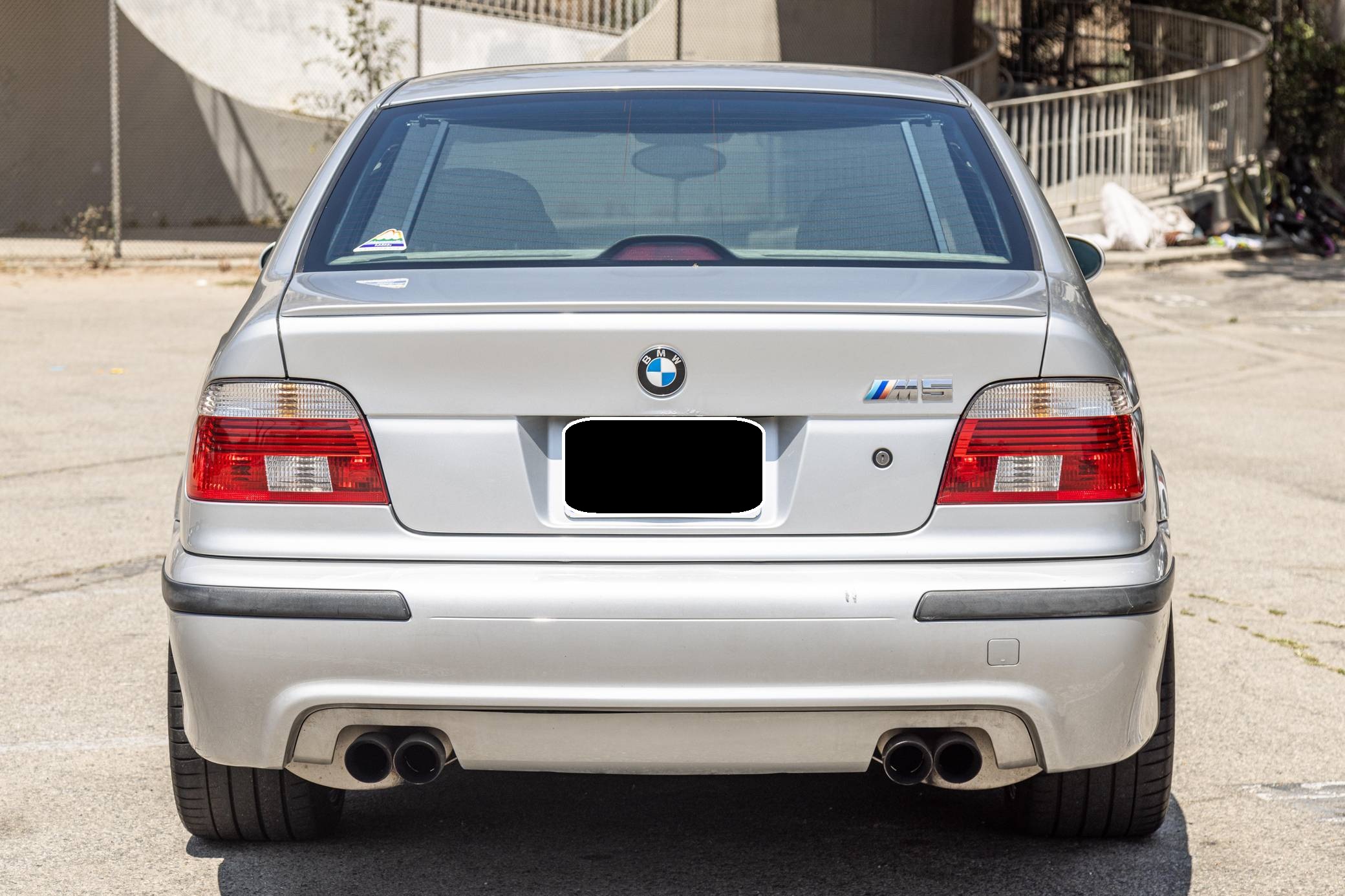 2002 BMW M5, finished in Titanium Silver Metallic with a black interior. According to the build sheet provided in the gallery, factory equipment includes 18-inch Style 65 wheels, xenon headlights, fog lights, a power-operated sunroof, leather upholstery, heated and power-adjustable front seats, and an Alcantara headliner. Modifications reported by the seller include a Corsa cat-back exhaust, Shark Injector performance software, a Dynavin head unit, Rockford Fosgate subwoofers, and more as detailed below. Heralded by marque enthusiasts as the best of its breed, the E39-generation M5 arrived in the U. S. for the 2000 model year. It would become the first of several M-cars with a V8, though among the many things that have given the M5 such lasting appeal is the exclusive 6-speed manual Getrag "420G" gearbox. BMW gave the M5 a facelift in 2001. It added the now-famous "Halo" headlights, Celis rear lights, redesigned fog lights, a new-look steering wheel, gray instrument gauges, and a 16:9 navigation display, among other features. Revised VANOS accumulators and piston rings were fitted starting in early 2000. This M5 benefits from all of the aforementioned updates. Power comes from an "S62" 4. 9-liter V8, rated at 394 horsepower and 369 lb-ft of torque. Due to the modifications performed to this M5, it may produce more power, but a dyno sheet was not provided to confirm. Output is sent to the rear wheels via a 6-speed manual transmission.