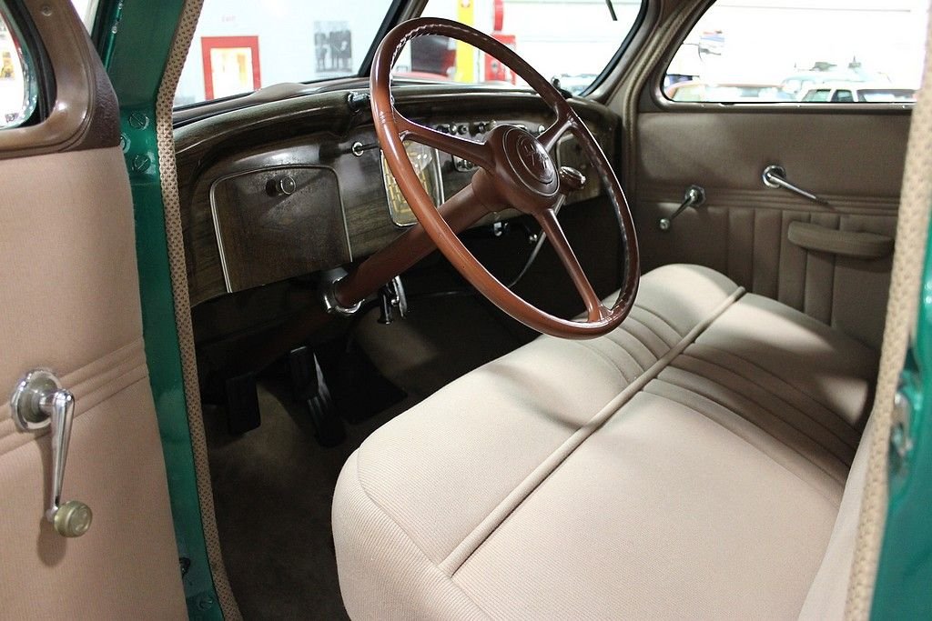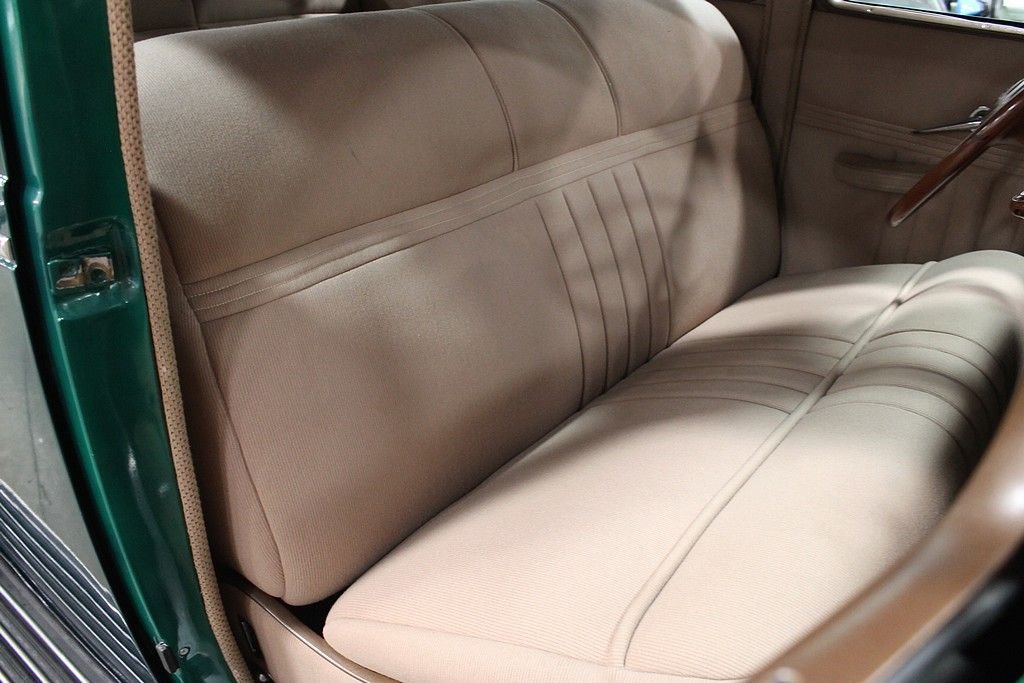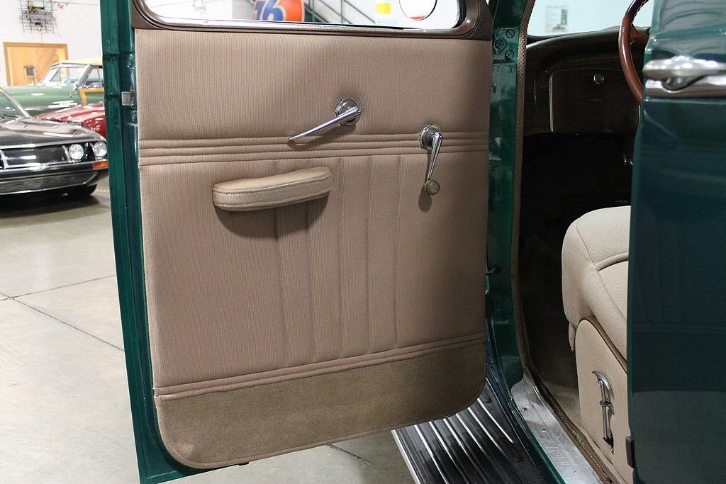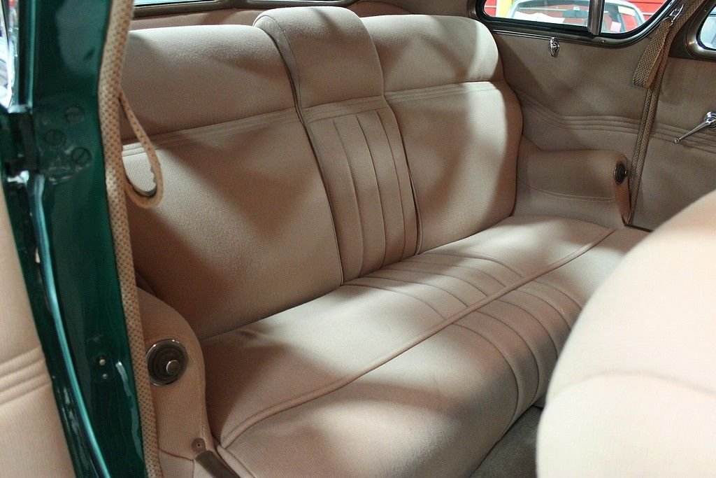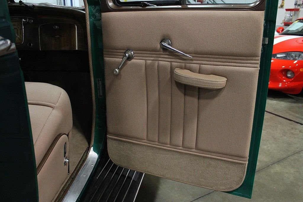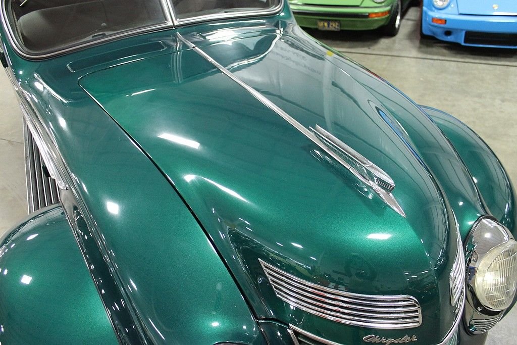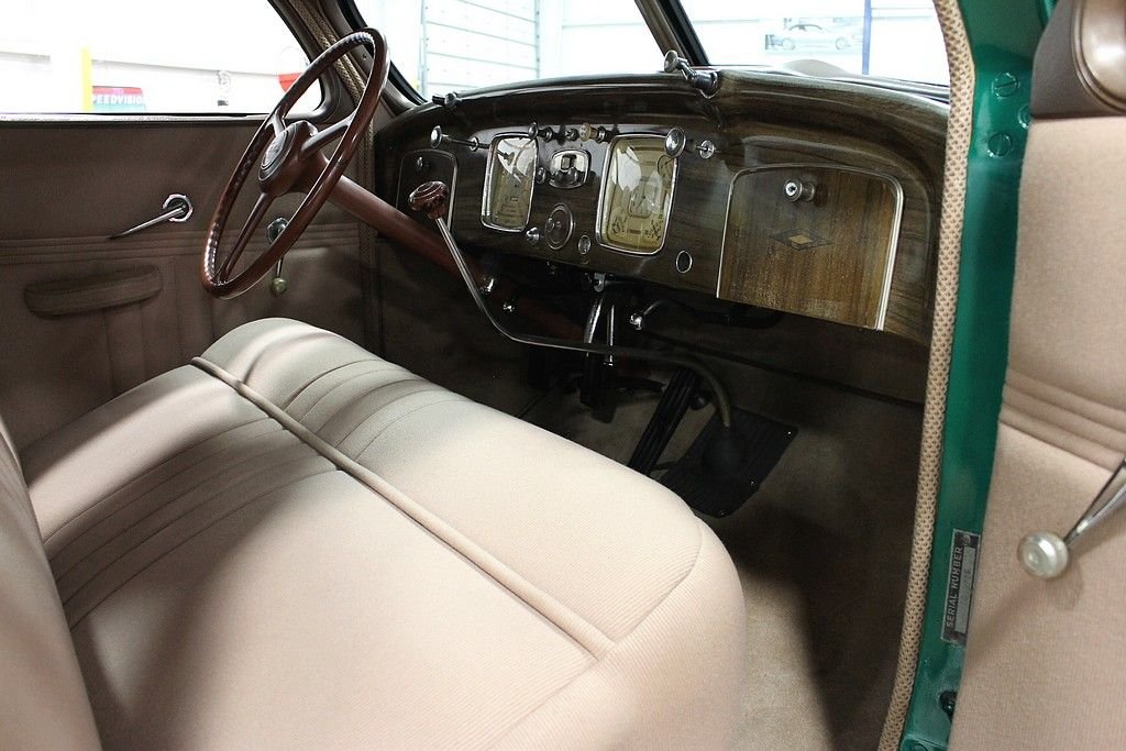 The Chrysler Airflow made its introduction in 1934 with much fanfare, pioneering the “Form Follow's Function” campaign, with its wind tunnel tuned design. The vehicle, engineered by veteran designer Carl Breer and featured a smooth innovative design and was built on a “truss bridge” chassis allowing both front and rear seats to fit entirely within the wheelbase allowing for a very roomy and comfortable passenger compartment. The 1937 Chrysler Airflow Sedan offered here is a handsome example that features and older restoration preserving original characteristics of the vehicle. It is presented in Green over and elegant light tan cloth interior. The car features the proven 323.5-cid straight-eight C17 series engine and a three speed with overdrive transmission. The overall structure of this Airflow is quite impressive with much originality in the trim, chrome, interior knobs and levers. The recessed headlights, fender skirts and running boards give the car its unique and streemlined look that it became famous for in the early 30's. Mechanically, this is a reliable and excellent driving vehicle that can be driven on many situations. Chryslers Airflow was a cutting-edge design and revolutionary creation that set a new standard for all to follow. With production hampered by the Great Depression, the Airflows are not plentiful vehicles, and quality examples such as this are in demand. This example with its fender skirts and wide white wall tires is sure to draw attention in any situation.