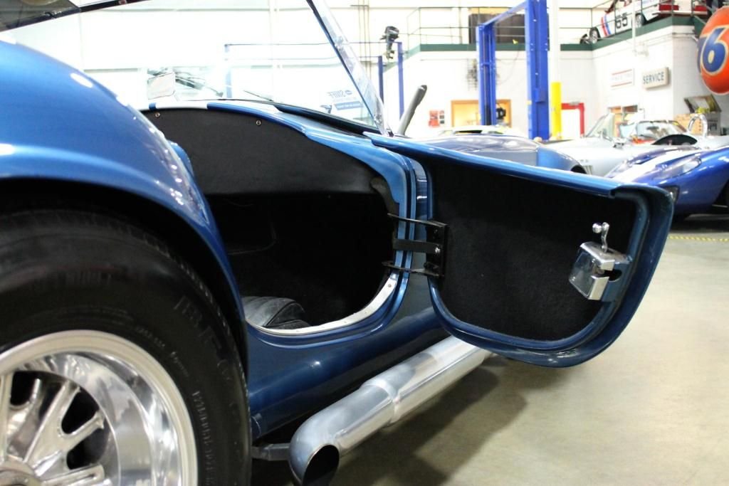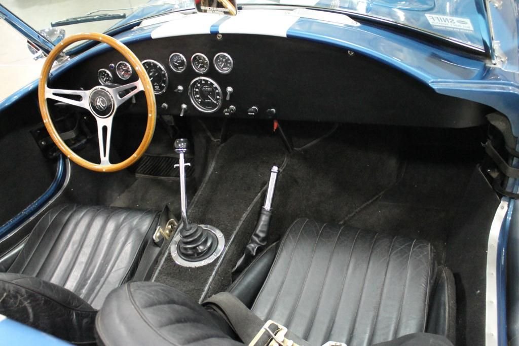“This Cobra has the distinction of being one of the most perfect in craftsmanship that I have ever seen, having a Cobra myself. This car is impeccable condition throughout, and it shows at the first sight of this vehicle.” – Elmo Elmore, Auction Appraiser It is our pleasure to offer another quality Cobra roadster replica, one that we are extremely proud to have on our showroom floor. As stated above, this car is flawless in craftsmanship and has body lines as exactly the same as original AC Cobras. This car was built by Hi-Tech Motorsports but is titled as a 1965 Ford and comes with a Certificate of Origin. It is a fiberglass body with a bolt on scoop – all body and door edges are rolled over per original aluminum cars. All lights, switches, emblems, hinges, carb linkage, hood, door, trunk latches, etc. are period correct.