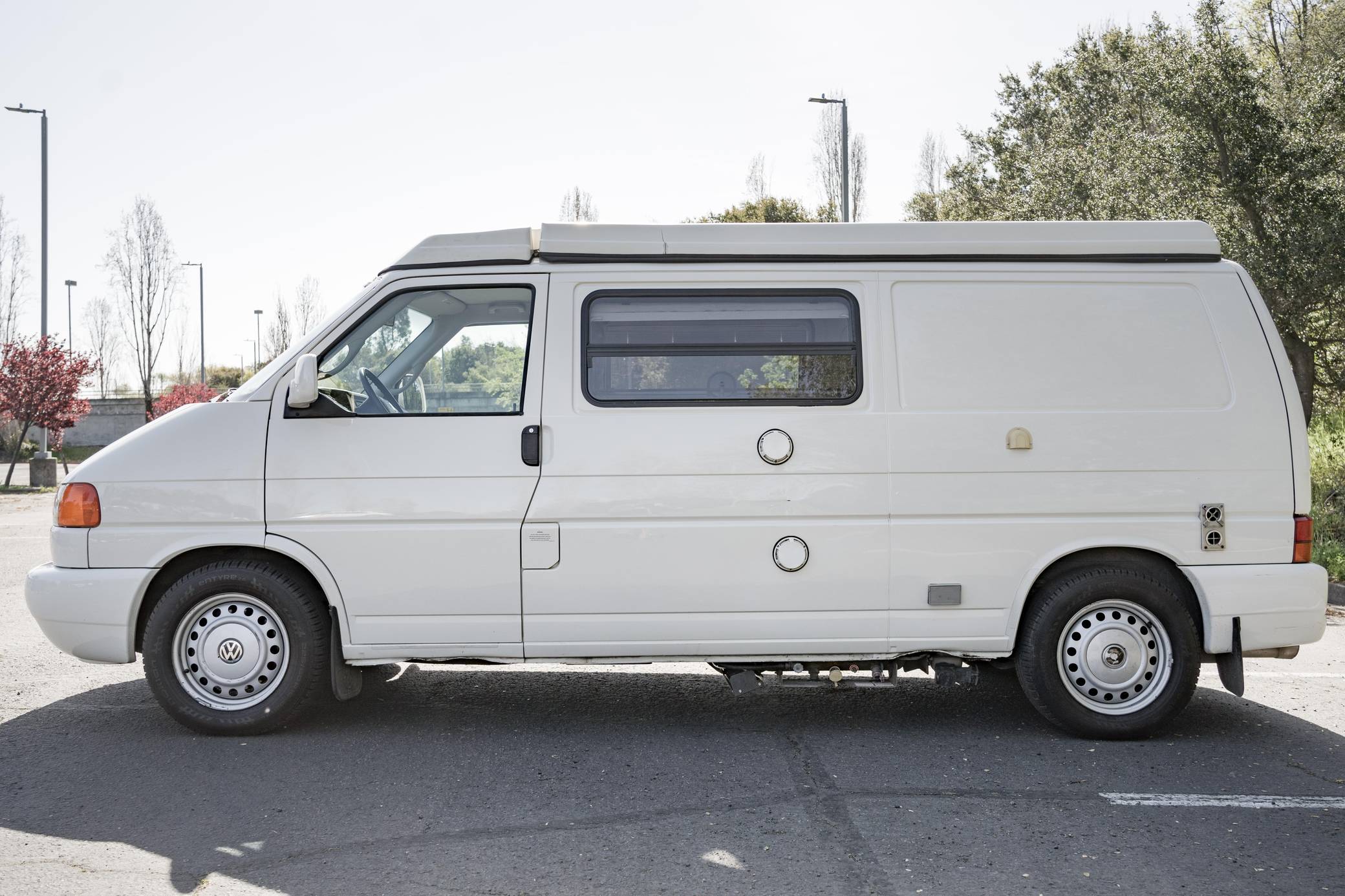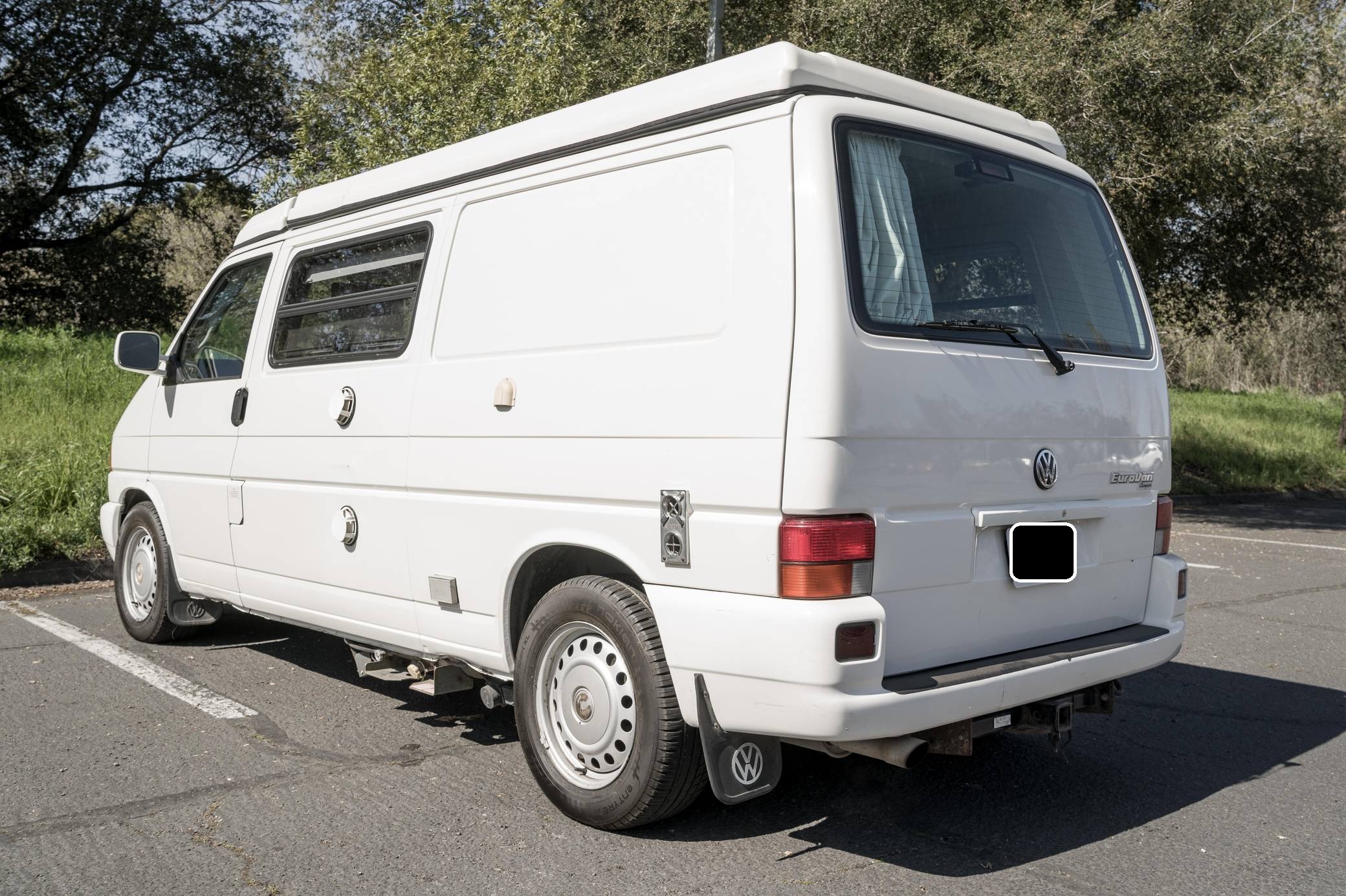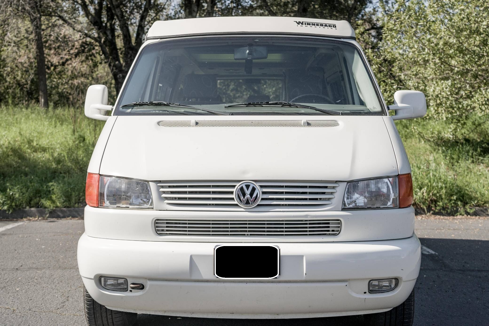 THIS. . . is a 2001 Volkswagen EuroVan Camper, finished in white with a grey interior. Factory equipment includes a 16-inch steel wheels, a hydraulic pop-up roof with sleeping area for two, swiveling front captain's chairs, a folding rear bench seat that converts to a second sleeping area, a two-burner gas stove, a stainless steel sink, two fold-out tables, a refrigerator, and more as detailed below. Modifications are limited to LED interior lighting and a JVC Bluetooth radio. Called "T4" internally, the EuroVan is a descendant of the split-/bay-window Buses and the Vanagon. Volkswagen sold it in the United States during the 1993 model year, and again between 1999 and 2003 when production ended globally. The U. S. -market EuroVan received a big update for the 2001 model year with more power and available 16-inch alloy wheels, while the step-up MV trim level came with a fold-out cabin table and rear-facing middle-row seats. Volkswagen also offered full camper conversions, like this one, finished by Winnebago. Power comes from a 2. 8-liter "VR6", rated at 201 horsepower and 181 lb-ft of torque. Output is sent to the front wheels through a 4-speed automatic transmission.