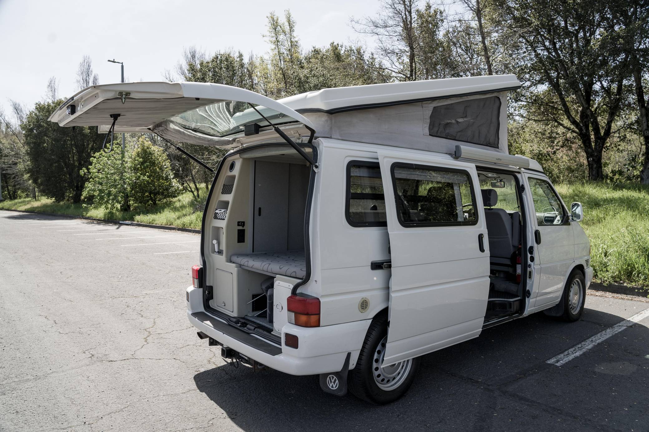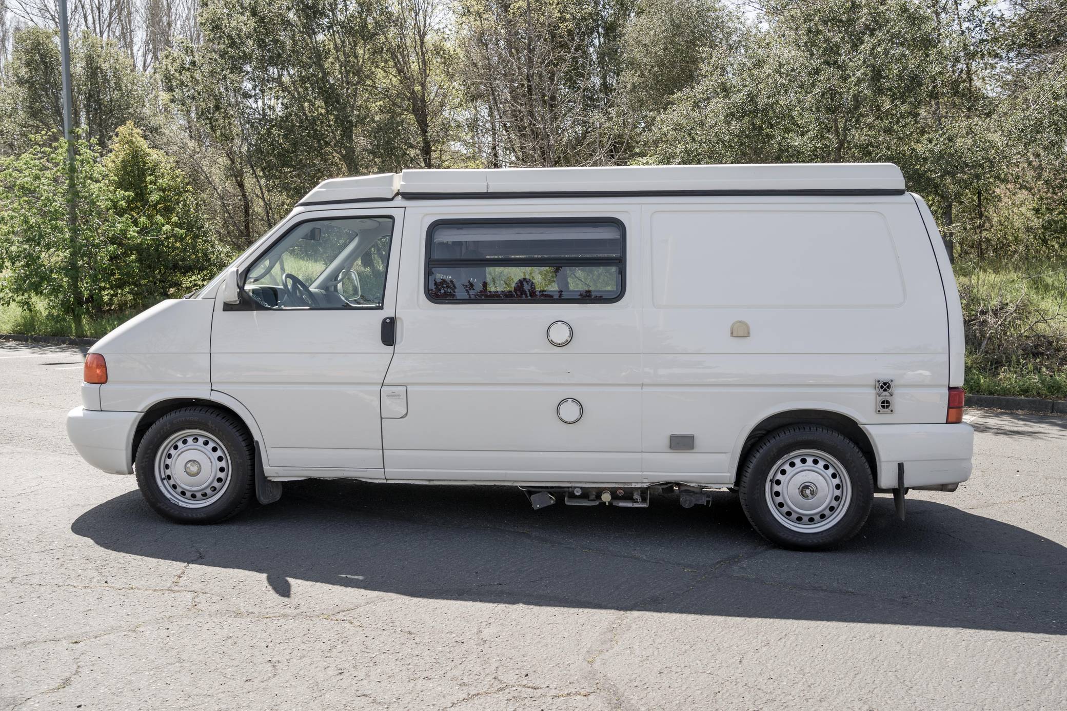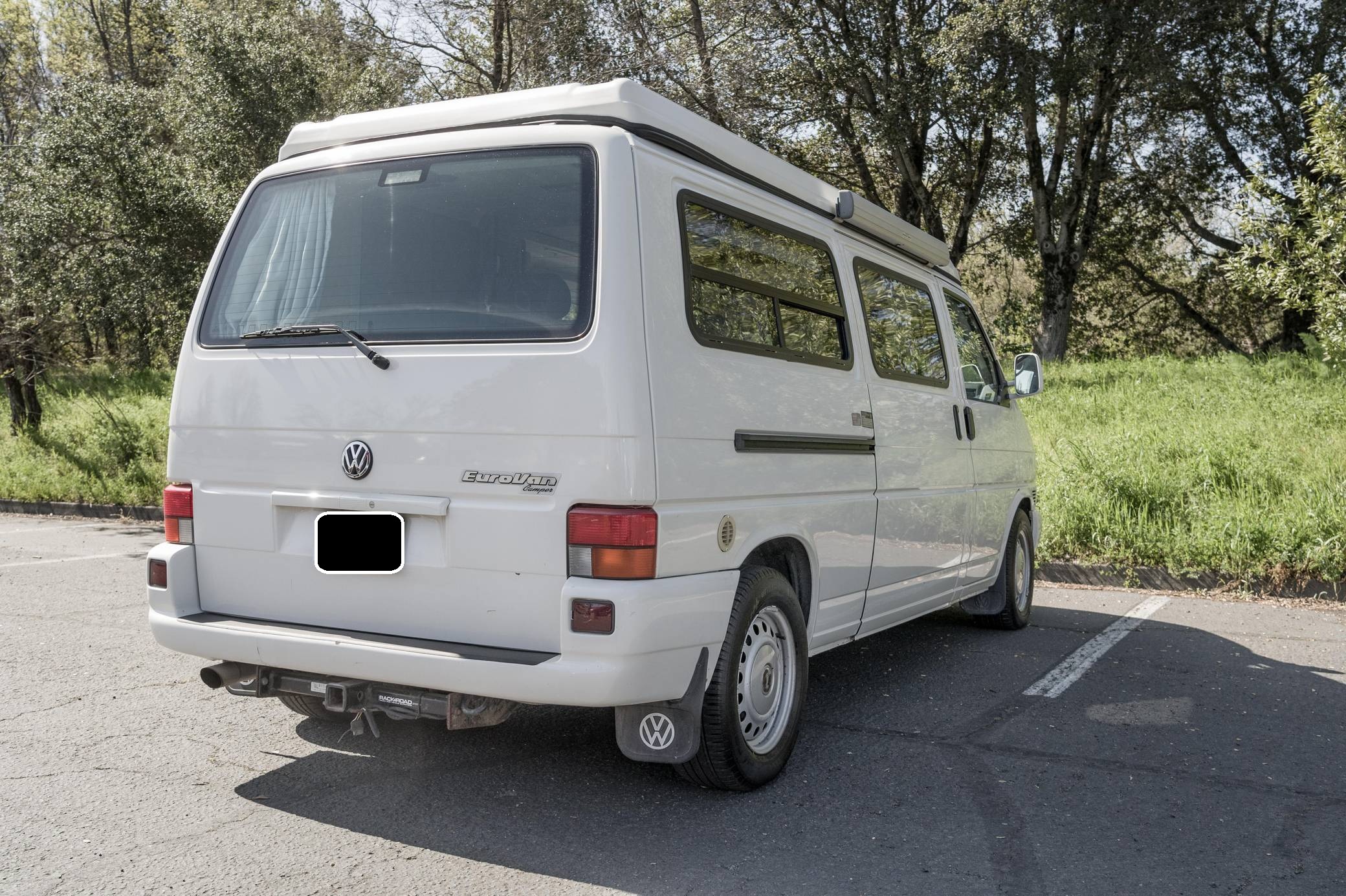 THIS. . . is a 2001 Volkswagen EuroVan Camper, finished in white with a grey interior. Factory equipment includes a 16-inch steel wheels, a hydraulic pop-up roof with sleeping area for two, swiveling front captain's chairs, a folding rear bench seat that converts to a second sleeping area, a two-burner gas stove, a stainless steel sink, two fold-out tables, a refrigerator, and more as detailed below. Modifications are limited to LED interior lighting and a JVC Bluetooth radio. Called "T4" internally, the EuroVan is a descendant of the split-/bay-window Buses and the Vanagon. Volkswagen sold it in the United States during the 1993 model year, and again between 1999 and 2003 when production ended globally. The U. S. -market EuroVan received a big update for the 2001 model year with more power and available 16-inch alloy wheels, while the step-up MV trim level came with a fold-out cabin table and rear-facing middle-row seats. Volkswagen also offered full camper conversions, like this one, finished by Winnebago. Power comes from a 2. 8-liter "VR6", rated at 201 horsepower and 181 lb-ft of torque. Output is sent to the front wheels through a 4-speed automatic transmission.