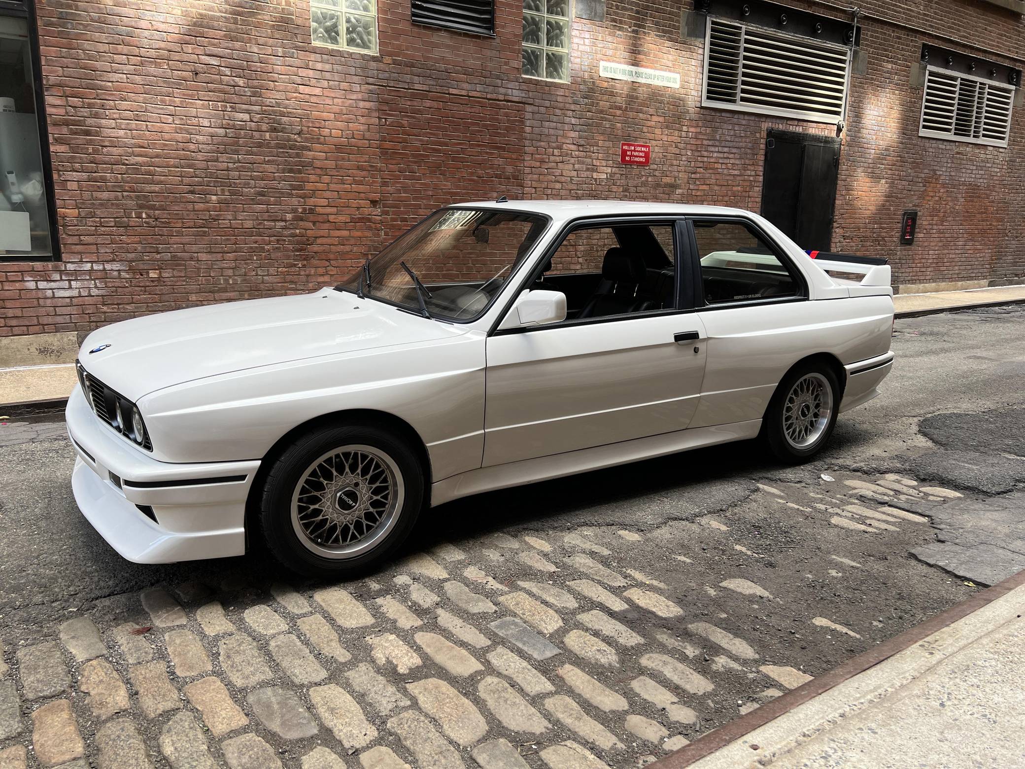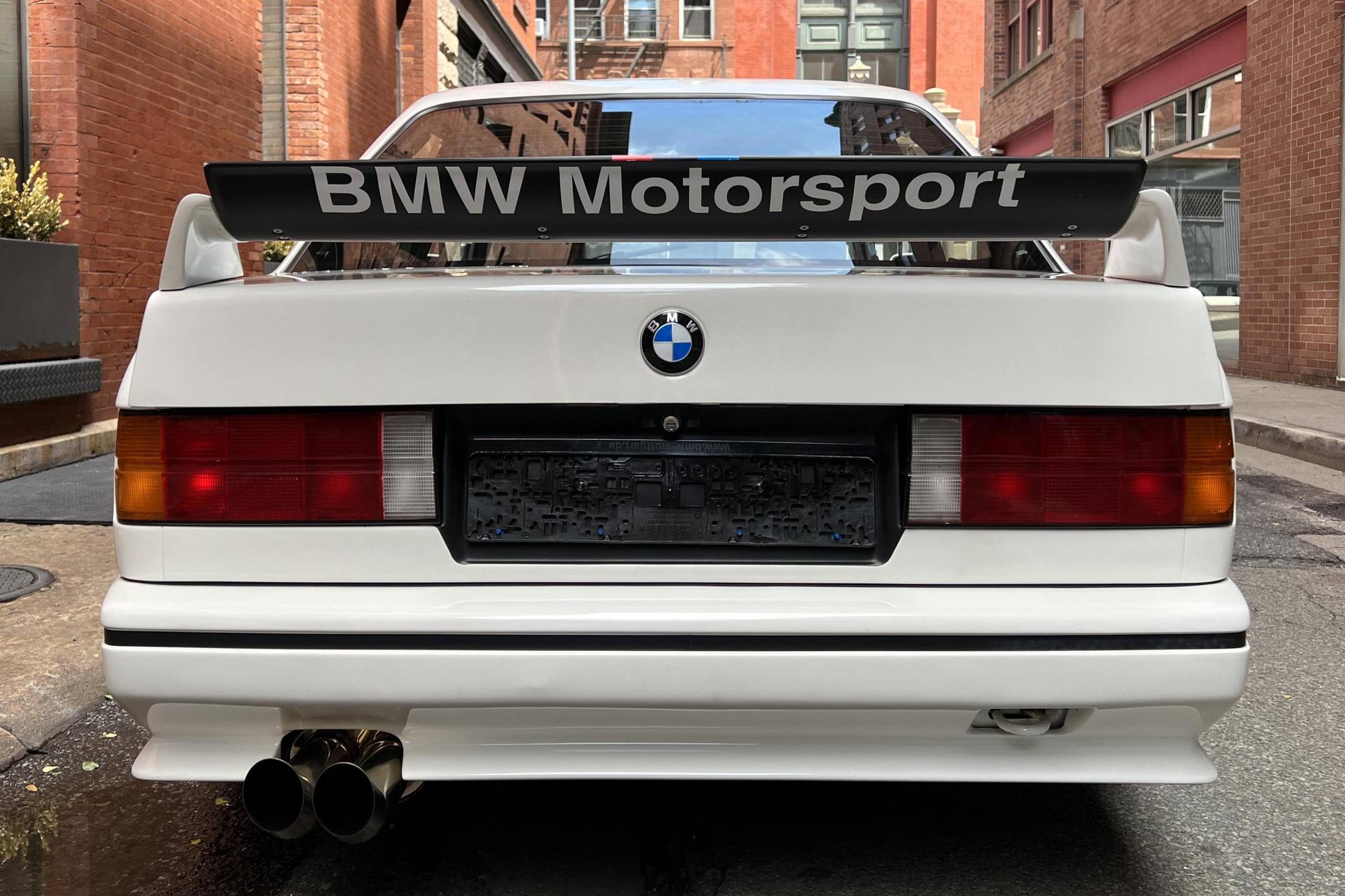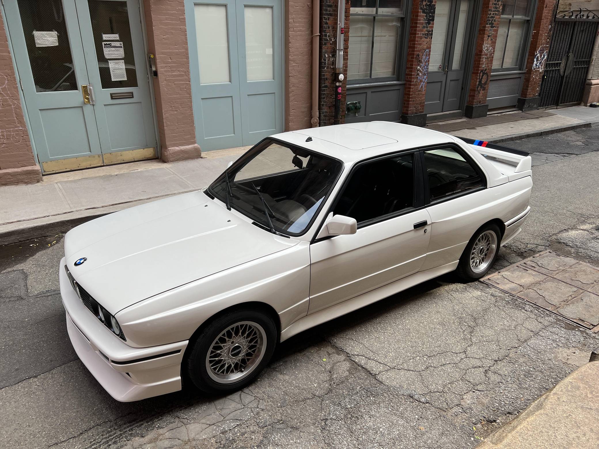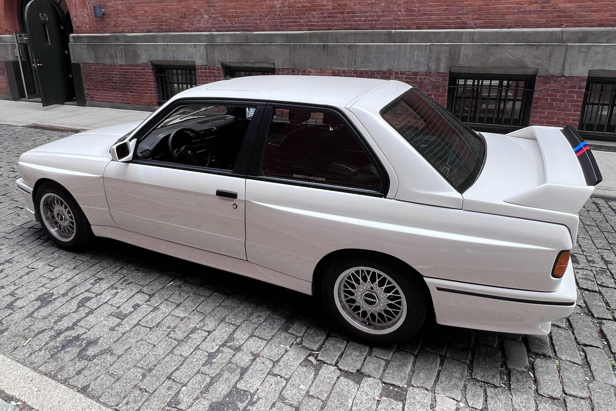 1985 BMW 325e, finished in Alpine White with a black interior. This 325e has been modified with a fiberglass M3-style body kit. Other modifications reported by the seller include aftermarket parts in the exhaust system, 15-inch wheels, a front splitter, and a JVC CD player. More details about the modifications made to this car are provided below. BMW introduced the E30-generation 3 Series in the United States late in the 1983 model year. It was originally offered exclusively with a 4-cylinder engine, but 6-cylinder-powered models were quickly added to the range. The 325e notably joined the line-up for 1984 as the first 6-cylinder-powered E30 sold in the United States. BMW made several updates to the E30 and production ended after the 1991 model year. Power comes from a 2. 7-liter straight-6, rated at 122 horsepower and 169 lb-ft of torque. Part of the "M20" family of engines, it spins the rear wheels via a 5-speed manual transmission.