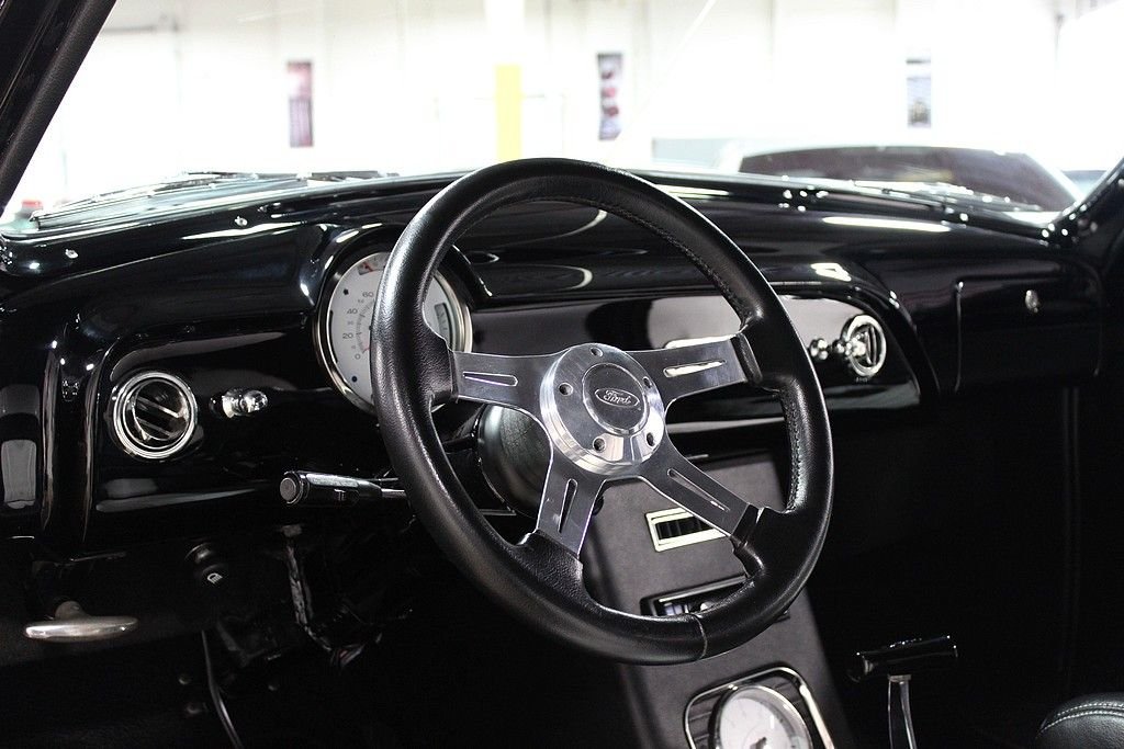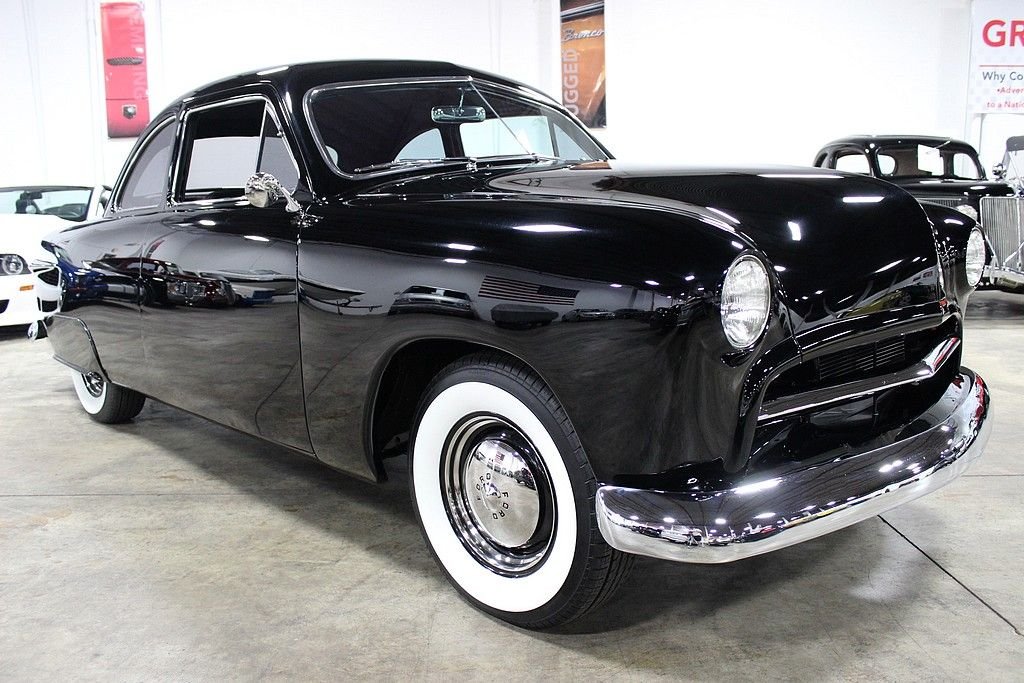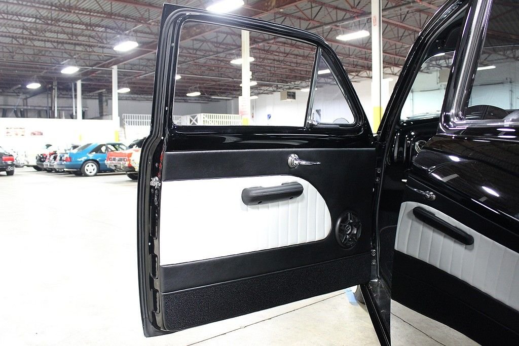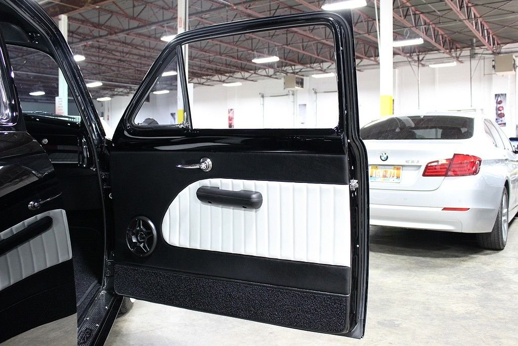 This is a highly customized show worthy vehicle that turns heads everywhere it goes. The '49 Ford was the first all-new automobile design introduced by Ford after WWII . It is popularly referred to as the "Shoebox Ford" for its slab-sided design. The '49 Ford is credited both with saving Ford and ushering in modern streamlined car design with changes such as integrated fenders, the design would continue through the 1951 model year. This car has been completely restored and customized on a dual path. Motor City Rod Shop in Melvindale, MI did all of the work and the car has been featured in numerous shows including the Detroit Autorama. Under the hood is a 302ci 285hp V8 with a Holly 4bbl carb, Holly intake, Edelbrock valve covers, Edelbrock air cleaner, rear oil pan sump and pickup, and a remote oil filter. It is mated to a 3 speed auto with overdrive with a ratchet B&M shifter running out to a '68 Ford Fairlane rear end. The exterior features 3 coats of PPG Deltron base black and 7 coats of POG clear, remote controlled shaved doors, side chrome trim removed, shaved hood and trunk lid, the quarter panels are molded to the body, custom '68 Camaro bumper formed into the grille, LED parking lights, frenched halogen headlights and taillights, tinted windows with a v-butt windshield, steel wheels with '49 hub caps and beauty rings, new drum brakes with a firewall mounted master cylinder. The interior features power windows, power steering, vintage A/C, custom white and black leather seating, '51 Ford dashboard, Alpine radio with SIRIUS and CD player with IPOD hook up, Pioneer speakers, custom gauges, and a customized '60 Thunderbird console with mounted tachometer. Other features include rack and pinion steering with at '79 Trans-Am steering column, air suspension, billet steering wheel, gas cylinder lifts for hood and trunk, and an aluminized exhaust with chromed headers and Flowmaster Super 44 mufflers. This is truly a one-off customized '49 Ford built to a meticulously high level of quality.