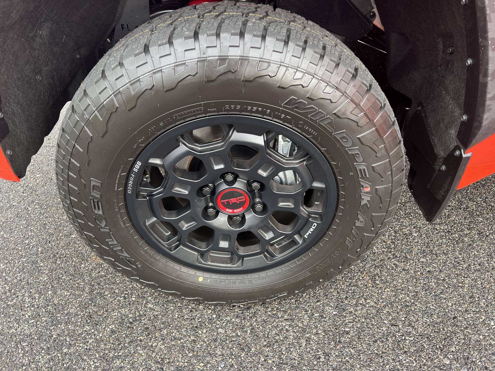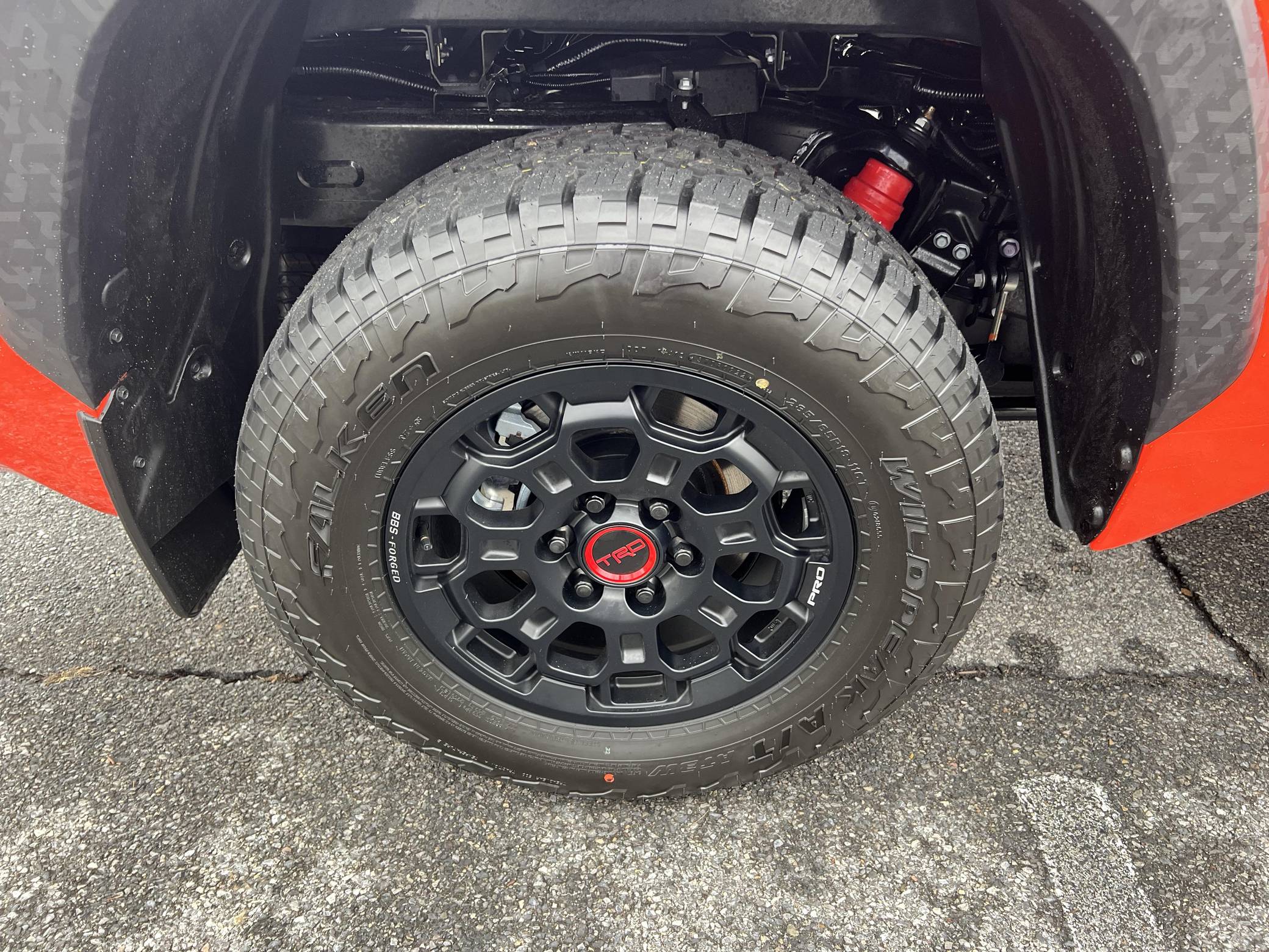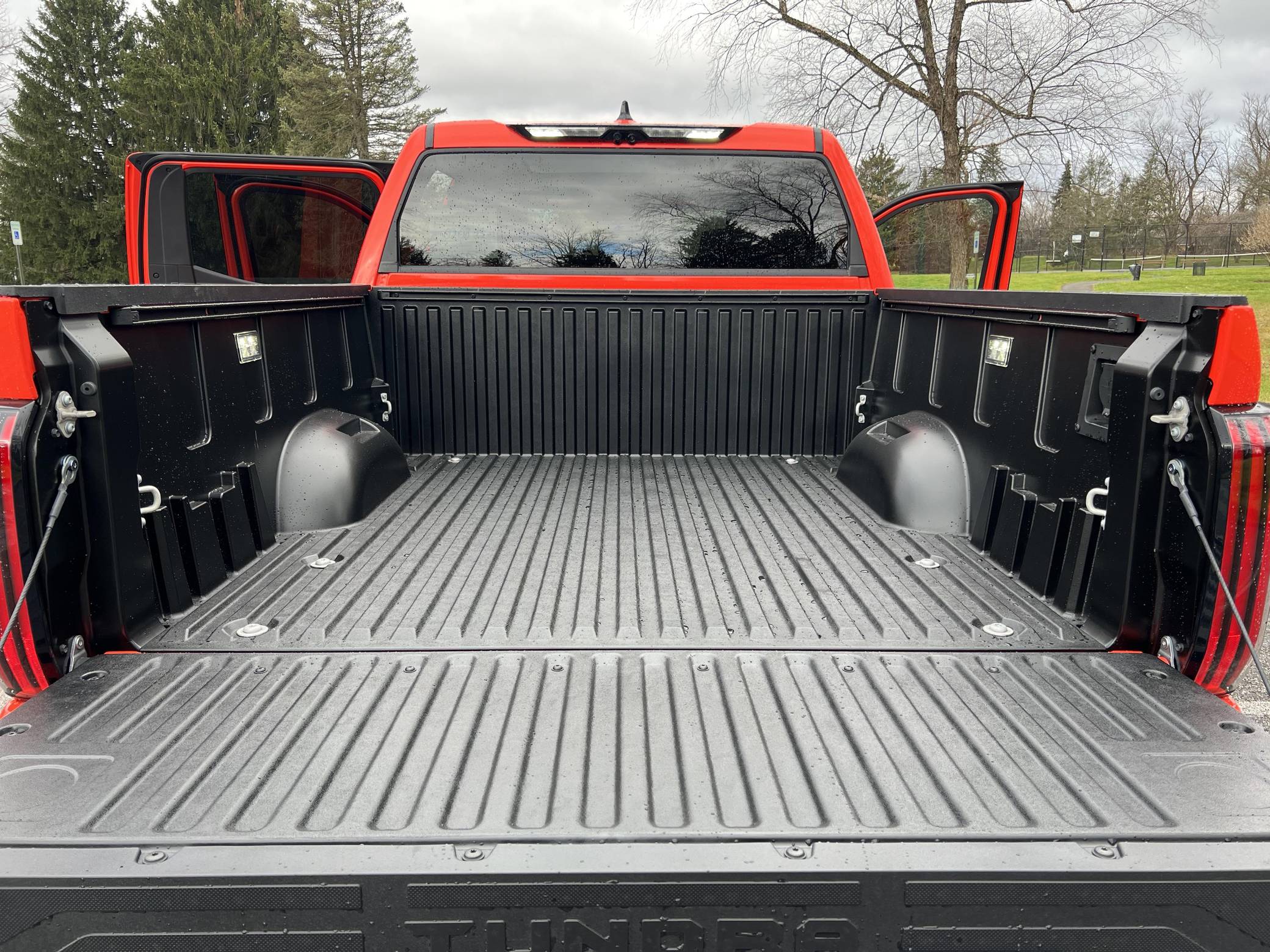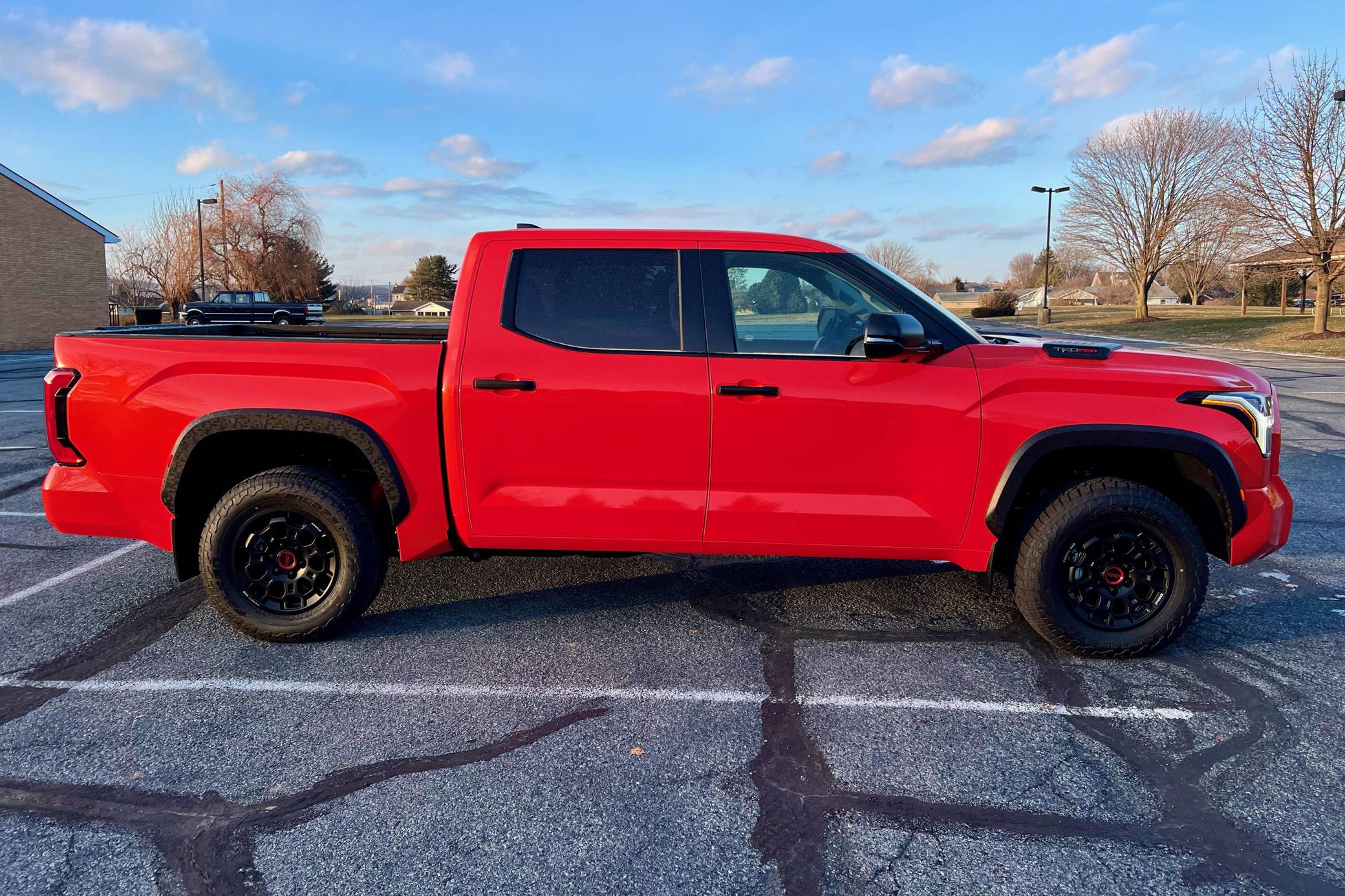 THIS… is a 2023 Toyota Tundra TRD Pro, finished in Solar Octane with a black interior. The odometer on this Tundra currently displays approximately 50 miles. 5. The seller reports no modifications. Called the "XK70" internally, the 3rd-generation Toyota Tundra debuted for the 2022 model year as the long-awaited follow-up to the 2nd-generation Tundra that cemented Toyota as a serious player in the full-size pickup segment. Gone is the V8, replaced by a turbocharged and (in some cases) electrified 6-cylinder options that not only helped increase fuel economy, but towing capacity and max payload as well. As before, an off-road-focused TRD Pro trim level is offered that combines muscular styling cues with genuine go-anywhere capabilities. Power comes from an "I-FORCE MAX" gasoline-electric hybrid powertrain, which consists of a 3. 5-liter twin-turbocharged V6 engine and an electric motor/generator. The system is rated at a combined 437 horsepower and 583 lb-ft of torque. Output is sent to the rear or all four wheels via a 10-speed automatic transmission and a 4WDemand part-time 4-wheel drive system with an electronically-controlled transfer case.