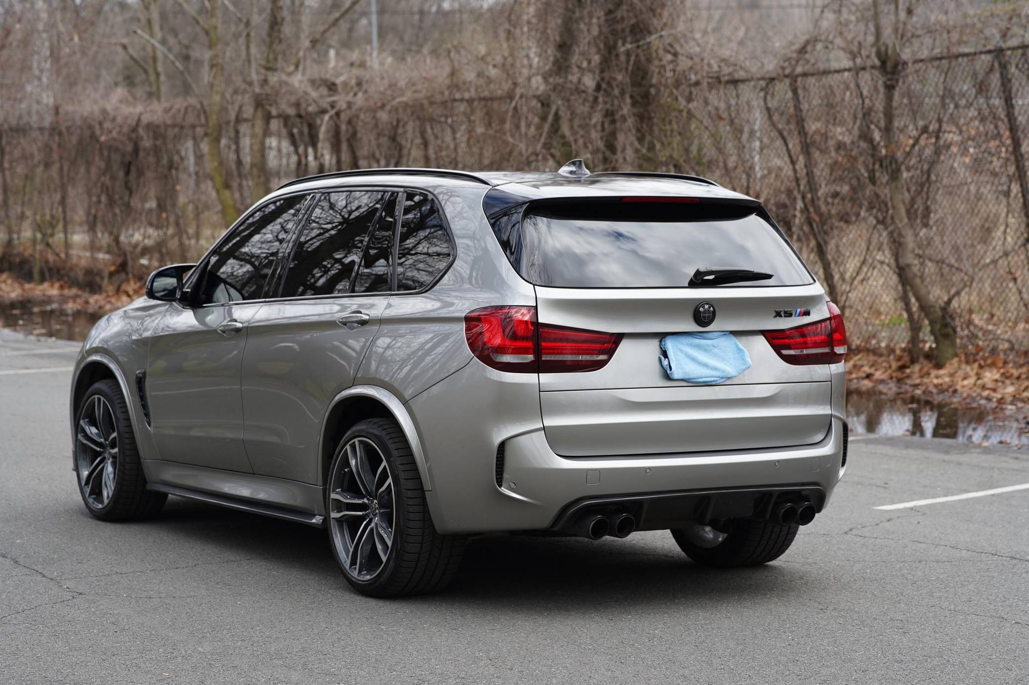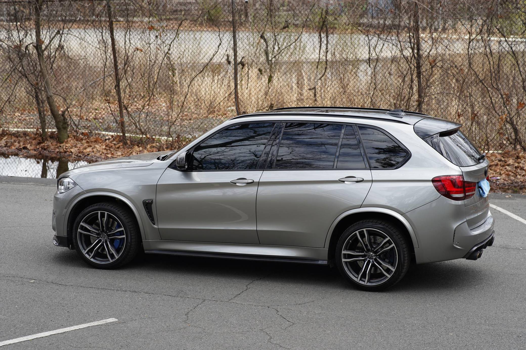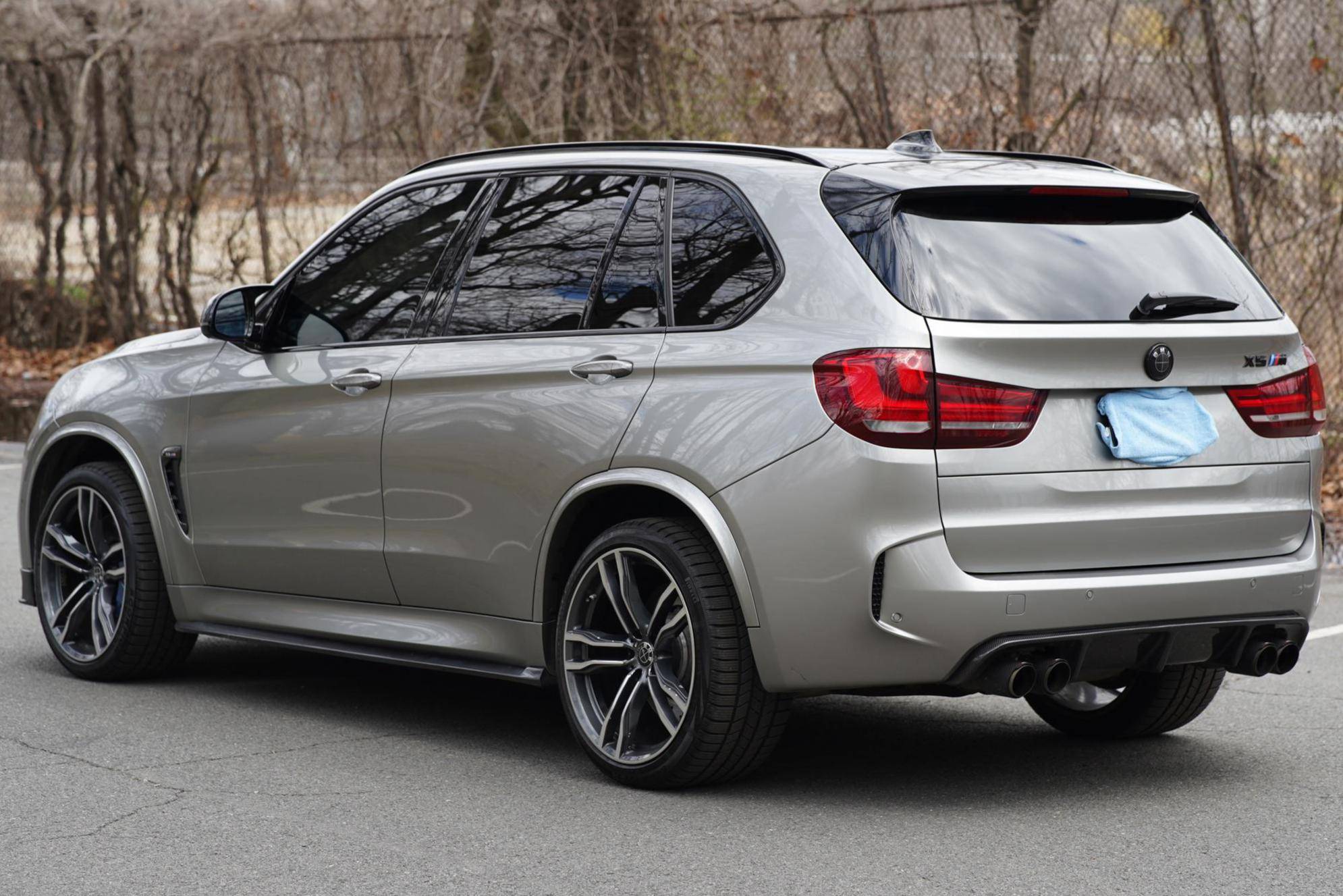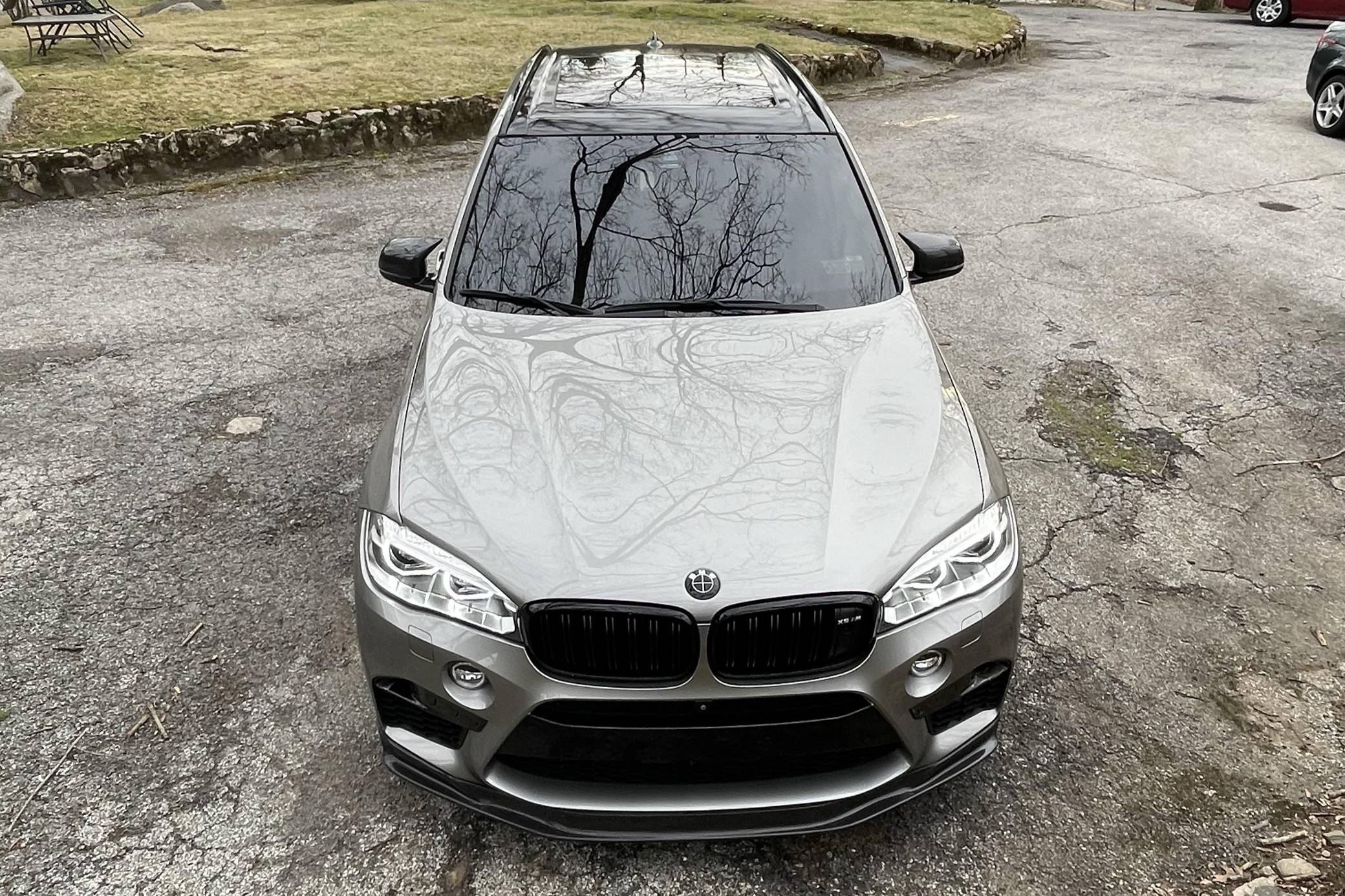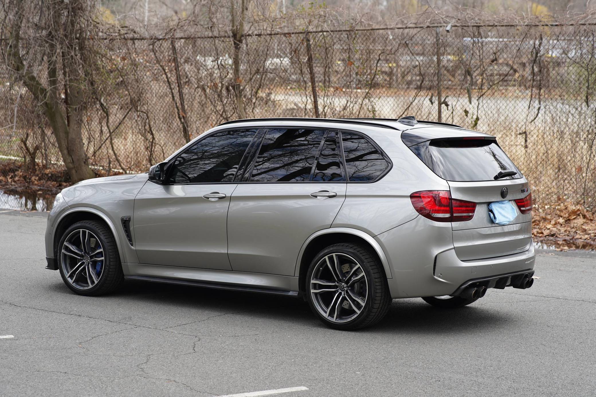 2017 BMW X5 M, finished in Donington Grey Metallic with a Mugello Red interior. According to the build sheet provided in the gallery, factory equipment includes the Executive and Driver Assistance Plus packages, 21-inch Style 612M alloy wheels, a Bang & Olufsen sound system, full Merino leather upholstery, Comfort Access keyless entry, power-adjustable heated and ventilated front seats, and more as detailed below. Modifications include an Akrapovic cat-back exhaust system, an RK-Tunes air intake, various carbon fiber pieces around the exterior, and a stow-away front license plate holder. Service documentation in the photo gallery shows that this X5 M received a replacement engine from a BMW dealership in February 2021 at 31,022 miles. Called "F85" internally, BMW's second-generation X5 M rode on an updated version of its predecessor's underpinnings, but it was slightly larger inside and out. Of course, it retained the unique split tailgate that provides a small bench seat. Inside, the technological leap included a digital instrument cluster and a widescreen display with BMW's latest iDrive infotainment software. The twin-turbocharged "S63" V8 saw an increase in horsepower over its predecessor, and was paired with an all new 8-speed automatic transmission that BMW claimed could propel it to 60 mph in the low 4-second range. Power comes from an "S63" 4. 4-liter, twin-turbocharged V8, rated at 567 horsepower and 553 lb-ft of torque. Due to the modifications performed to this X5 M, it may produce more power, but a dyno sheet was not provided to confirm. Output is sent to all four wheels through an 8-speed automatic transmission and M-tuned xDrive all-wheel drive system.