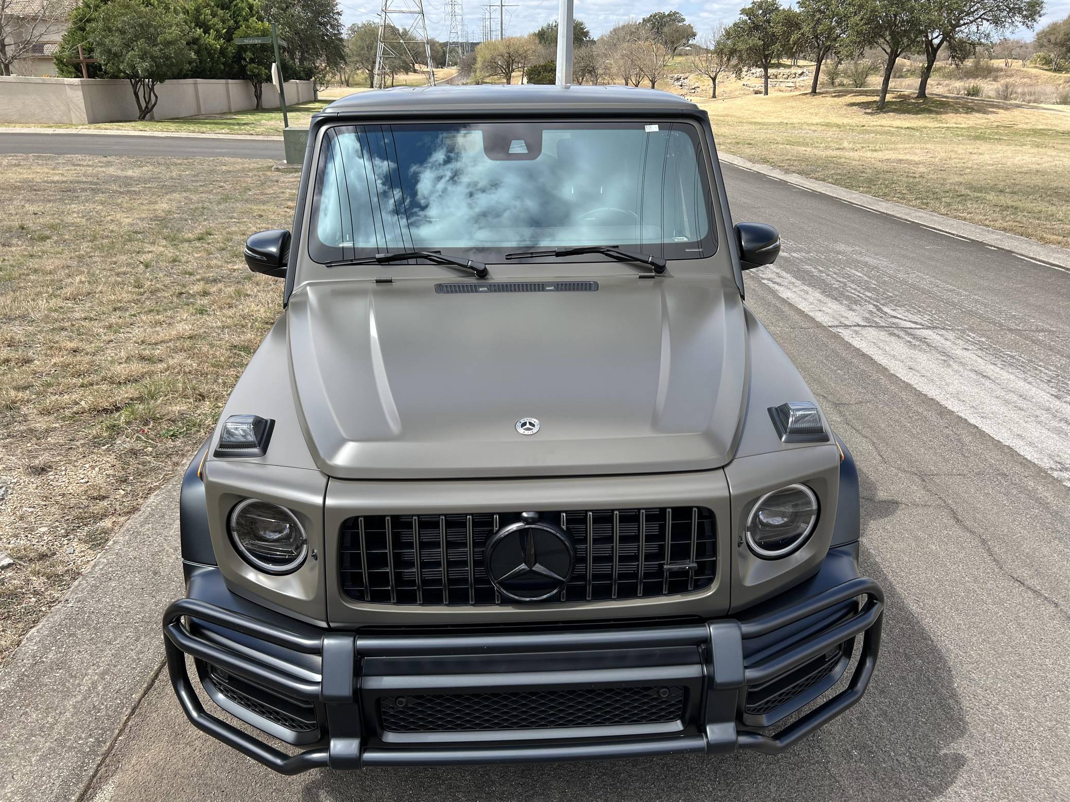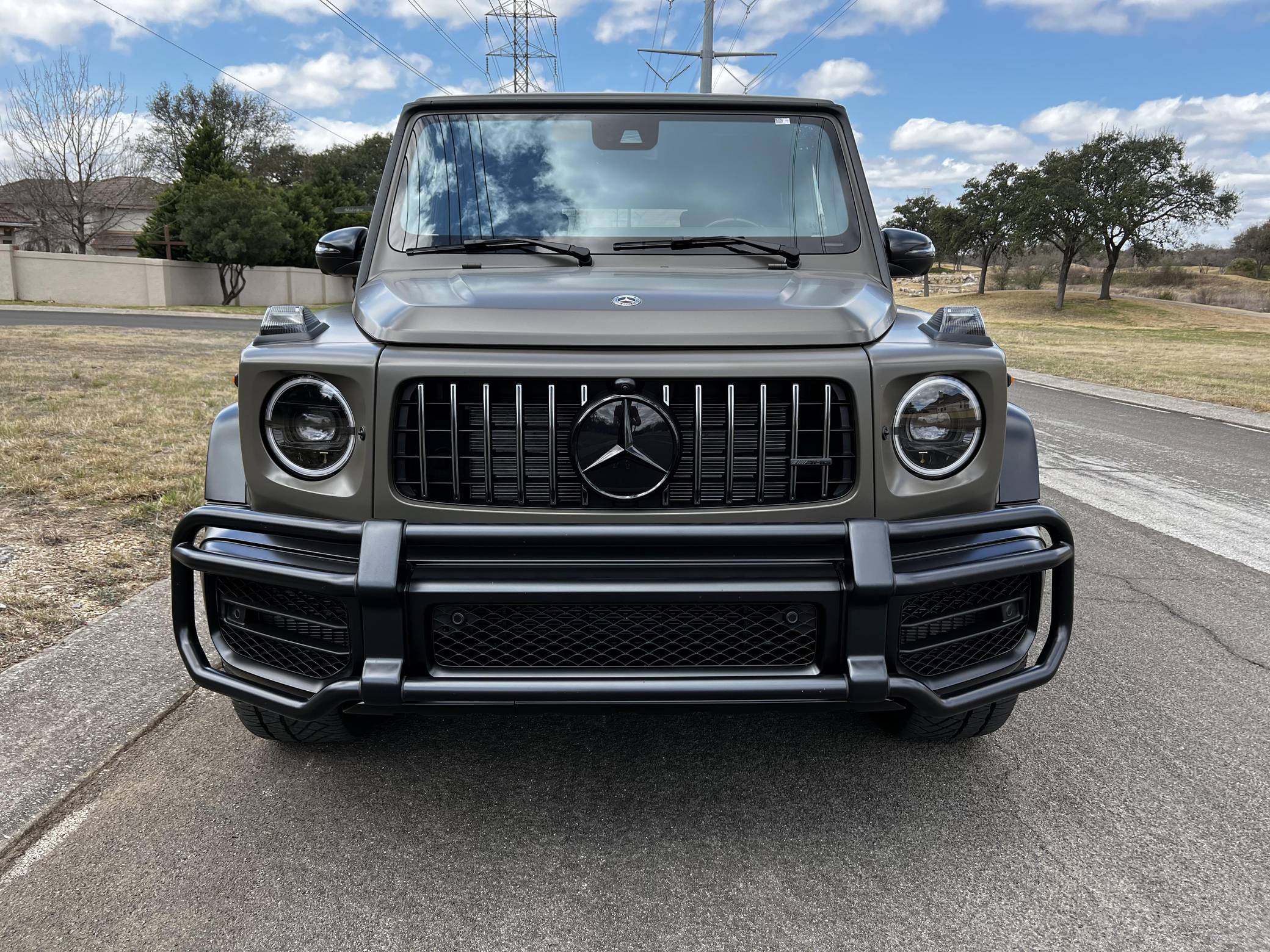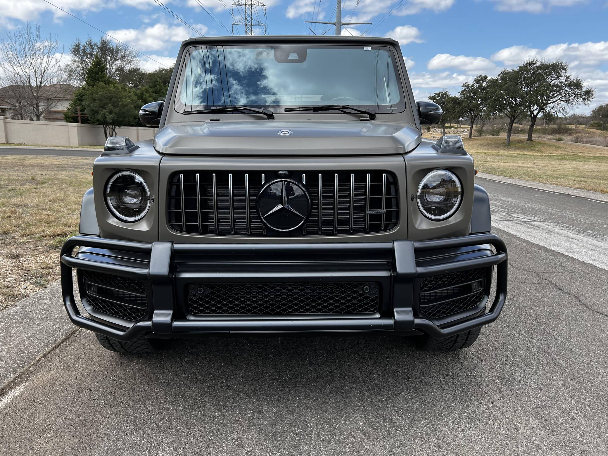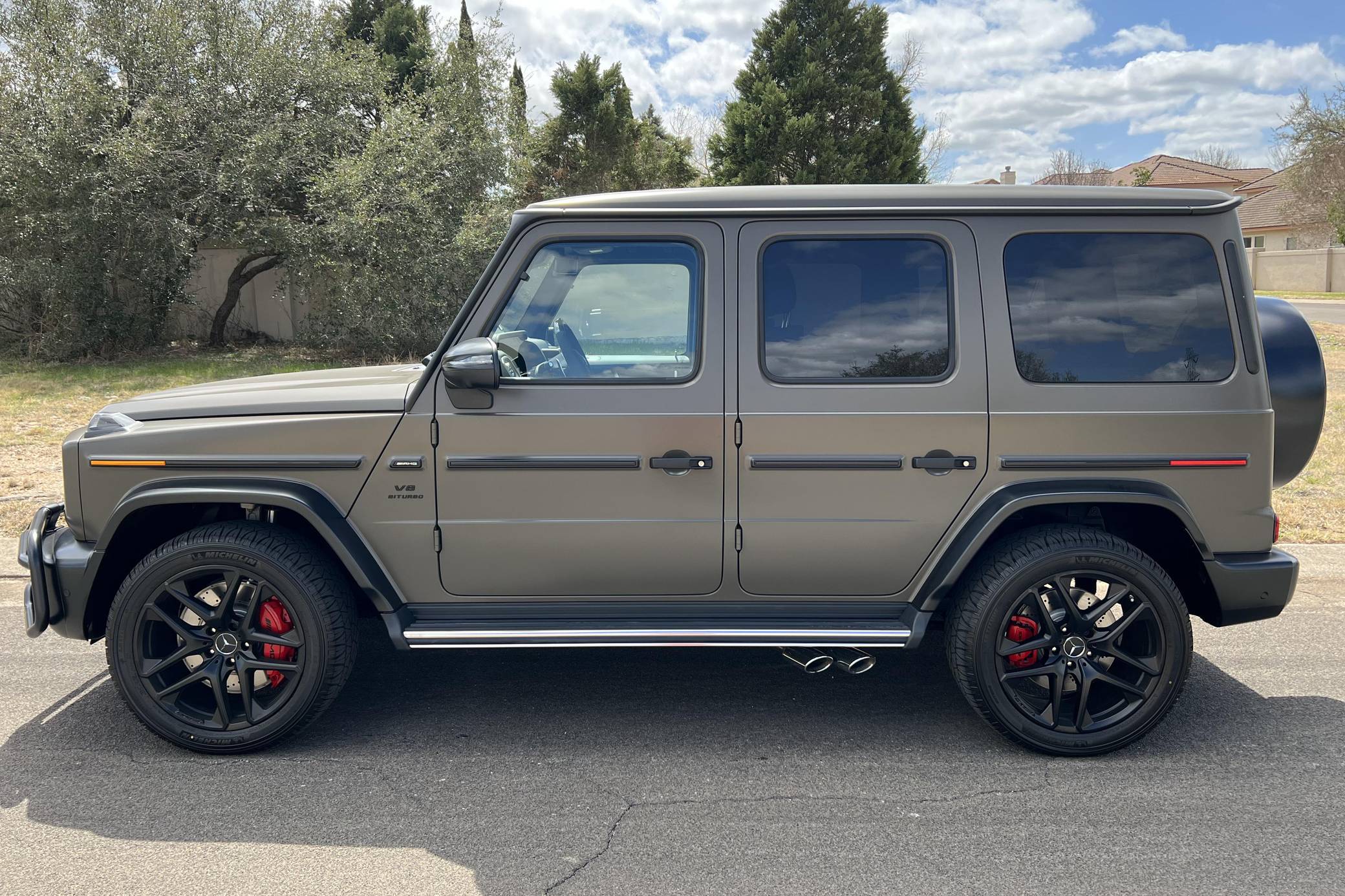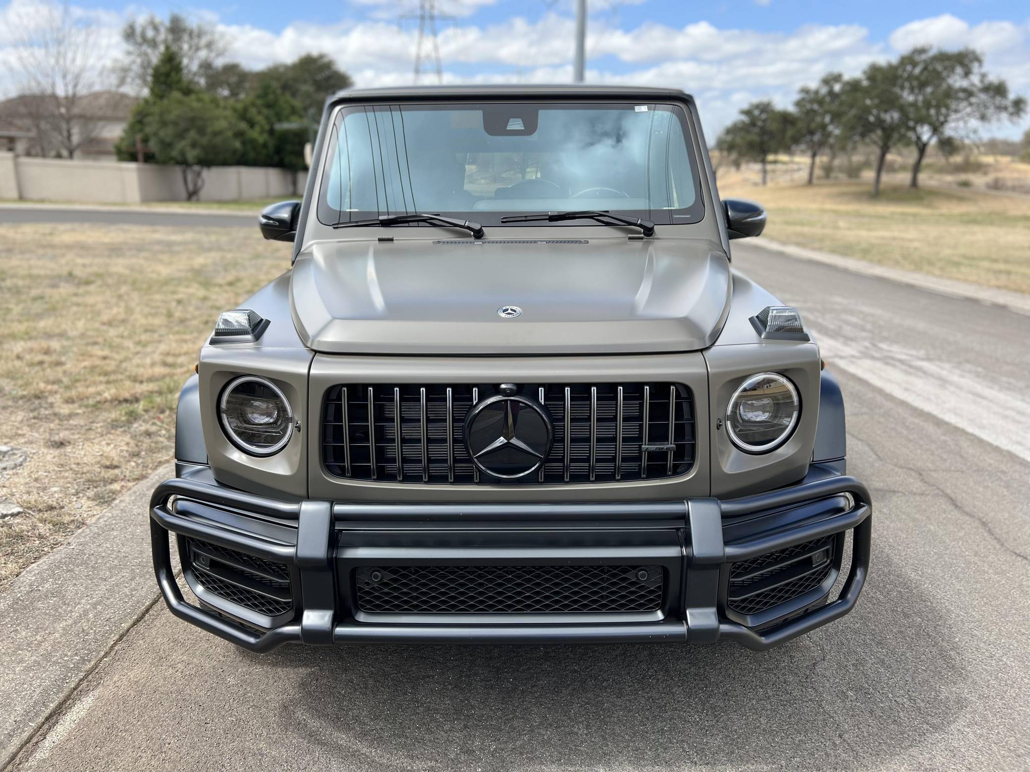 THIS. . . is a 2021 Mercedes-AMG G63, finished in Dark Olive Green Magno with a Designo Black interior. The build sheet pictured in the gallery shows that this G63 cost $176,070, including $19,620 in options. It's equipped with the AMG Night Package Magno, the Seat Comfort Package, 21-inch wheels, locking front, center, and rear differentials, an AMG Performance exhaust system, carbon fiber interior trim, heated rear seats, 64-color ambient lighting, and a Burmester surround sound system, among other features. The seller reports no modifications. Mercedes-Benz gave the emblematic G-Class its first complete overhaul for the 2019 model year. Still built in Graz, Austria, the off-roader wore an evolutionary exterior design but it was entirely new beneath the sheet metal; the exterior door handles were one of the three components carried over from the old to the new G. Mercedes-Benz notably redesigned the frame and the steering system, and it stuffed more tech features into the cabin, but it kept the three locking differentials. Power comes from a 4. 0-liter twin-turbocharged V8, rated at 577 horsepower and 627 lb-ft of torque. Called "M177" internally, it spins the four wheels via a 9-speed automatic transmission.