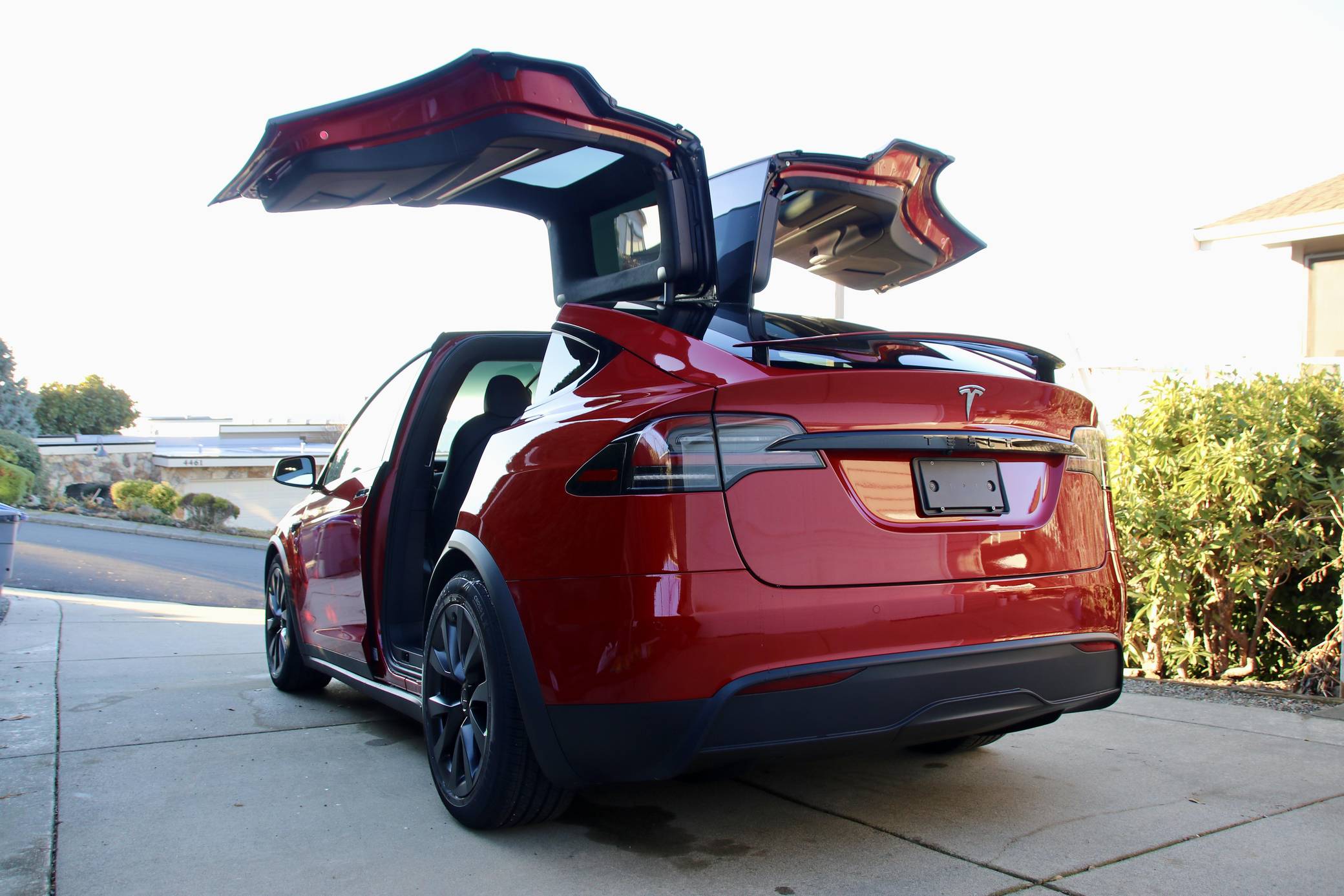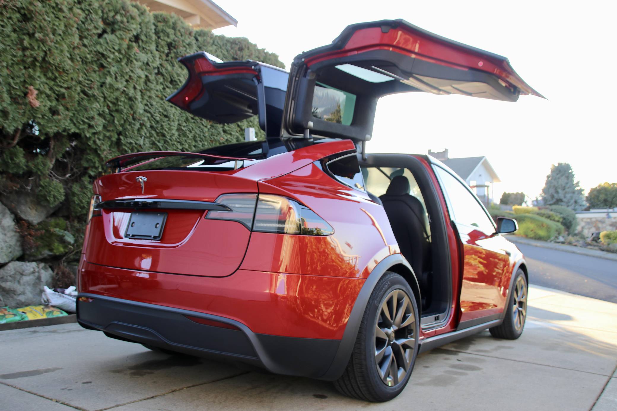 THIS… is a 2023 Tesla Model X, finished in Red Multi-Coat with a black interior. A partial list of notable equipment includes 20-inch Cyberstream wheels, LED exterior lighting, heated and ventilated front seats, heated rear seats, a yoke steering wheel, seven-seat interior configuration, a 17-inch touchscreen for the infotainment system, Autopilot technology, and more as detailed below. The seller reports no modifications. Tesla introduced the Model X for the 2016 model year as a taller, more spacious alternative to the Model S. It stood out from other crossovers with unusual double-hinged falcon rear doors. It has gone through several powertrain and interior evolutions since its launch, and it's still available new today. Power comes from two electric motors, which draw electricity from a 100-kilowatt-hour lithium-ion battery pack to zap the four wheels with 670 horsepower. The Model X earned a maximum driving range rating of 348 miles from the EPA.