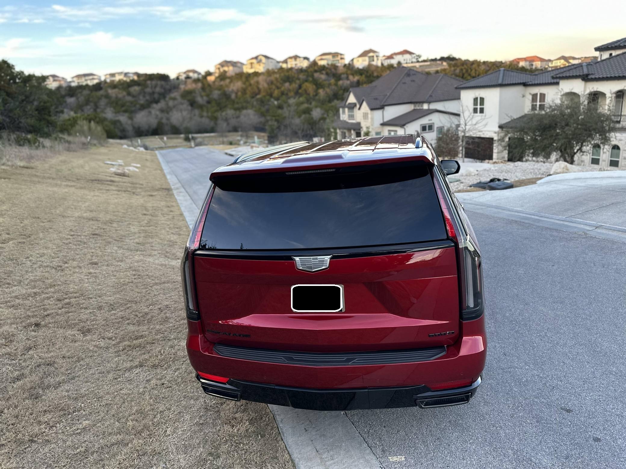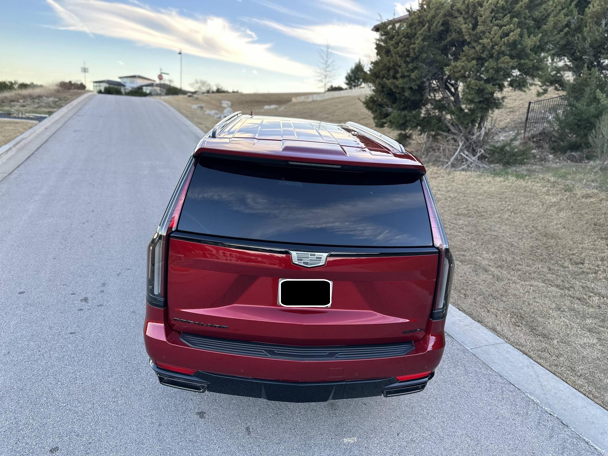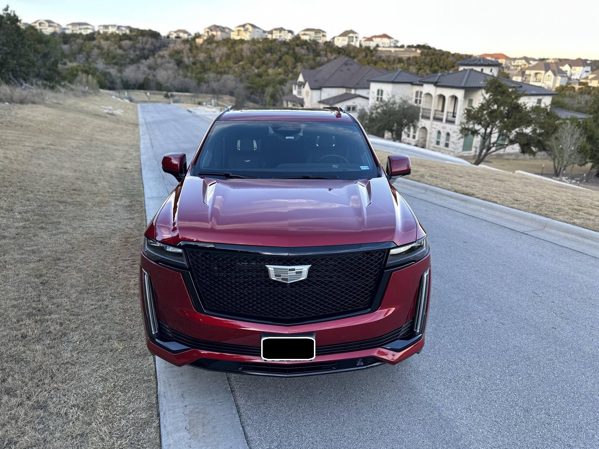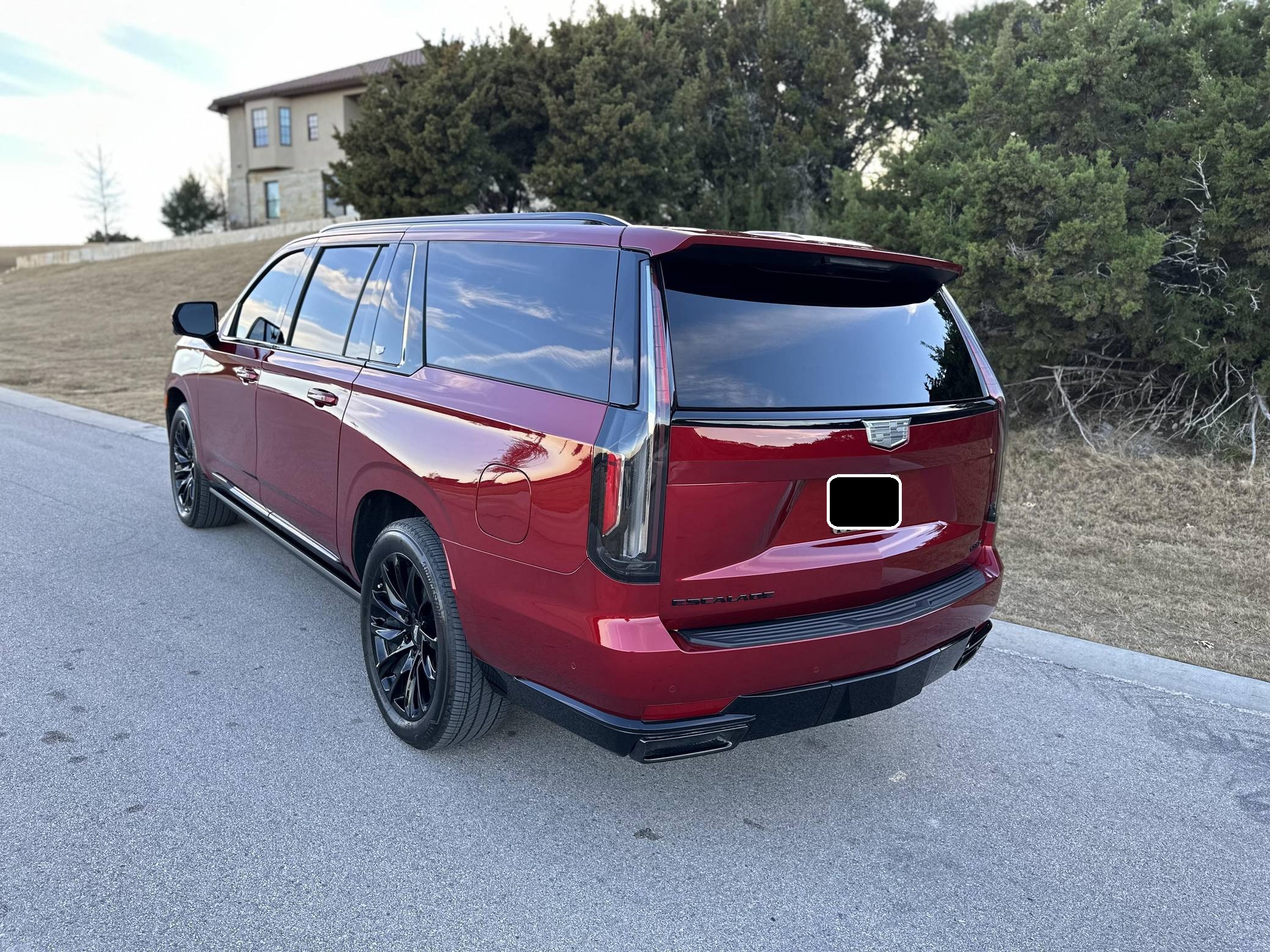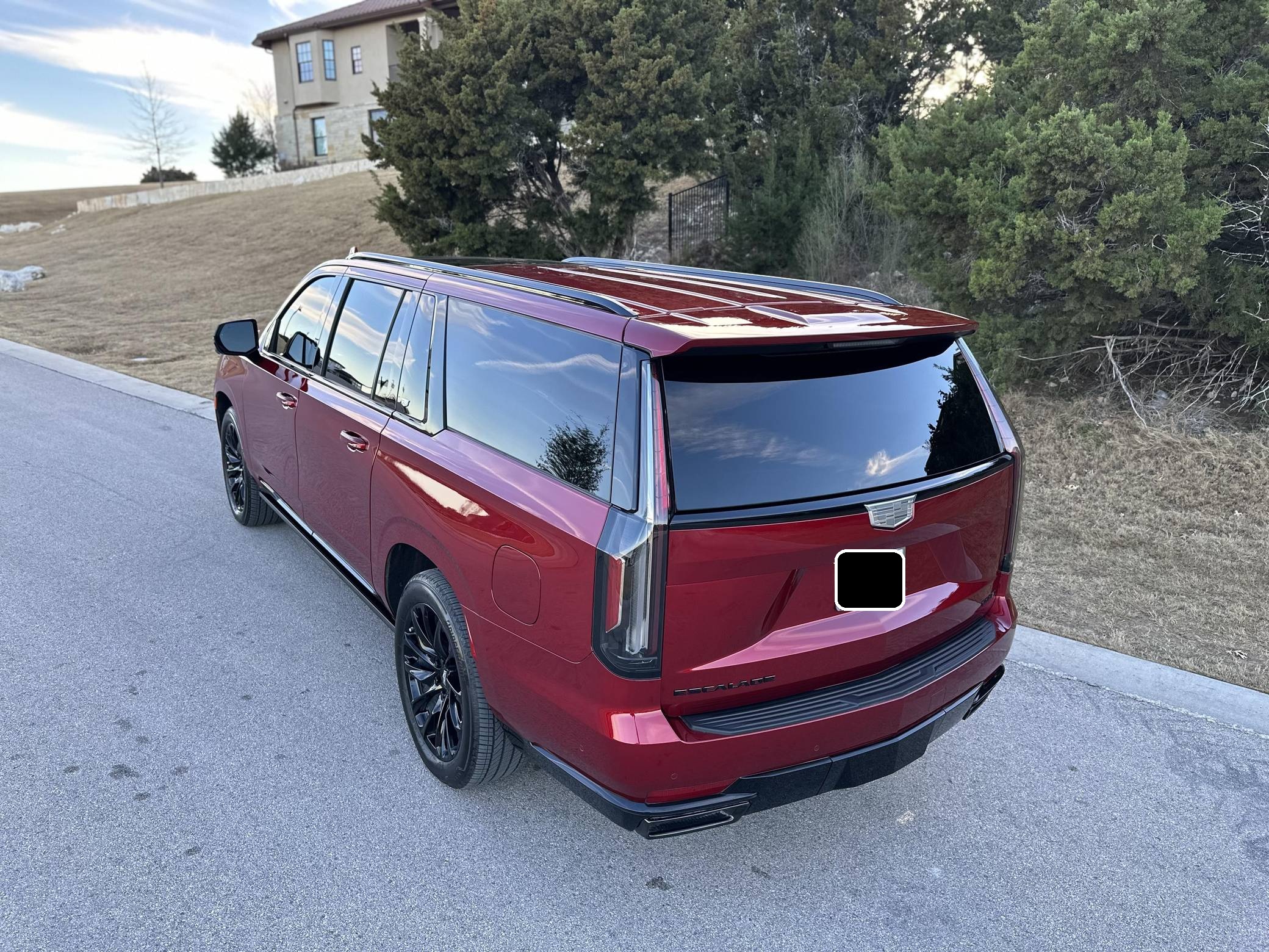 THIS. . . is a 2023 Cadillac Escalade ESV 4WD Sport Platinum, finished in Radiant Red Tintcoat with a Dark Auburn and black interior. A partial list of notable equipment includes the Onyx Package, an electronic limited-slip differential, air ride adaptive suspension, Magnetic Ride Control, power side steps, a panoramic sunroof, semi-aniline leather upholstery, heated and ventilated front seats, heated second-row captain's chairs, a rear entertainment system, wireless Android Auto and Apple CarPlay, an AKG 36-speaker audio system, a console refrigerator with freezer, and night vision. The seller reports no modifications. Cadillac launched the fifth and current generation Escalade for 2021, which brought significant improvements to interior space, particularly for the second- and third-row passengers, as well as the onboard technology features, refinement, and performance. Power comes from a Duramax "LM2" 3. 0-liter turbodiesel inline-6 engine, rated at 277 horsepower and 460 lb-ft of torque. Output is sent to the rear or all four wheels via a 10-speed automatic transmission.