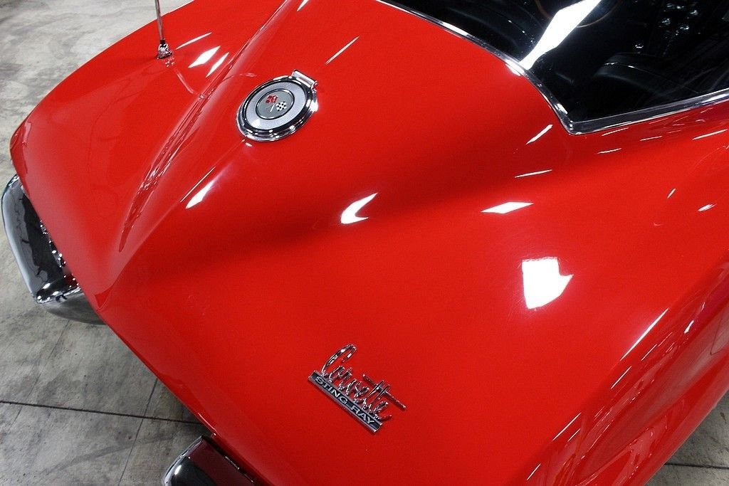 Son of a Gun — just what the Corvette needed, more power! Chevrolet has replaced last year's top-of-the-line 396-cu. in. engine with a 427. According to the factory, horsepower remains unchanged at 425, but torque has gone up from 415 lbs/ft. at 4000, to 465 at the same rpm. We asked one Chevrolet man why the increase in displacement and torque didn't have a parallel increase in horsepower. "This was done primarily to save weight," he said, with a twinkling eye; "you must remember that cast-iron is very heavy, and by removing thirty cubic inches of it, we have made a significant reduction in weight."” – From the 1965 Issue of Car and Driver Magazine With what's believed to be the original block to the engine, the rest has seen its upgrades from the head to the carburetor ad has been matched to a newer Muncie 4-speed transmission to keep true to the era. We are told there is also a 3.73 rear end installed, rack and pinion steering and hosts front and rear power disc brakes to keep the drive comfortable and smooth. The interior hosts a very similar color but with all new leather and acoustics completed to it, a Retro-Sound system with Bluetooth capability looks almost like a stock stereo but with a digital readout and hides a kill switch below the dash for when you go to store it or ensure it won't go far without you! With many other great parts used but without disrupting the instant nostalgia, this is a great find for those in love with the C-2 era Corvette but prefer one that has the work completed to make it a real enjoyable ride!