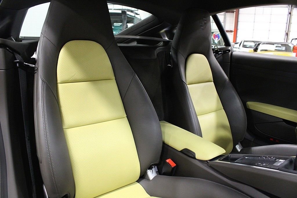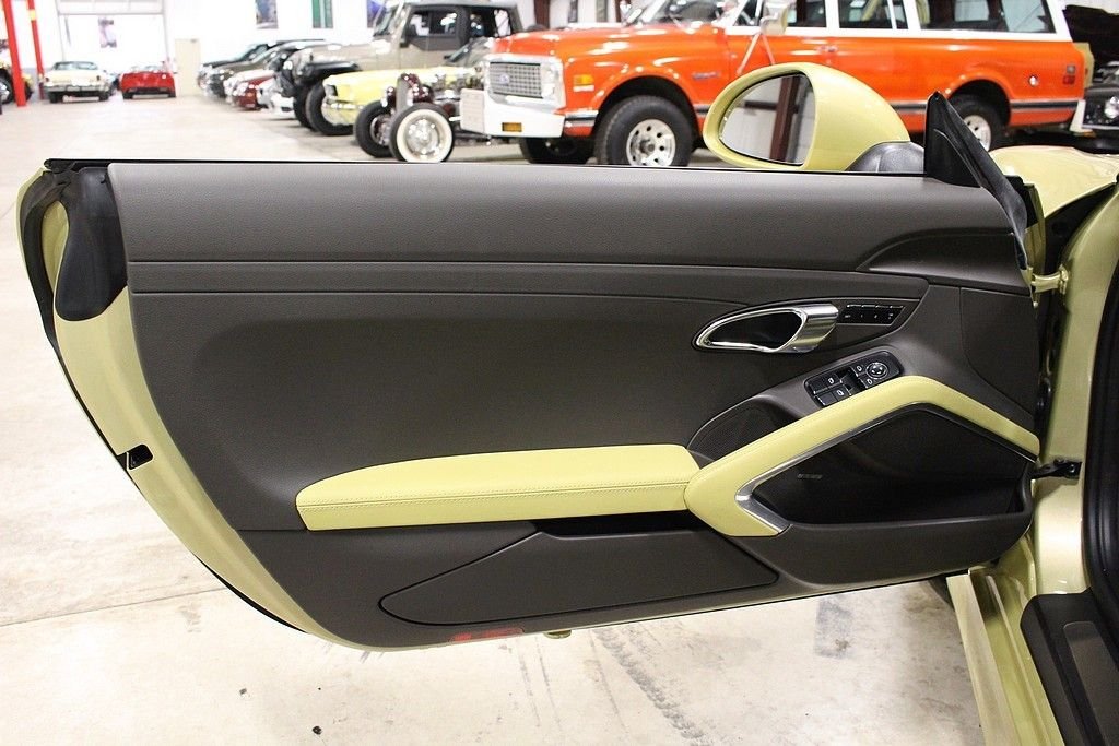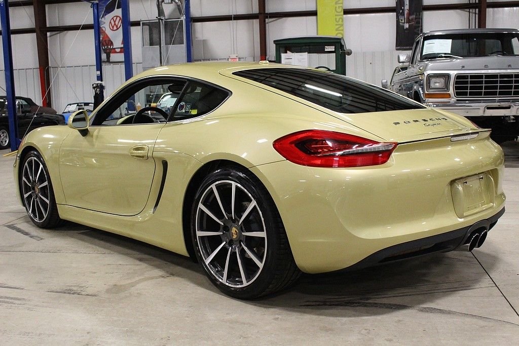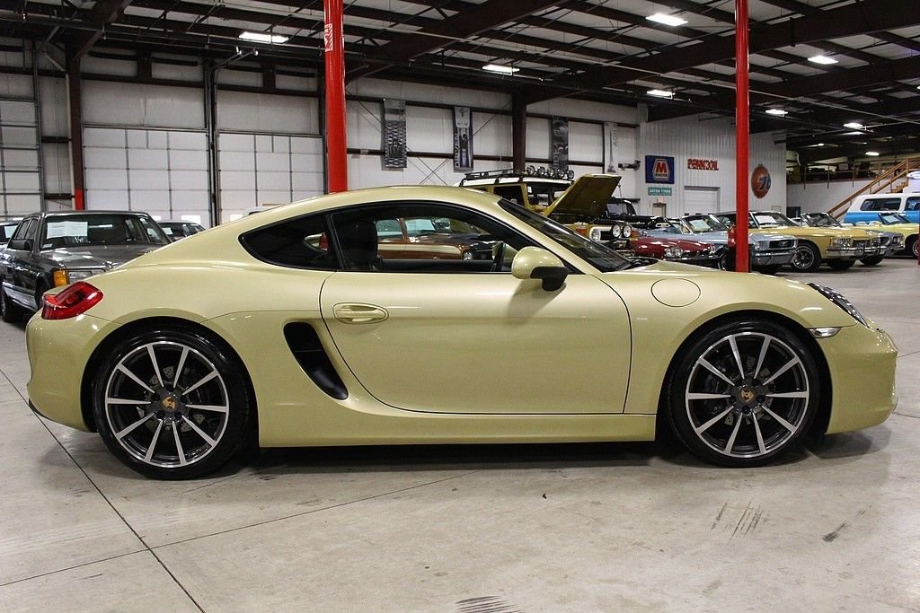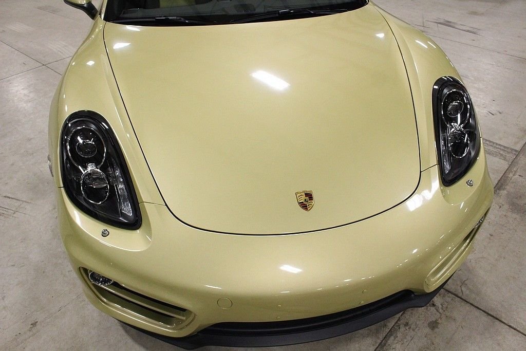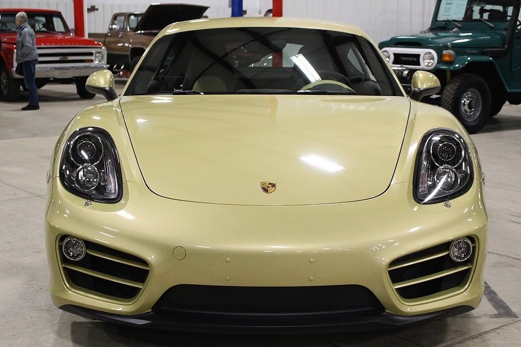 Porsche introduced its Cayman in 2005. The car was based on the popular mid-Boxster chassis and initially marketed as an entry level sports coupe for the brand. The Cayman quickly raised some eyebrows as it's mid engine configuration demonstrated handling capabilities that rivaled any class of sports car. Since, in typical Porsche fashion, the Cayman has been refined and for 2014, has evolved into one of the best overall sports cars on the market and winning over the likes of professional driver Walter Rohrl form its flagship 911 in overall driving experience. The 2014 Porsche Caymen offered here comes dressed in special order option Lime Gold Metallic exterior paint over two tone Agate Grey / Lime Gold leather interior. Options include: 6 speed manual transmission, 20 inch Carrera Classic II wheels, Wheel Centers with Color Crests, PASM , Bi-Xenon Headlamps with Dynamic Corner Lights, Interior Leather Package, Power Sport Seats with 14 Way Memory Package, Premium Package, Info Package, Bose Premium Surround Sound System, Dory Entry Guards SS, Sports Tailpipes, Porsche Crest Embossed headrests etc. Other highlights include Navigation, Heated Seats, Homelink, Bluetooth, Universal multimedia interface, Anti-Dazzle interior mirror, clear bra and a host of other goodies.