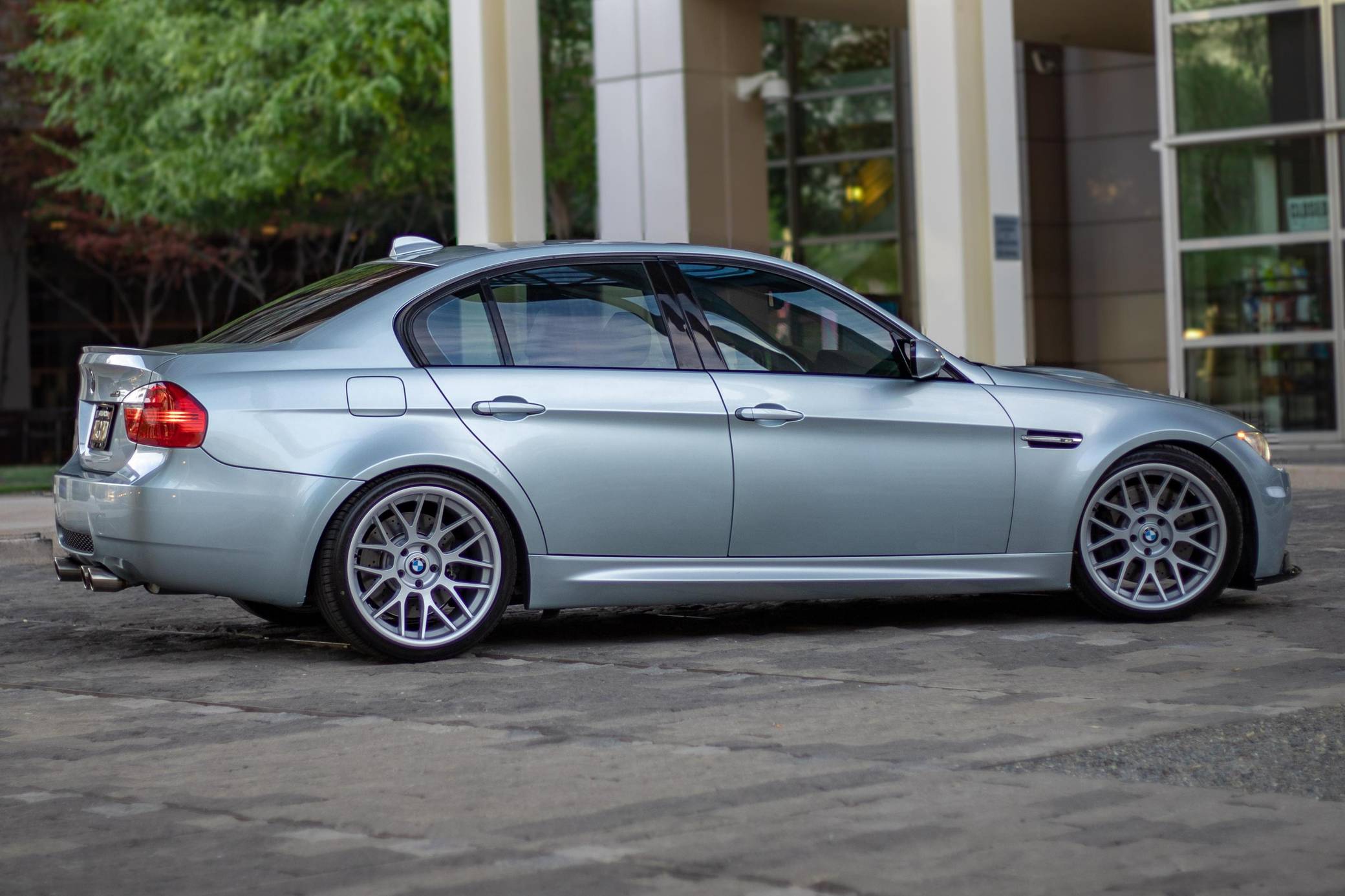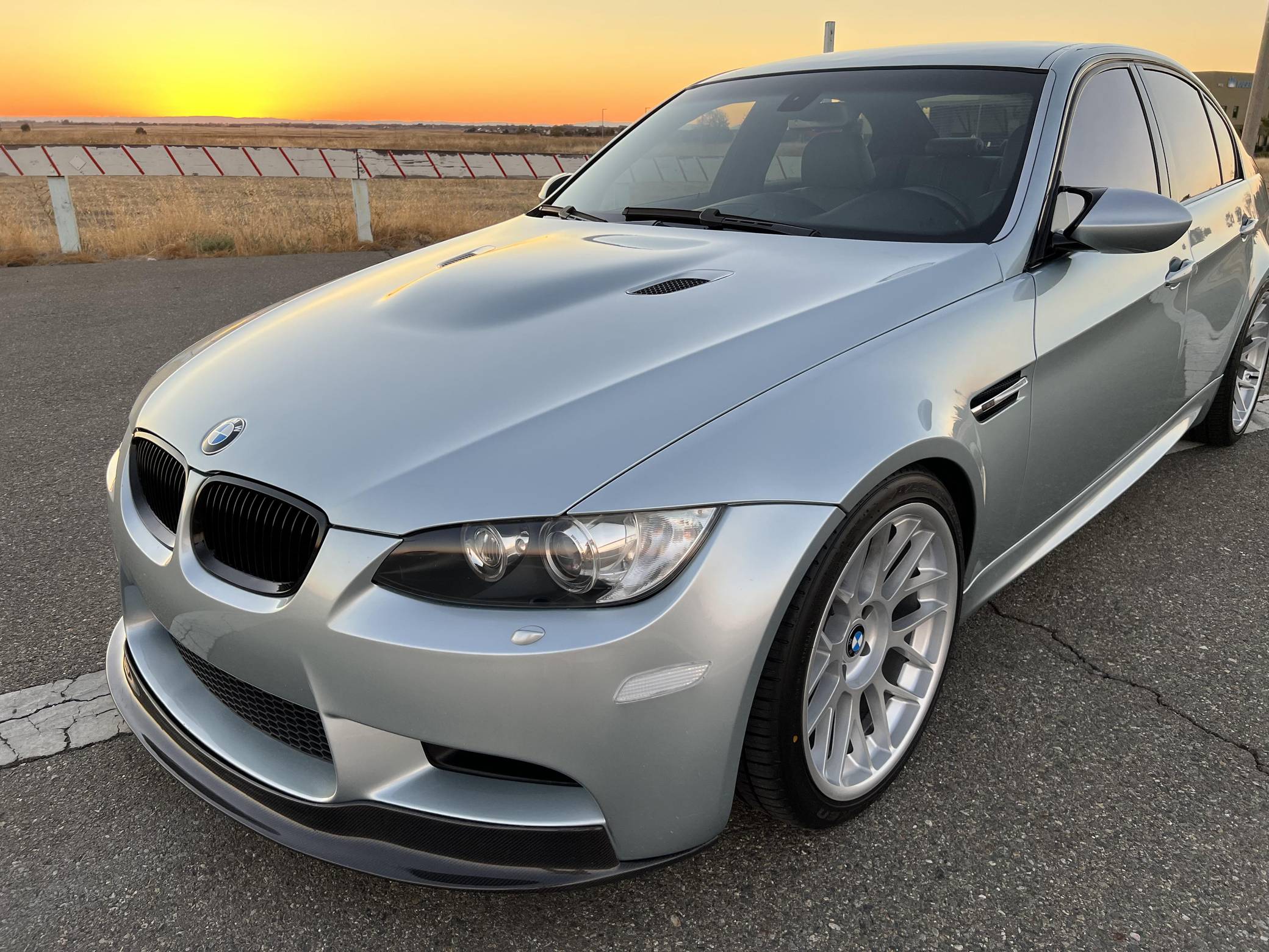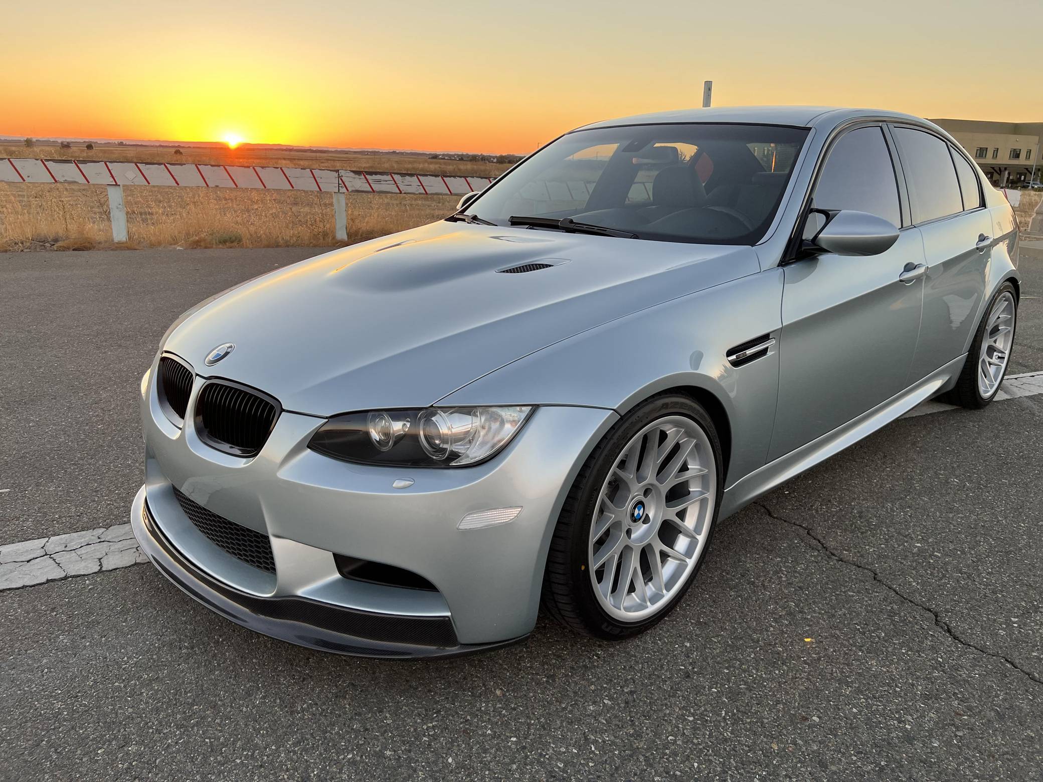 THIS. . . is a 2008 BMW M3 Sedan, finished in Silverstone Metallic with a Palladium Silver interior. This M3 features the desirable 6-speed manual transmission, and its odometer currently displays approximately 51,800 miles. According to the build sheet provided in the gallery, factory equipment includes the Technology Package, 18-inch Style 260 wheels (removed, but included with sale), adaptive xenon headlights, Novillo leather upholstery, power-adjustable and heated front seats with driver memory, Carbon Leather interior trim, and dual-zone automatic climate control. The full list of modifications reported by the seller is detailed below. include 19-inch STRÖM STR2 wheels, H&R Race Springs, a Borla ATAK exhaust system, and a carbon fiber front lip. BMW had to balance horsepower and weight as it developed the first M3 equipped with a V8 engine. Released for 2008, and based on the E90-generation 3 Series, it won over skeptical enthusiasts by offering performance that approached supercar levels in a practical, daily-drivable package. Sedan, coupe, and convertible variants were offered. Power comes from a 4. 0-liter "S65" V8, rated at 414 horsepower and 295 lb-ft of torque. Output is sent to the rear wheels via a 6-speed manual transmission.