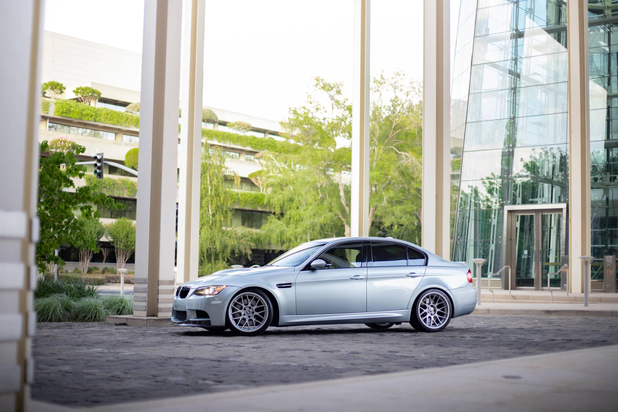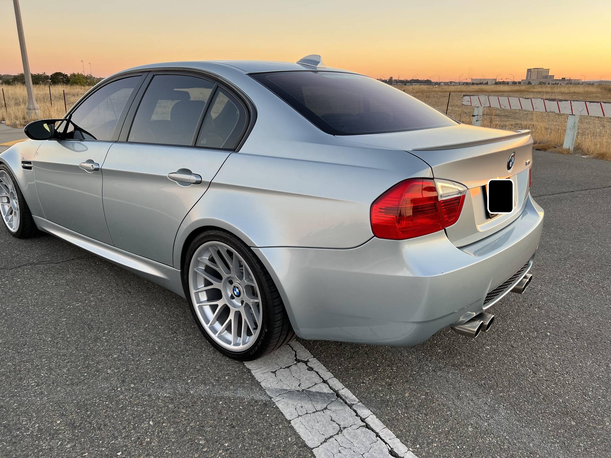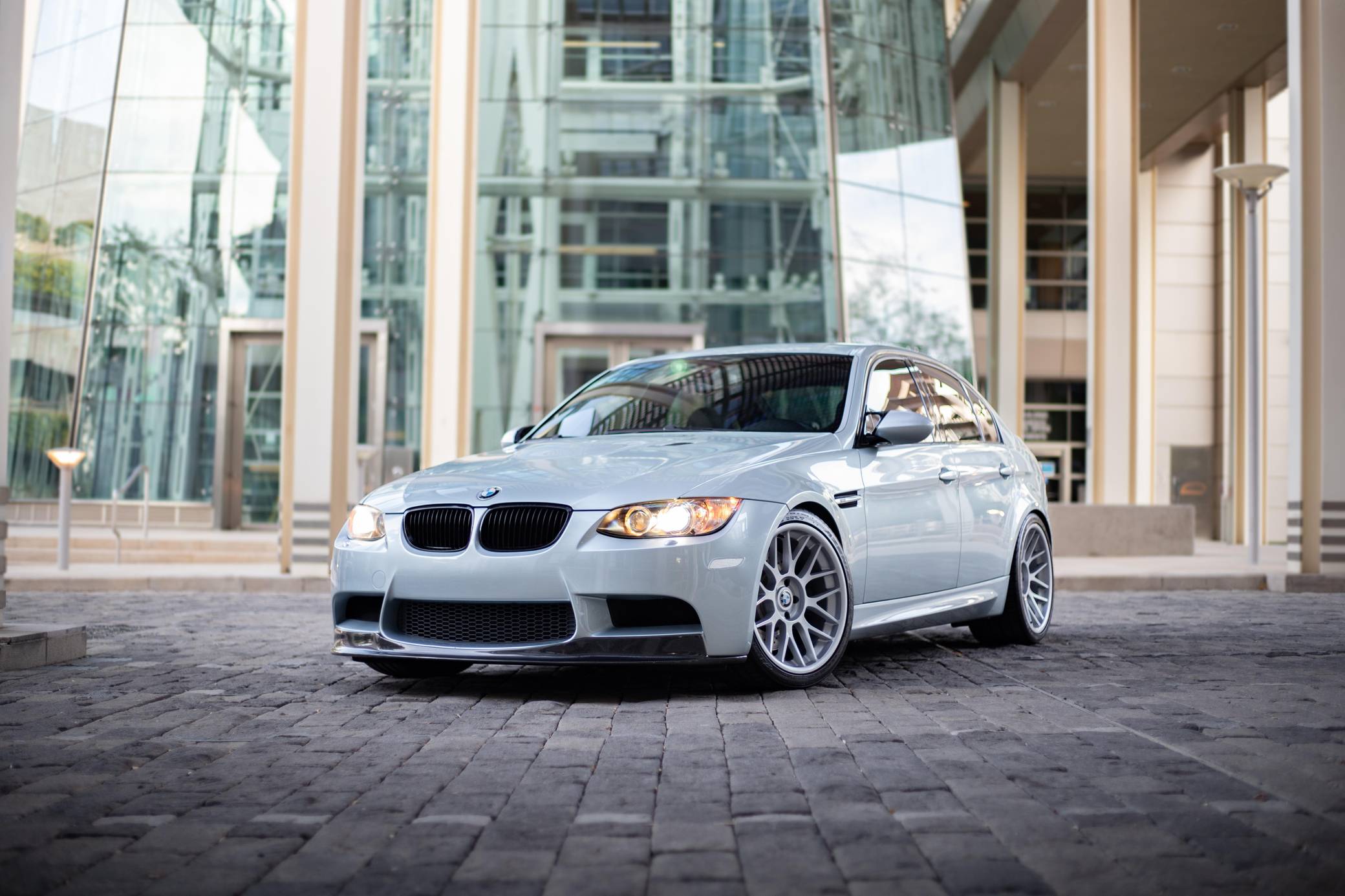 THIS. . . is a 2008 BMW M3 Sedan, finished in Silverstone Metallic with a Palladium Silver interior. This M3 features the desirable 6-speed manual transmission, and its odometer currently displays approximately 51,800 miles. According to the build sheet provided in the gallery, factory equipment includes the Technology Package, 18-inch Style 260 wheels (removed, but included with sale), adaptive xenon headlights, Novillo leather upholstery, power-adjustable and heated front seats with driver memory, Carbon Leather interior trim, and dual-zone automatic climate control. The full list of modifications reported by the seller is detailed below. include 19-inch STRÖM STR2 wheels, H&R Race Springs, a Borla ATAK exhaust system, and a carbon fiber front lip. BMW had to balance horsepower and weight as it developed the first M3 equipped with a V8 engine. Released for 2008, and based on the E90-generation 3 Series, it won over skeptical enthusiasts by offering performance that approached supercar levels in a practical, daily-drivable package. Sedan, coupe, and convertible variants were offered. Power comes from a 4. 0-liter "S65" V8, rated at 414 horsepower and 295 lb-ft of torque. Output is sent to the rear wheels via a 6-speed manual transmission.