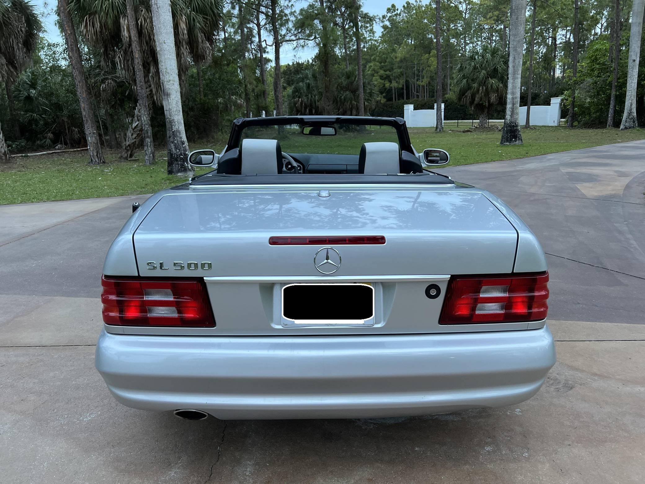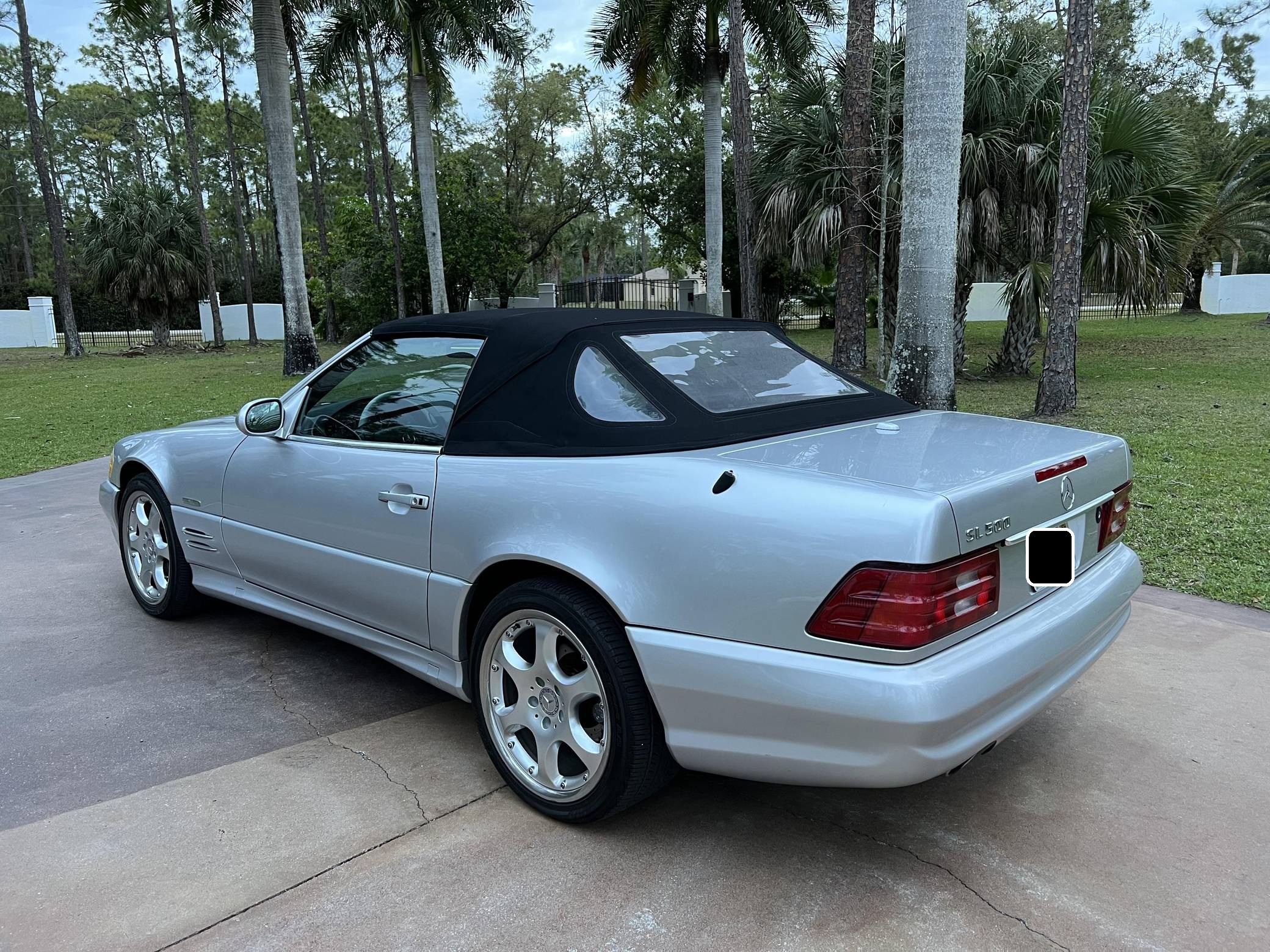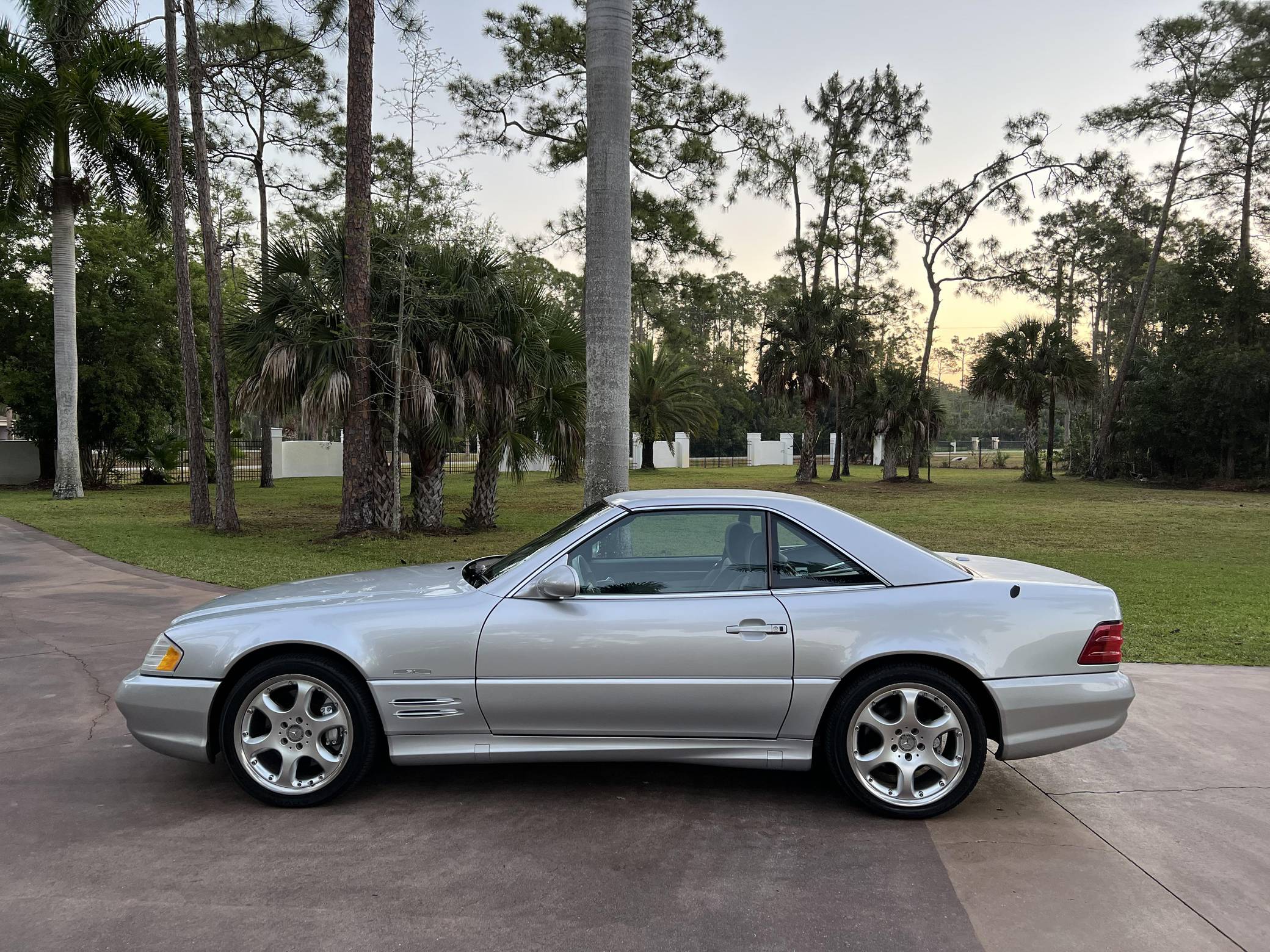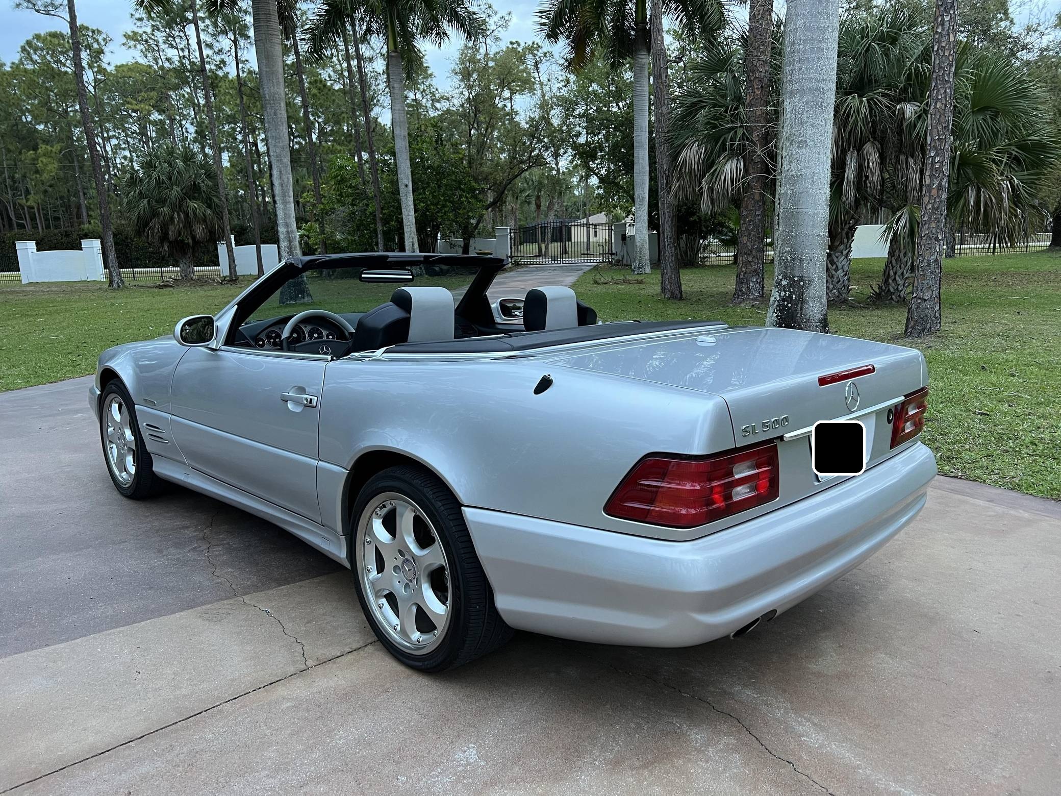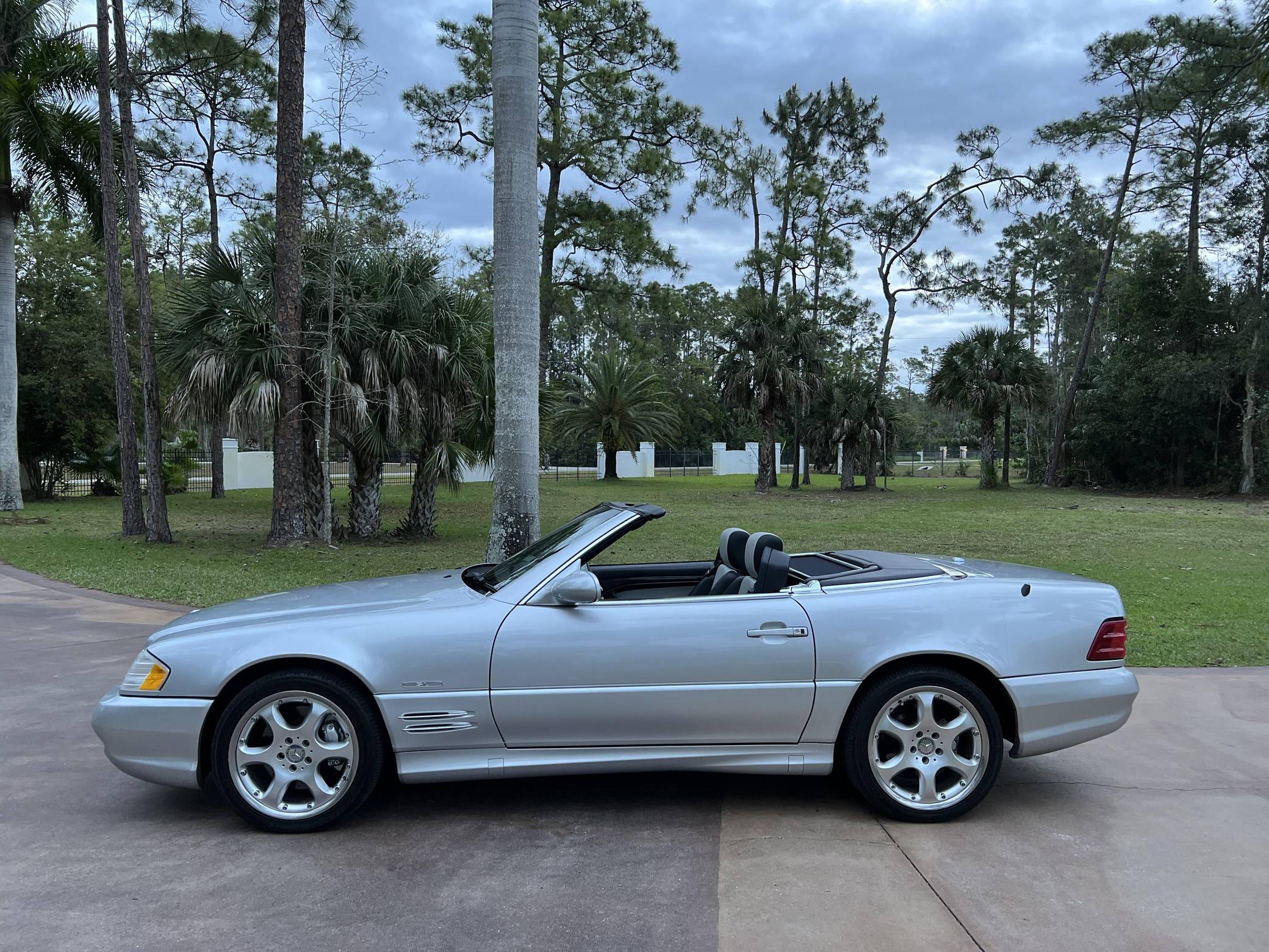 2002 Mercedes-Benz SL500, finished in Silver Arrow Metallic with a black soft top, a color-matched hardtop, and a black and grey interior. The odometer currently indicates approximately 68,100 miles. Factory equipment on this SL includes the AMG Styling Package, a power-retractable soft top, heated and power-adjustable front seats with memory function, a pop-up wind deflector, xenon headlights, cruise control, automatic climate control, and more as detailed below. The seller reports no modifications. Mercedes-Benz sold the "R129"-generation SL from 1990 to 2002. It was larger, quicker, and better-handling than its predecessor, the revered "R107" model. Several visual cues (like the shape of the vents behind the front wheels and the rear lights) identify this SL as one of the later models built, which boasted various upgrades to the model over its lifespan. The Silver Arrow Edition R129 was produced for the 2002 model year, and it was available on both the SL500 and SL600 models. Included in the special edition were various Silver Arrow interior and exterior badges, two-tone upholstery, the special Silver Arrow Metallic exterior color, and special dark wood trim, among other touches; 1,550 units were built for the U. S. market. Power comes from a 5. 0-liter V8, rated at 302 horsepower and 339 lb-ft of torque. Called "M113" internally, it turns the rear wheels via a 5-speed automatic transmission.
