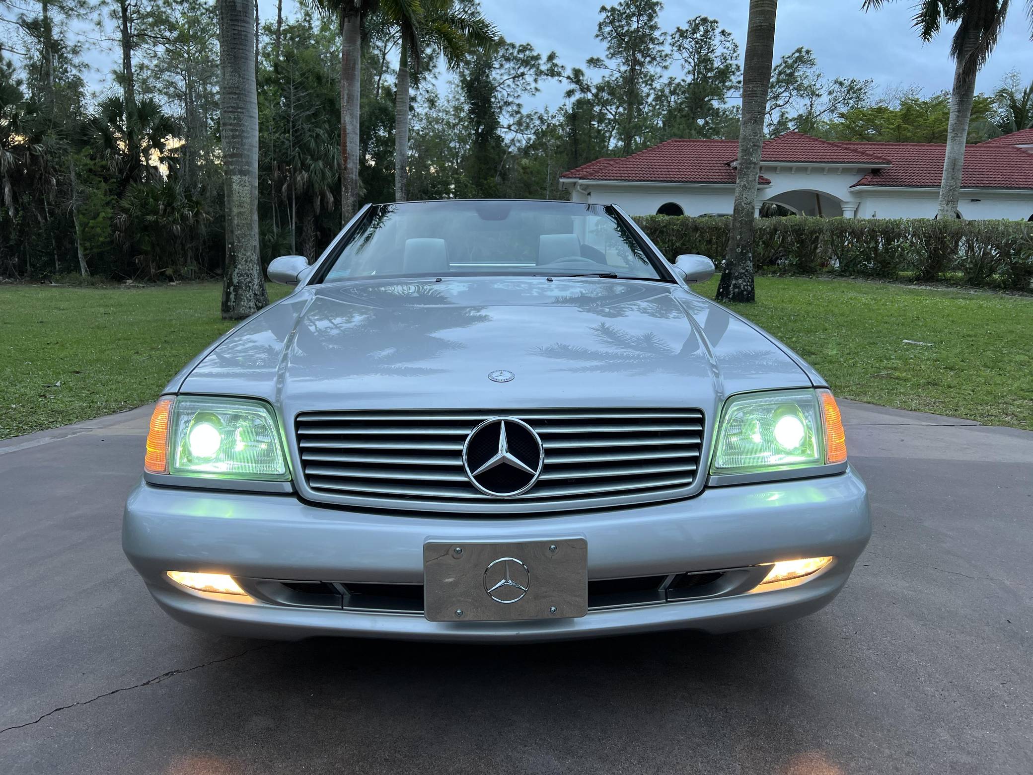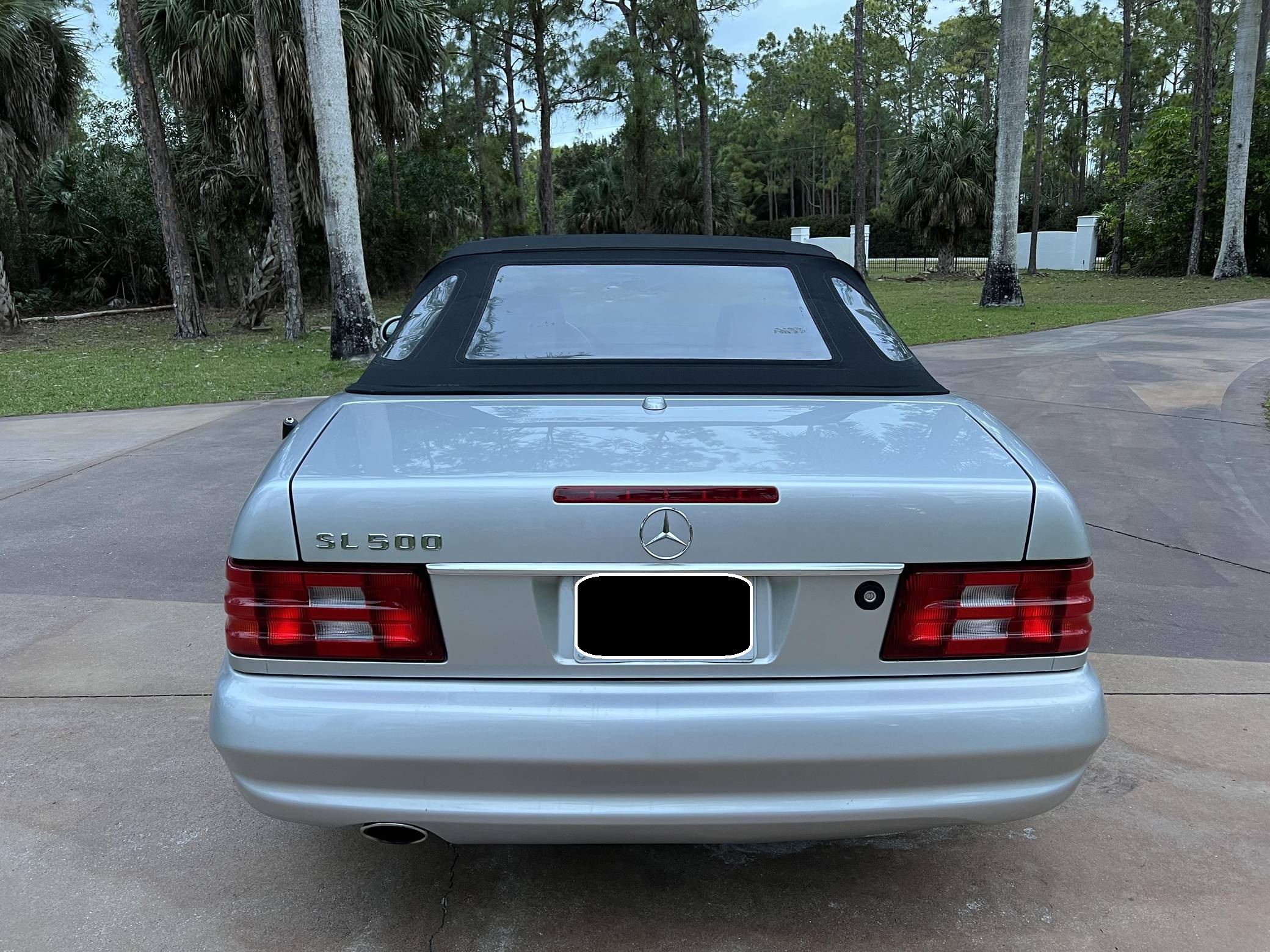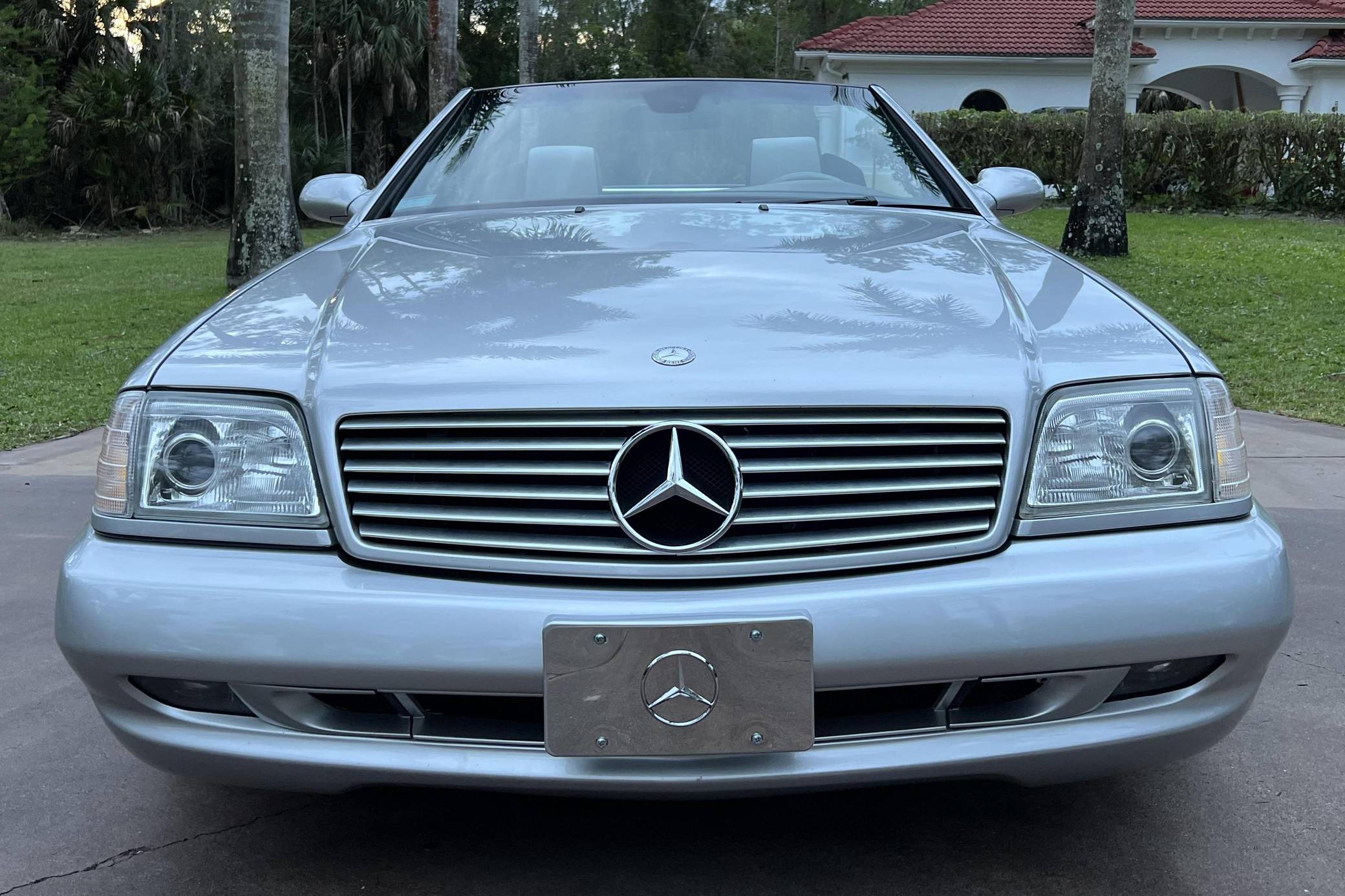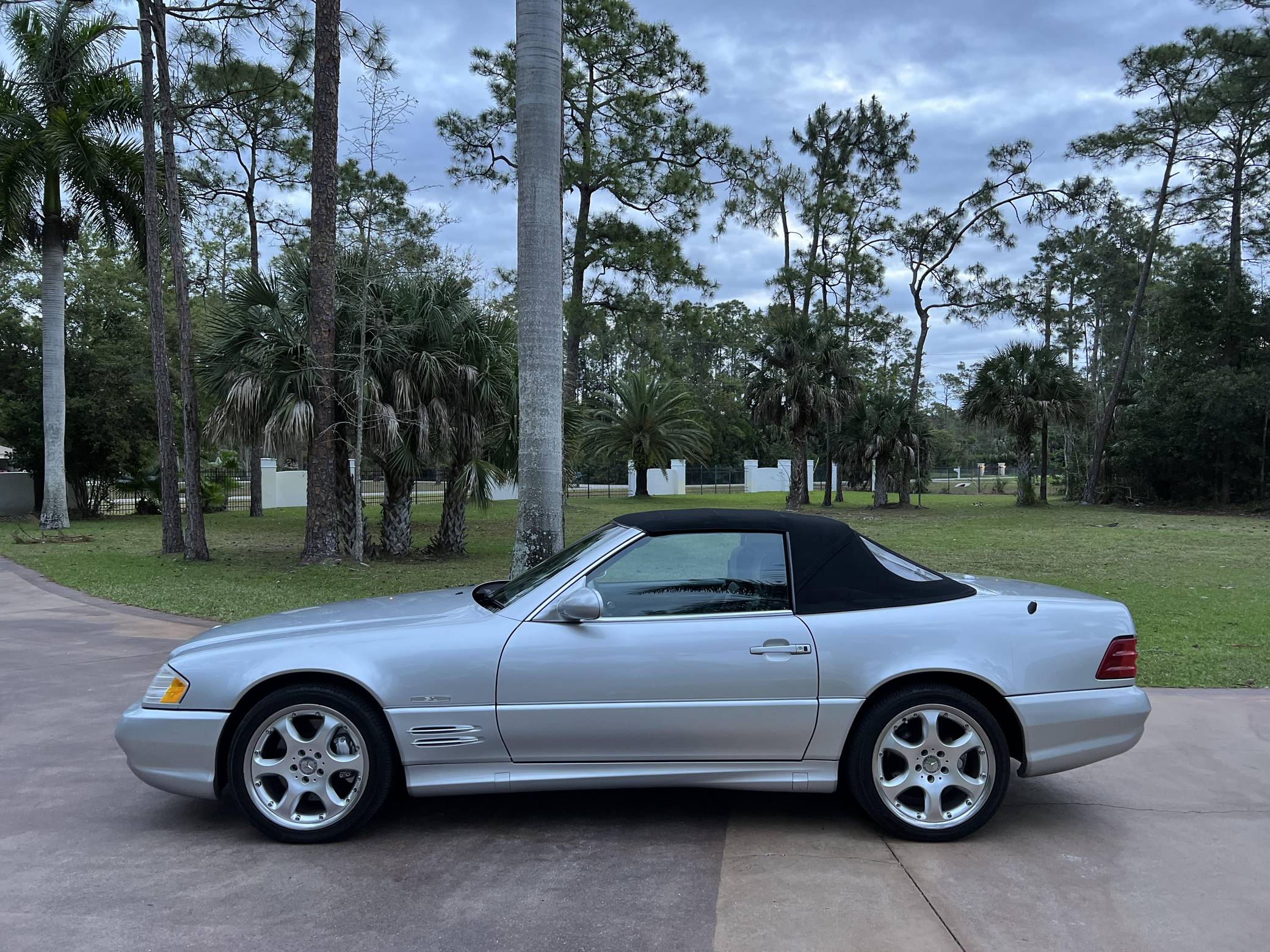 2002 Mercedes-Benz SL500, finished in Silver Arrow Metallic with a black soft top, a color-matched hardtop, and a black and grey interior. The odometer currently indicates approximately 68,100 miles. Factory equipment on this SL includes the AMG Styling Package, a power-retractable soft top, heated and power-adjustable front seats with memory function, a pop-up wind deflector, xenon headlights, cruise control, automatic climate control, and more as detailed below. The seller reports no modifications. Mercedes-Benz sold the "R129"-generation SL from 1990 to 2002. It was larger, quicker, and better-handling than its predecessor, the revered "R107" model. Several visual cues (like the shape of the vents behind the front wheels and the rear lights) identify this SL as one of the later models built, which boasted various upgrades to the model over its lifespan. The Silver Arrow Edition R129 was produced for the 2002 model year, and it was available on both the SL500 and SL600 models. Included in the special edition were various Silver Arrow interior and exterior badges, two-tone upholstery, the special Silver Arrow Metallic exterior color, and special dark wood trim, among other touches; 1,550 units were built for the U. S. market. Power comes from a 5. 0-liter V8, rated at 302 horsepower and 339 lb-ft of torque. Called "M113" internally, it turns the rear wheels via a 5-speed automatic transmission.