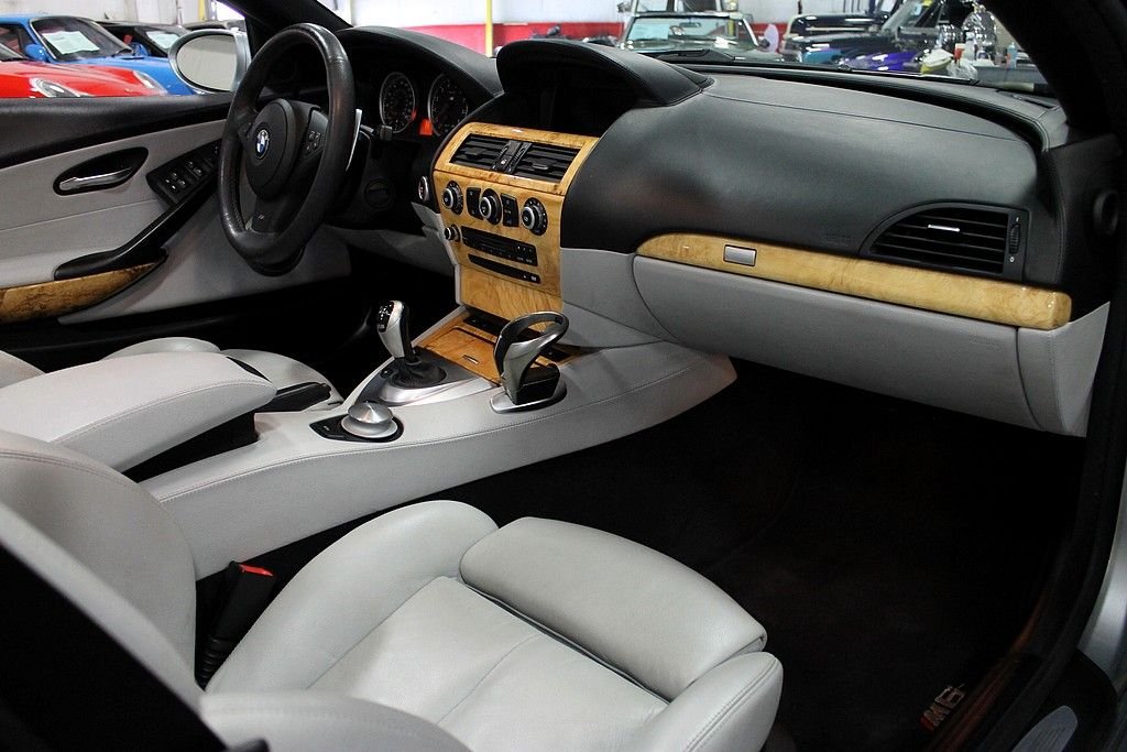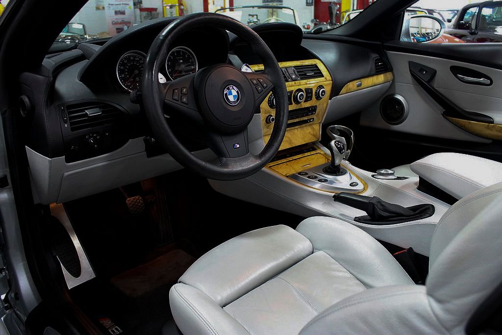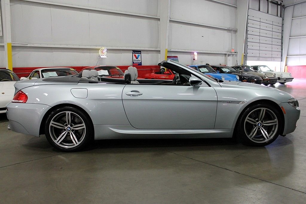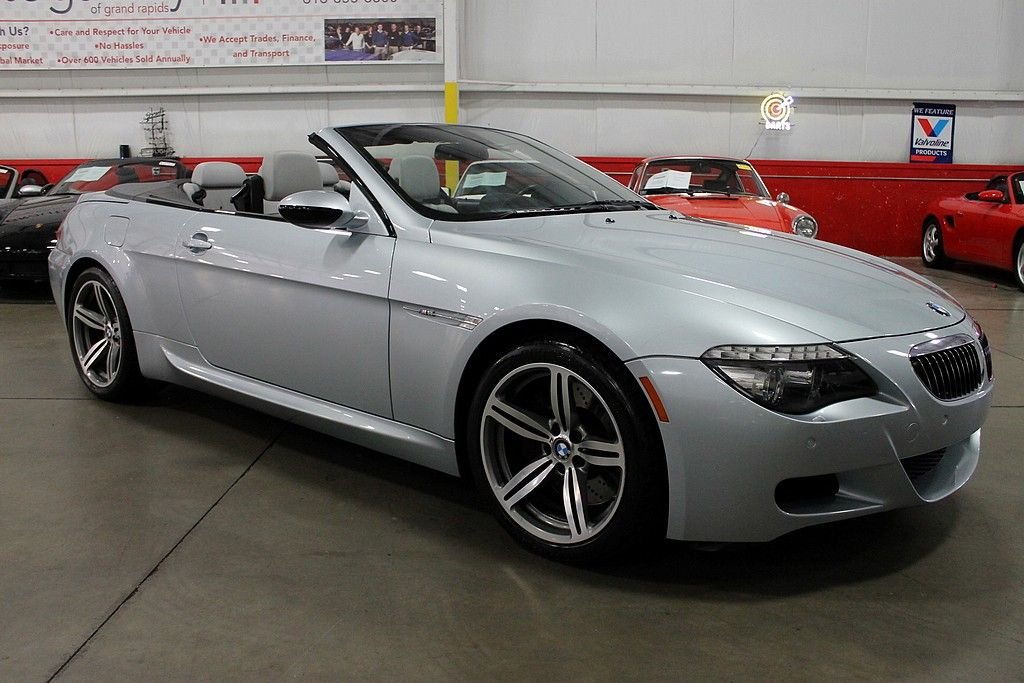 The ultimate driving machine only gets better as the years go by. The M6 convertible offered here is a dream car for the person looking to take a scenic tour or one that wants to feel the G's in their back and sides as you push the vehicle to its limits with the 500HP V10. The M6 offers room for 4 and plenty of trunk space for luggage for whatever adventure you seek. This vehicle was purchased new out of Atlanta, GA and then only changed ownership one other time until we had the pleasure to offer it for sale to the public. Vehicle was ordered nicely with the rare Silverstone Silver metallic paint and complimented by the Sepang leather interior that screams road trip. Options from the factory were; heads up display, heated steering wheel, front and rear parking sensors, Navigation with voice activation, 19in 5 split spoke alloy M wheels, premium stereo with satellite and iPod hookup, heated front seats, SMG transmission with paddle shifters on steering wheel and a very long list of standard options. This car shows and drives well and does not reflect the age in its overall condition. The car recently received new tires, fresh service at the local BMW dealer and always stored during the winter months here in Michigan. Car comes with keys, books and manuals and the spare tire and first aid kit from the factory. Time to get into a car that is not only fun, but something you can enjoy the drive into work with. Convertible season is upon us and life goes way to fast to drive a boring vehicle!