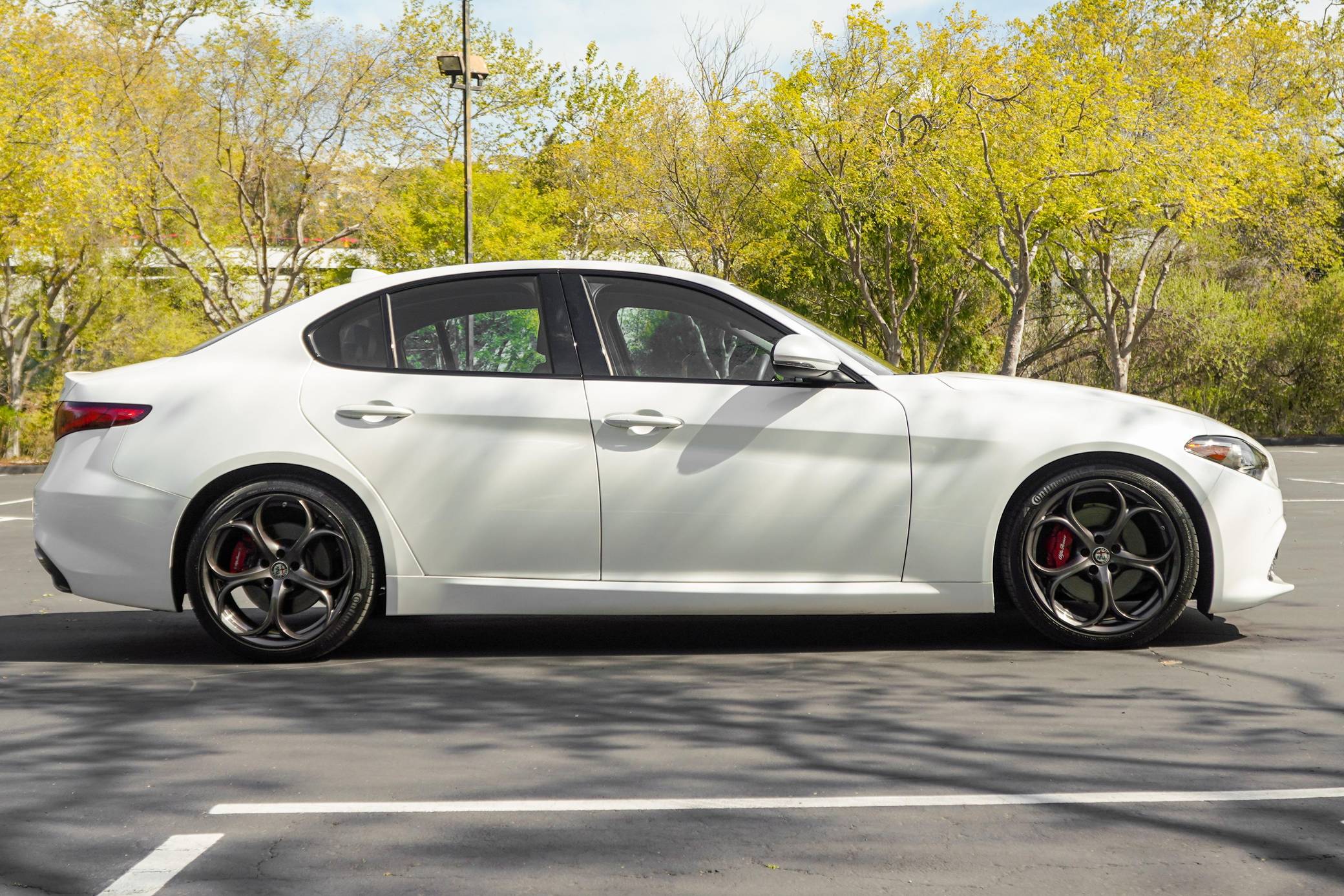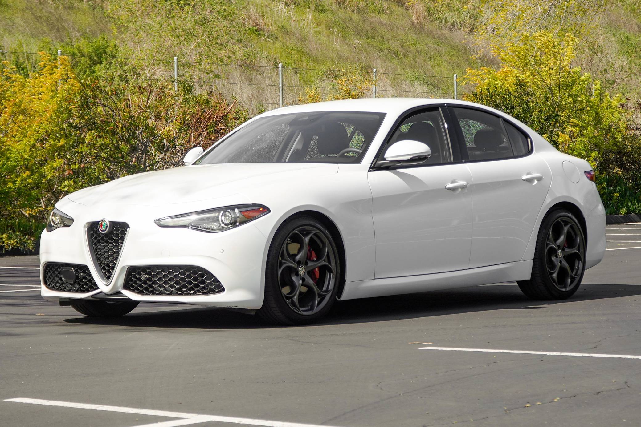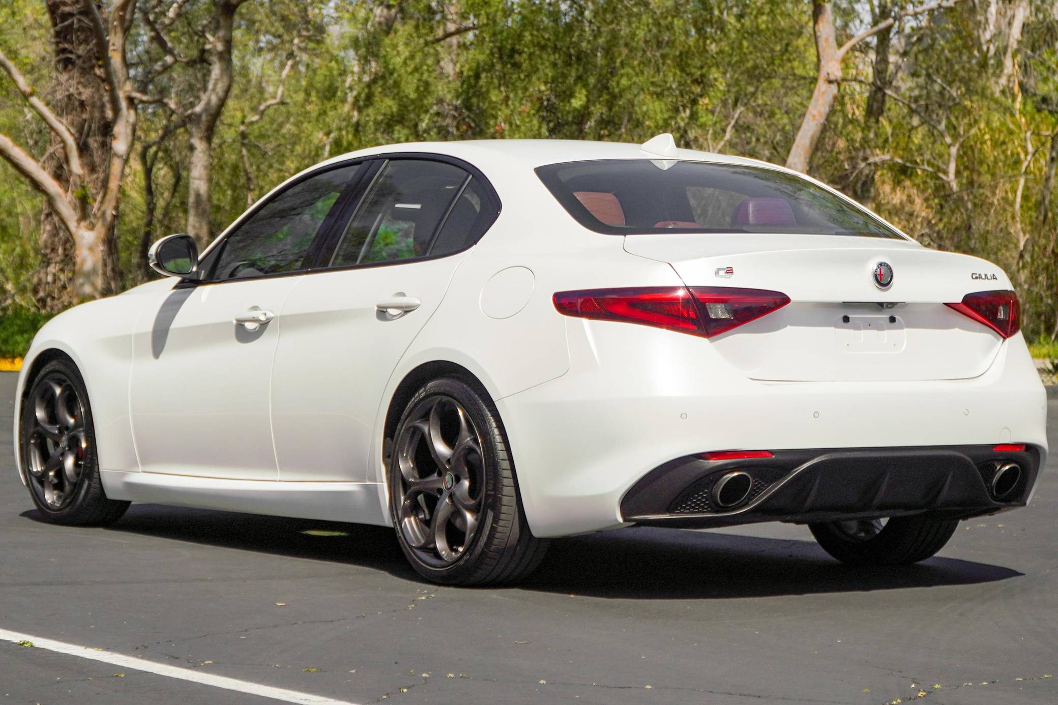 THIS. . . is a 2018 Alfa Romeo Giulia Q2 Ti, finished in Trofeo White with a tan interior. Factory equipment includes the Driver Assist Static and Dynamic Packages, as well as 19-inch 5-hole staggered aluminum wheels, Brembo brakes, aluminum interior trim, heated front sport seats, a heated sport leather-wrapped steering wheel, a Harman Kardon audio system, front and rear parking sensors, and more as detailed below. The seller reports no modifications. Alfa Romeo revived its vaunted Giulia nameplate in mid-2015 with a new compact sedan. The Giulia was Alfa's first four-door sedan sold in North America since 1995, and marked the brand's return to a front-engine, rear-wheel drive platform. Each Giulia features a 50/50 weight distribution, front and rear independent suspension, and a carbon fiber driveshaft. Alfa offers four different models in the North American market, including the range-topping Quadrifoglio. Each North American model is equipped with the same ZF-based 8-speed automatic transmission, and is offered in either rear-wheel-drive or Alfa's Q4 all-wheel-drive system. Power comes from a 2. 0-liter turbocharged inline-4 engine, rated at 280 horsepower and 306 lb-ft of torque. The engine spins the rear wheels via an 8-speed automatic transmission linked to shift paddles.