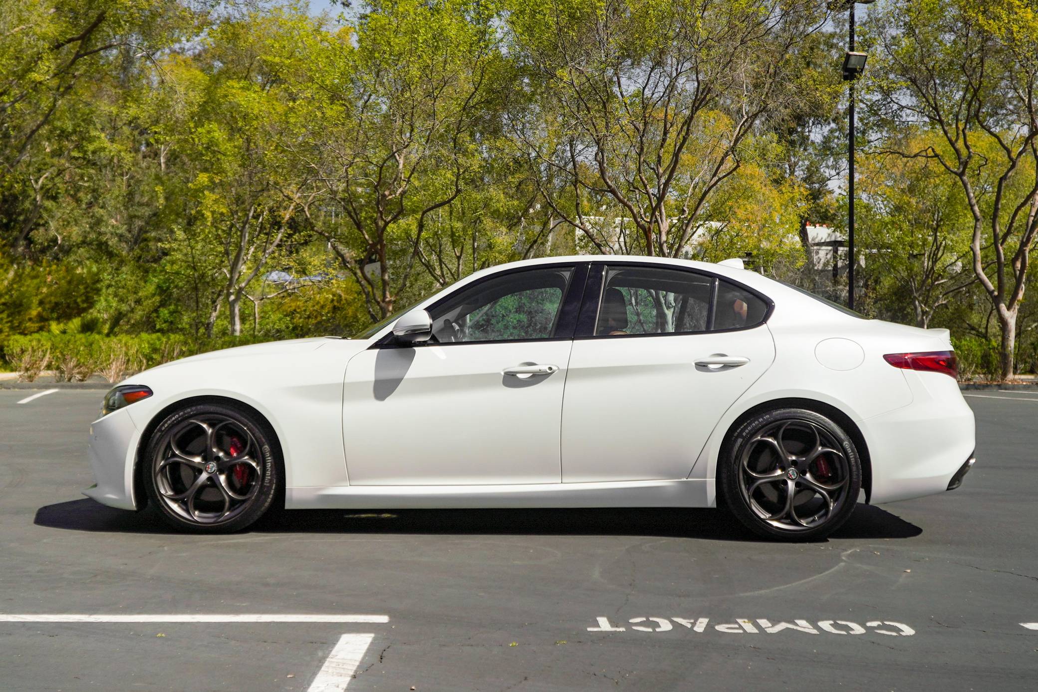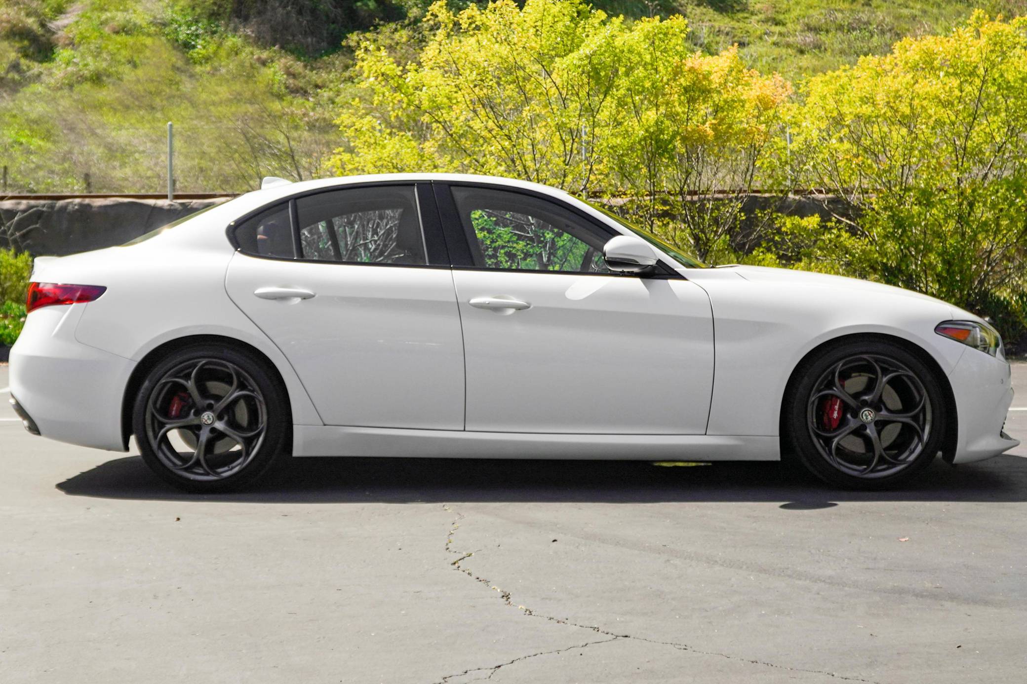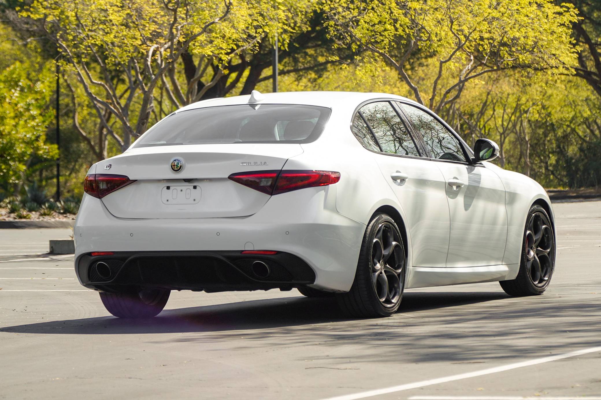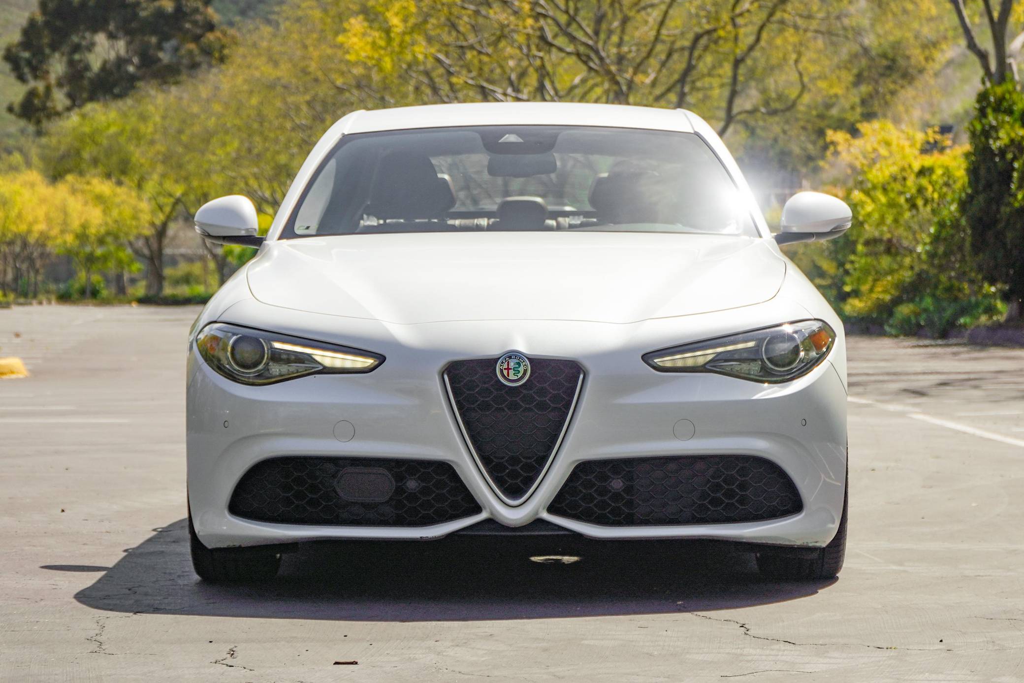 THIS. . . is a 2018 Alfa Romeo Giulia Q2 Ti, finished in Trofeo White with a tan interior. Factory equipment includes the Driver Assist Static and Dynamic Packages, as well as 19-inch 5-hole staggered aluminum wheels, Brembo brakes, aluminum interior trim, heated front sport seats, a heated sport leather-wrapped steering wheel, a Harman Kardon audio system, front and rear parking sensors, and more as detailed below. The seller reports no modifications. Alfa Romeo revived its vaunted Giulia nameplate in mid-2015 with a new compact sedan. The Giulia was Alfa's first four-door sedan sold in North America since 1995, and marked the brand's return to a front-engine, rear-wheel drive platform. Each Giulia features a 50/50 weight distribution, front and rear independent suspension, and a carbon fiber driveshaft. Alfa offers four different models in the North American market, including the range-topping Quadrifoglio. Each North American model is equipped with the same ZF-based 8-speed automatic transmission, and is offered in either rear-wheel-drive or Alfa's Q4 all-wheel-drive system. Power comes from a 2. 0-liter turbocharged inline-4 engine, rated at 280 horsepower and 306 lb-ft of torque. The engine spins the rear wheels via an 8-speed automatic transmission linked to shift paddles.