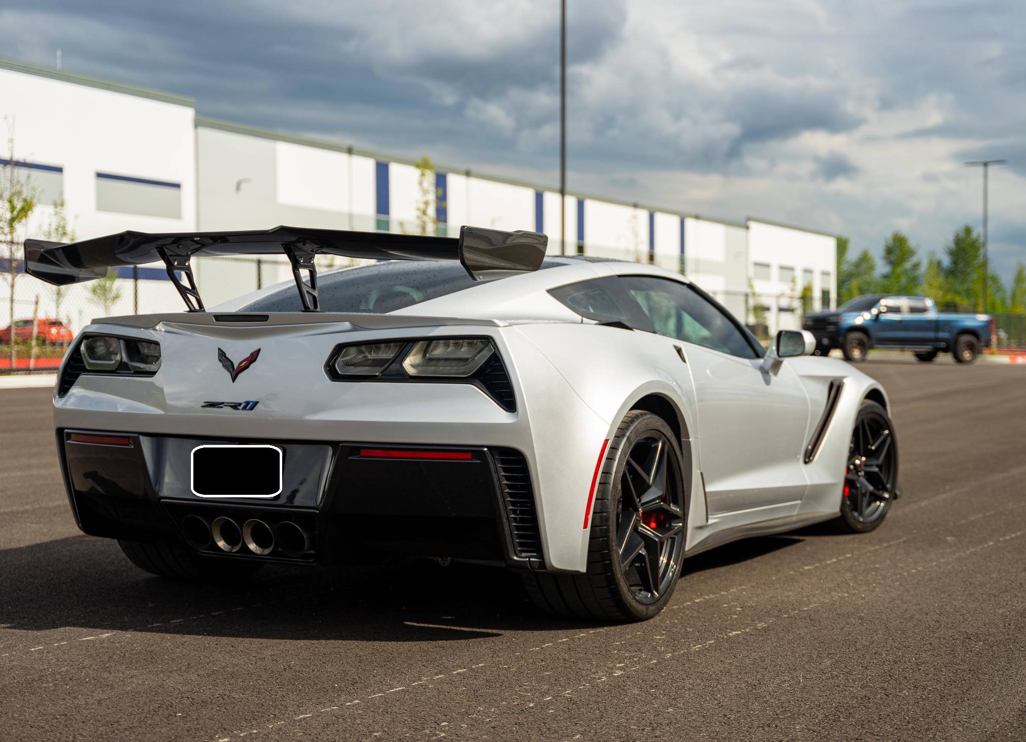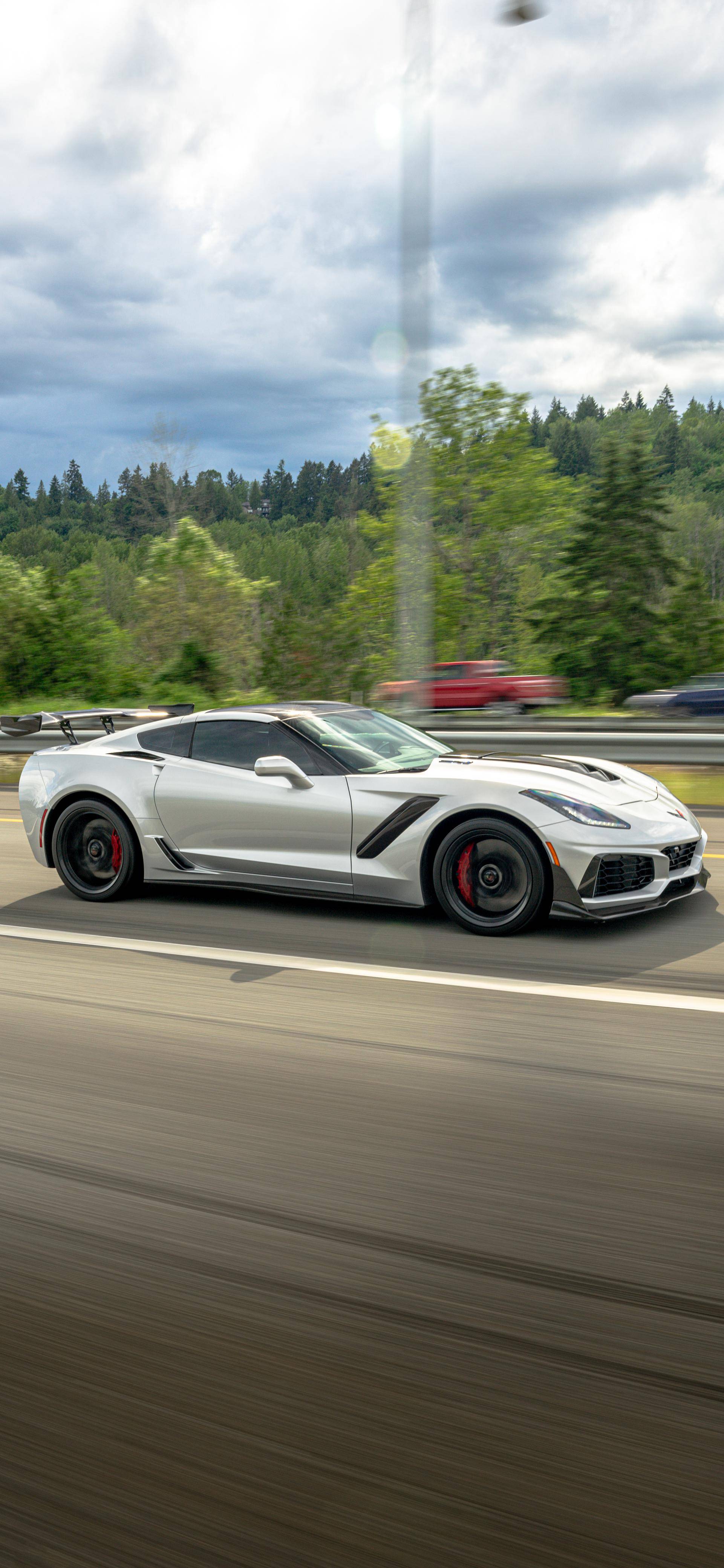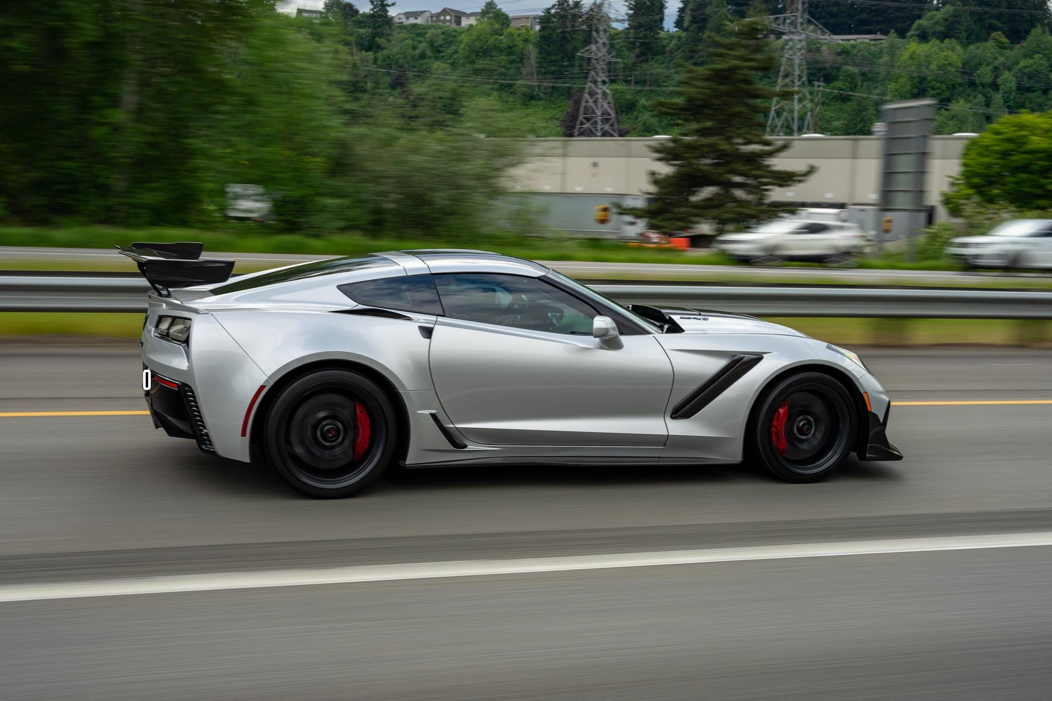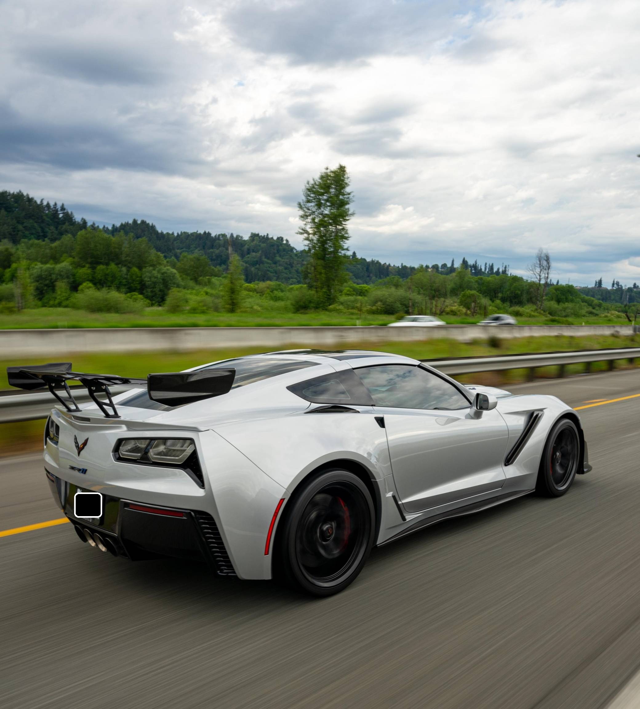 2019 Chevrolet Corvette ZR1 Coupe, finished in Blade Silver Metallic with a Jet Black interior. This ZR1 is equipped with a 7-speed manual transmission, and its odometer displays about 6,900 miles. Highly optioned, this ZR1 is equipped with the ZTK Performance and Carbon Fiber Dual Roof packages, 19-inch front and 20-inch rear wheels, a carbon ceramic high-performance braking system, a ZR1-specific body kit, carbon fiber interior trim, heated, ventilated, and power-adjustable seats, an 8-inch touchscreen for the infotainment system, a 10-speaker Bose Centerpoint surround sound system, and the Performance Data Recorder system, among other features. The seller reports no modifications. Chevrolet launched the seventh-generation Corvette (colloquially called "C7") for the 2014 model year. It offered a more user-friendly interior, a sharper-looking exterior design, and, significantly, the then-new "LT1" small-block V8. C7 production ended in 2019, and its replacement adopted a mid-mounted engine. Released for the 2019 model year, the ZR1 model pelted the Corvette nameplate into supercar territory with an Eaton supercharger, an aggressive aerodynamic package that generated 70% more downforce than the Z06's, and a race car-like suspension system. Chevrolet built 2,953 units of the ZR1, including 2,441 coupes, for the 2019 model year, according to the National Corvette Museum. Power comes from a 6. 2-liter supercharged V8, rated at 755 horsepower and 715 lb-ft of torque. Called "LT5" internally, it spins the rear wheels via a 7-speed manual transmission.