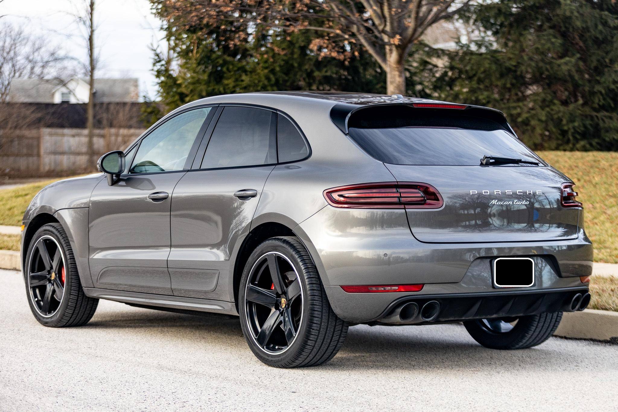 THIS… is a 2016 Porsche Macan Turbo finished in Agate Grey Metallic with a two-tone Agate Grey and Pebble Gray interior. According to the Porsche certificate of authenticity provided in the gallery, factory equipment includes the Premium Package Plus, the Comfort Lighting and Sport Chrono packages, 21-inch Sport Classic wheels, air suspension with Porsche Active Suspension Management (PASM), bi-xenon headlights, extended leather upholstery, and more as listed below. The seller reports no modifications. Service documentation provided in the photo gallery indicates that the valve cover gaskets, front brake pads, and brake sensors were replaced in January 2023 at 58,786 miles. Encouraged by the Cayenne's success, and eager to tap into one of the biggest segments of the market, Porsche introduced the Macan as its entry-level SUV for 2015. Some of the model's underpinnings came from Audi, but Porsche dialed in a level of performance and handling that's unusual to find in a compact SUV. The Turbo model was positioned at the top of the line-up through the 2021 model year. Power comes from a turbocharged 3. 6-liter V6, rated at 400 horsepower and 406 lb-ft of torque. Output is sent to all four wheels via a 7-speed PDK dual-clutch automatic transmission.