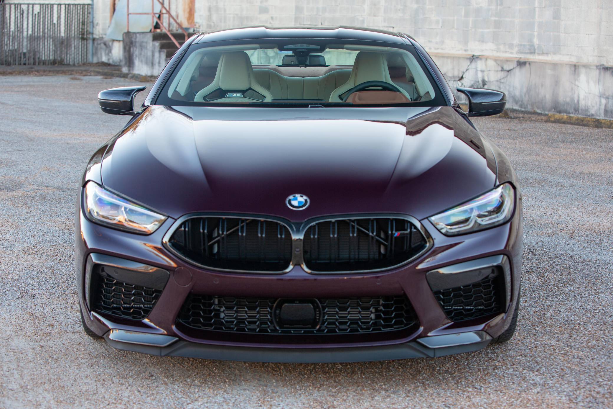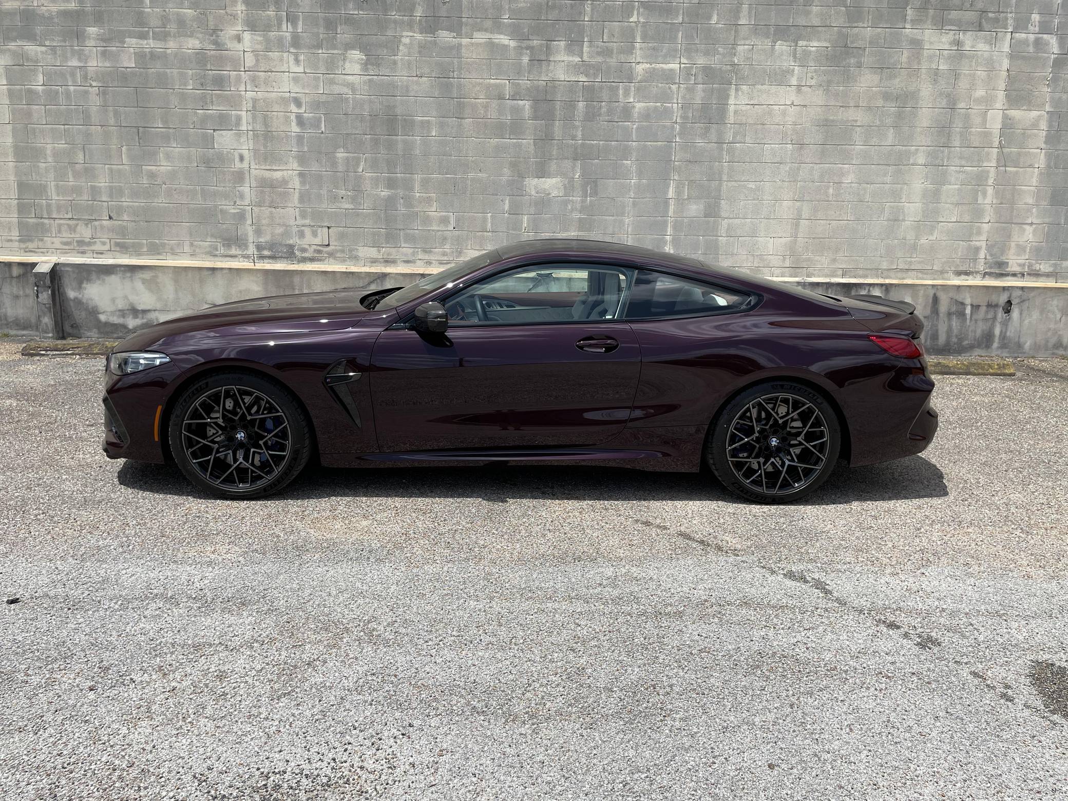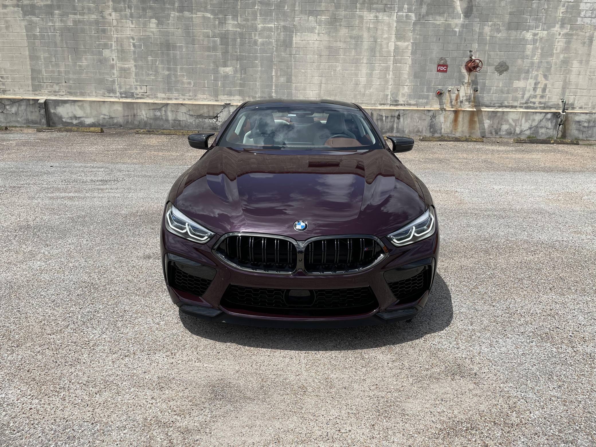 2022 BMW M8 Competition, finished in Ametrin Metallic with an Ivory White and Tartufo interior. The odometer currently indicates approximately 1,000 miles. Equipped with Driving Assistance, Drivers Assistance Pro, M Competition, and M Carbon Exterior Packages, an M Sport Differential, Icon Adaptive LED with Laserlight headlights, a carbon fiber roof, Merino leather upholstery, M carbon bucket seats, Ash Black Silver wood trim, remote engine start, and LED door projectors, among others listed below. The sole modification reported by the seller is paint protection film to the front end. BMW introduced the second generation 8 series for the 2018 model year. Based on the G15 8 Series, the F92 M8 received significant chassis modifications from BMW M earning a different chassis designation compared to the standard car. The M8 is equipped with the xDrive all-wheel-drive system found in the F90 M5. The system is rear-biased in its standard configuration to provide better traction without sacrificing handling, but it can be switched off to make the M8 fully rear-wheel drive. Power comes from a twin-turbocharged "S63" 4. 4-liter V8, rated at 617 horsepower and 553 lb-ft of torque. It powers all four wheels via an 8-speed "M-Steptronic" ZF automatic transmission.