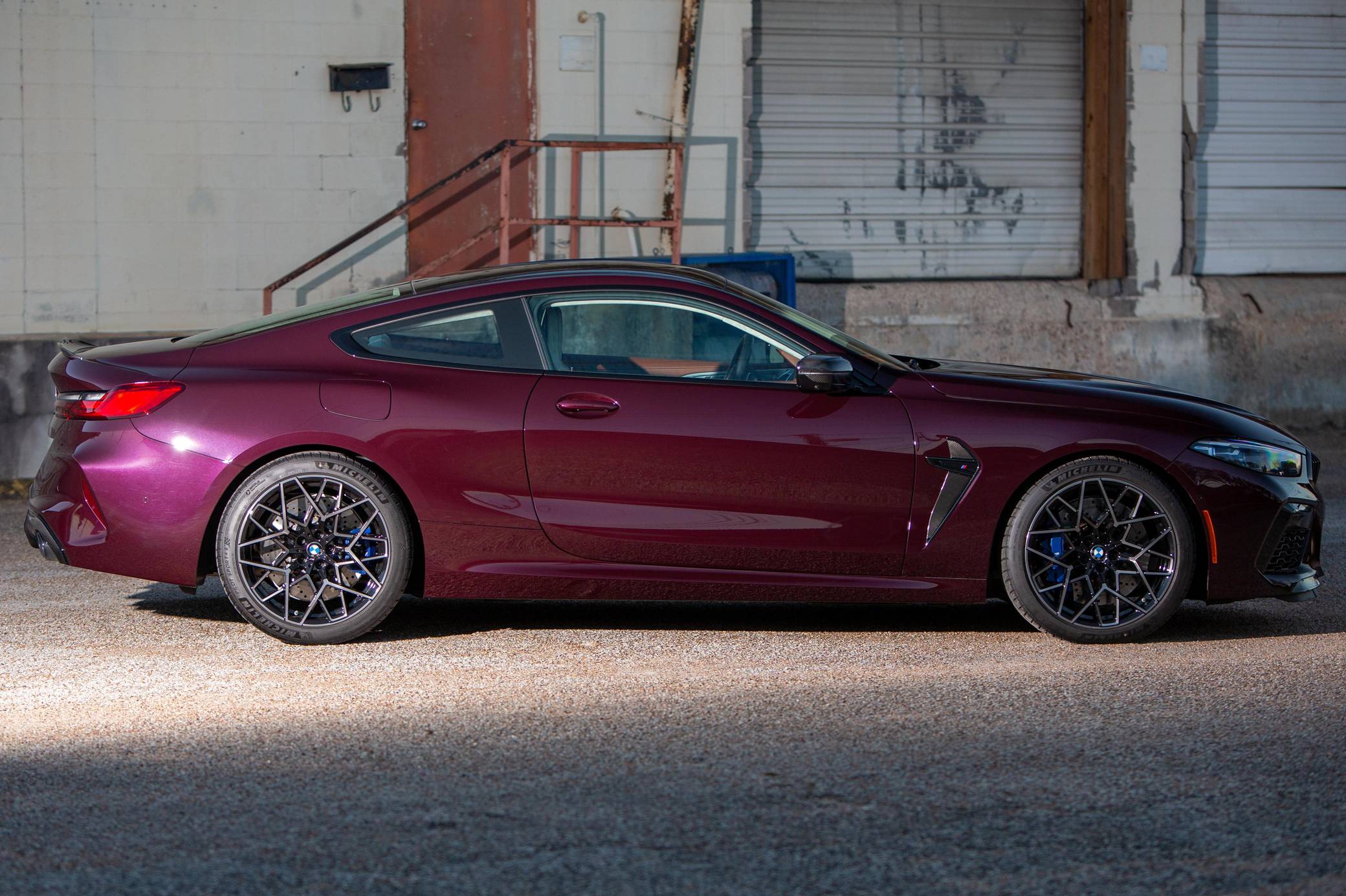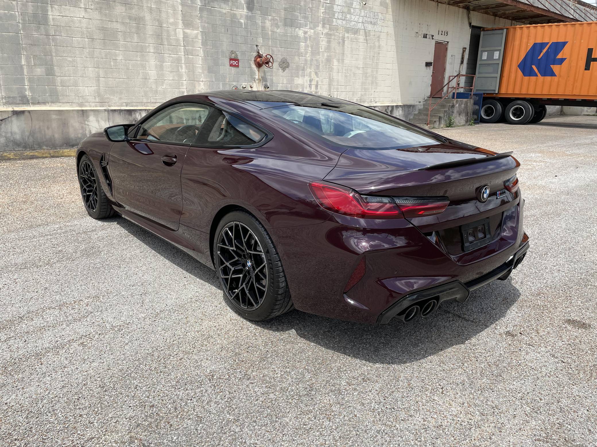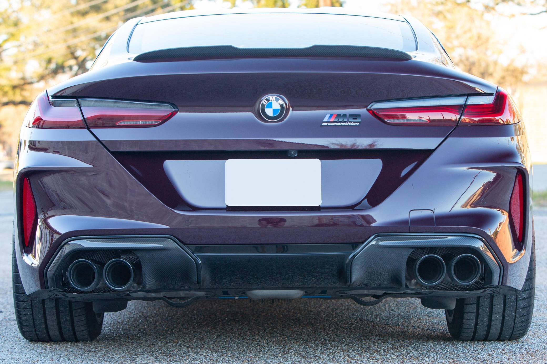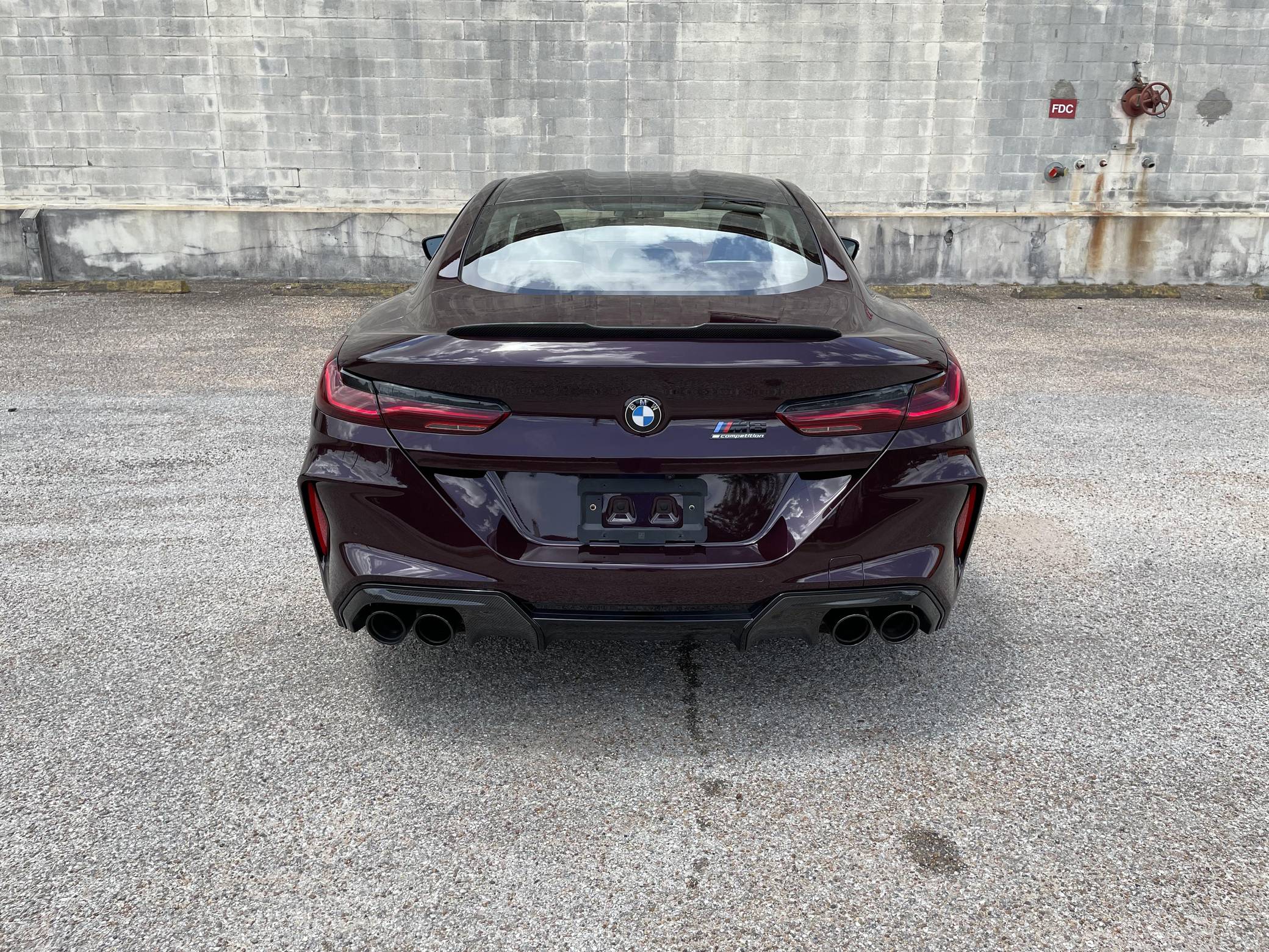 2022 BMW M8 Competition, finished in Ametrin Metallic with an Ivory White and Tartufo interior. The odometer currently indicates approximately 1,000 miles. Equipped with Driving Assistance, Drivers Assistance Pro, M Competition, and M Carbon Exterior Packages, an M Sport Differential, Icon Adaptive LED with Laserlight headlights, a carbon fiber roof, Merino leather upholstery, M carbon bucket seats, Ash Black Silver wood trim, remote engine start, and LED door projectors, among others listed below. The sole modification reported by the seller is paint protection film to the front end. BMW introduced the second generation 8 series for the 2018 model year. Based on the G15 8 Series, the F92 M8 received significant chassis modifications from BMW M earning a different chassis designation compared to the standard car. The M8 is equipped with the xDrive all-wheel-drive system found in the F90 M5. The system is rear-biased in its standard configuration to provide better traction without sacrificing handling, but it can be switched off to make the M8 fully rear-wheel drive. Power comes from a twin-turbocharged "S63" 4. 4-liter V8, rated at 617 horsepower and 553 lb-ft of torque. It powers all four wheels via an 8-speed "M-Steptronic" ZF automatic transmission.