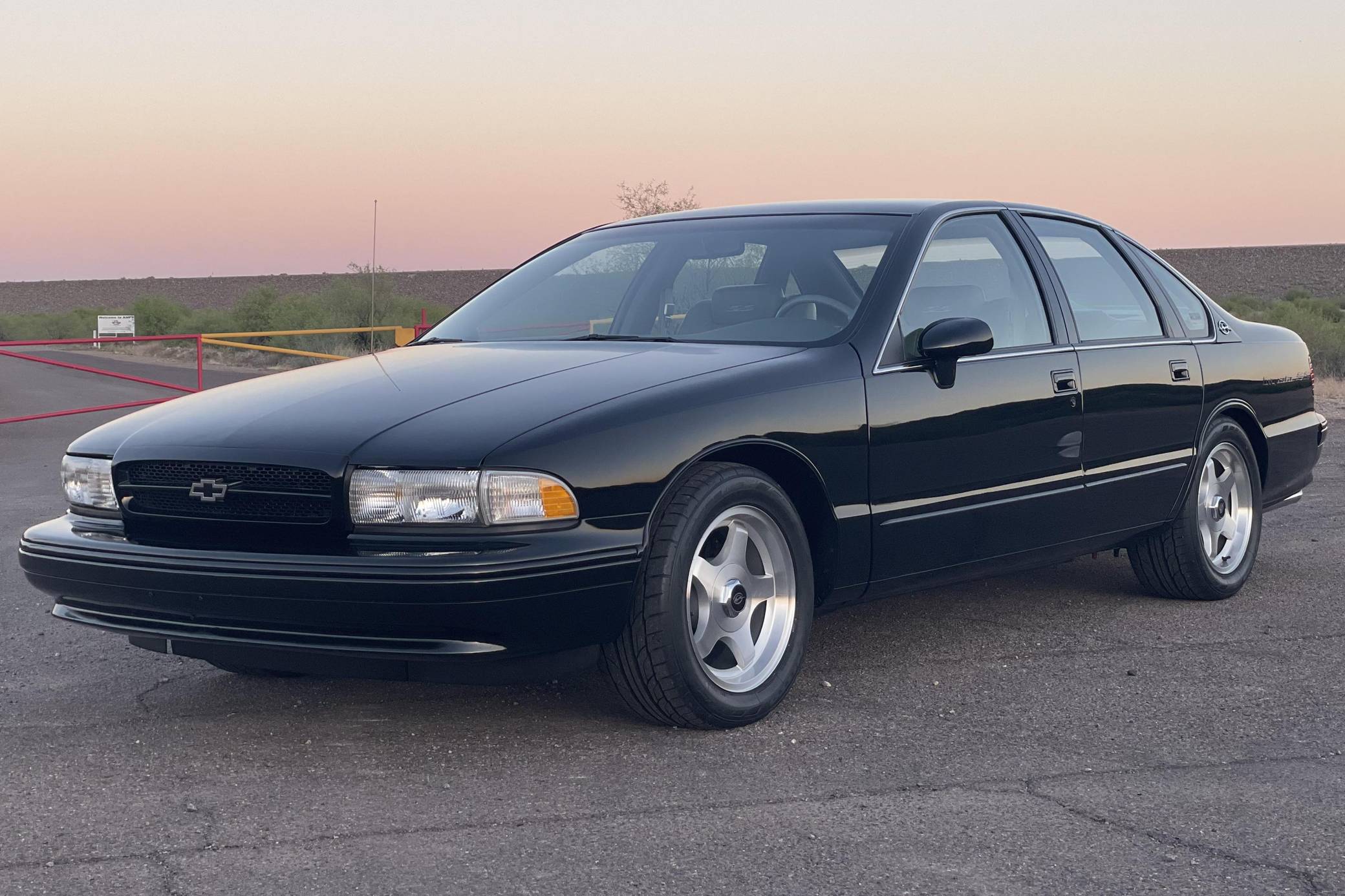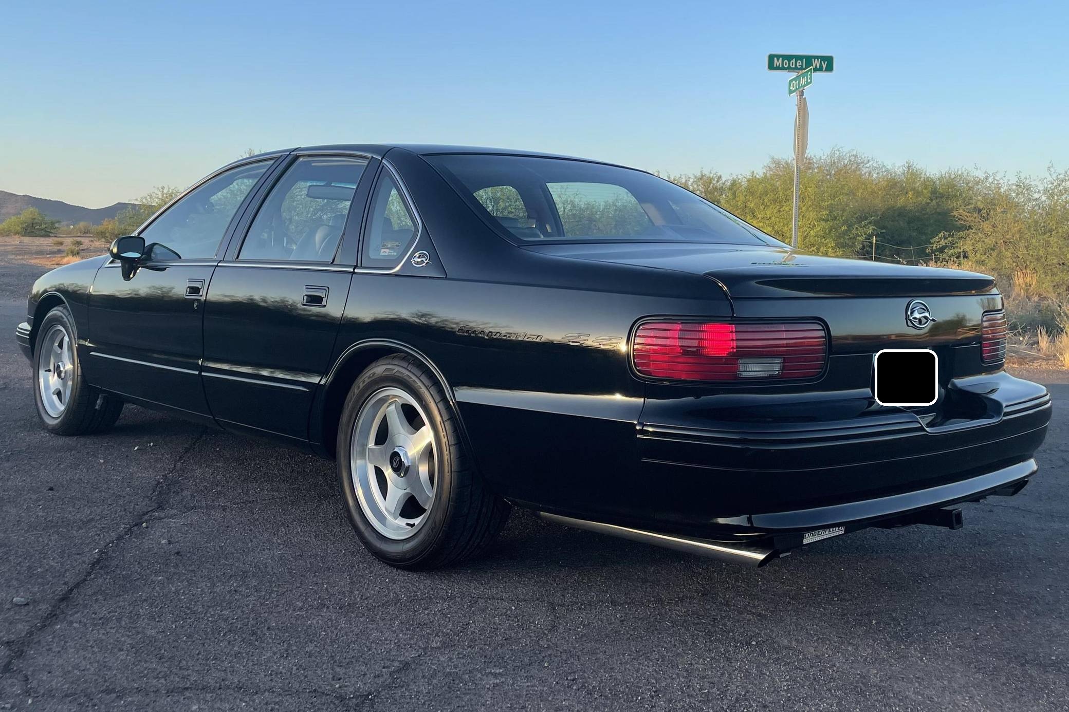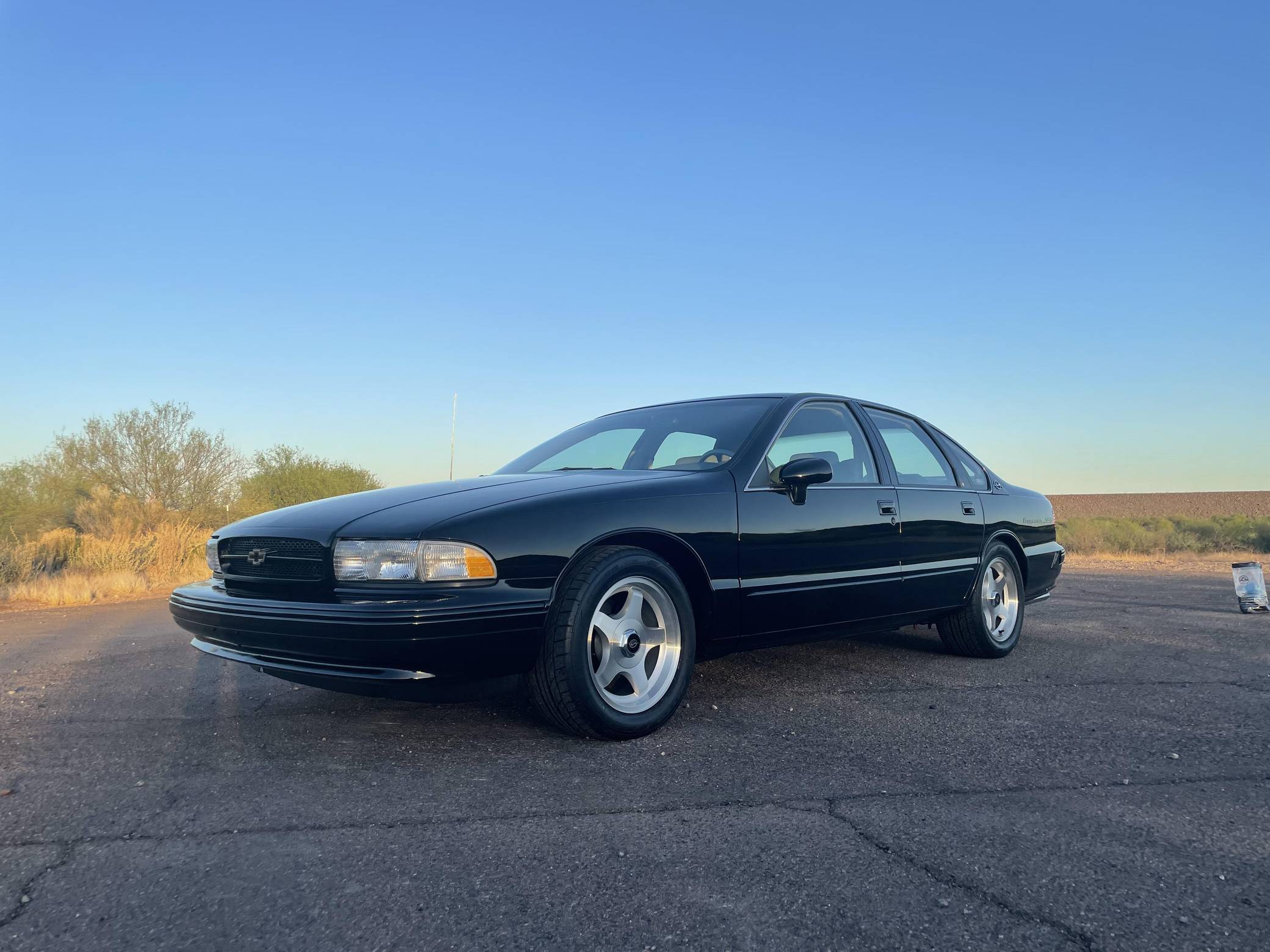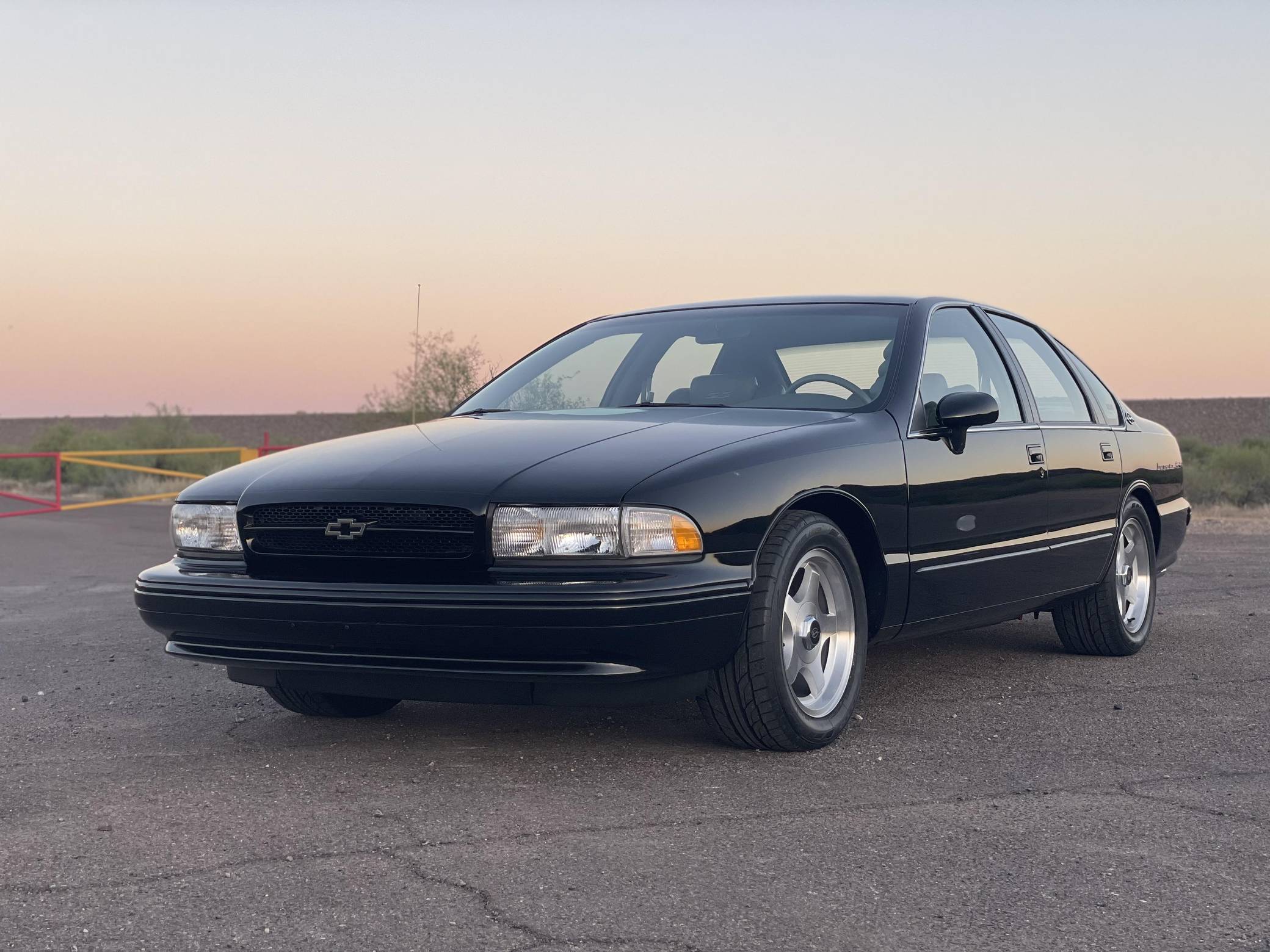 1994 Chevrolet Impala SS, finished in black with a gray interior. The odometer on this Impala SS currently displays about 14,500 miles. Modifications to this Impala SS are extensive, and the full list is detailed below. include an Edelbrock "LT4" conversion kit, a ProCharger supercharger and intercooler, Edelbrock long-tube headers, a Flowmaster American Thunder exhaust, a Hughes high-performance torque converter, and custom aluminum subframe and differential mounts. Factory equipment includes 17-inch aluminum wheels, a limited-slip differential, leather seats, a cassette radio, air conditioning, cruise control, and more. Sold between the 1994 and 1996 model years, the Impala SS was based on the B-Body Caprice but it gained a Corvette-derived V8 and numerous performance upgrades. It notably received a sport-tuned suspension, four-wheel disc brakes, a dual exhaust system, a transmission cooler, and a high-capacity reverse-flow cooling system, among other features. It was the last rear-wheel-drive V8-powered Chevrolet sedan until the Holden-built SS was introduced for the 2014 model year. Power comes from a heavily modified "LT1" 5. 7-liter V8, rated at 260 horsepower and 330 lb-ft of torque in stock form. The seller states that it now makes around 550 horsepower at the wheels thanks to the "LT4" conversion kit, supercharger, and other modifications, but a dyno sheet was not provided to confirm. Output is sent to the rear wheels via a 4-speed automatic transmission.