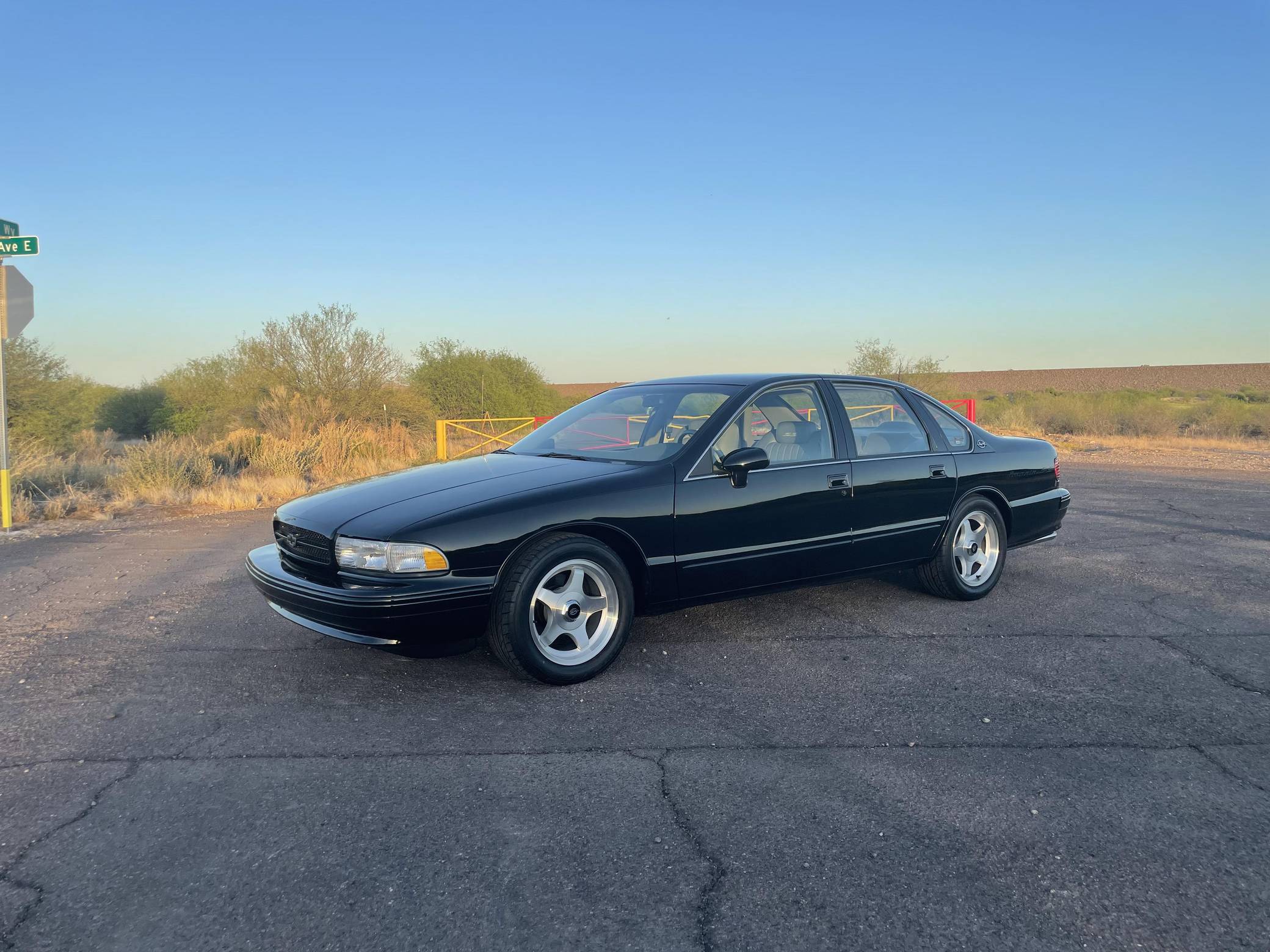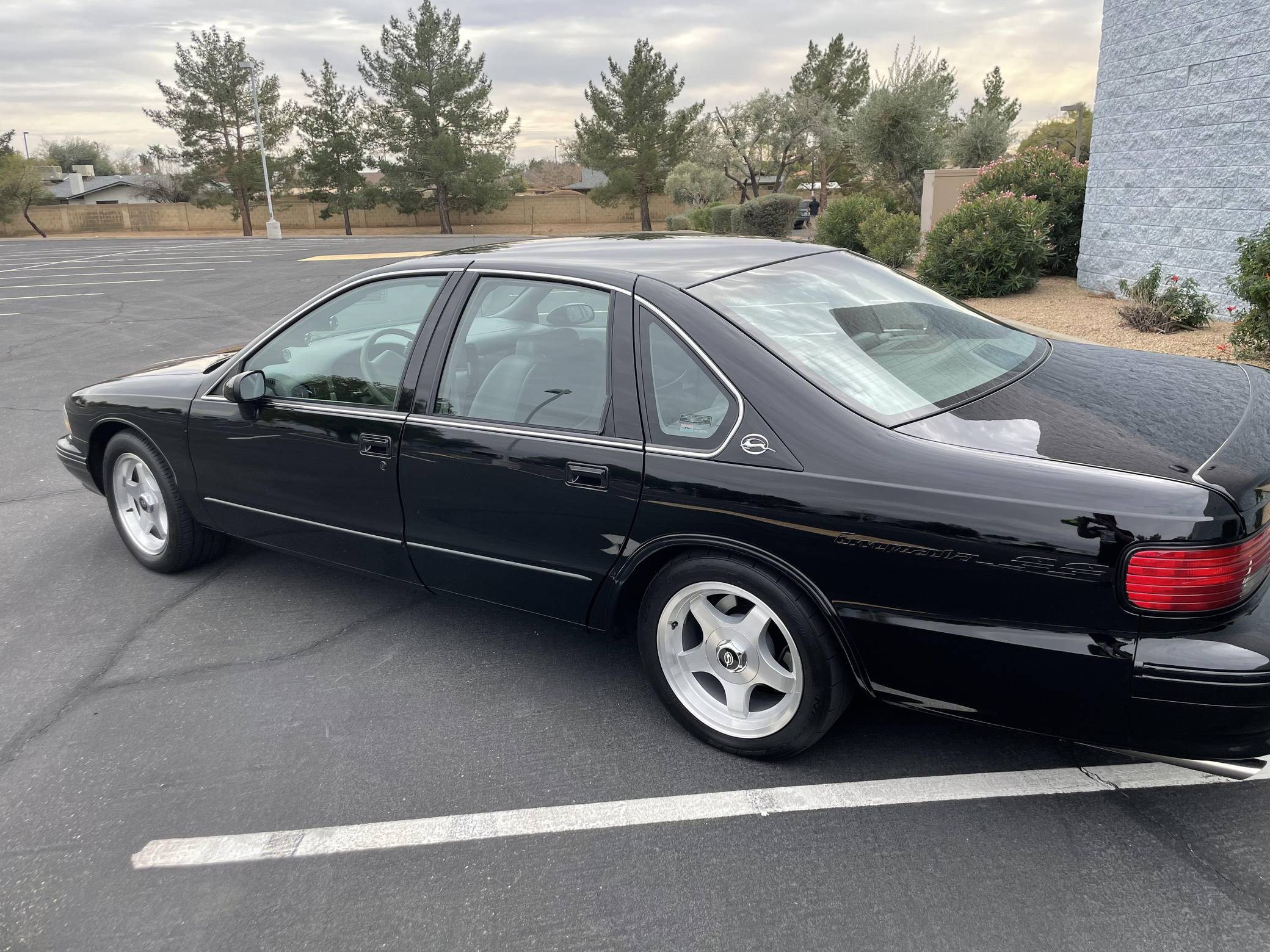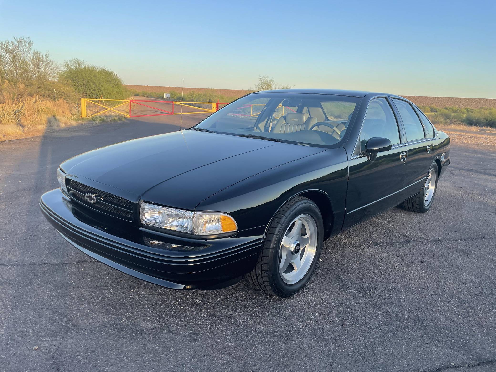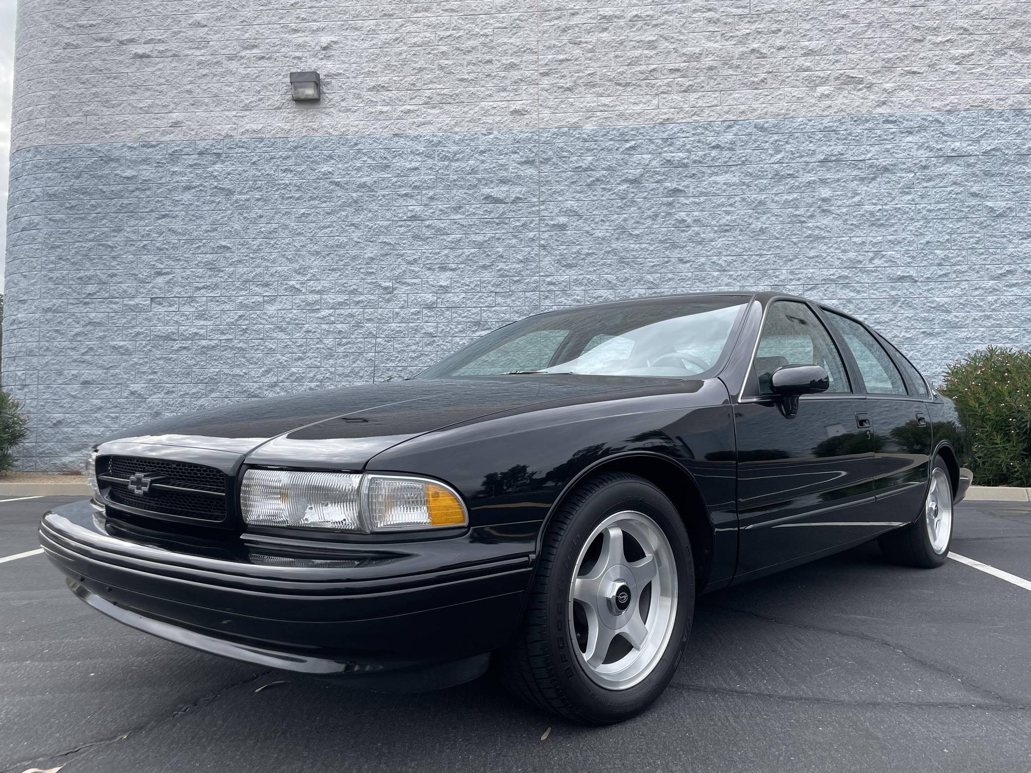 1994 Chevrolet Impala SS, finished in black with a gray interior. The odometer on this Impala SS currently displays about 14,500 miles. Modifications to this Impala SS are extensive, and the full list is detailed below. include an Edelbrock "LT4" conversion kit, a ProCharger supercharger and intercooler, Edelbrock long-tube headers, a Flowmaster American Thunder exhaust, a Hughes high-performance torque converter, and custom aluminum subframe and differential mounts. Factory equipment includes 17-inch aluminum wheels, a limited-slip differential, leather seats, a cassette radio, air conditioning, cruise control, and more. Sold between the 1994 and 1996 model years, the Impala SS was based on the B-Body Caprice but it gained a Corvette-derived V8 and numerous performance upgrades. It notably received a sport-tuned suspension, four-wheel disc brakes, a dual exhaust system, a transmission cooler, and a high-capacity reverse-flow cooling system, among other features. It was the last rear-wheel-drive V8-powered Chevrolet sedan until the Holden-built SS was introduced for the 2014 model year. Power comes from a heavily modified "LT1" 5. 7-liter V8, rated at 260 horsepower and 330 lb-ft of torque in stock form. The seller states that it now makes around 550 horsepower at the wheels thanks to the "LT4" conversion kit, supercharger, and other modifications, but a dyno sheet was not provided to confirm. Output is sent to the rear wheels via a 4-speed automatic transmission.
