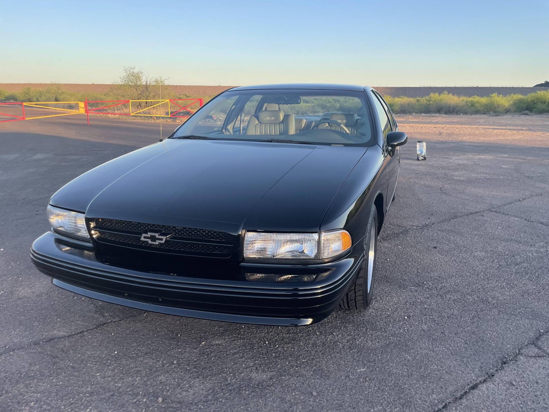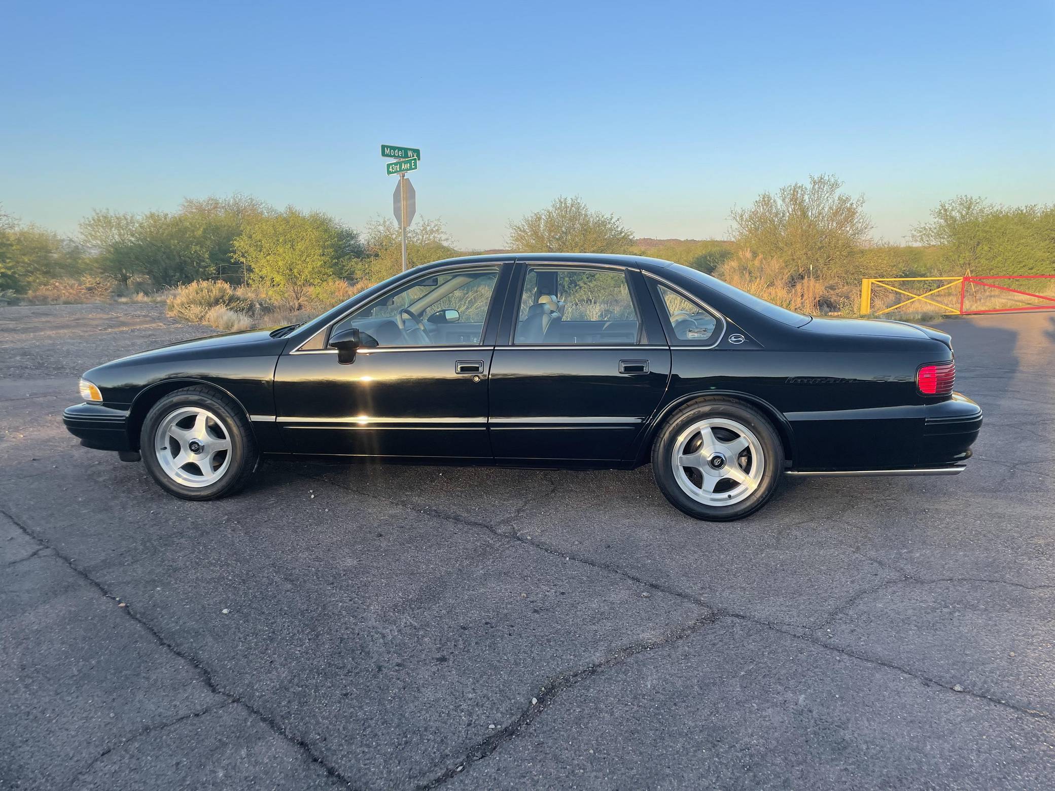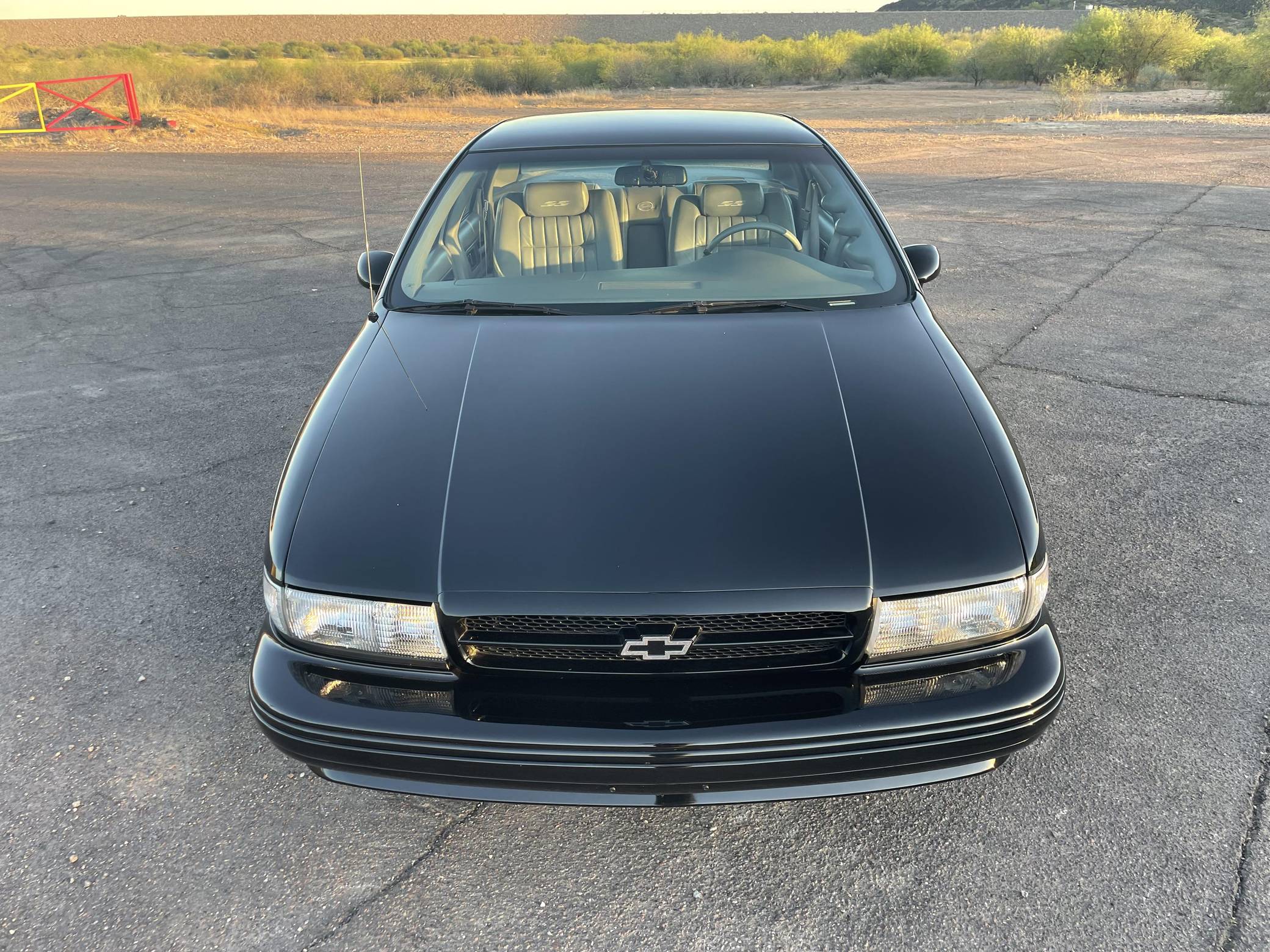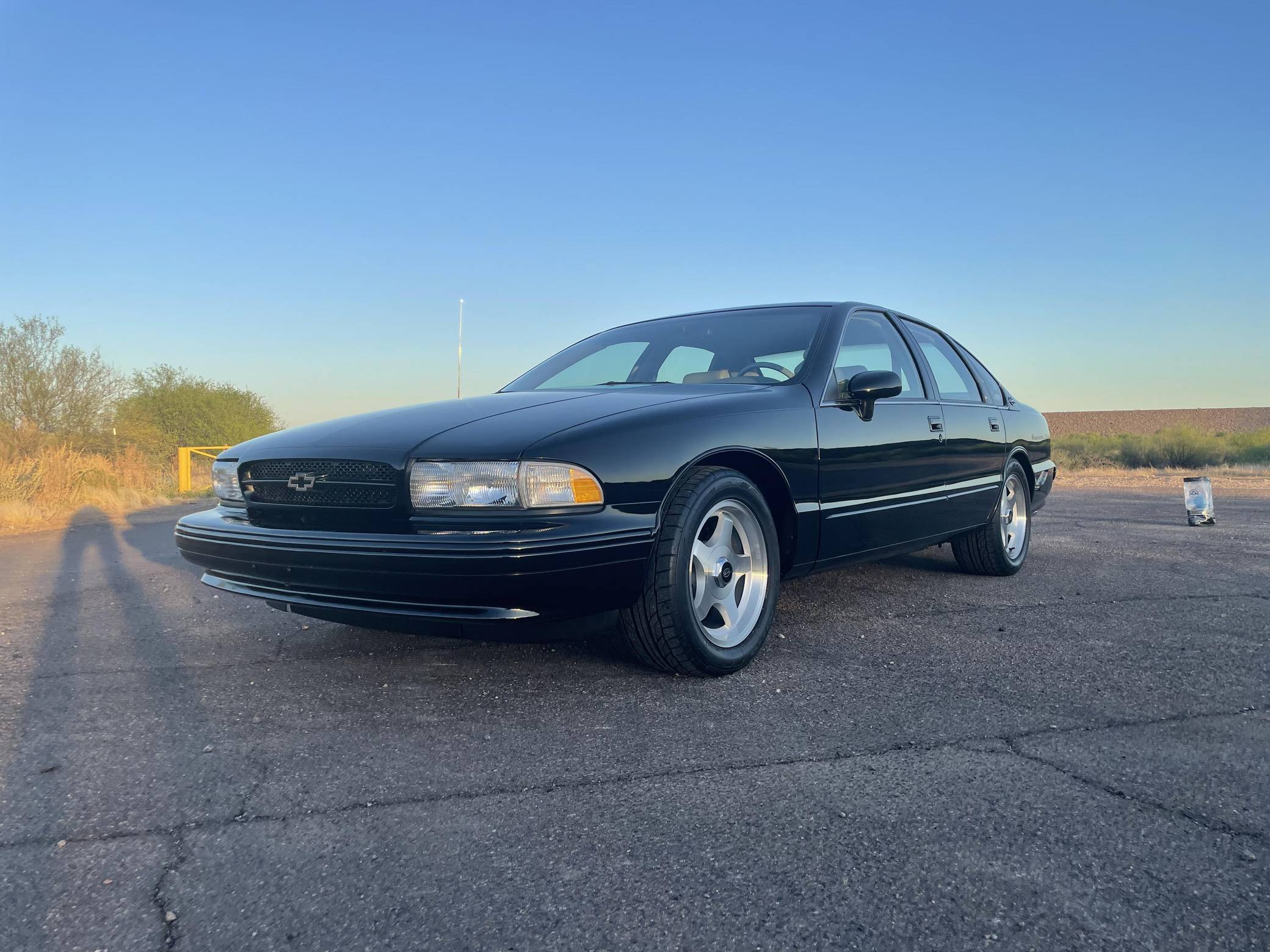 1994 Chevrolet Impala SS, finished in black with a gray interior. The odometer on this Impala SS currently displays about 14,500 miles. Modifications to this Impala SS are extensive, and the full list is detailed below. include an Edelbrock "LT4" conversion kit, a ProCharger supercharger and intercooler, Edelbrock long-tube headers, a Flowmaster American Thunder exhaust, a Hughes high-performance torque converter, and custom aluminum subframe and differential mounts. Factory equipment includes 17-inch aluminum wheels, a limited-slip differential, leather seats, a cassette radio, air conditioning, cruise control, and more. Sold between the 1994 and 1996 model years, the Impala SS was based on the B-Body Caprice but it gained a Corvette-derived V8 and numerous performance upgrades. It notably received a sport-tuned suspension, four-wheel disc brakes, a dual exhaust system, a transmission cooler, and a high-capacity reverse-flow cooling system, among other features. It was the last rear-wheel-drive V8-powered Chevrolet sedan until the Holden-built SS was introduced for the 2014 model year. Power comes from a heavily modified "LT1" 5. 7-liter V8, rated at 260 horsepower and 330 lb-ft of torque in stock form. The seller states that it now makes around 550 horsepower at the wheels thanks to the "LT4" conversion kit, supercharger, and other modifications, but a dyno sheet was not provided to confirm. Output is sent to the rear wheels via a 4-speed automatic transmission.
