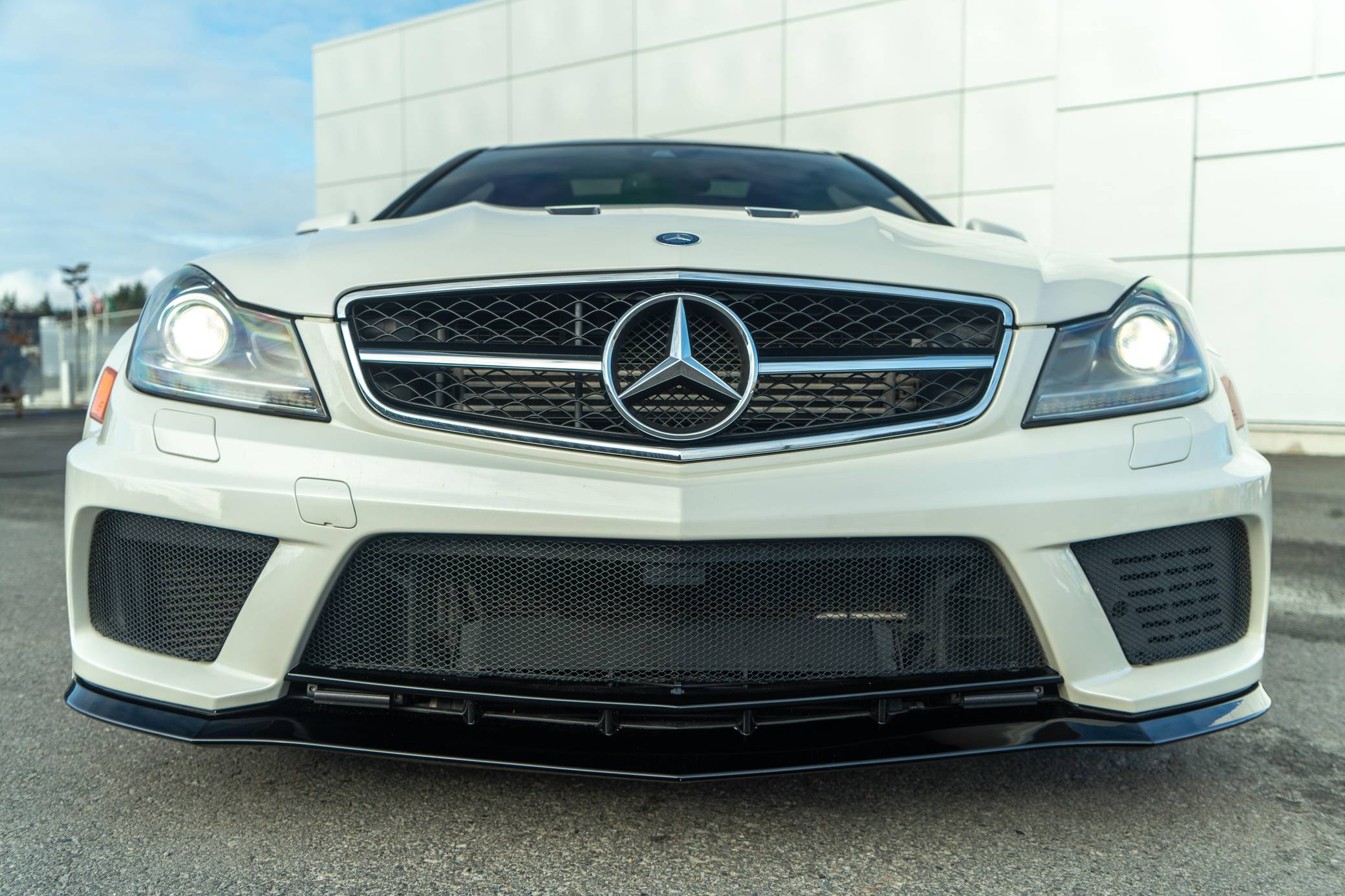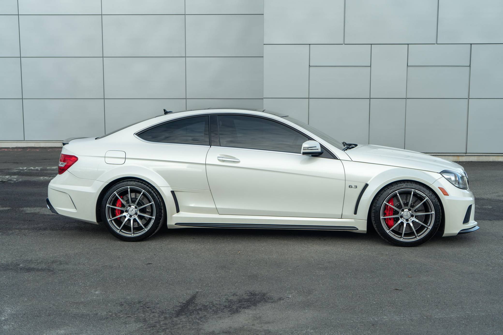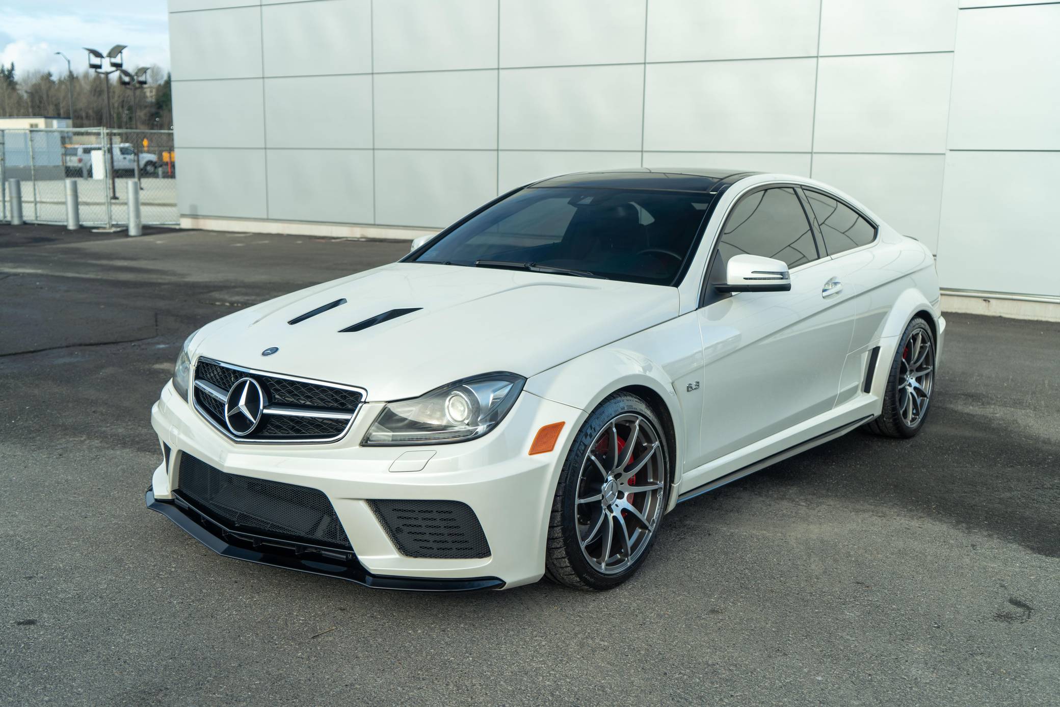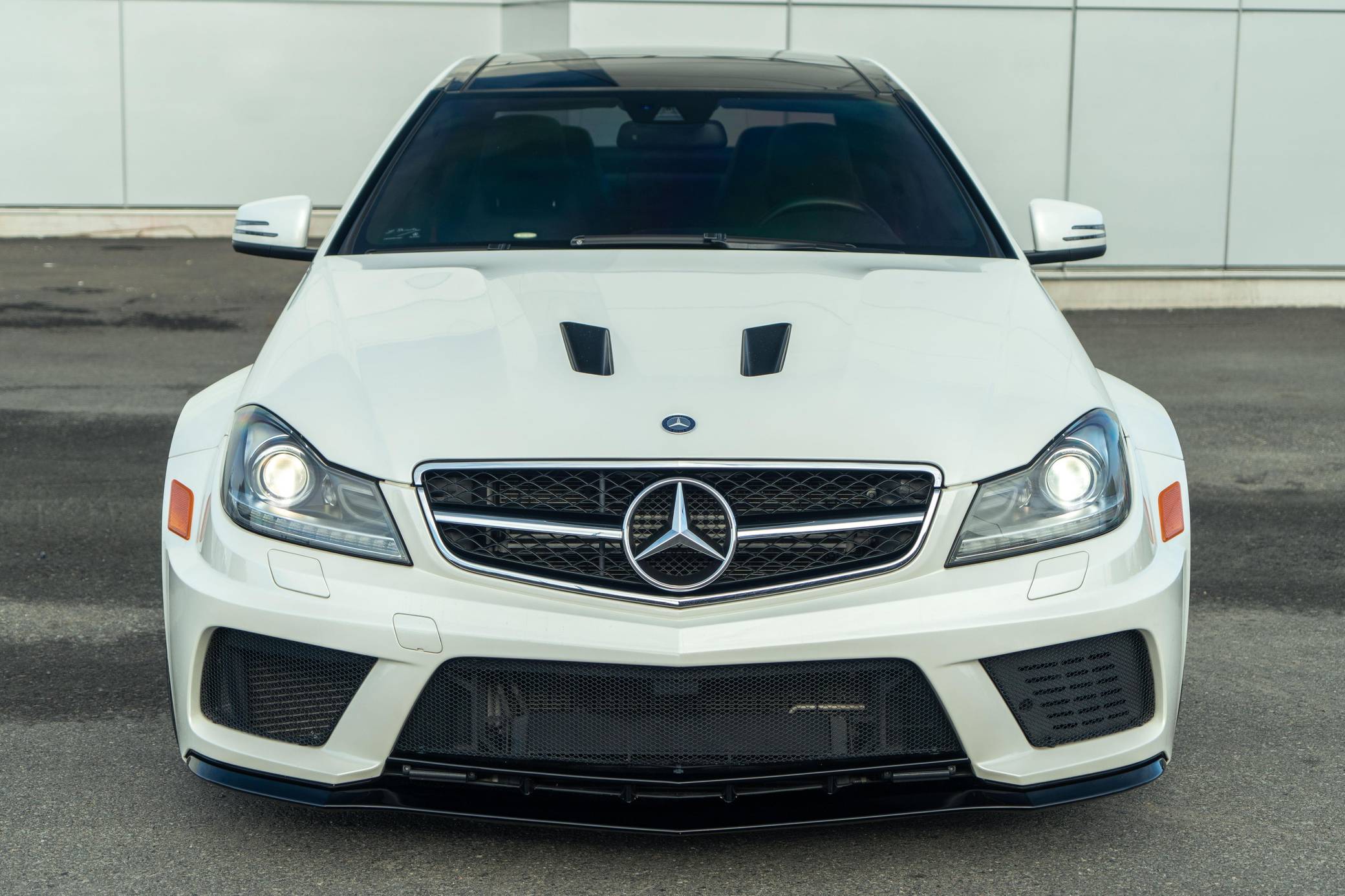 THIS… is a 2012 Mercedes-Benz C63 AMG Black Series, finished in Diamond White with a black interior. This C63 AMG Black Series is 1 of 800 produced worldwide for the 2012 model year. The hardcore performance-focused Black Series boasts 59 horsepower and 14 lb-ft of torque over the standard C63 AMG, thanks to a revised ECU and forged pistons, connecting rods, and a crankshaft borrowed from the SLS AMG. It looks the part, too, with enlarged fenders, a wider track, and aggressive bodywork designed to scoop in more air and keep it planted firmly on the road. Factory equipment includes 19-inch 10-spoke forged alloy wheels, adjustable coilover suspension, a limited-slip differential, a panoramic sunroof, MB-Tex and Dinamica upholstery, heated front seats, carbon fiber interior trim, a Harman/Kardon sound system, a rear-view camera, and more as detailed below. Modifications reported by the seller include a resonator delete, tinted windows, and a Passport radar detector, plus paint protection film on the front end, A-pillars, and side skirts. Power comes from a hand-built "M156" 6. 2-liter V8, rated at 510 horsepower and 457 lb-ft of torque. Output is sent to the rear wheels via a 7-speed AMG Speedshift multi-clutch automatic transmission and a limited-slip differential.