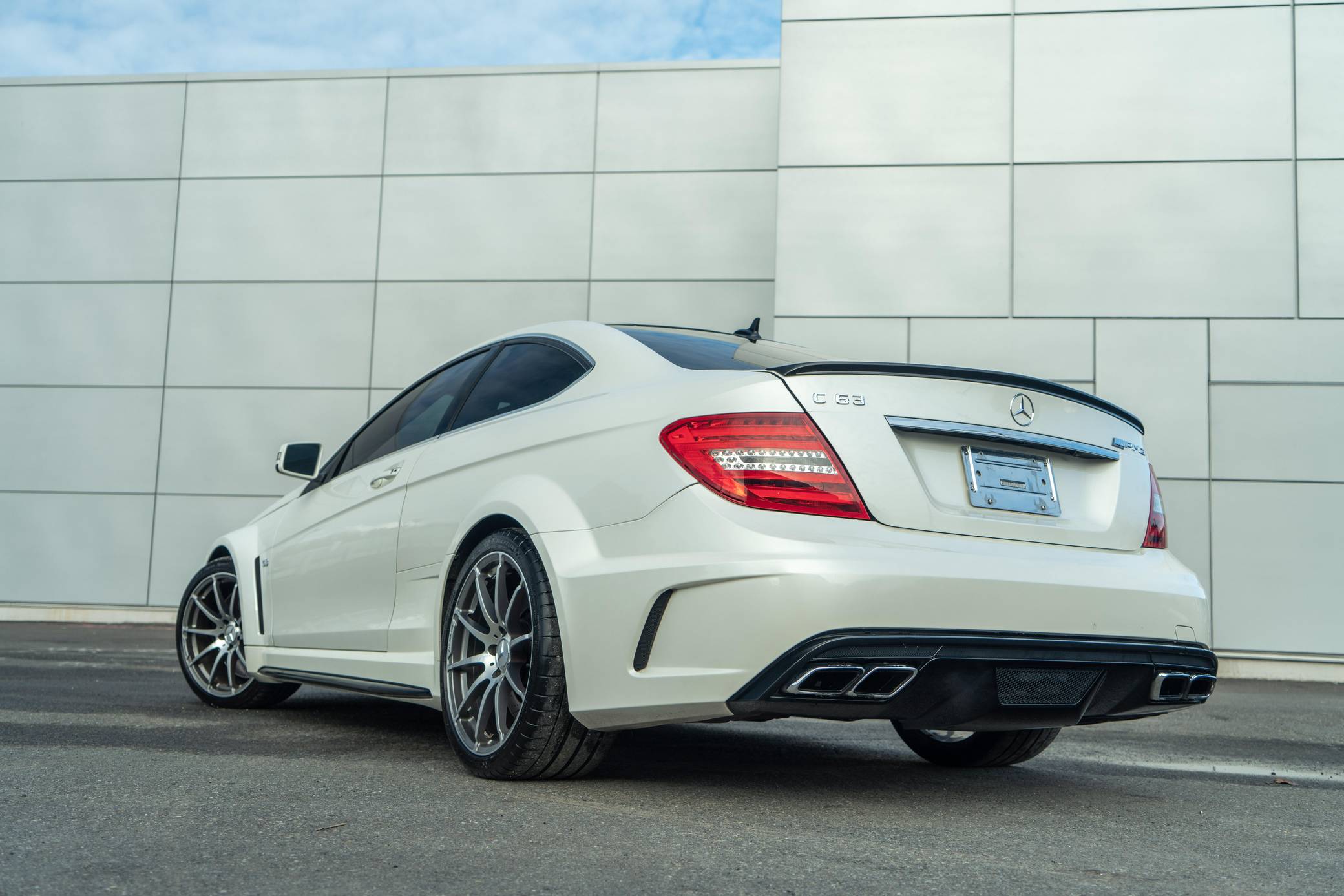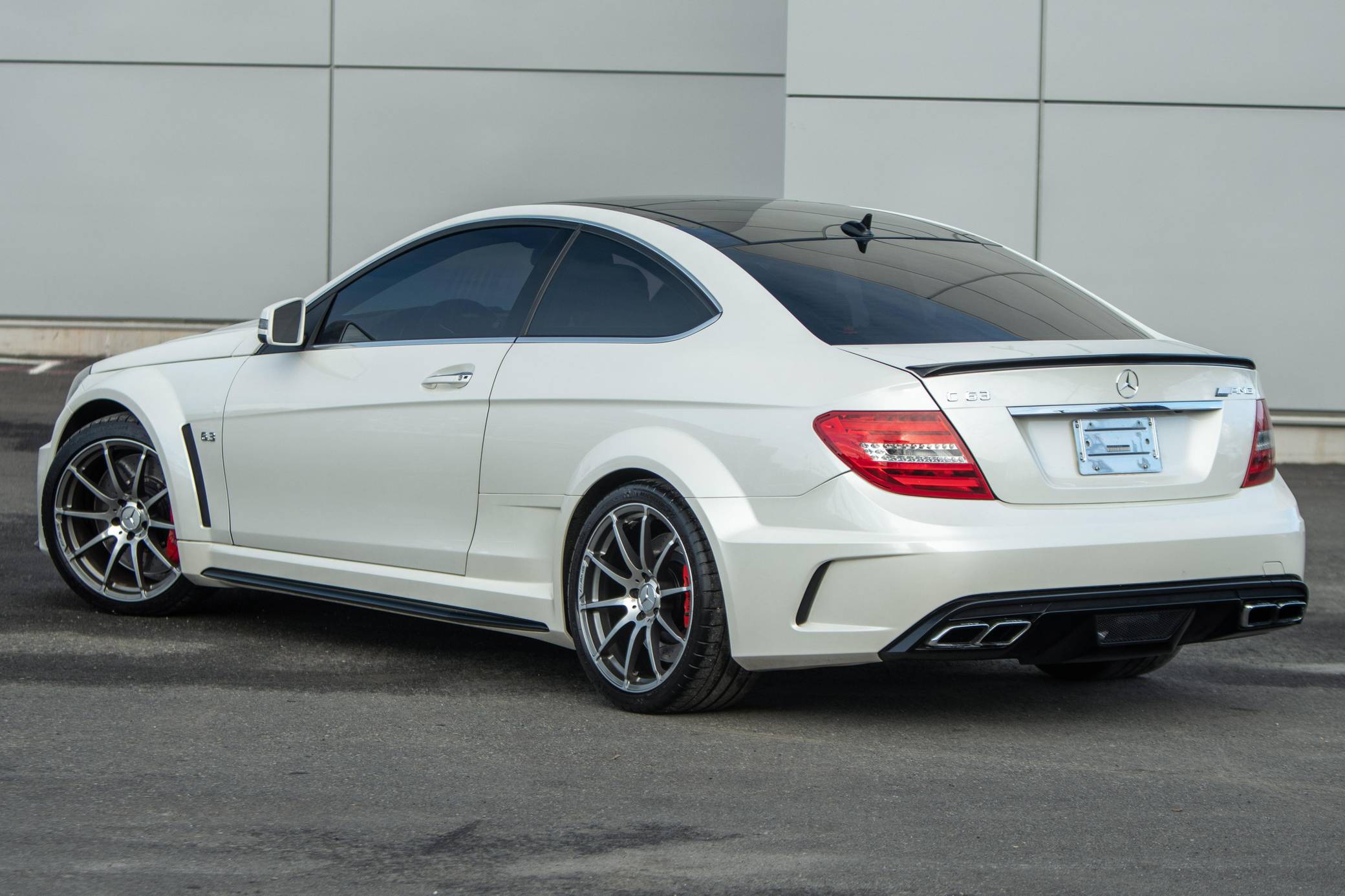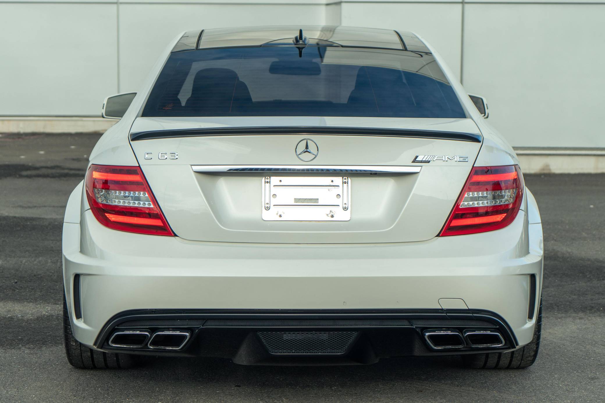 THIS… is a 2012 Mercedes-Benz C63 AMG Black Series, finished in Diamond White with a black interior. This C63 AMG Black Series is 1 of 800 produced worldwide for the 2012 model year. The hardcore performance-focused Black Series boasts 59 horsepower and 14 lb-ft of torque over the standard C63 AMG, thanks to a revised ECU and forged pistons, connecting rods, and a crankshaft borrowed from the SLS AMG. It looks the part, too, with enlarged fenders, a wider track, and aggressive bodywork designed to scoop in more air and keep it planted firmly on the road. Factory equipment includes 19-inch 10-spoke forged alloy wheels, adjustable coilover suspension, a limited-slip differential, a panoramic sunroof, MB-Tex and Dinamica upholstery, heated front seats, carbon fiber interior trim, a Harman/Kardon sound system, a rear-view camera, and more as detailed below. Modifications reported by the seller include a resonator delete, tinted windows, and a Passport radar detector, plus paint protection film on the front end, A-pillars, and side skirts. Power comes from a hand-built "M156" 6. 2-liter V8, rated at 510 horsepower and 457 lb-ft of torque. Output is sent to the rear wheels via a 7-speed AMG Speedshift multi-clutch automatic transmission and a limited-slip differential.